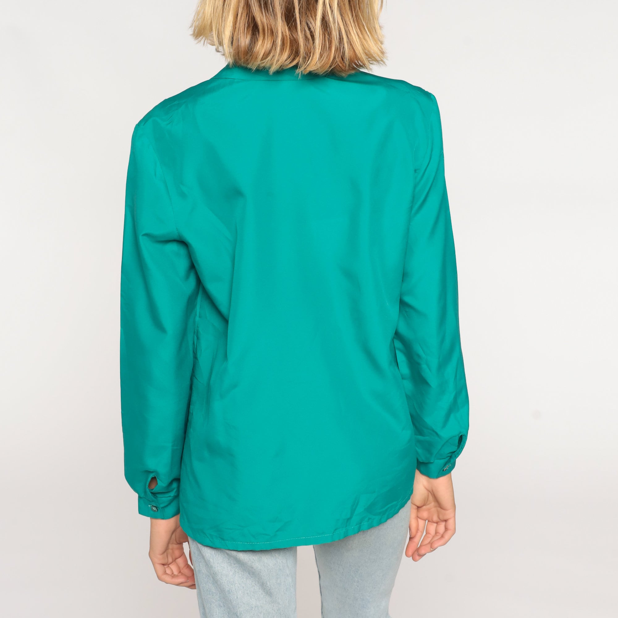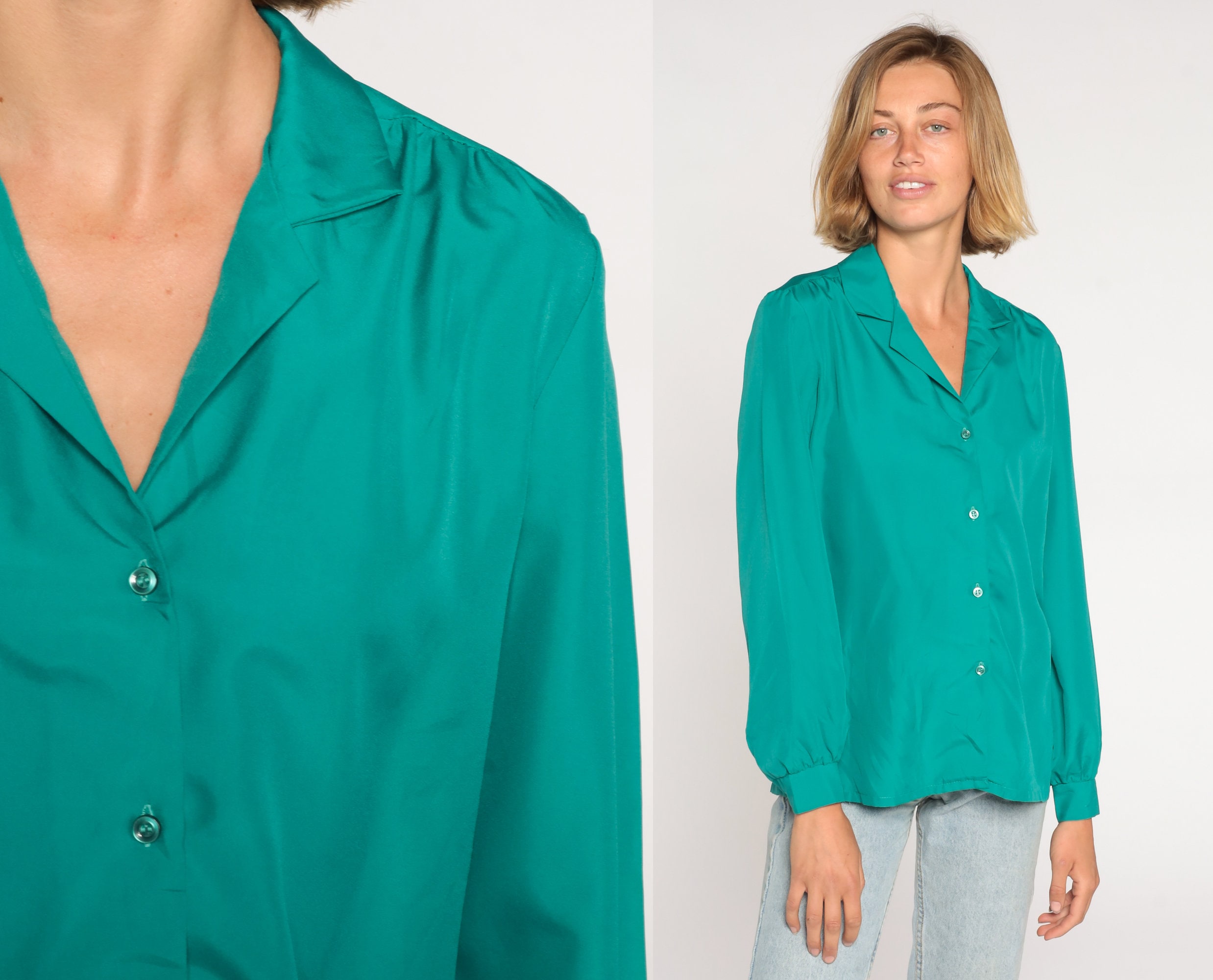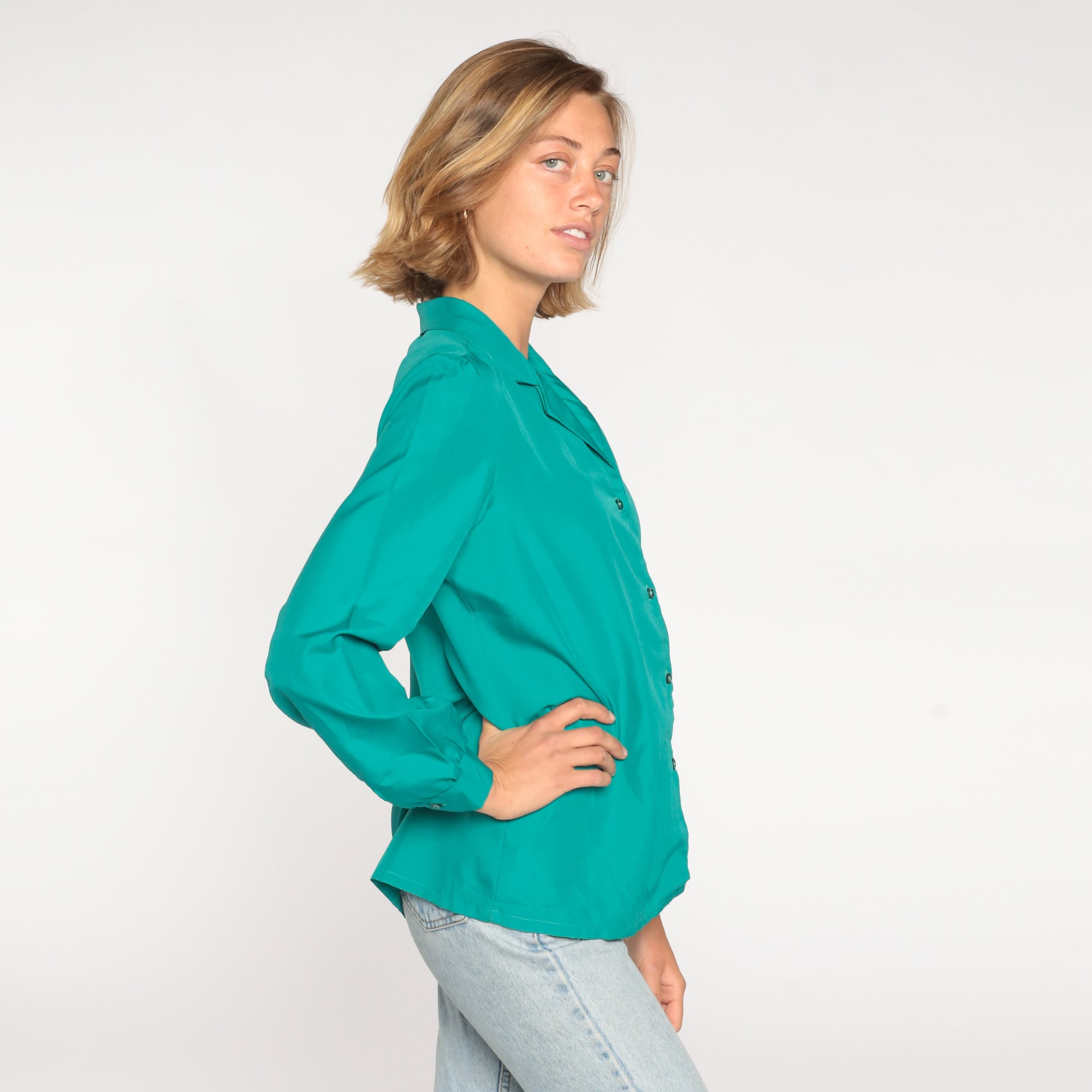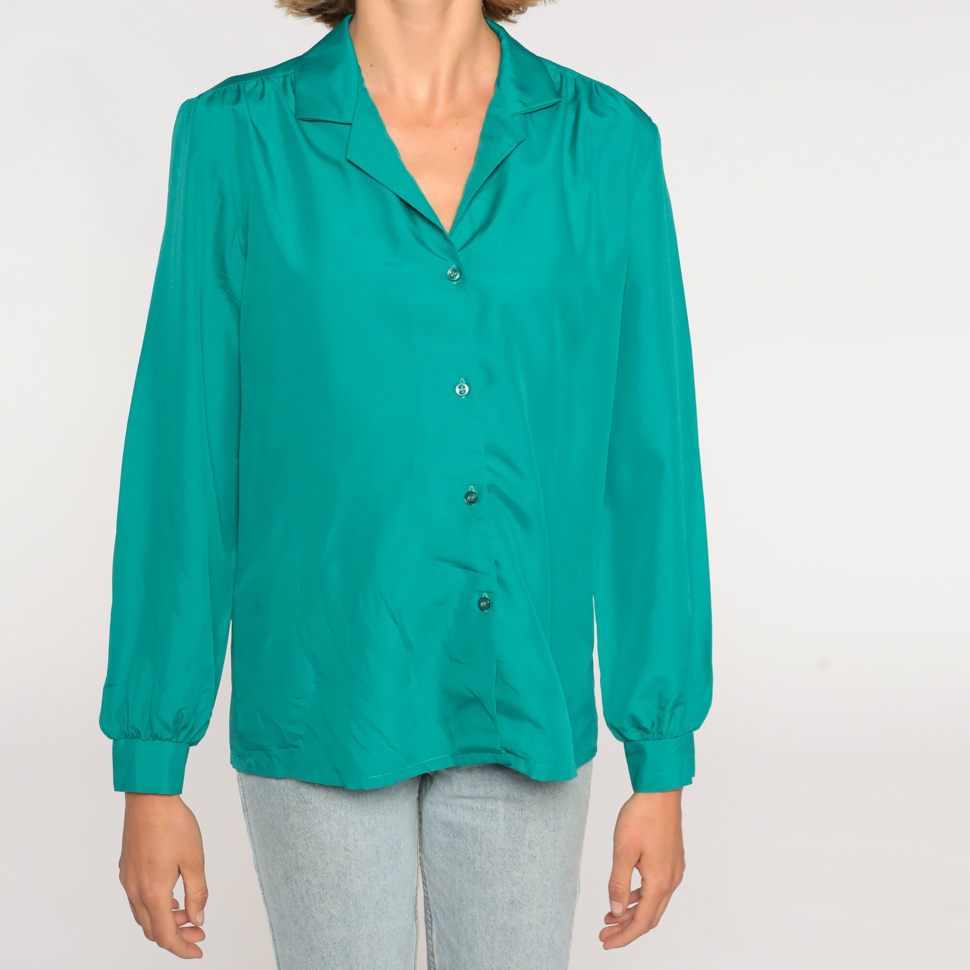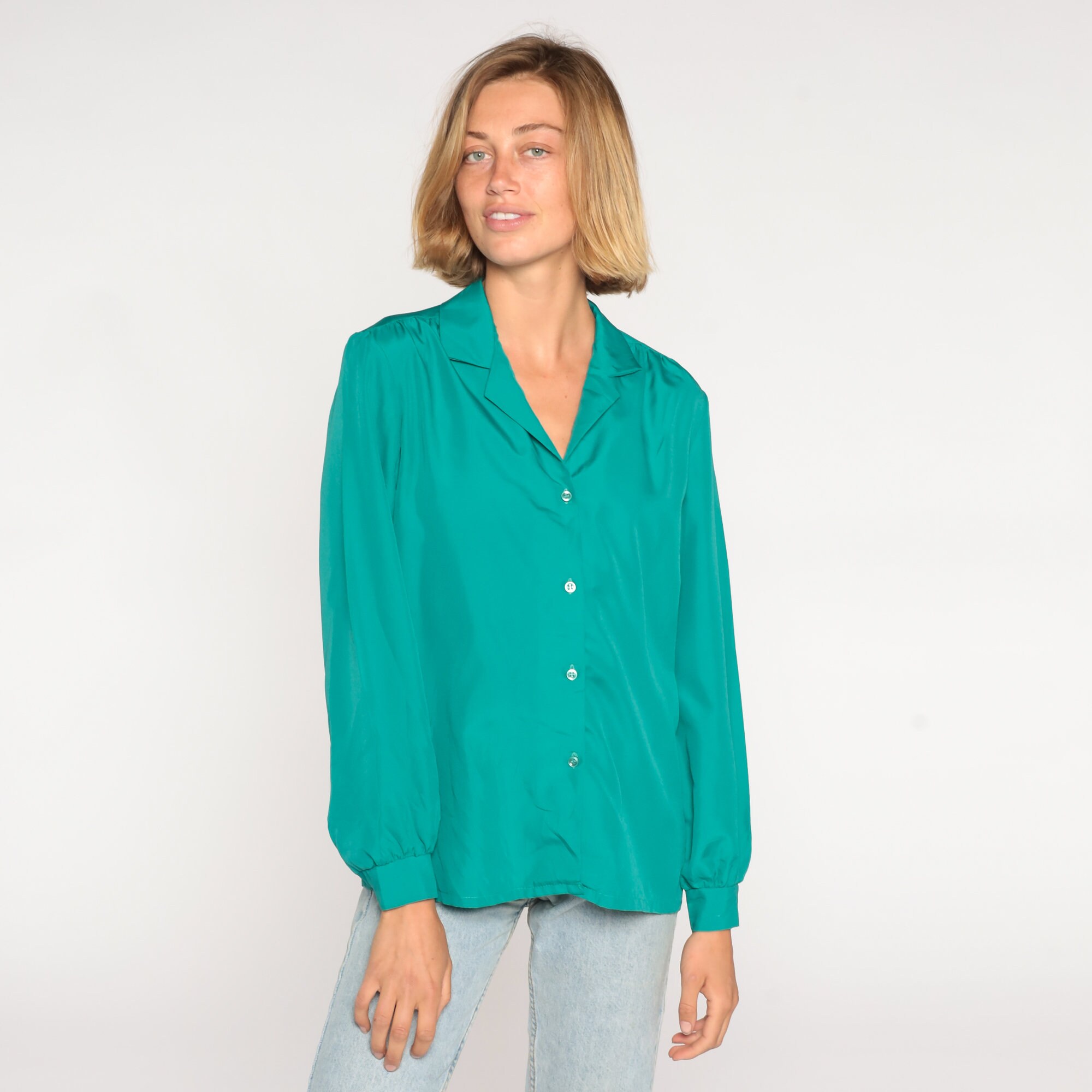 Vintage 80s shirt in green with long sleeves and buttons up the front.