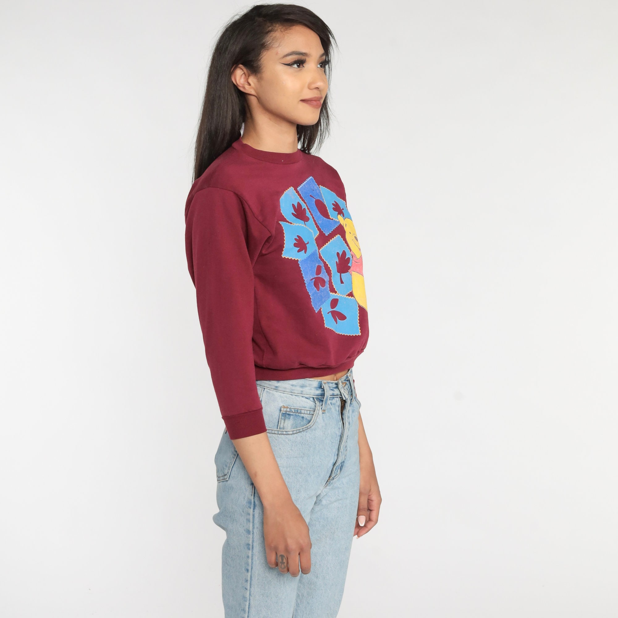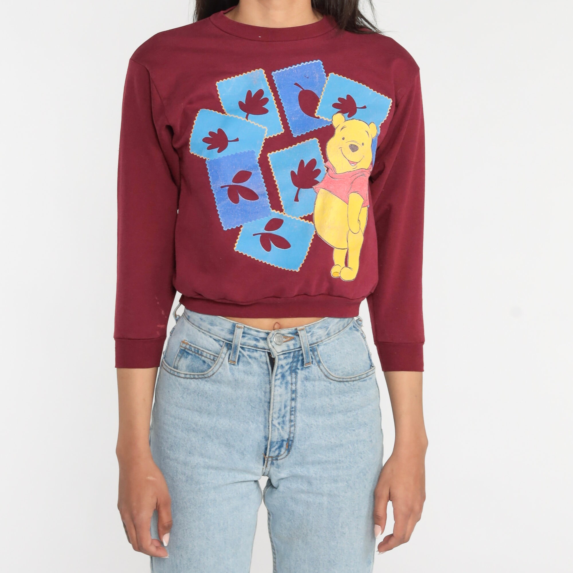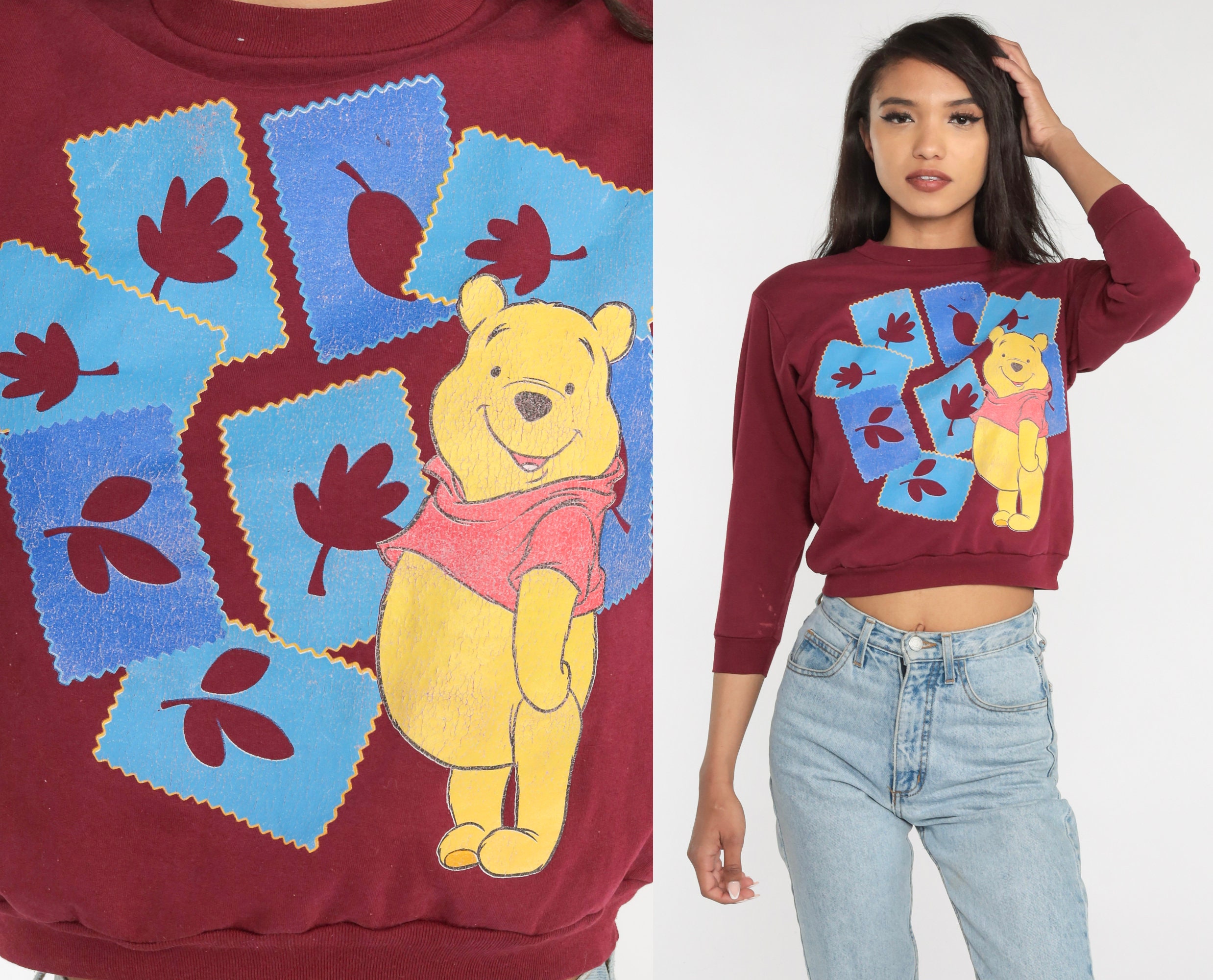 Vintage 00s sweatshirt with a Winnie The Pooh and autumn leaves print.