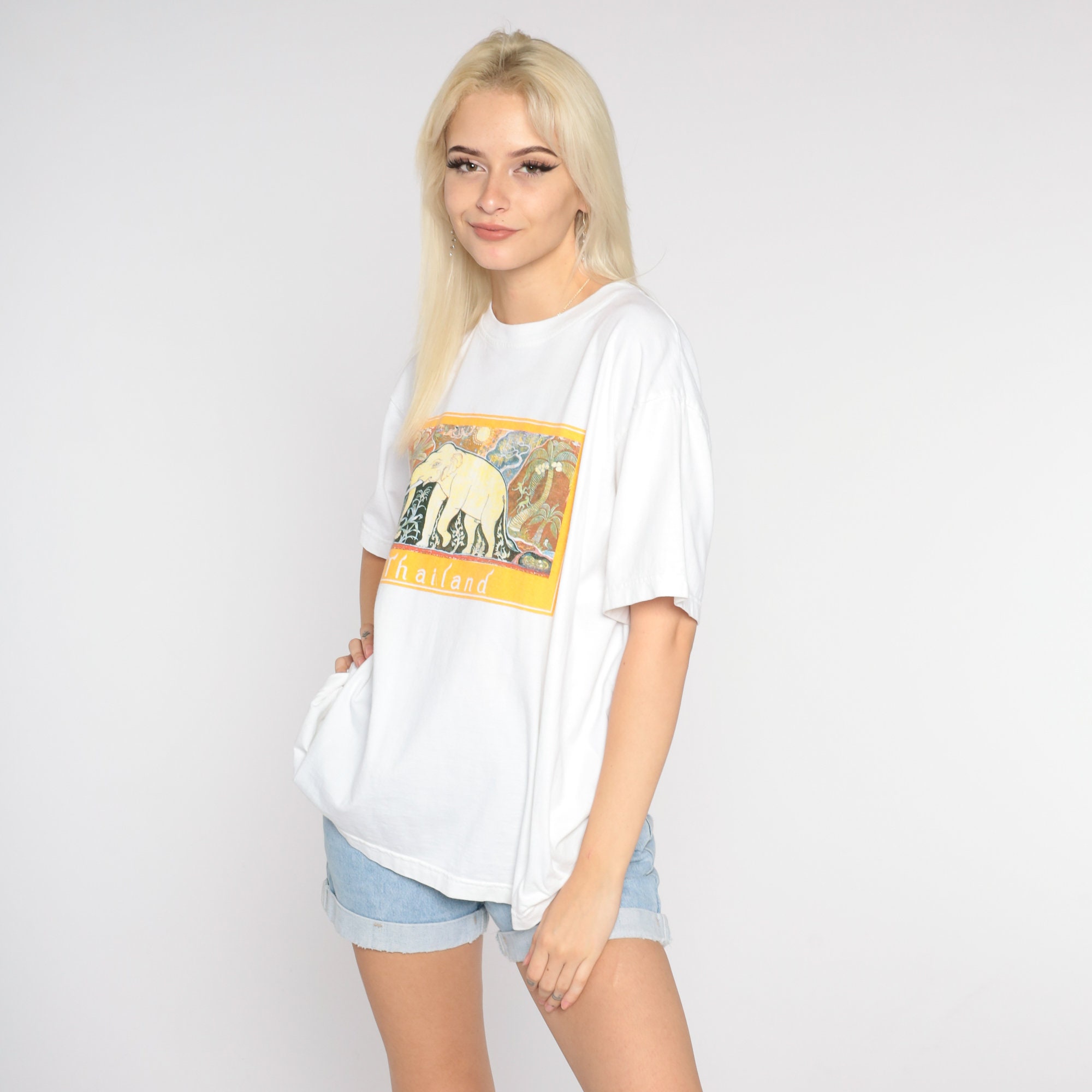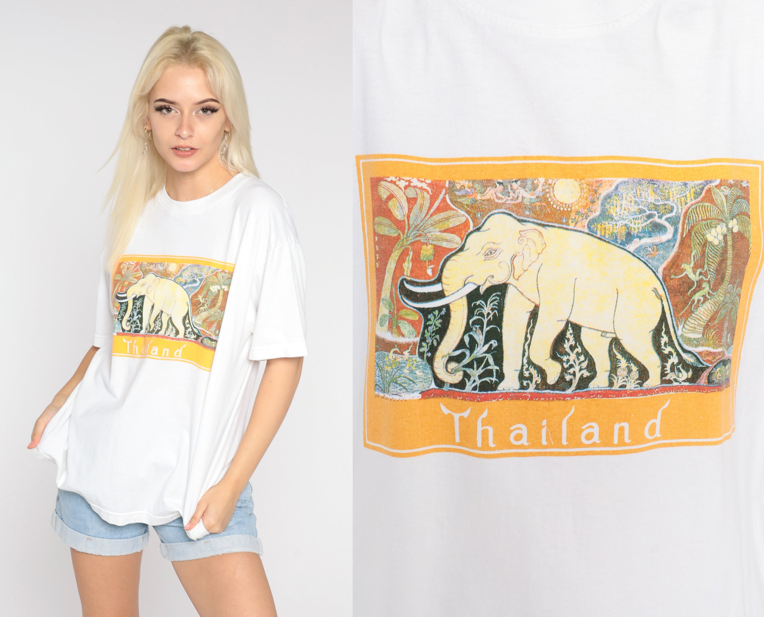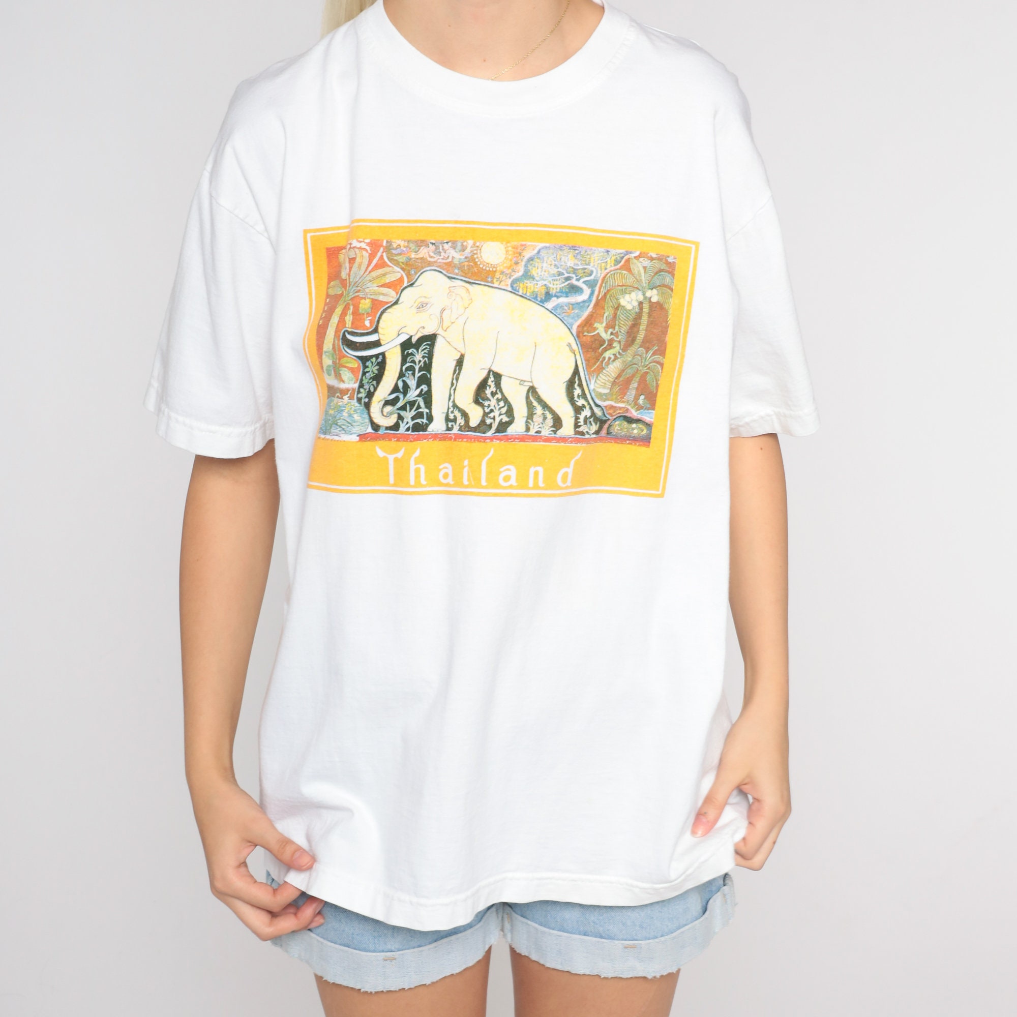 Vintage Y2K shirt in white with an elephant print and "Thailand" on the front.