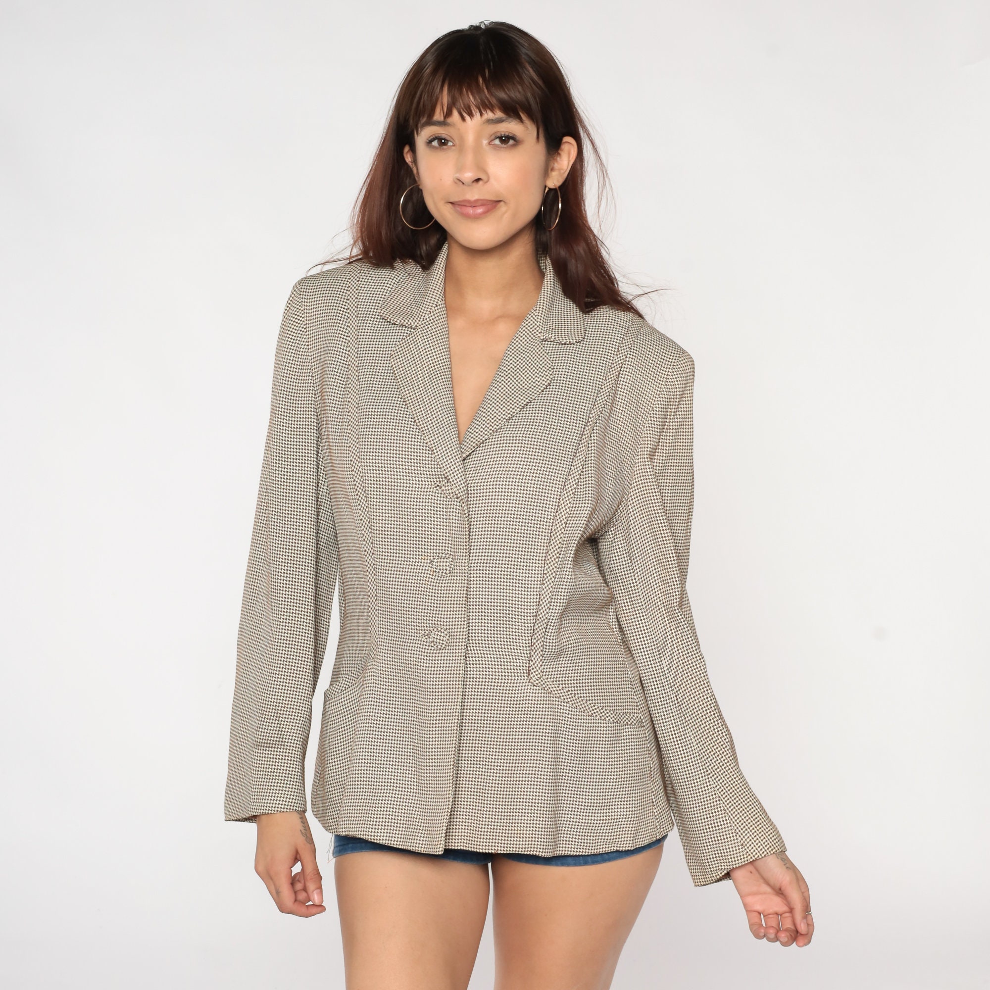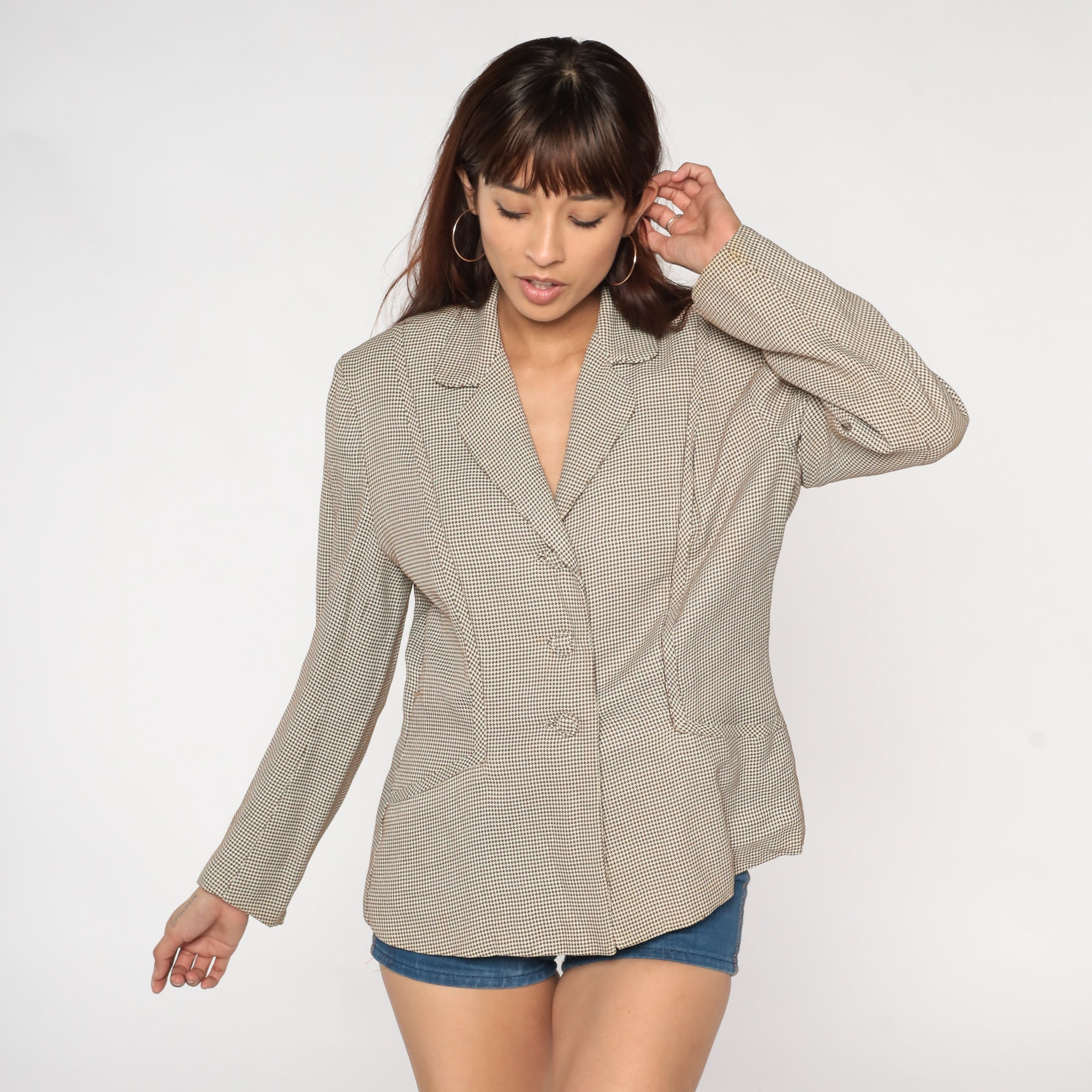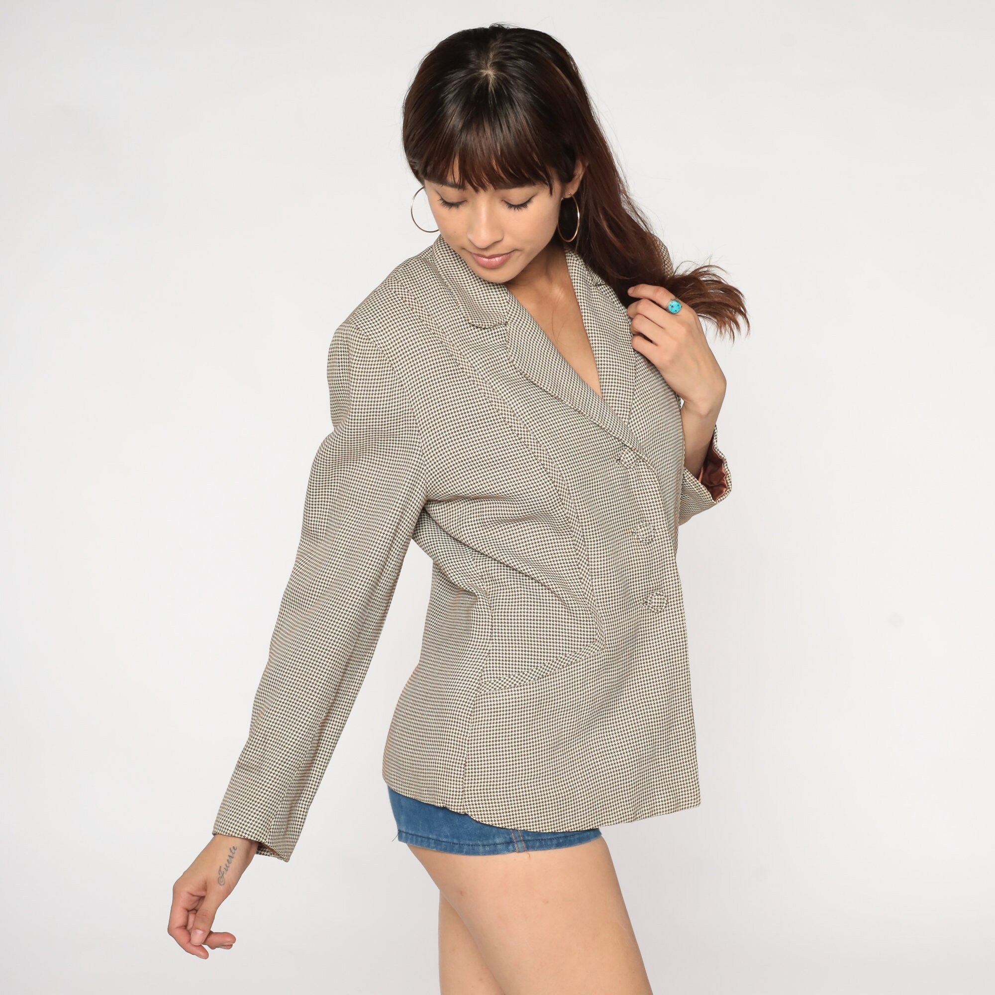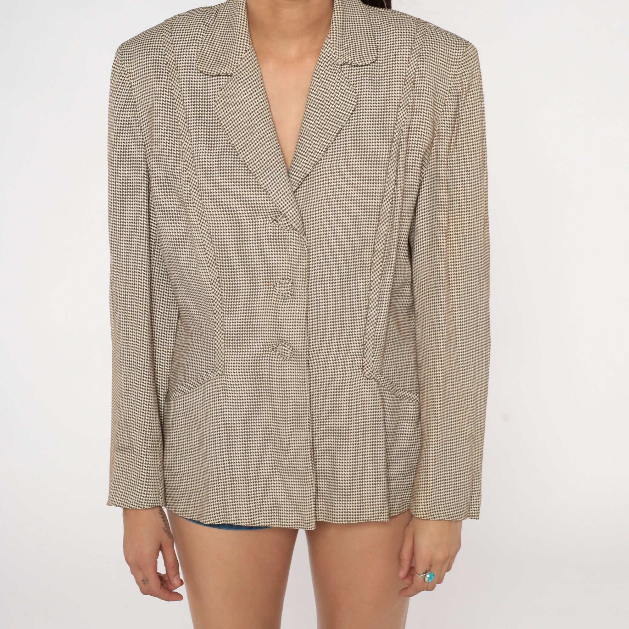Vintage 60s jacket in brown and white houndstooth with buttons up the front.