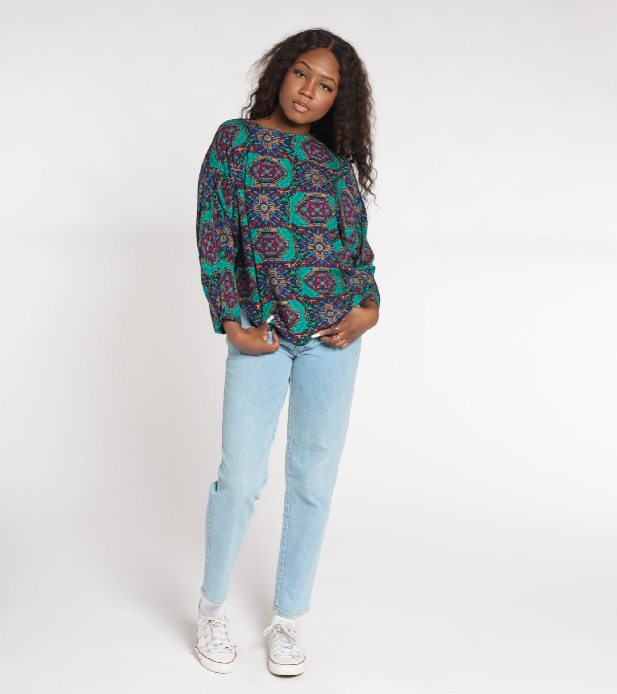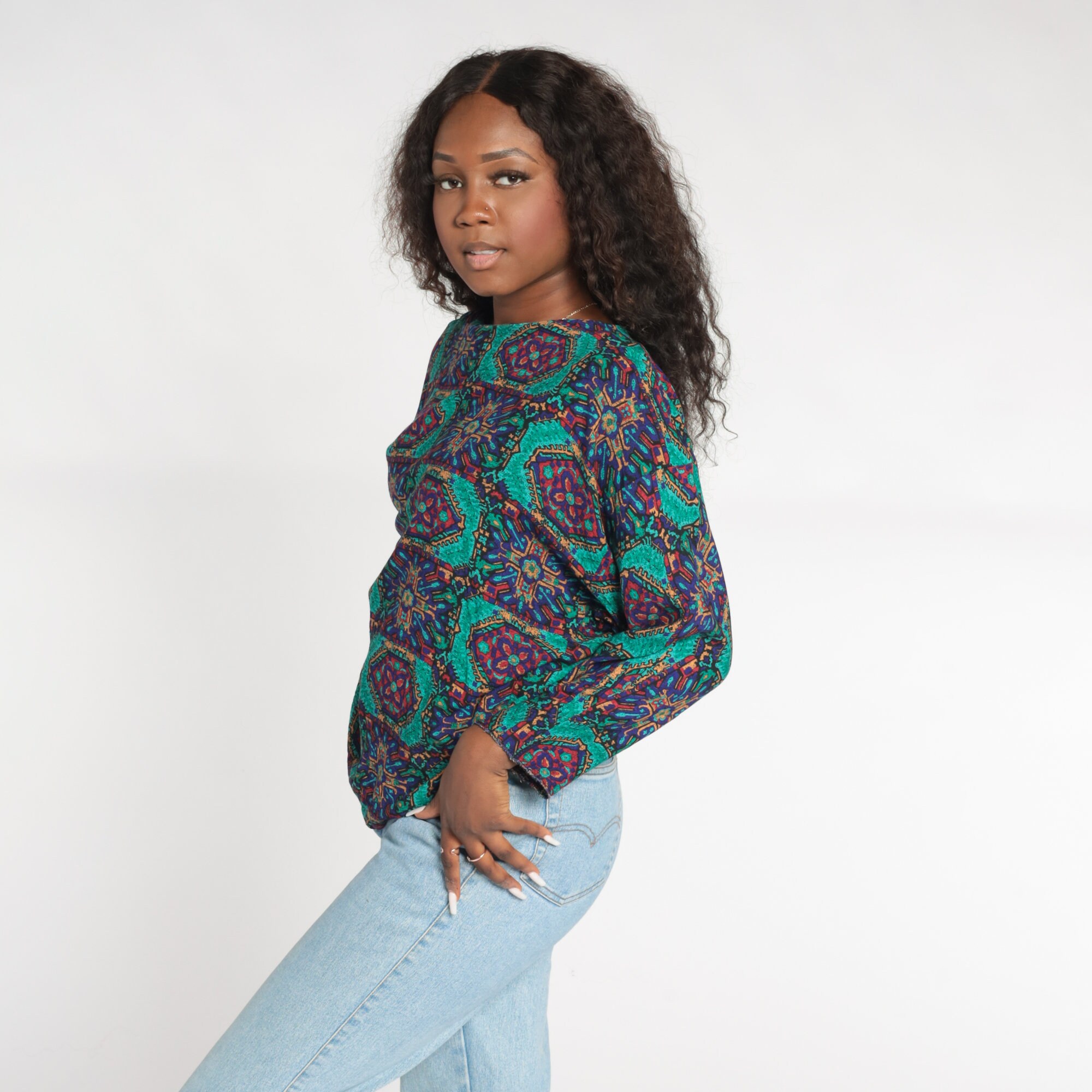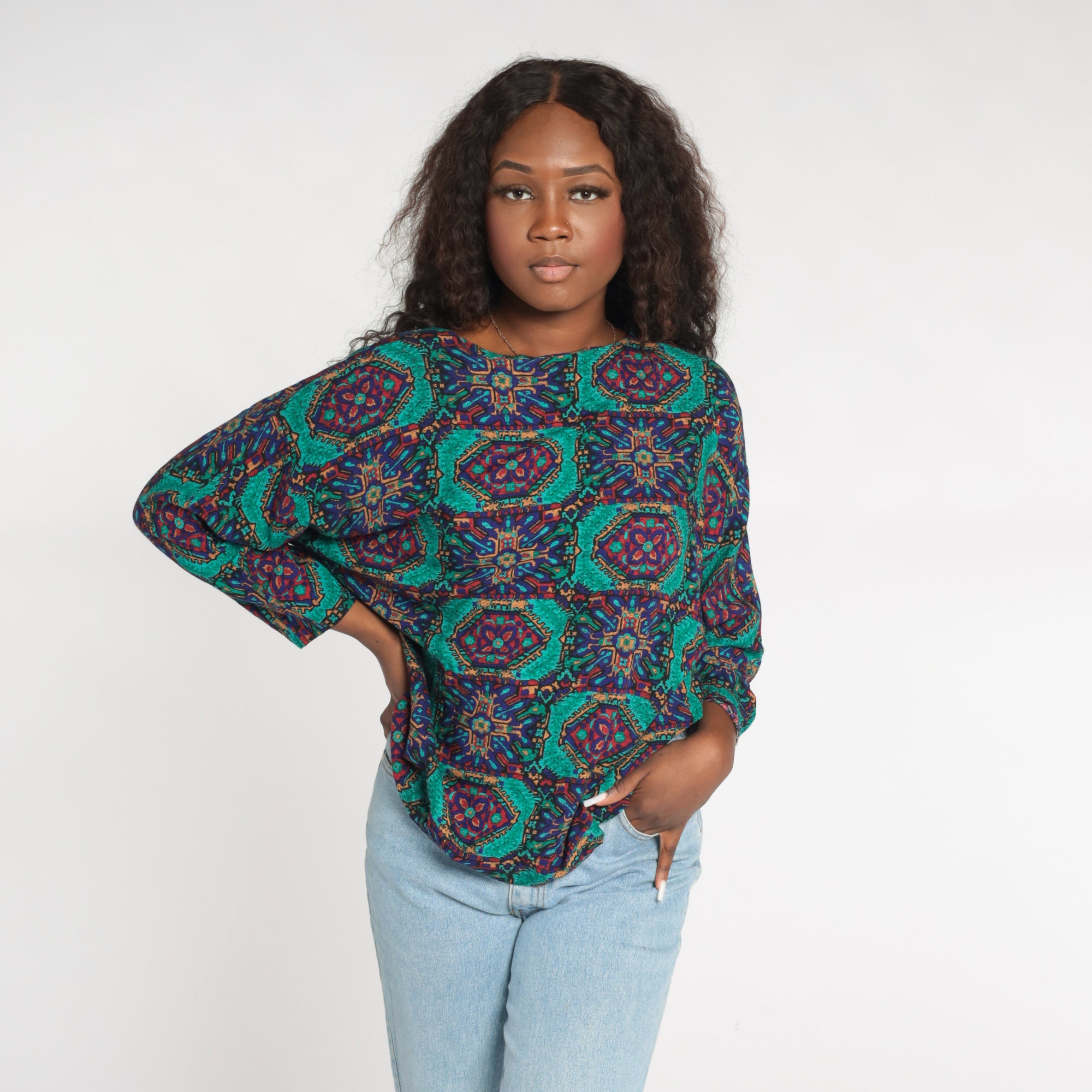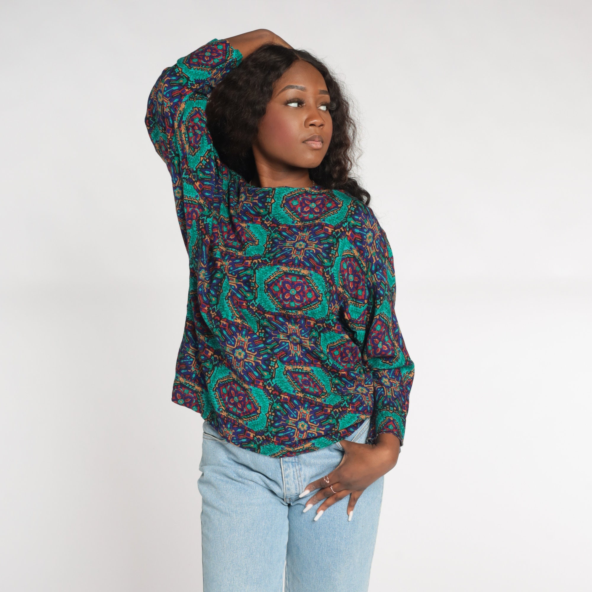 Vintage 90s shirt in a colorful Geometric tile print with long sleeves.