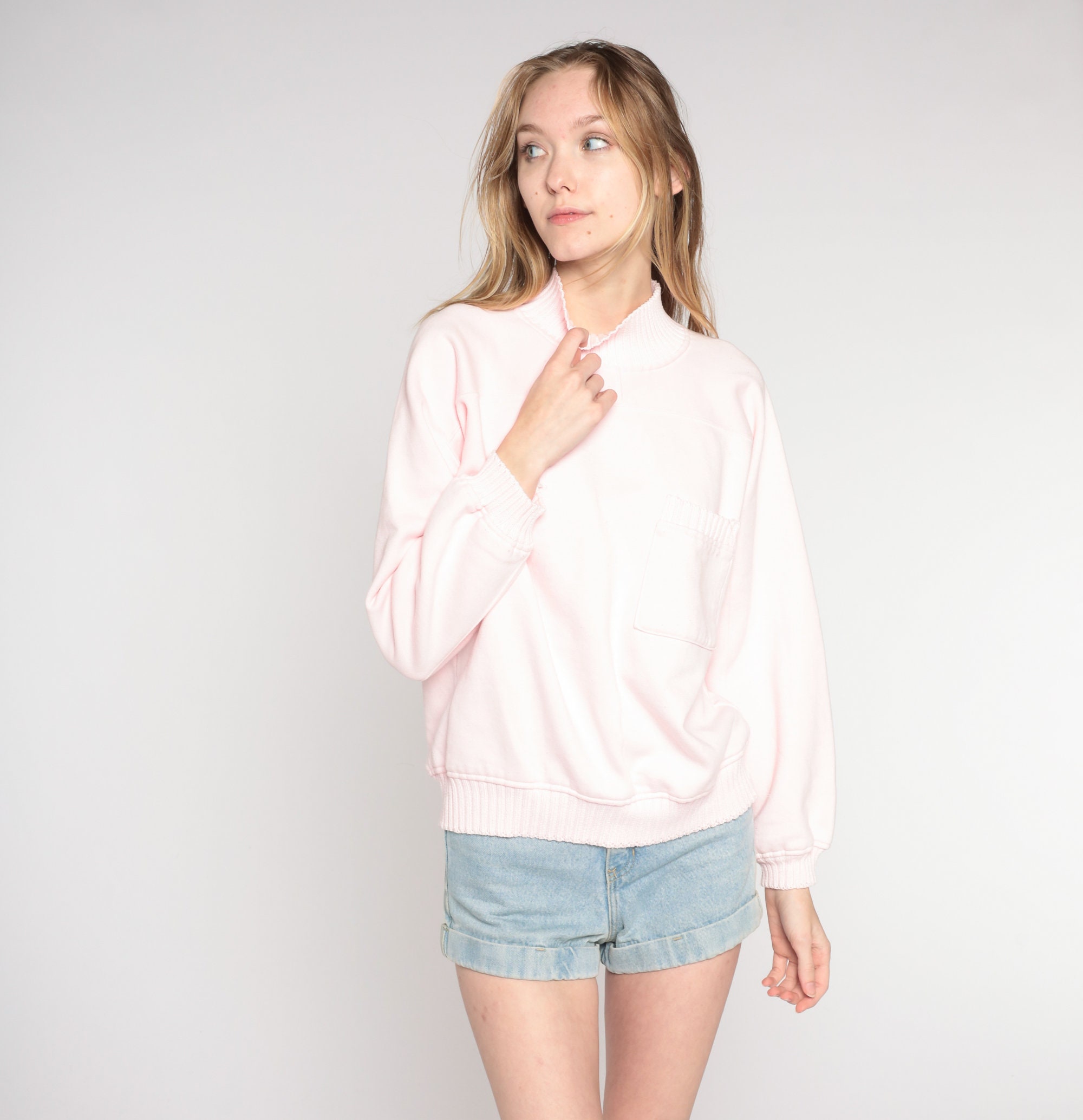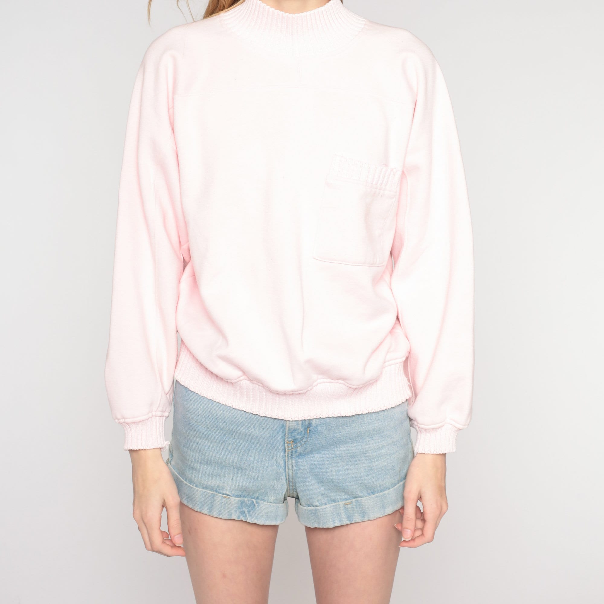 Vintage 80s sweatshirt in baby pink with a mock neck.