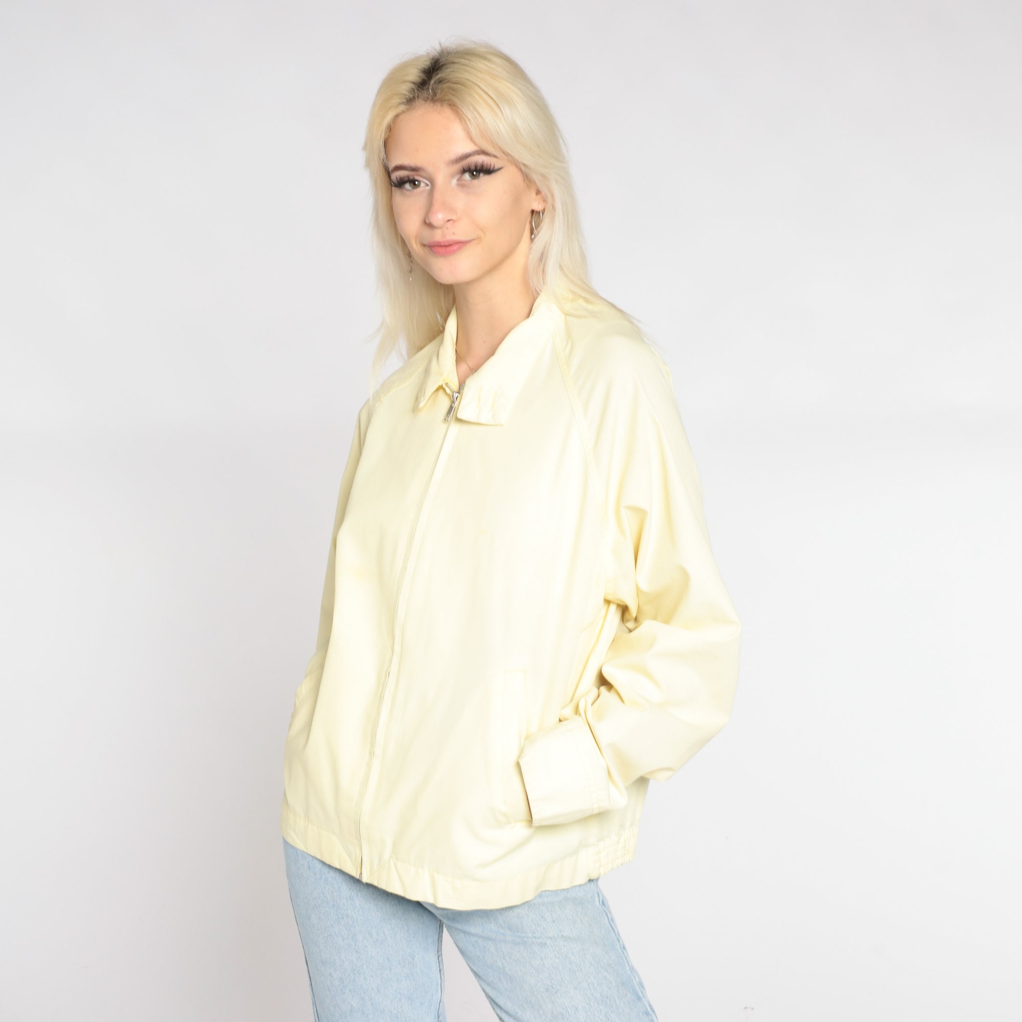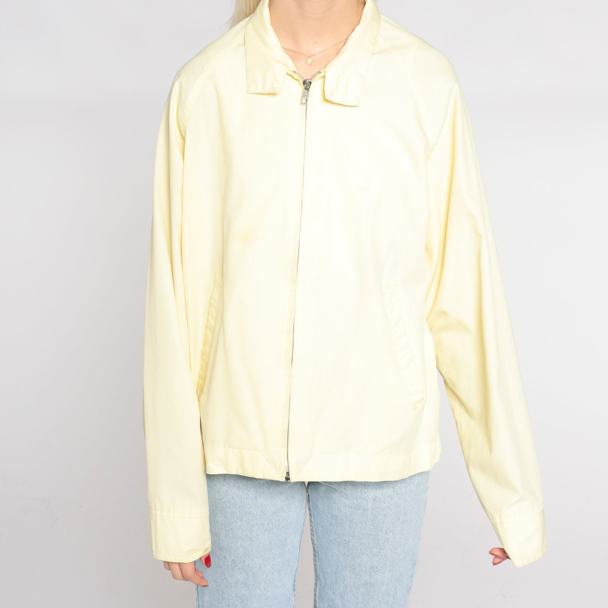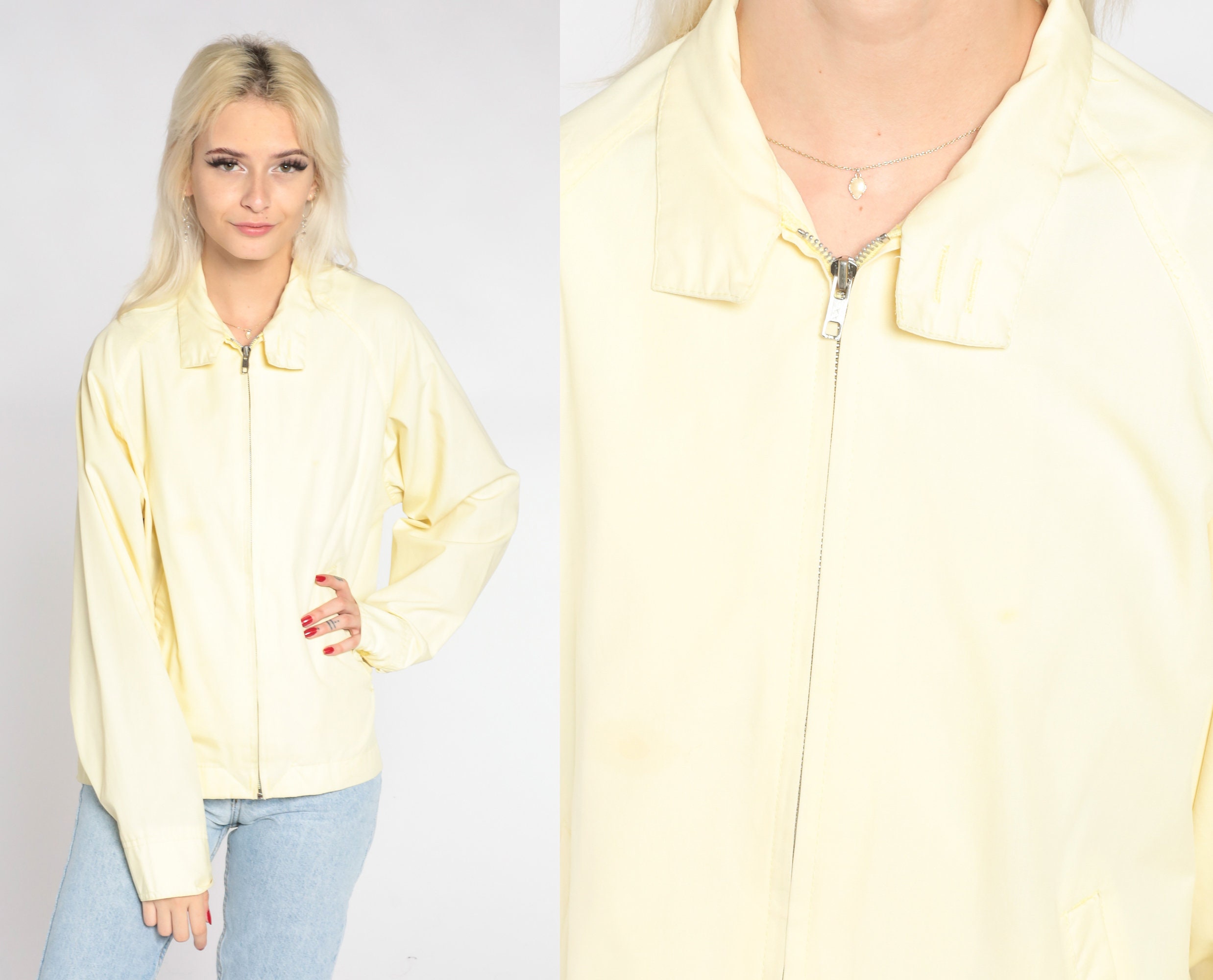 Vintage 80s jacket in yellow with a zipper up the front.