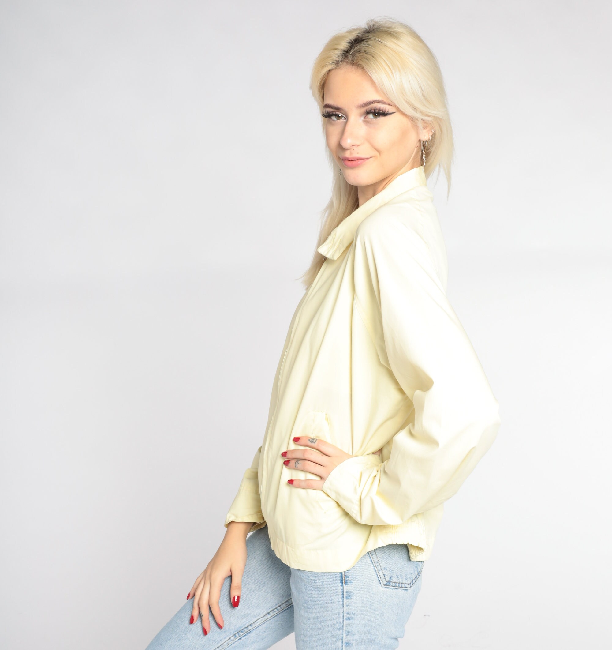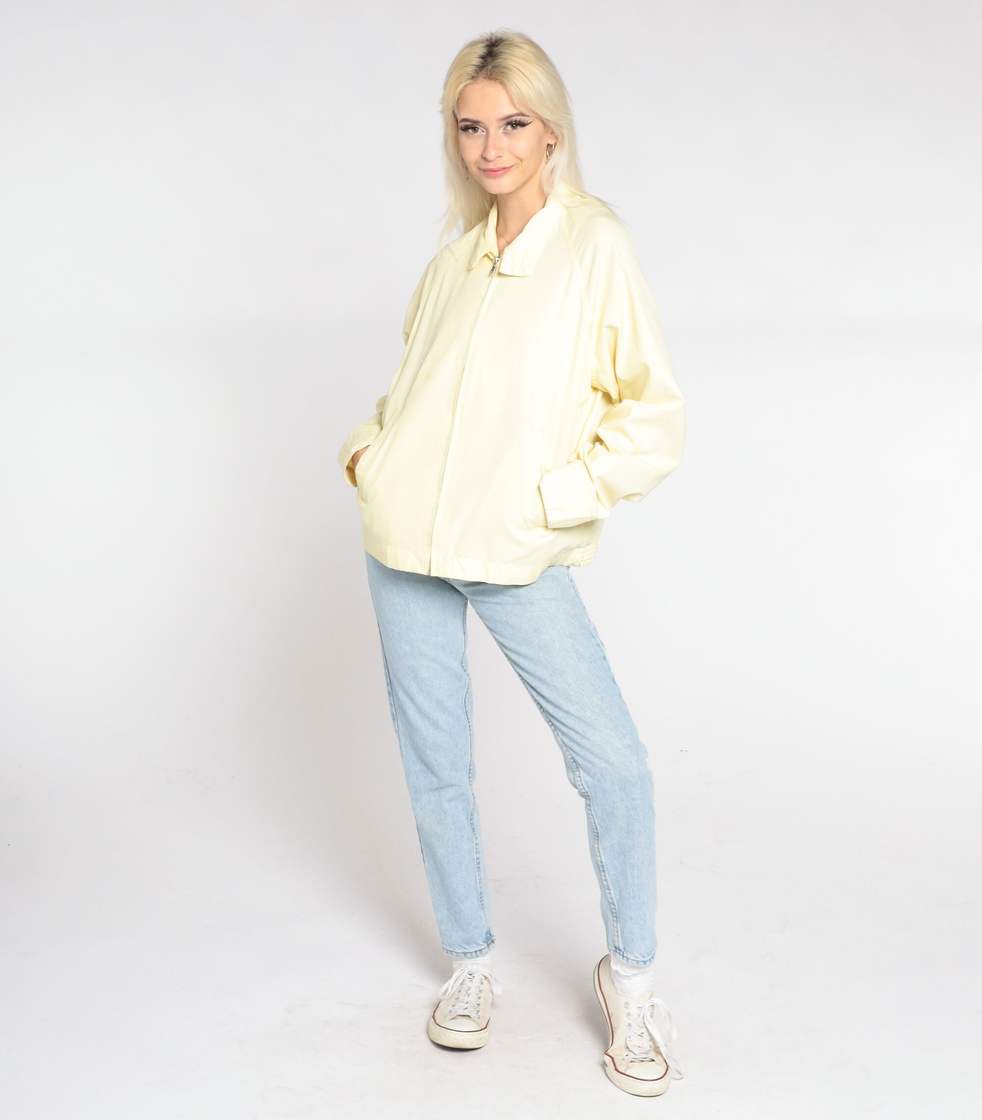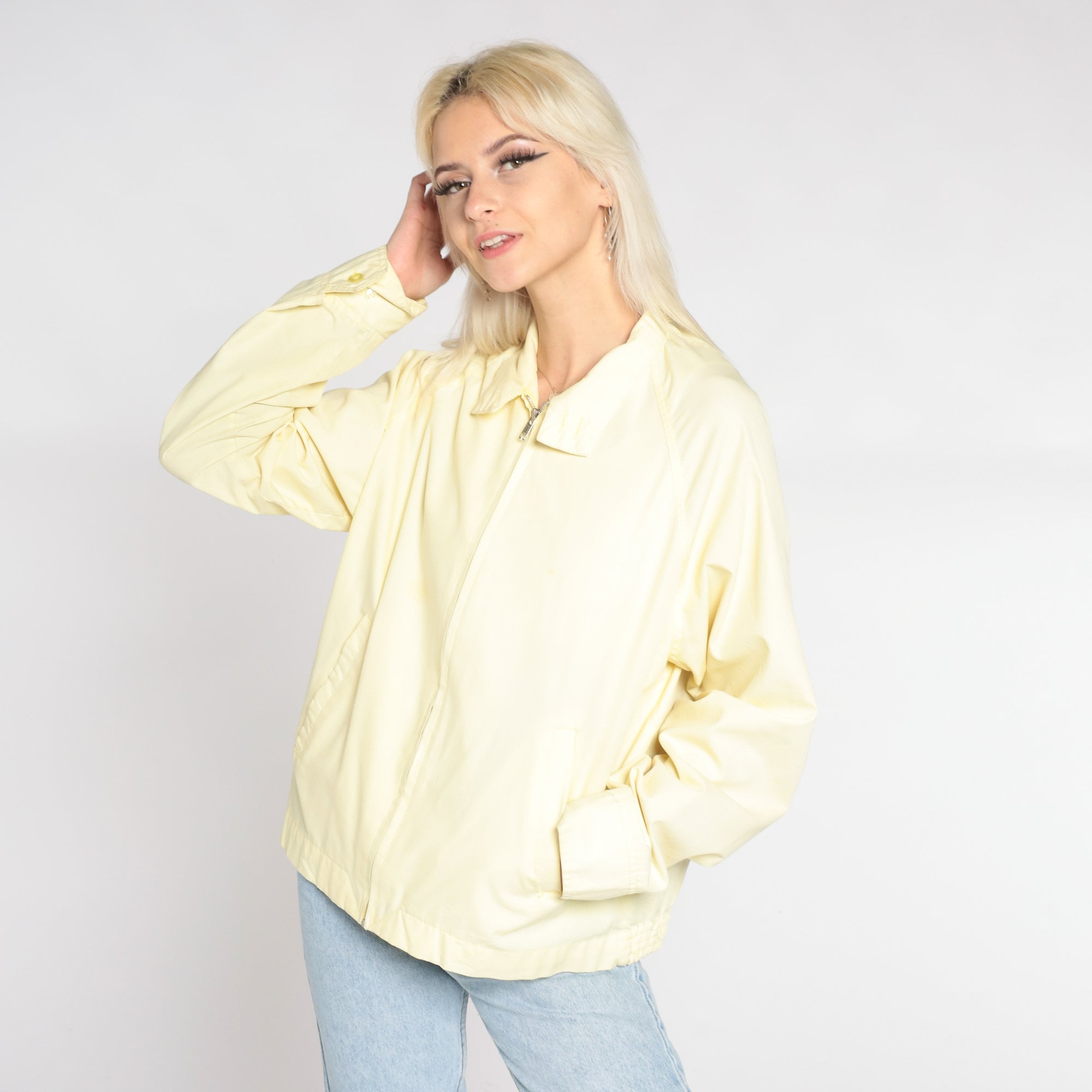 Vintage 80s jacket in yellow with a zipper up the front.