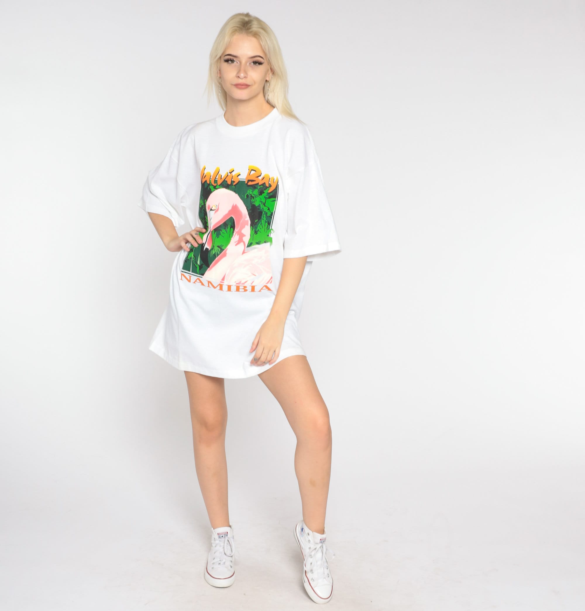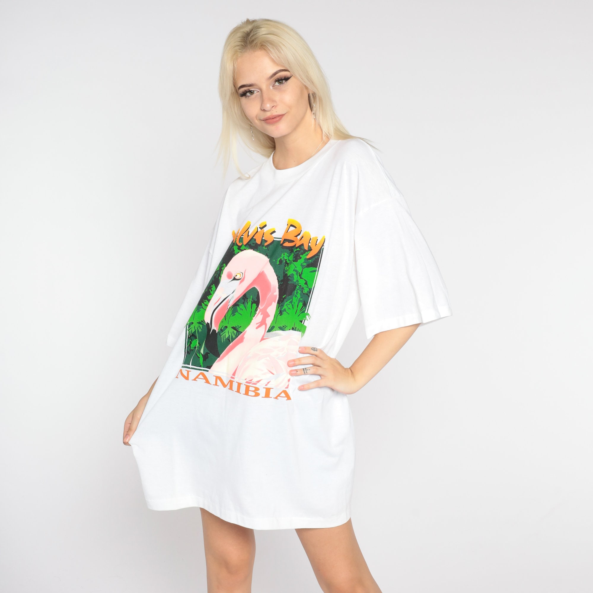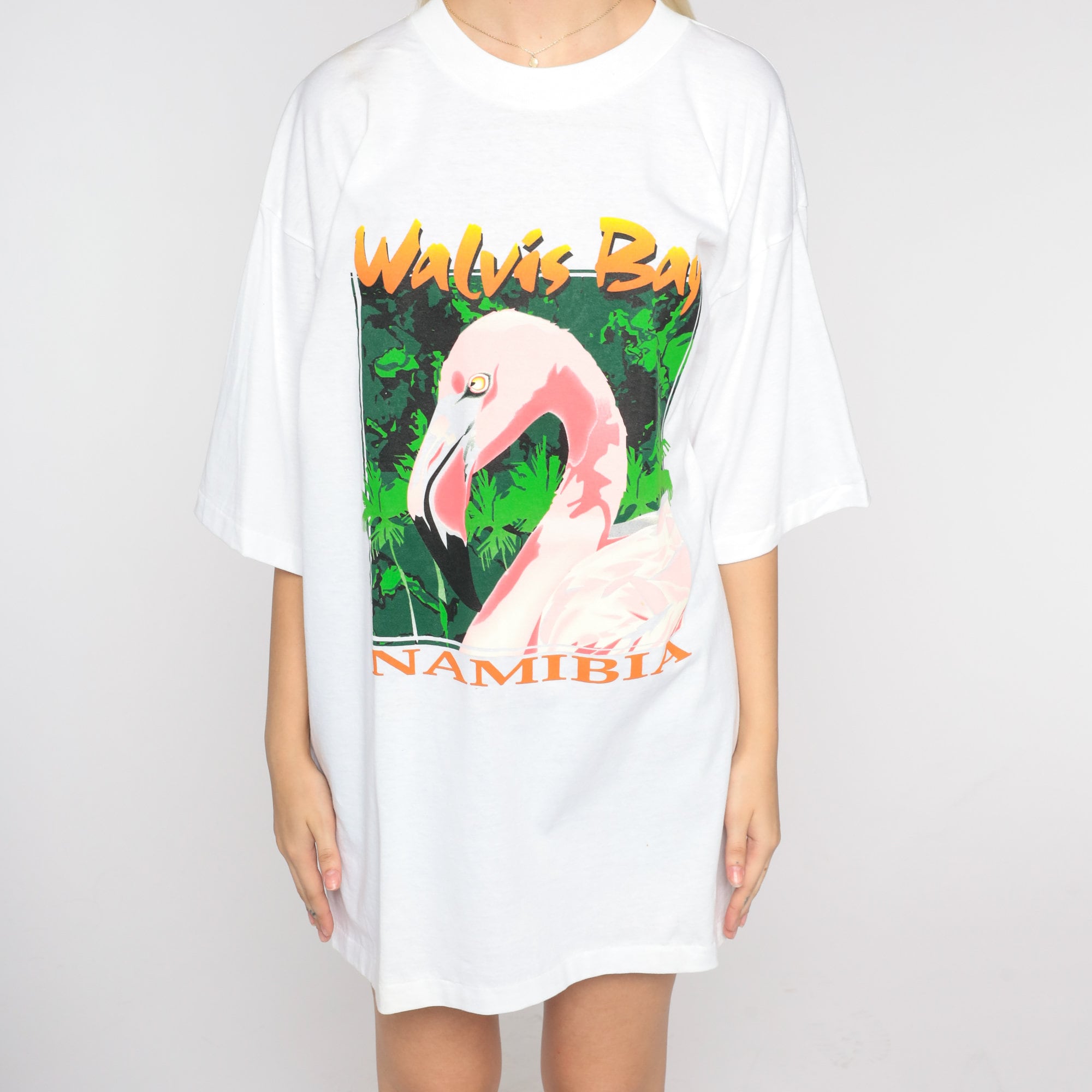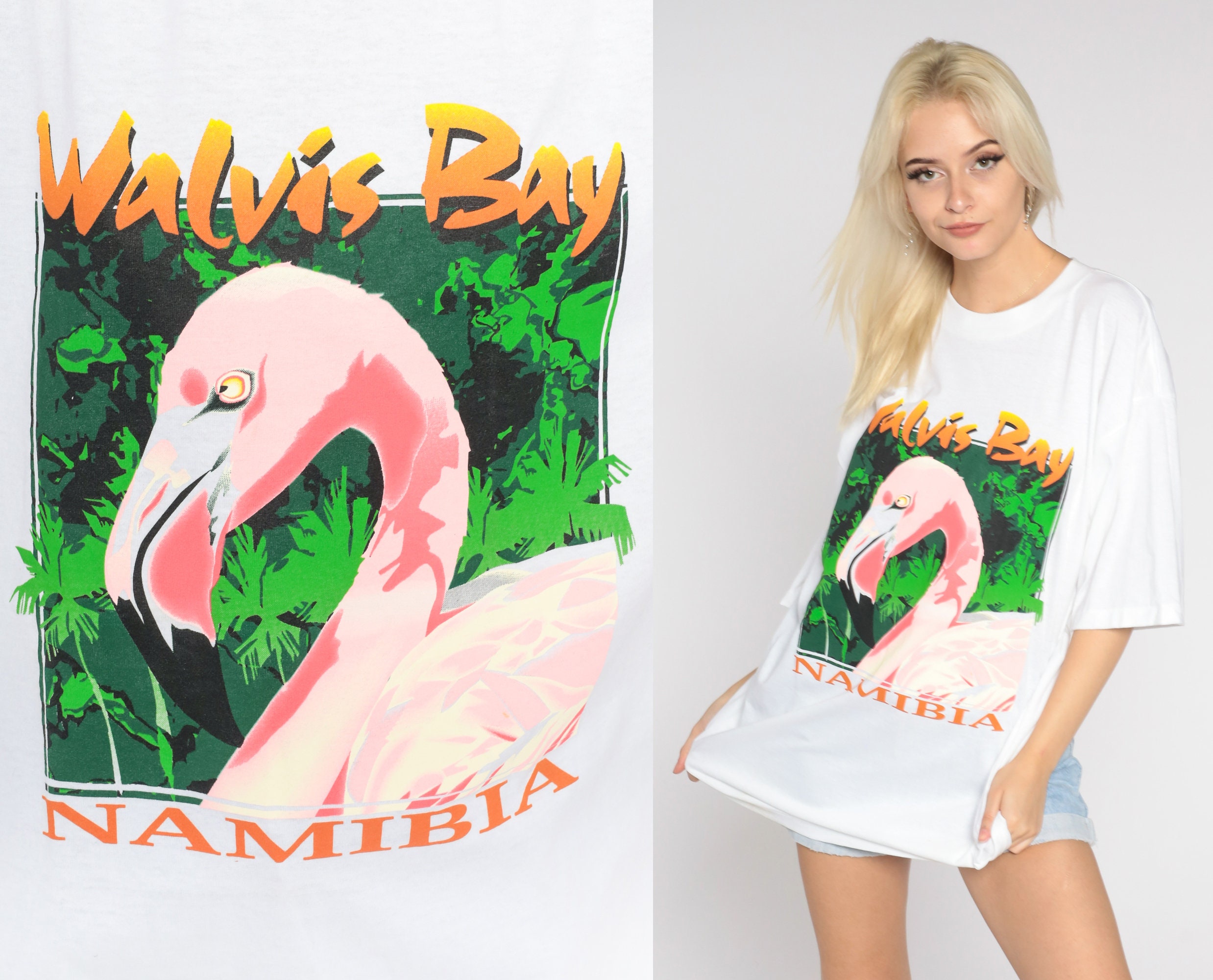 Vintage 90s t shirt with a flamingo graphic and Walvis Bay, Namibia on the front.