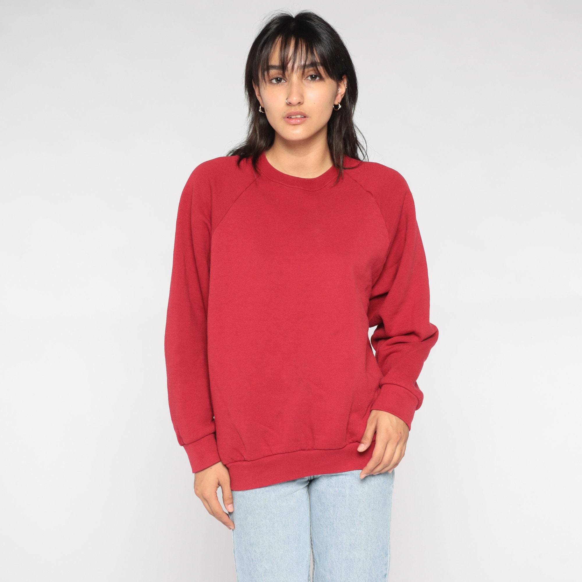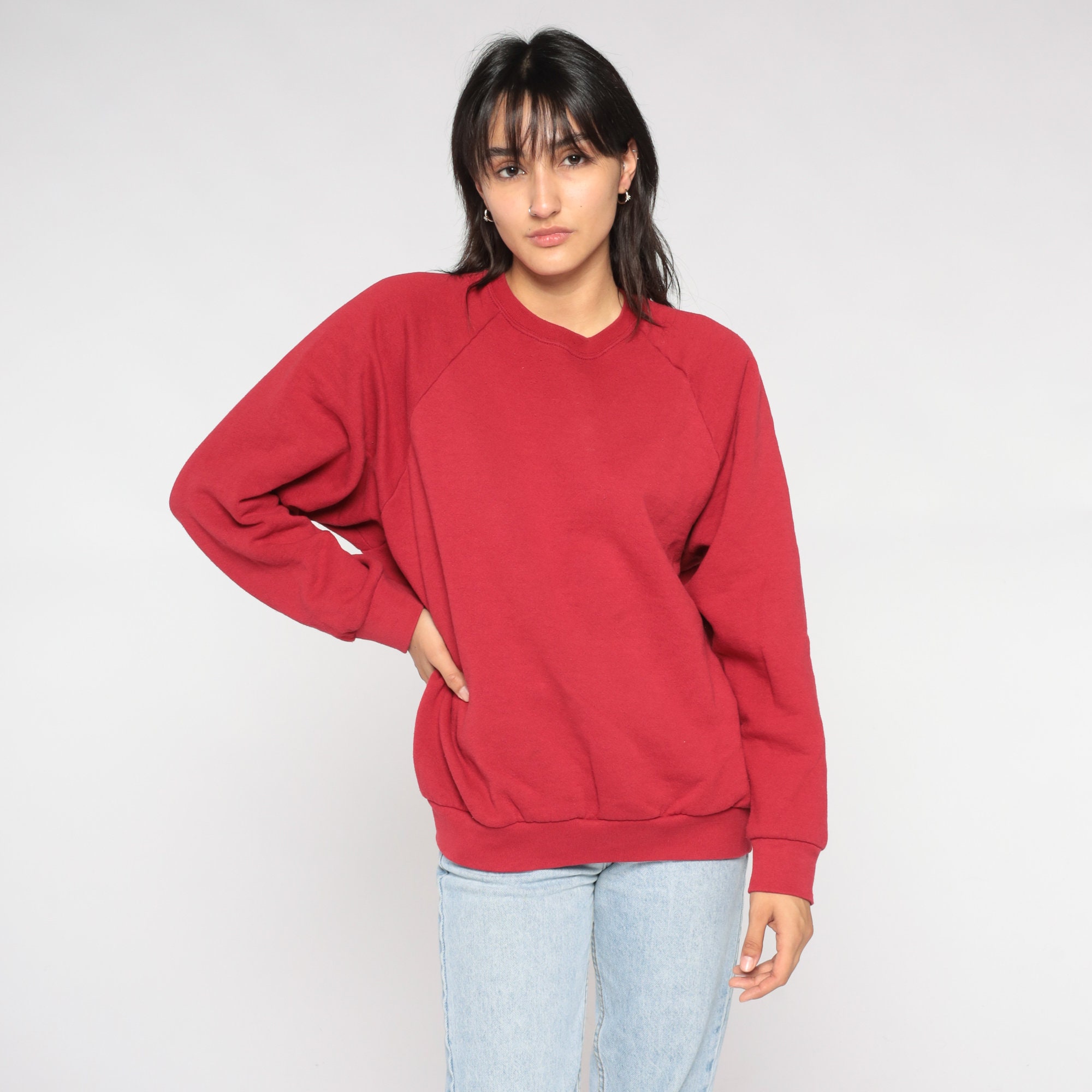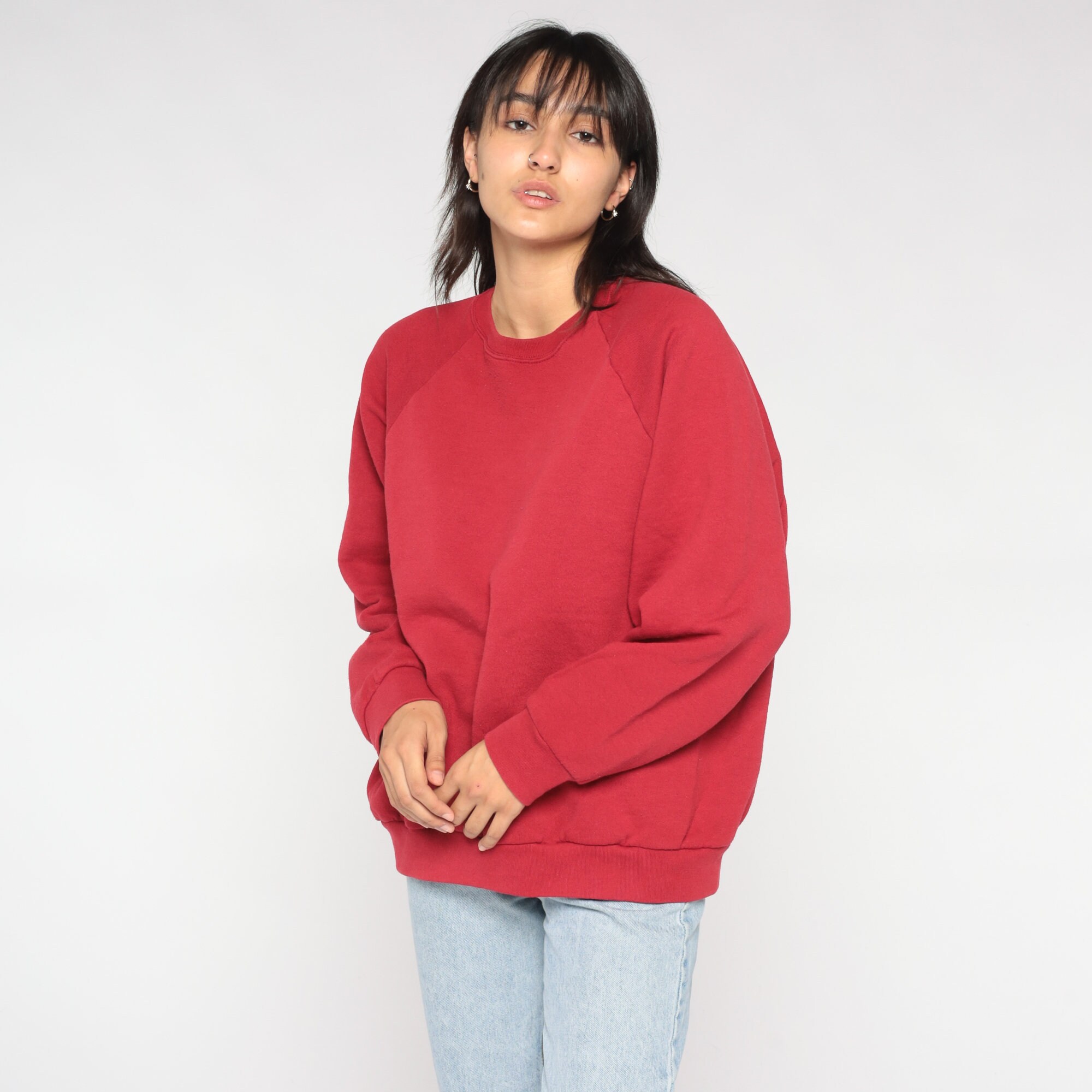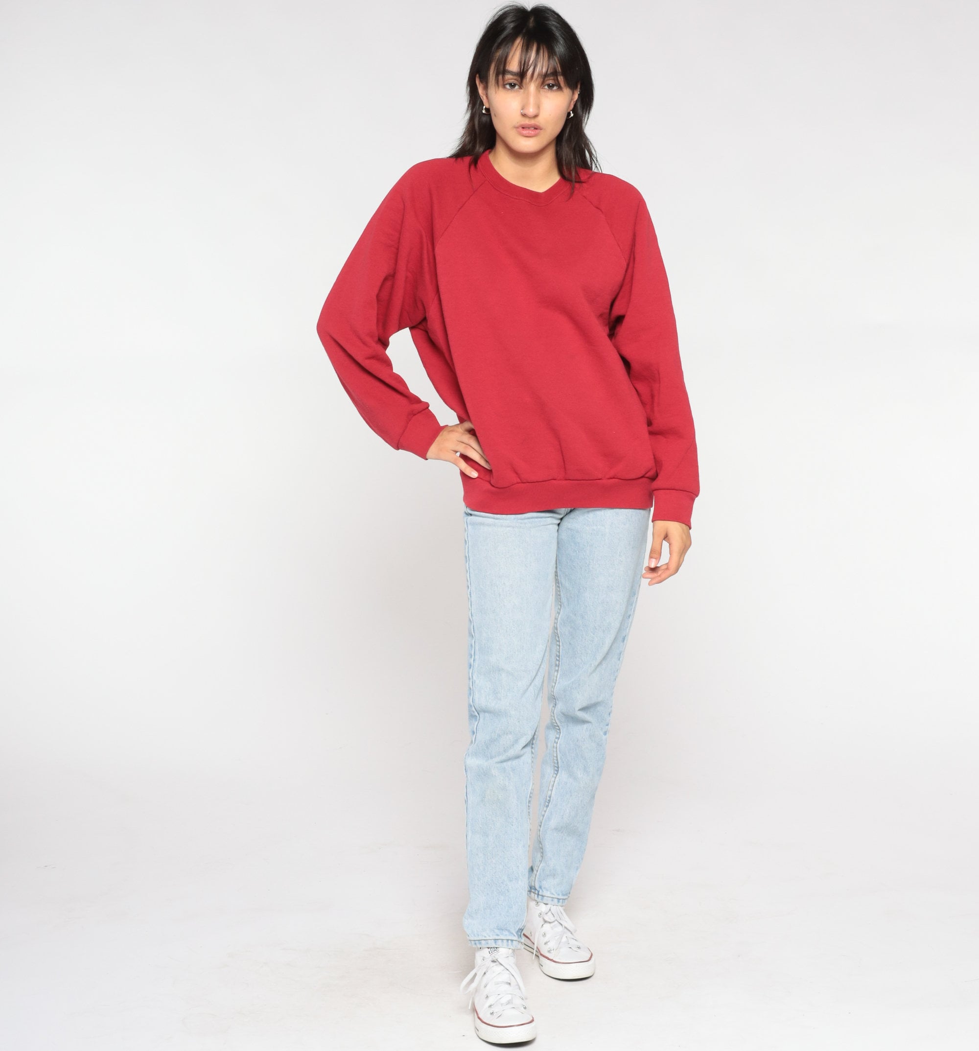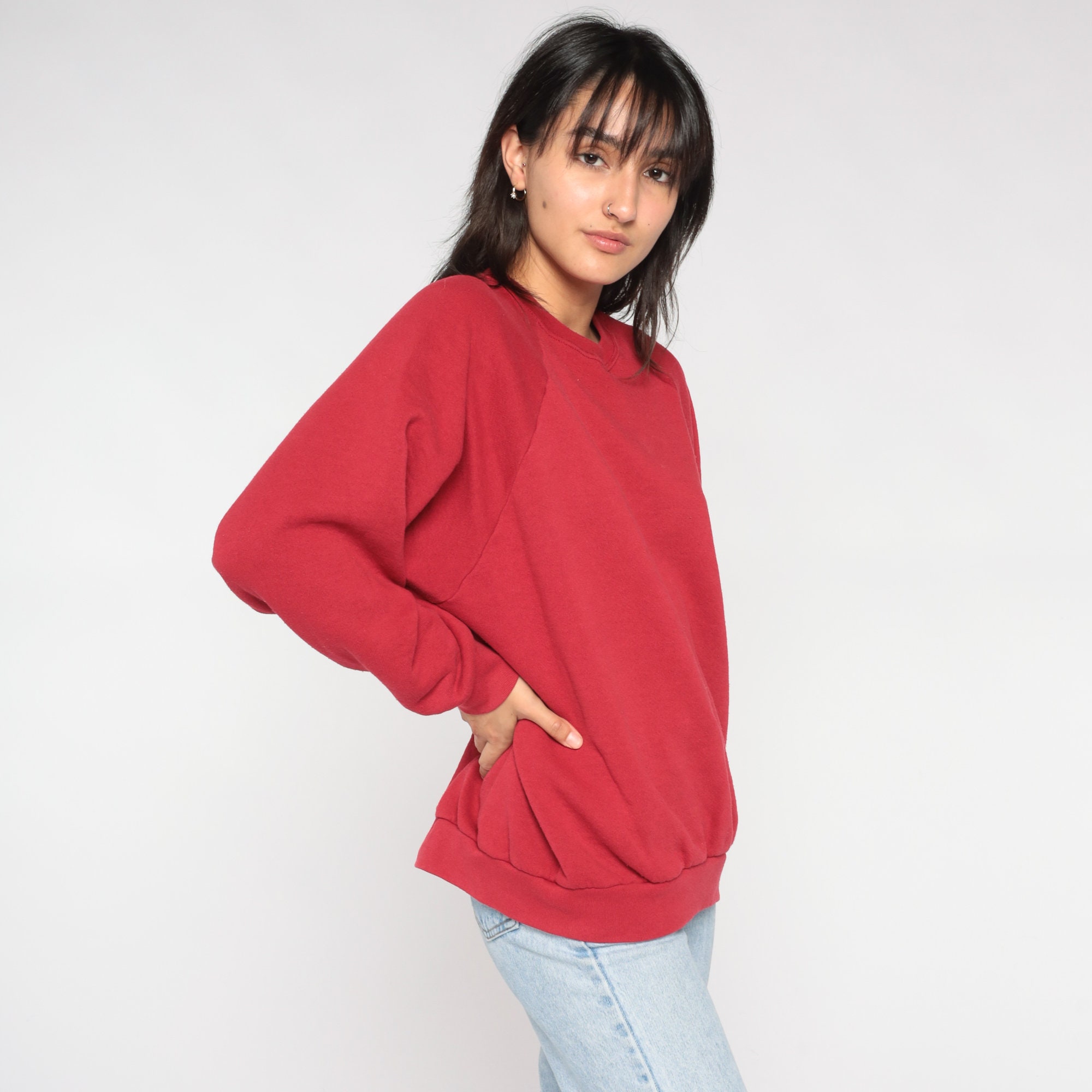 Vintage 00s sweatshirt in red with raglan sleeves. Slouchy fit.