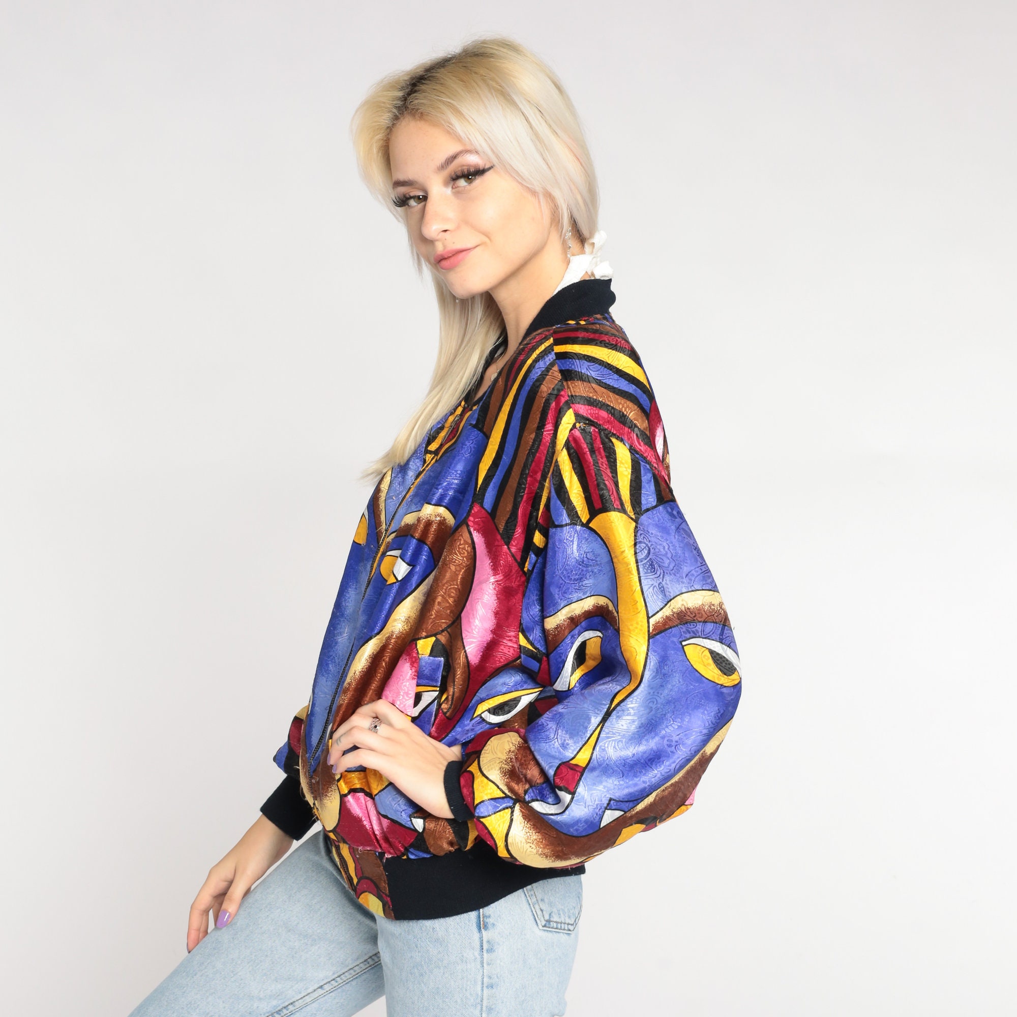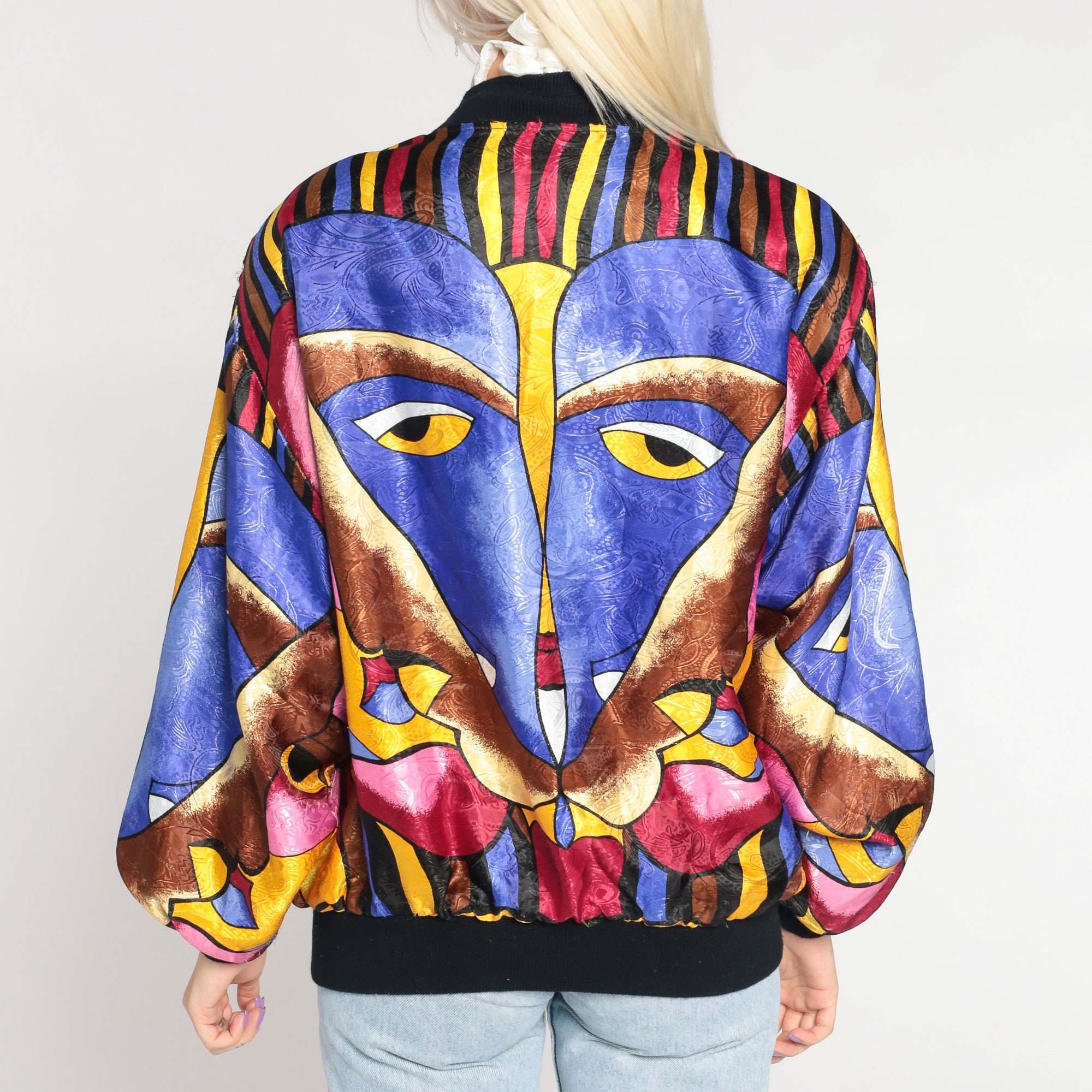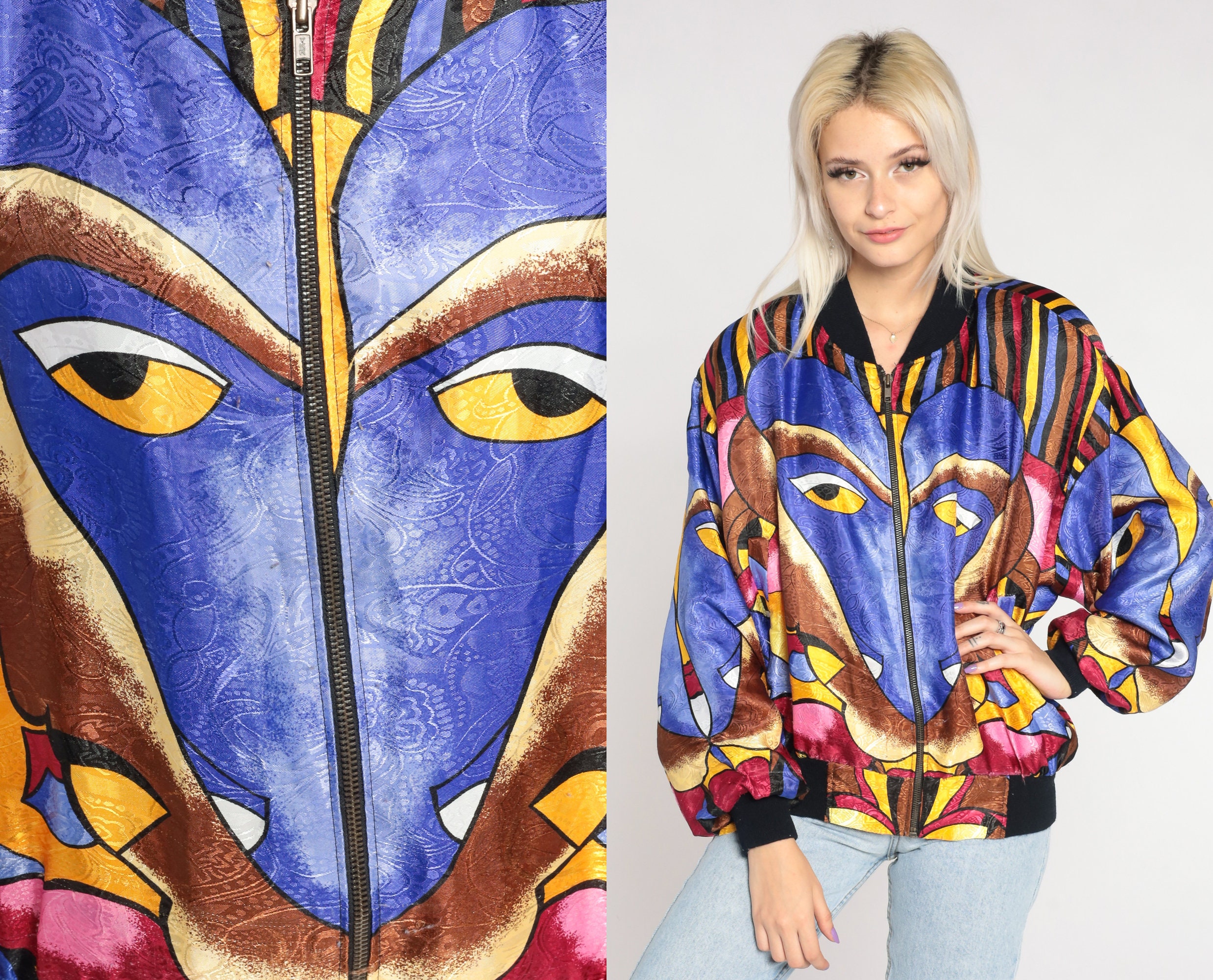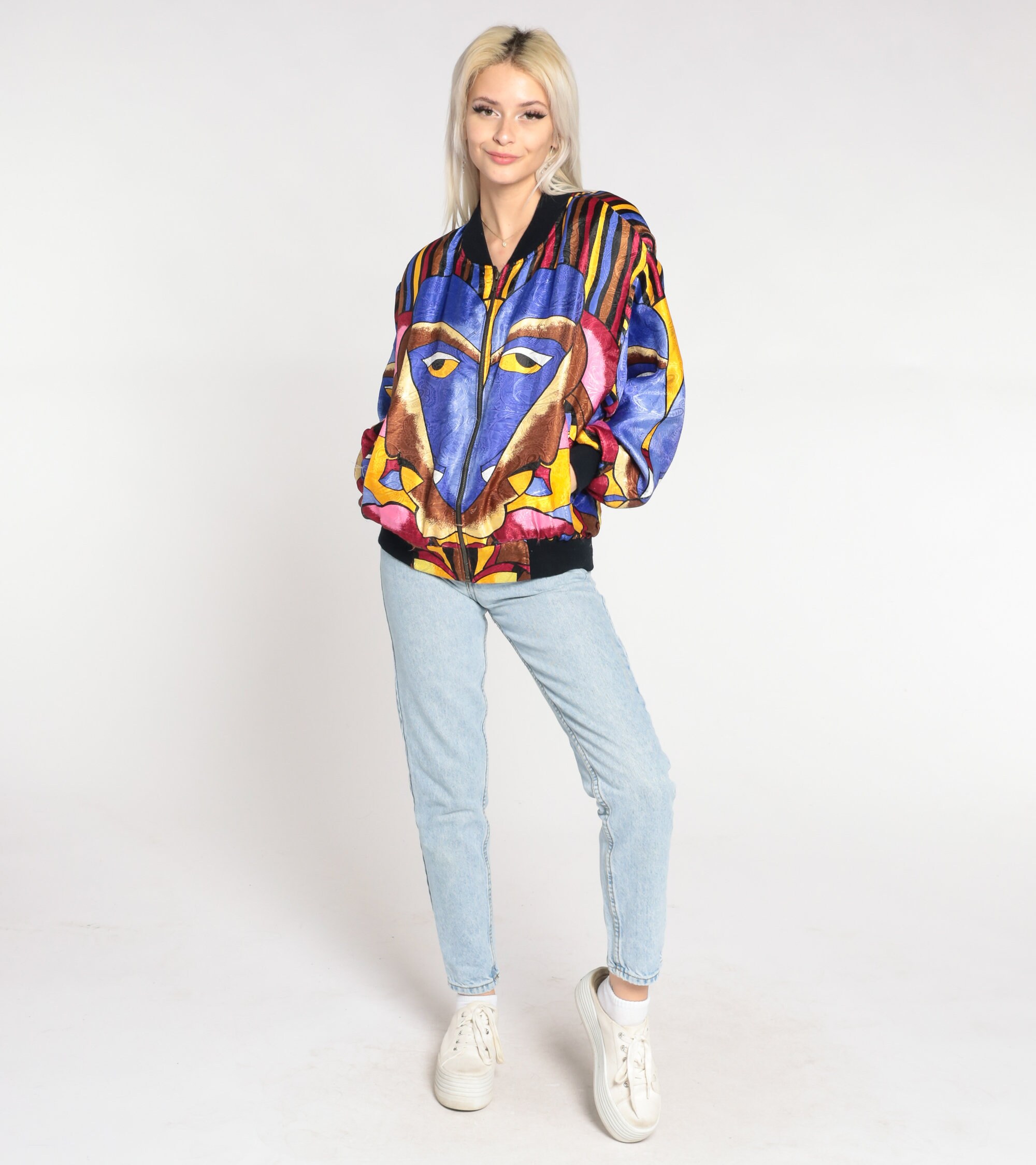 Vintage 90s jacket with a Psychedelic face print and a zipper up the front.