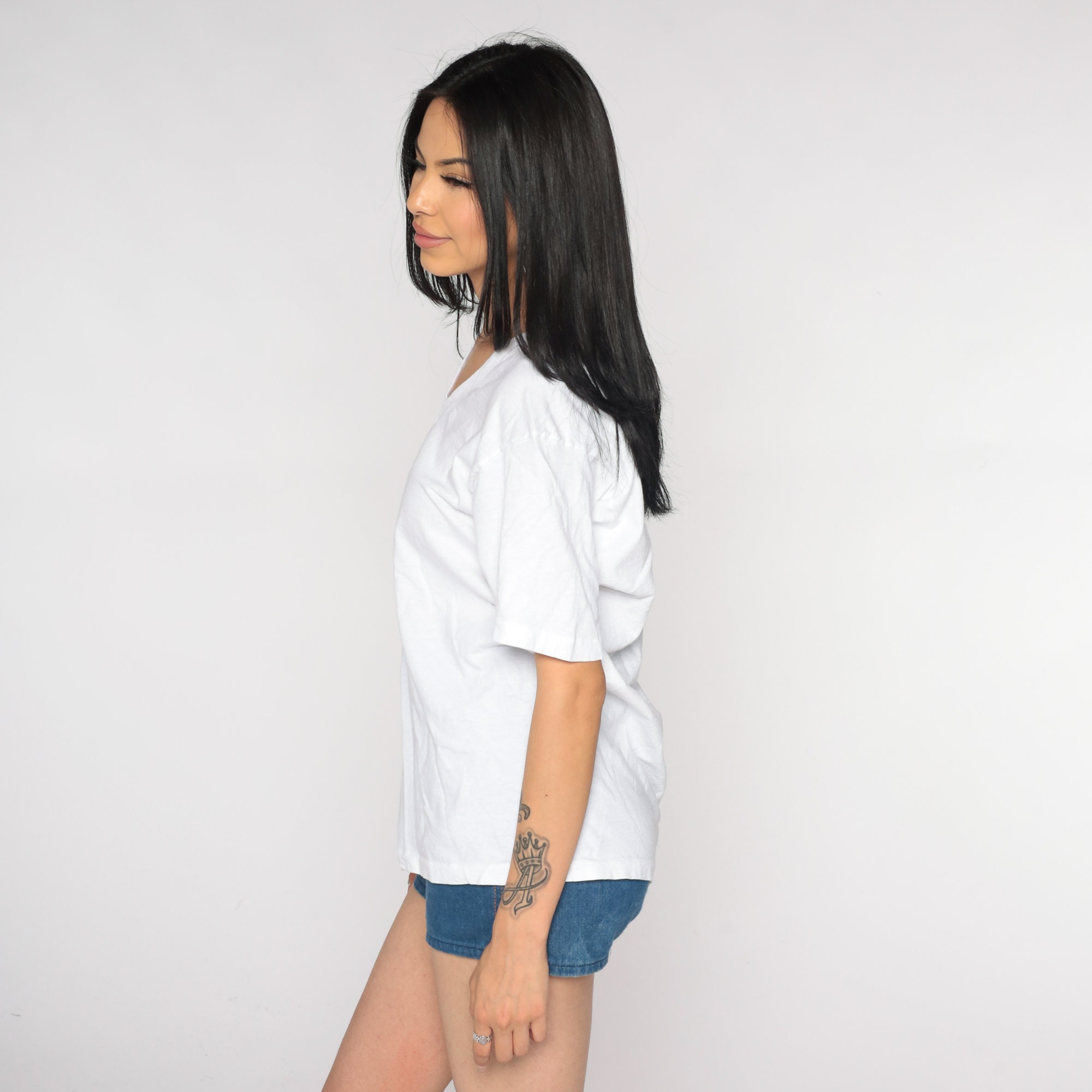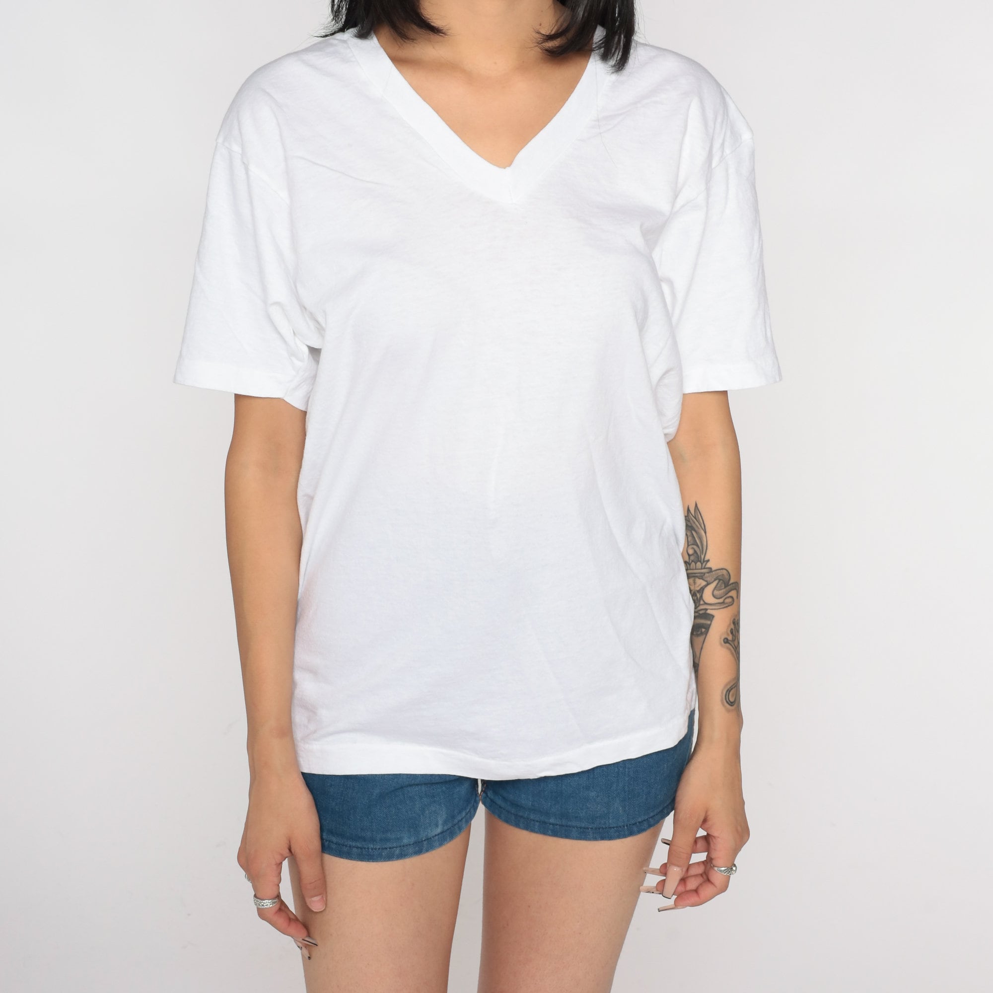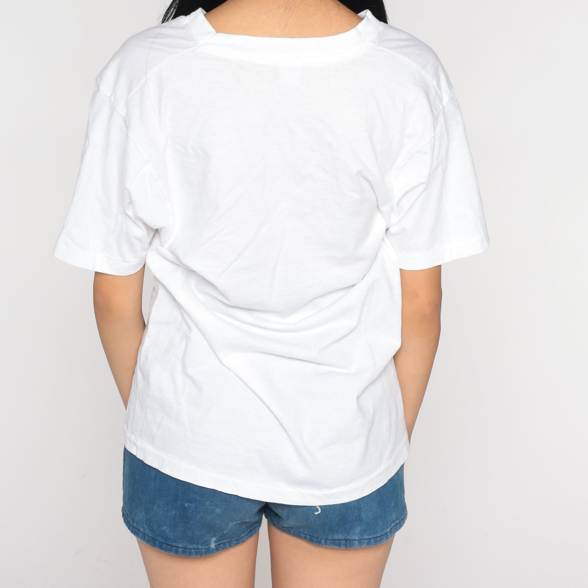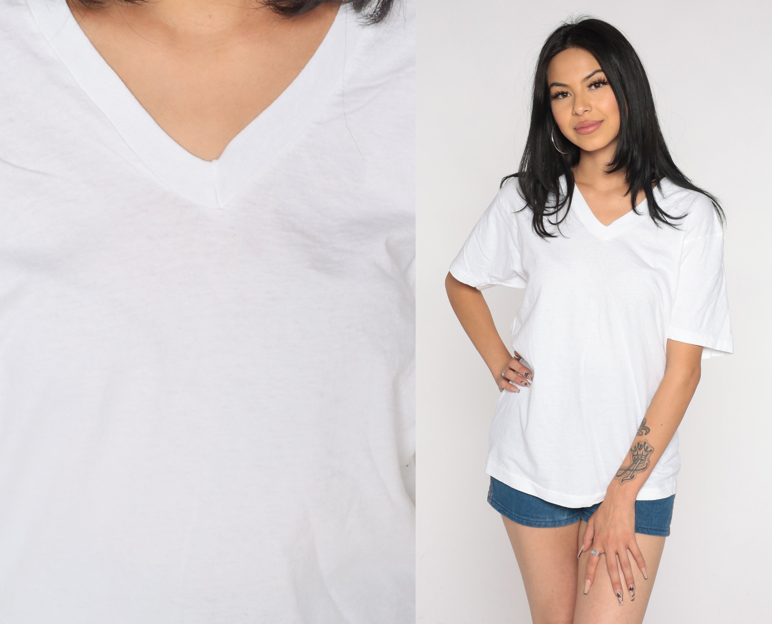 Vintage 90s t shirt in white cotton with a v neck.