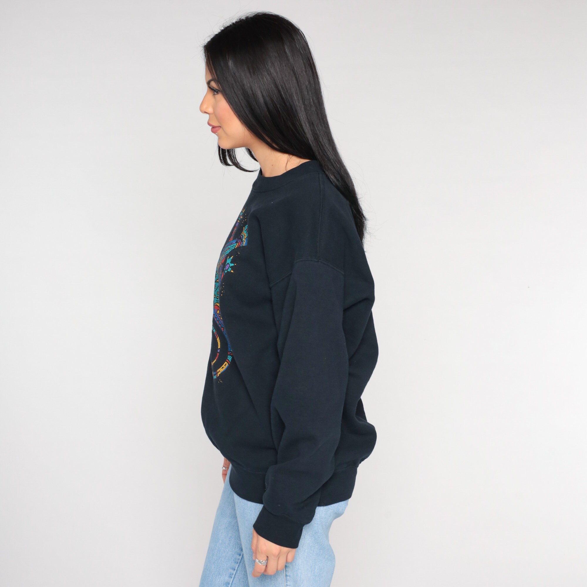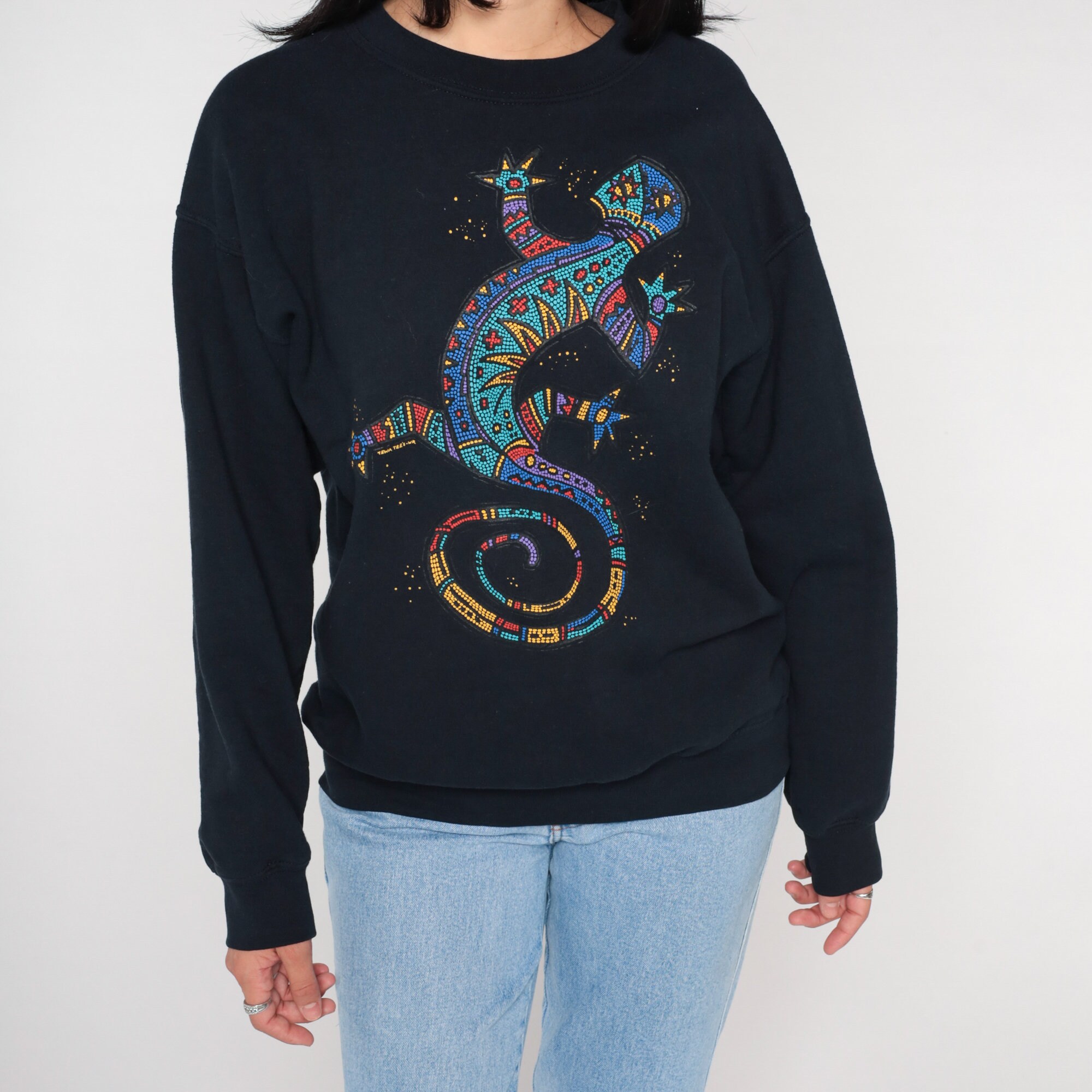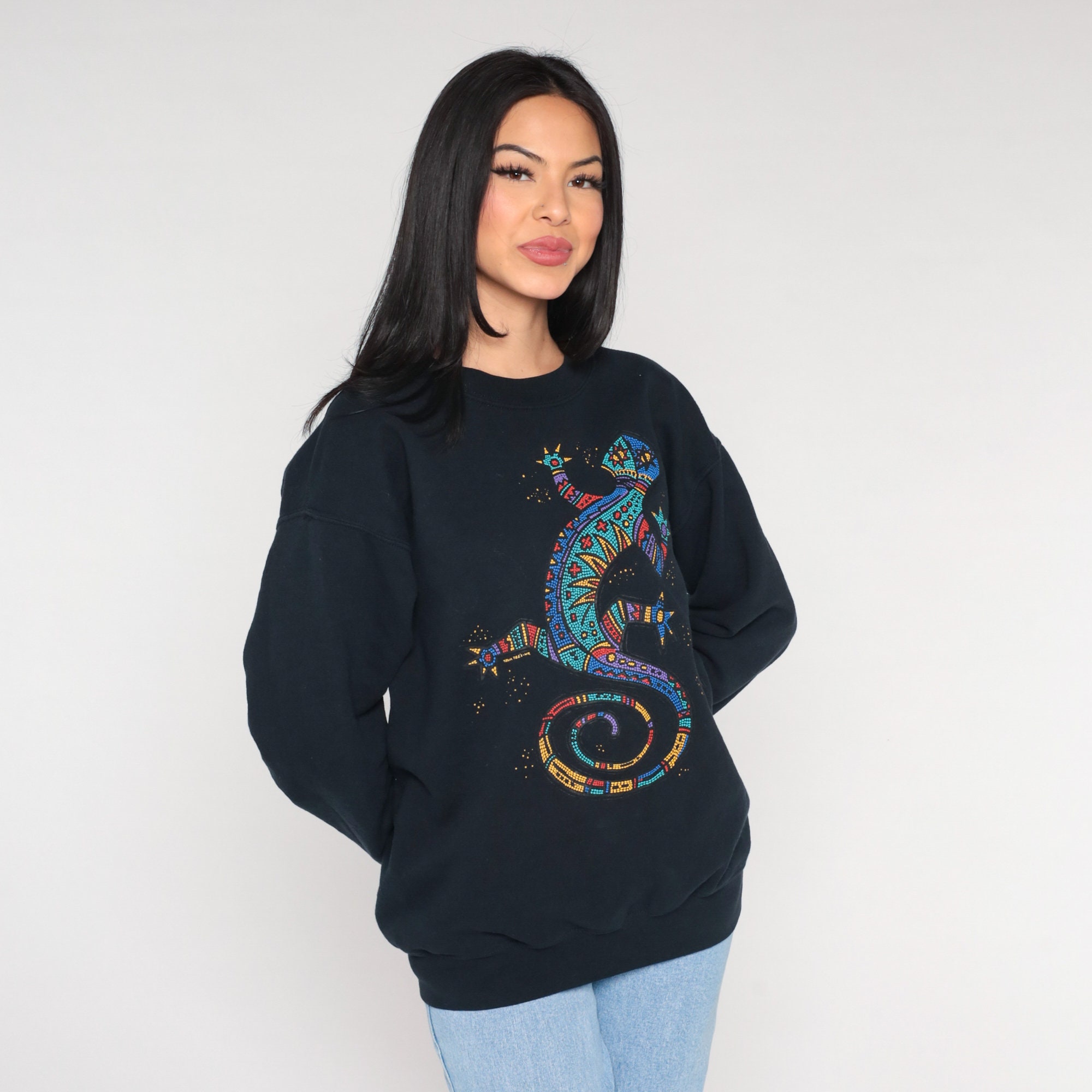 Y2k sweatshirt in black by Tewa Tees with a lizard or gecko print on the front.