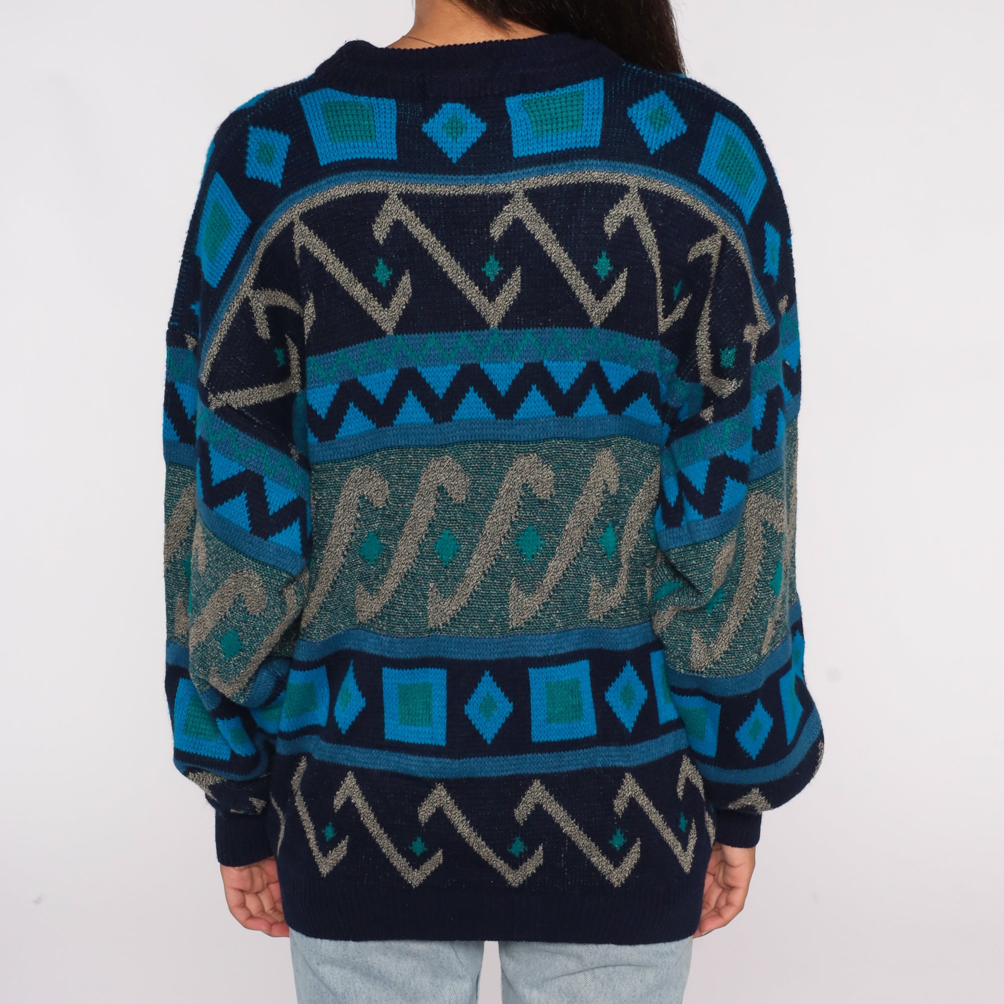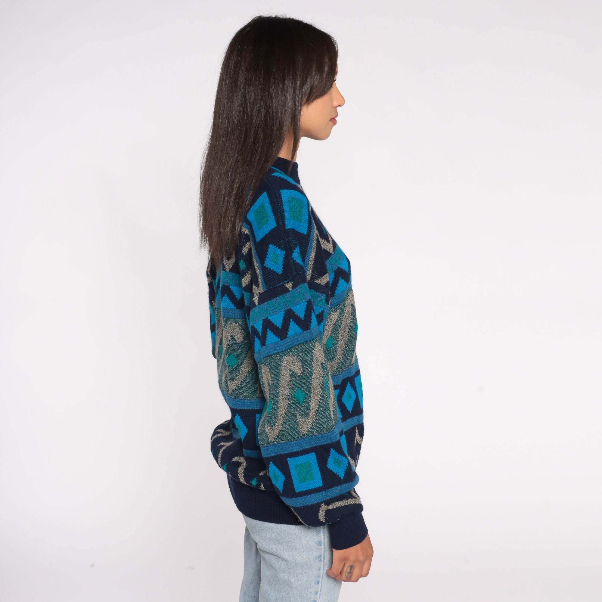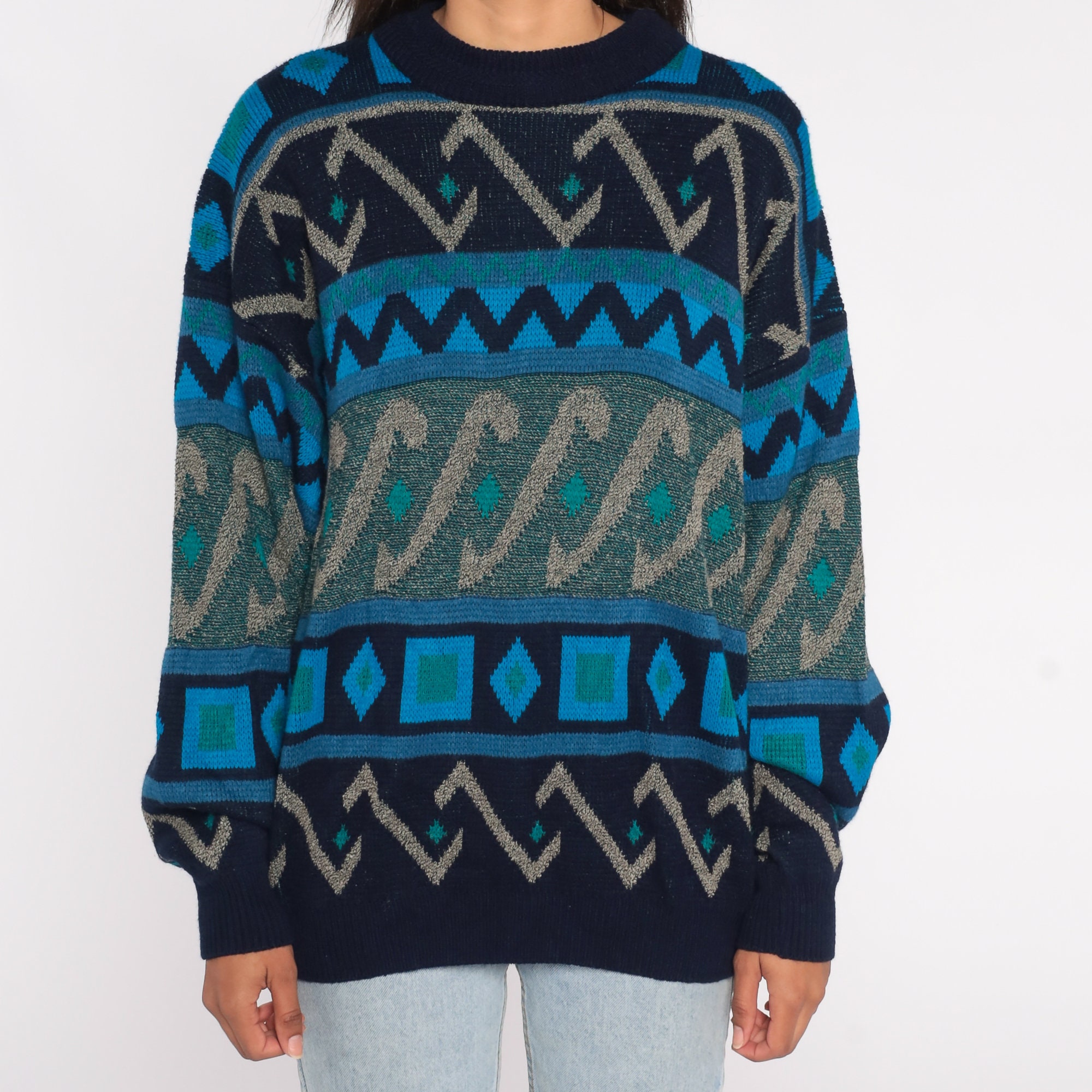 Vintage 90s sweater with a geometric striped print. Slouchy fit.