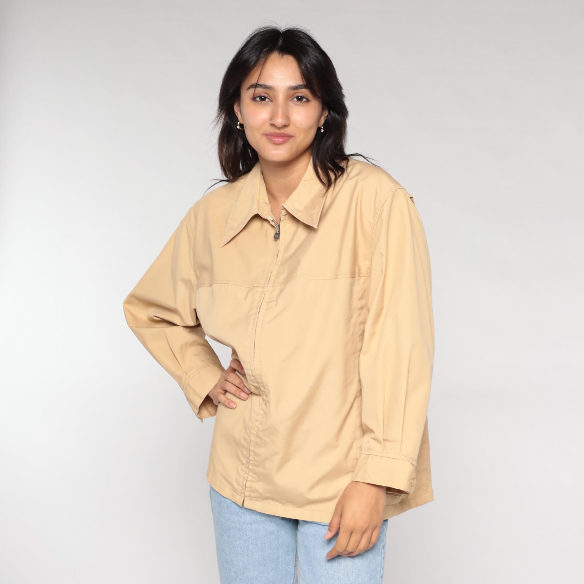 Vintage 70s jacket by Arnold Palmer in tan with a full zip.