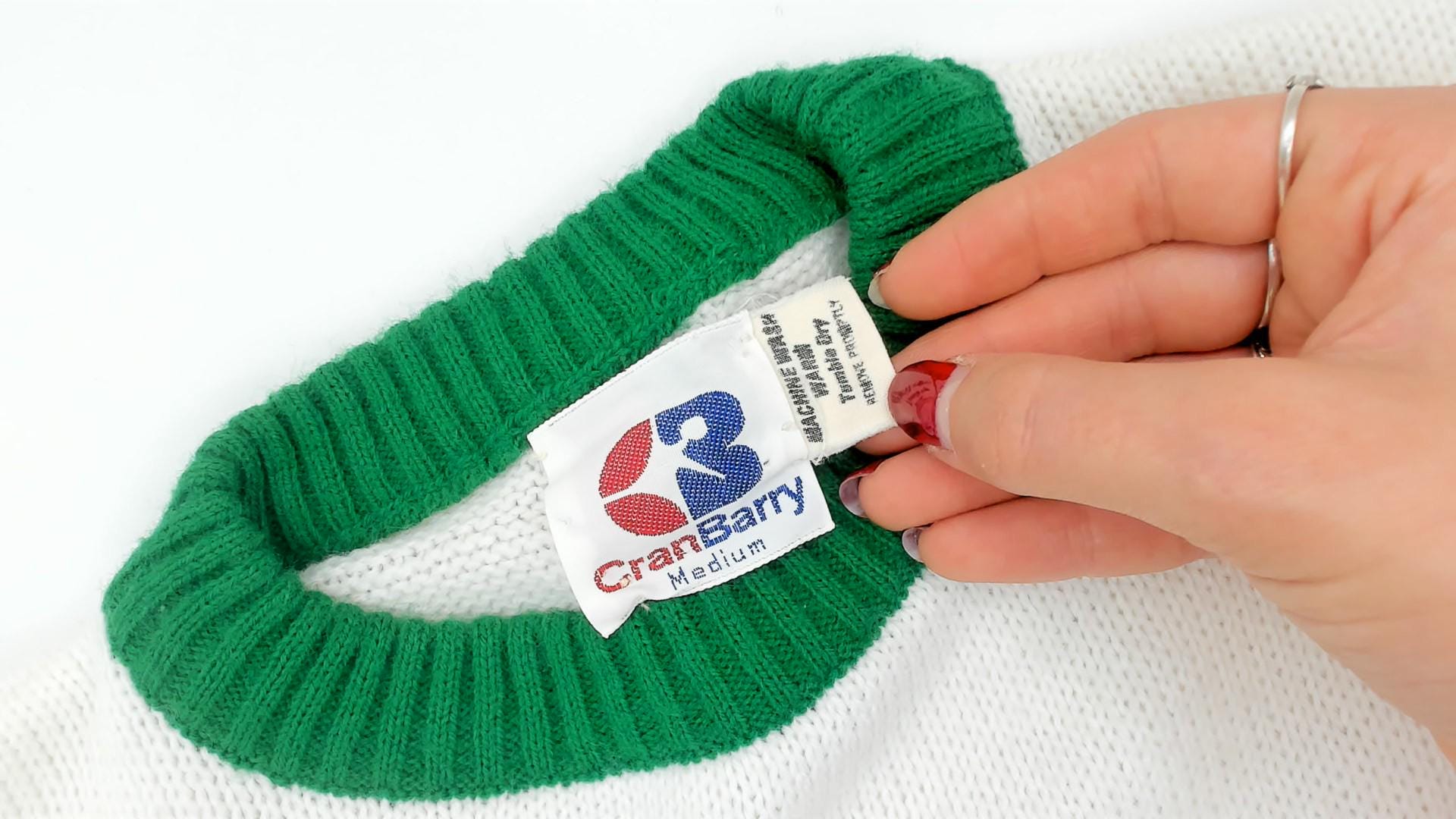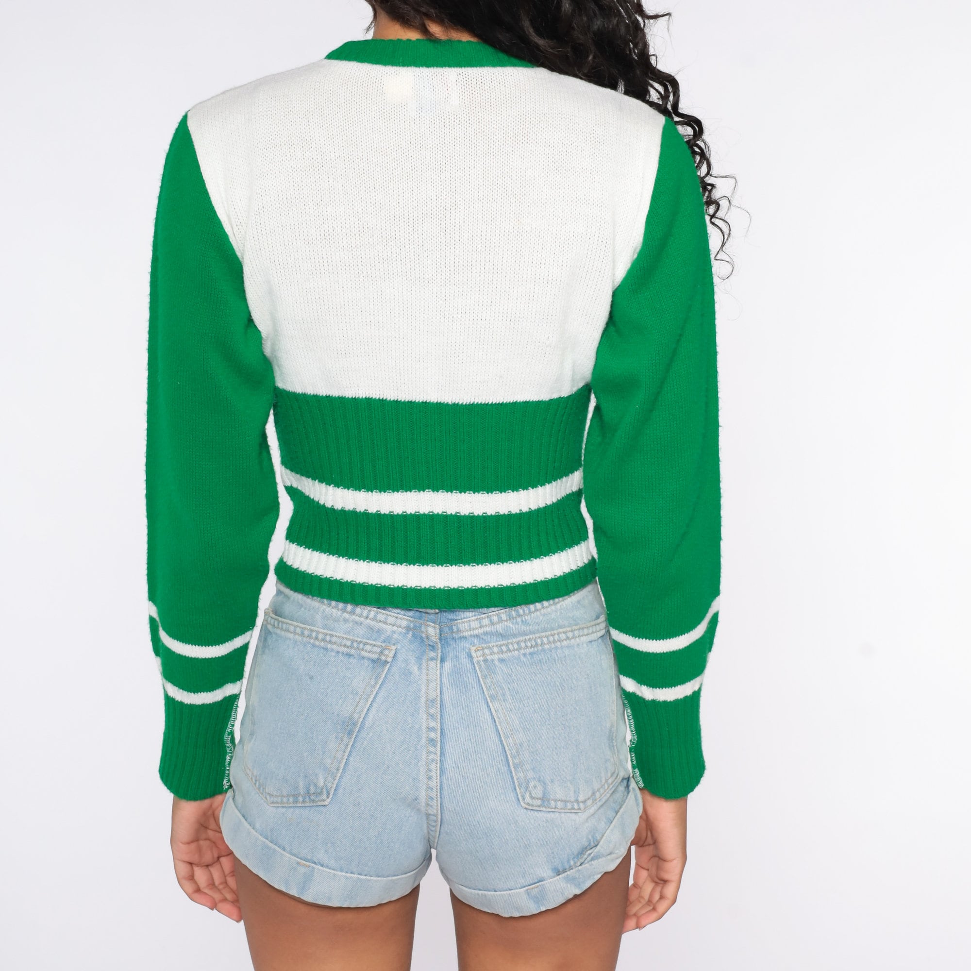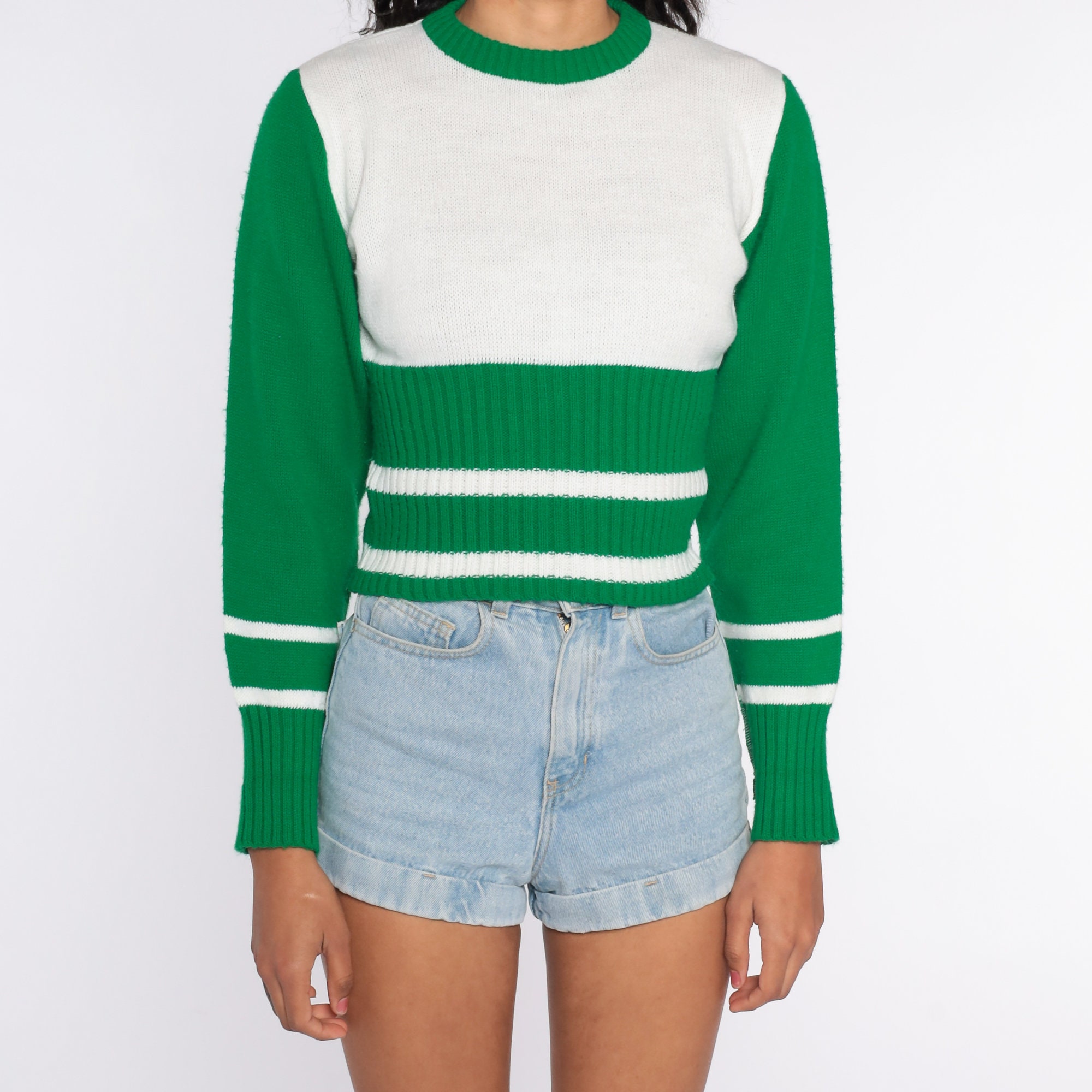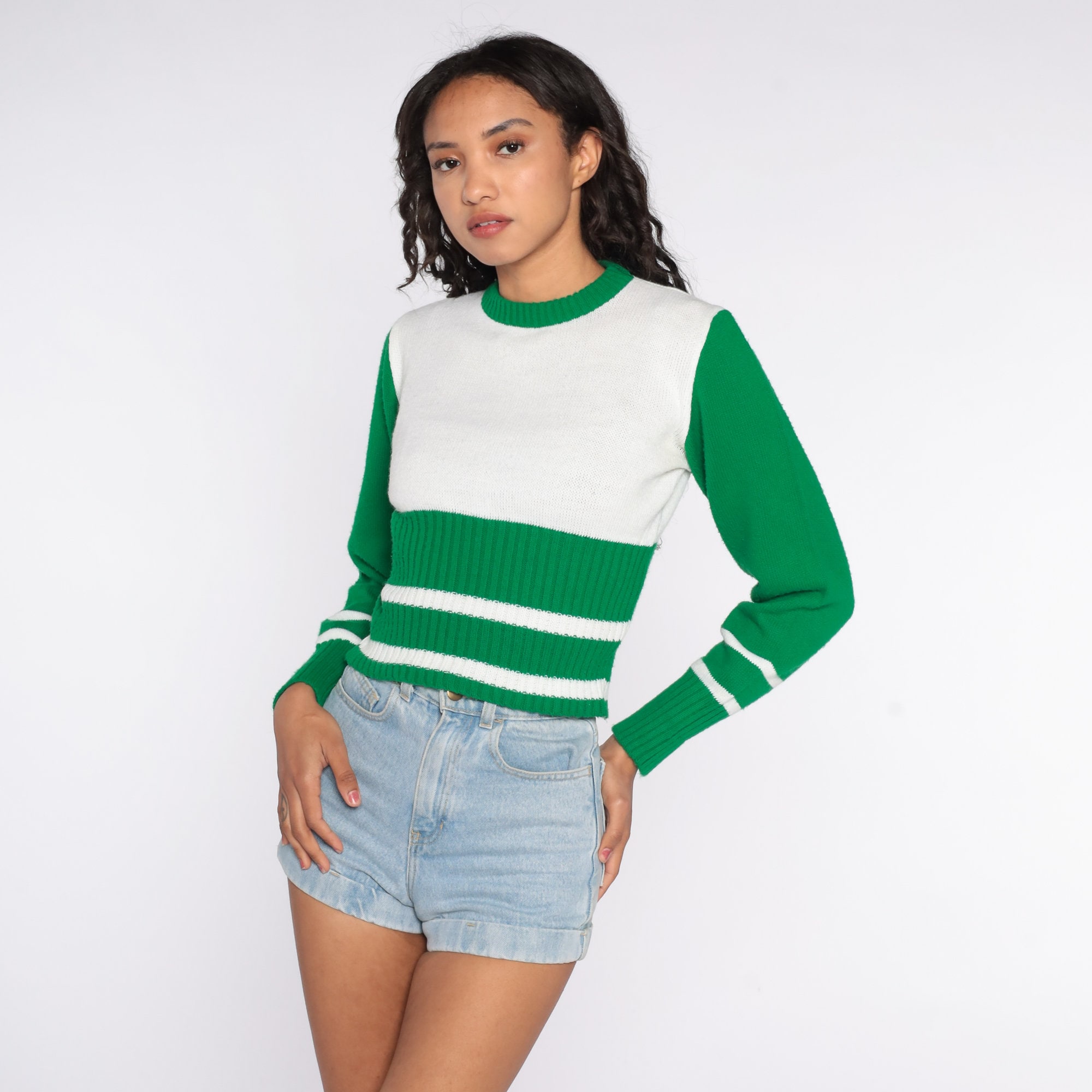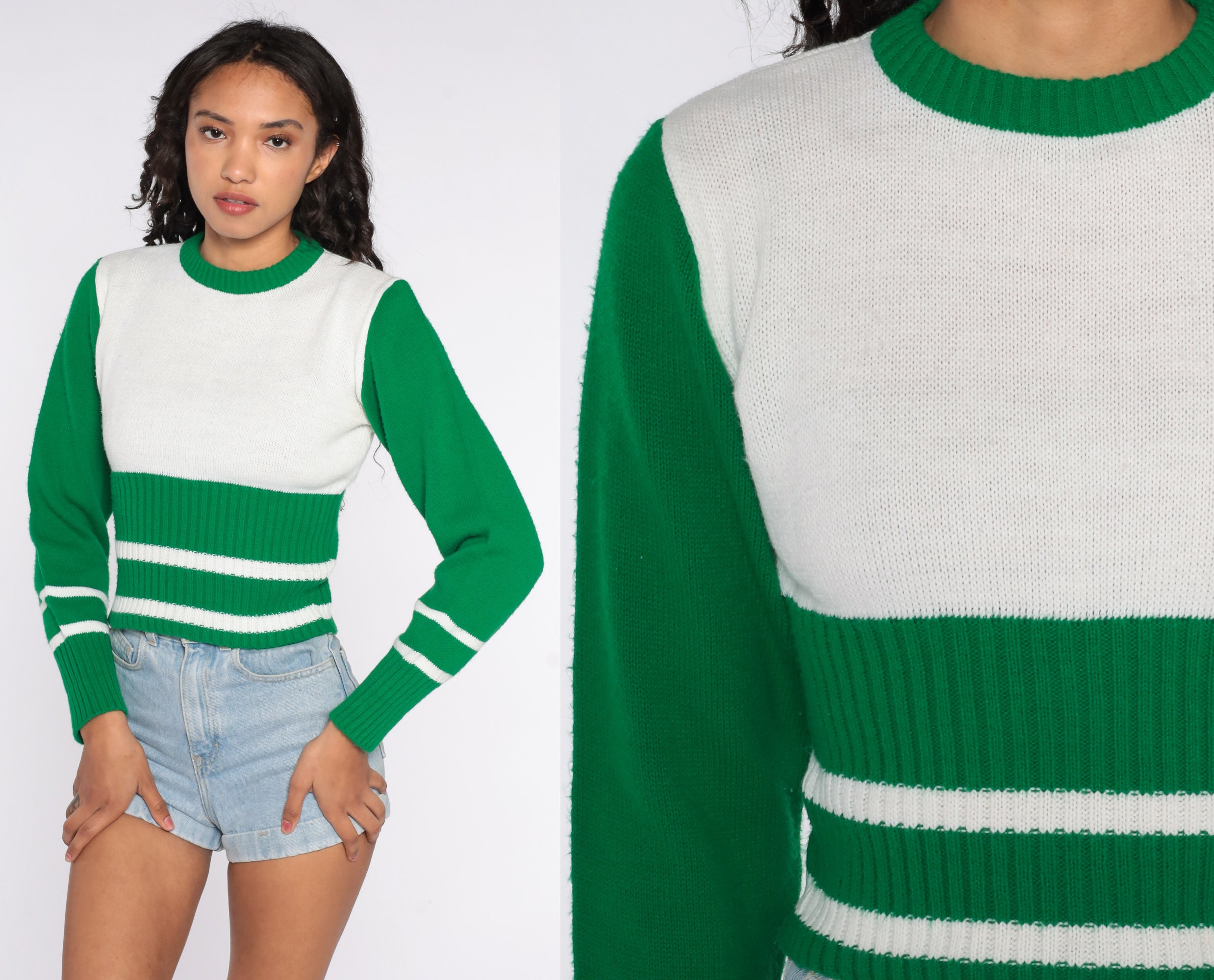 Vintage 70s sweater in white and green stripes.