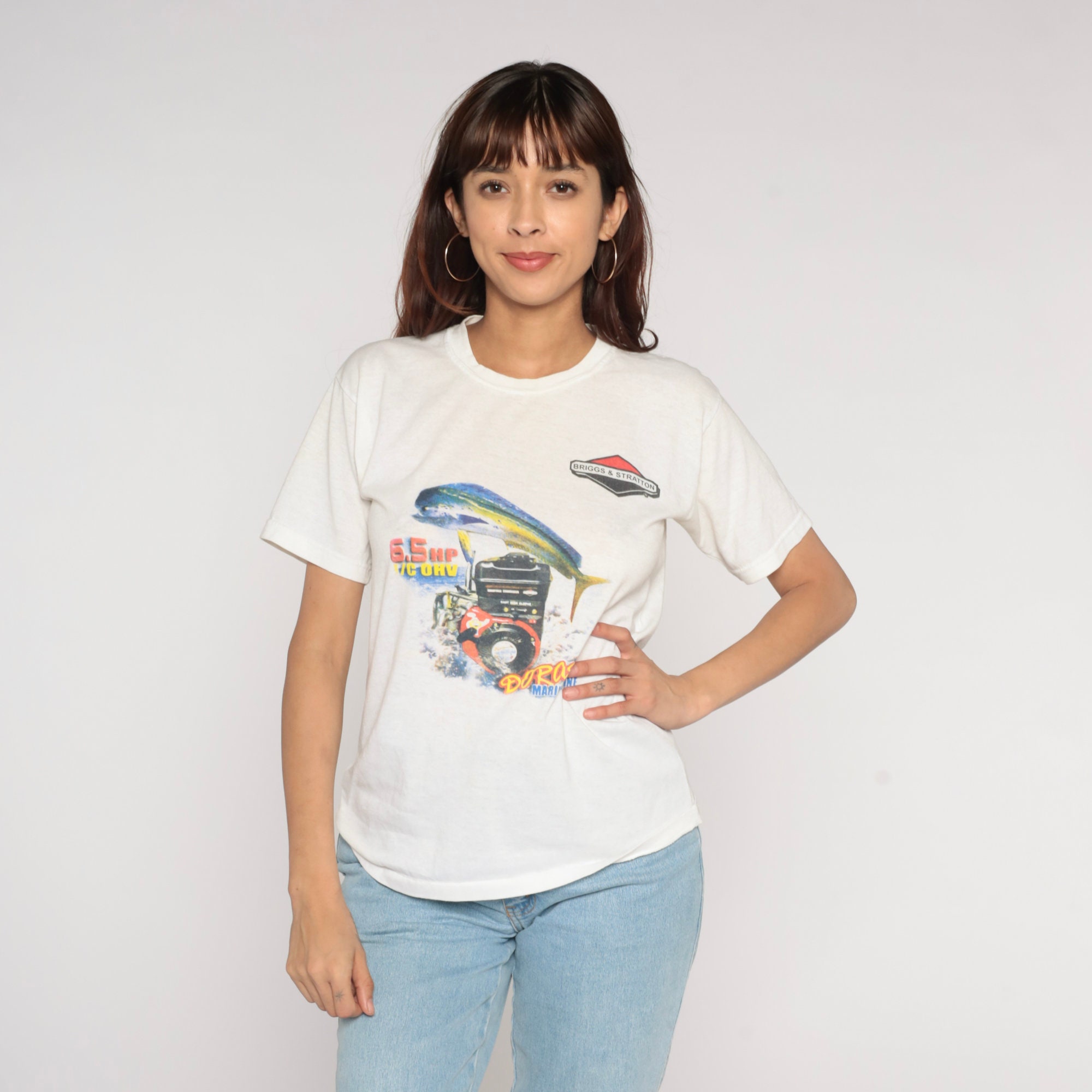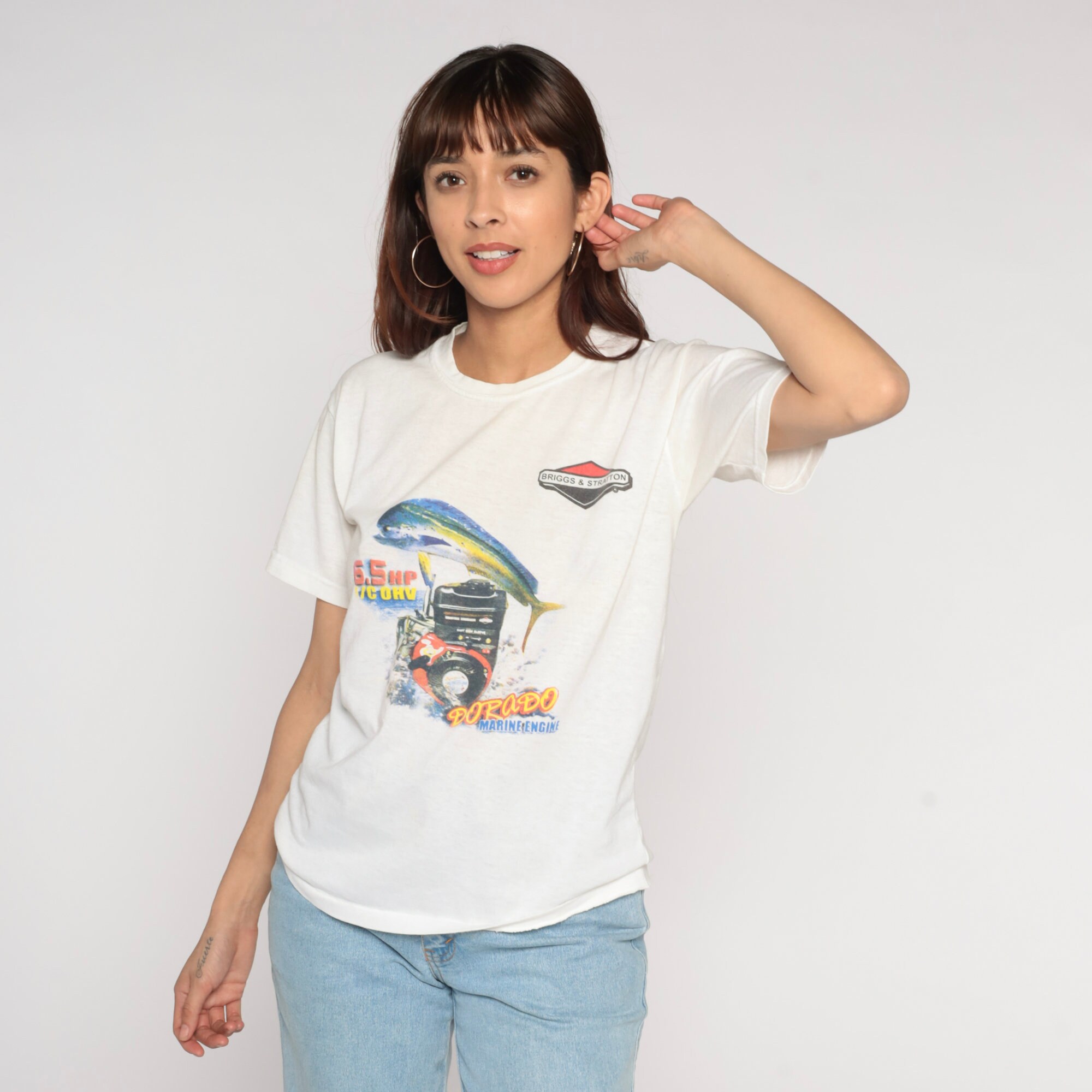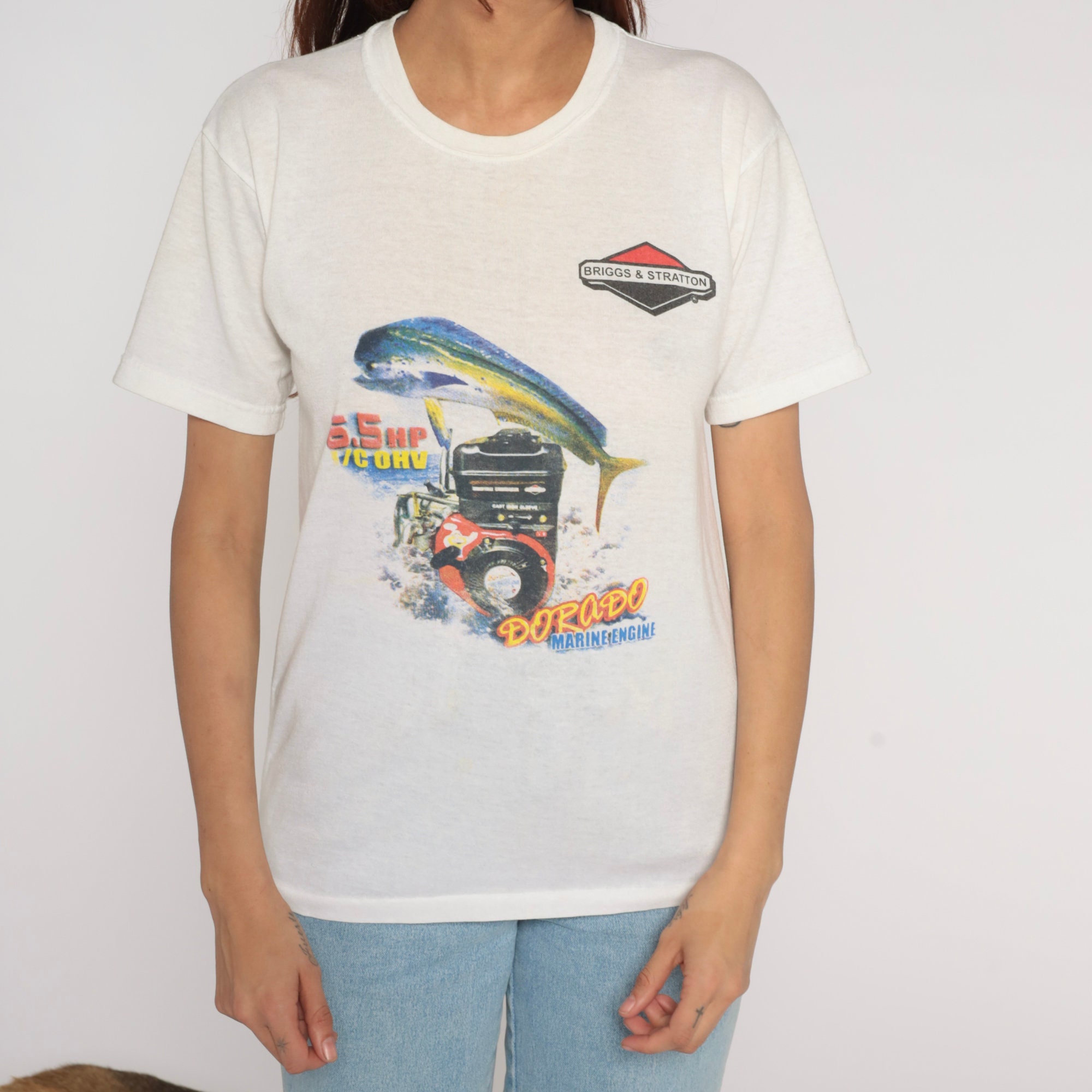 Vintage 90s t-shirt with a Briggs & Stratton Dorado machine engine print.