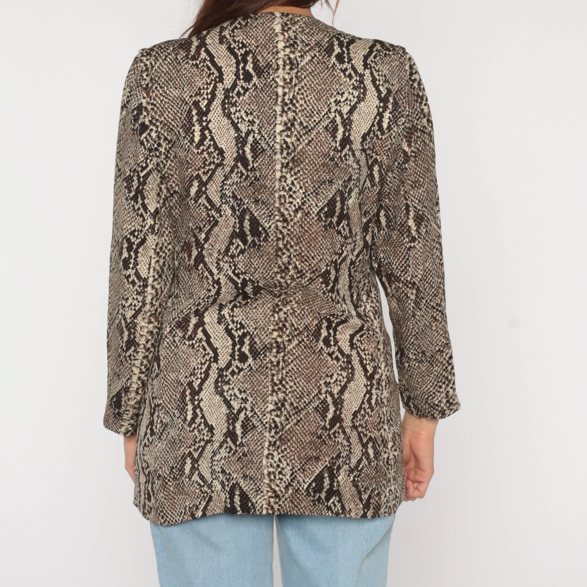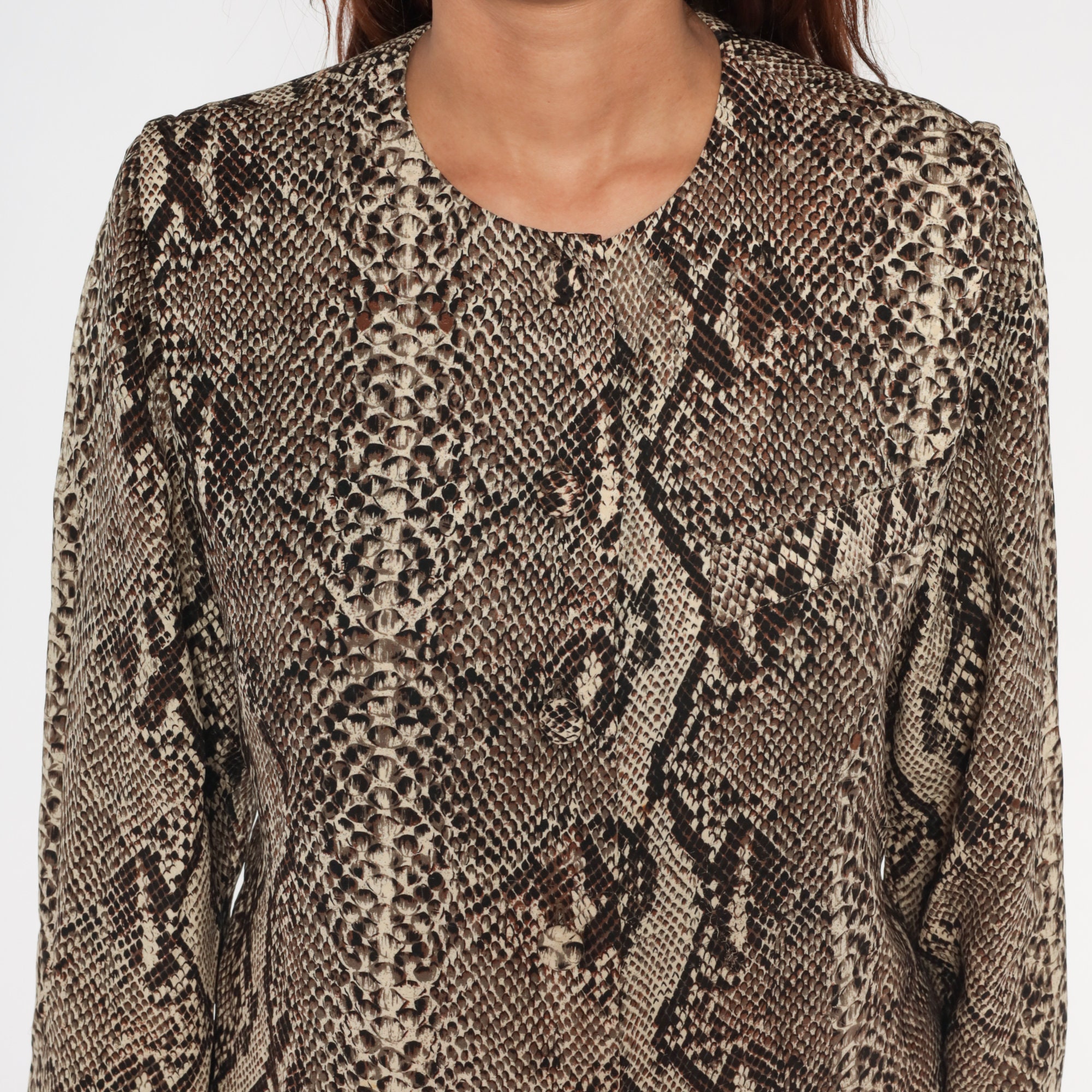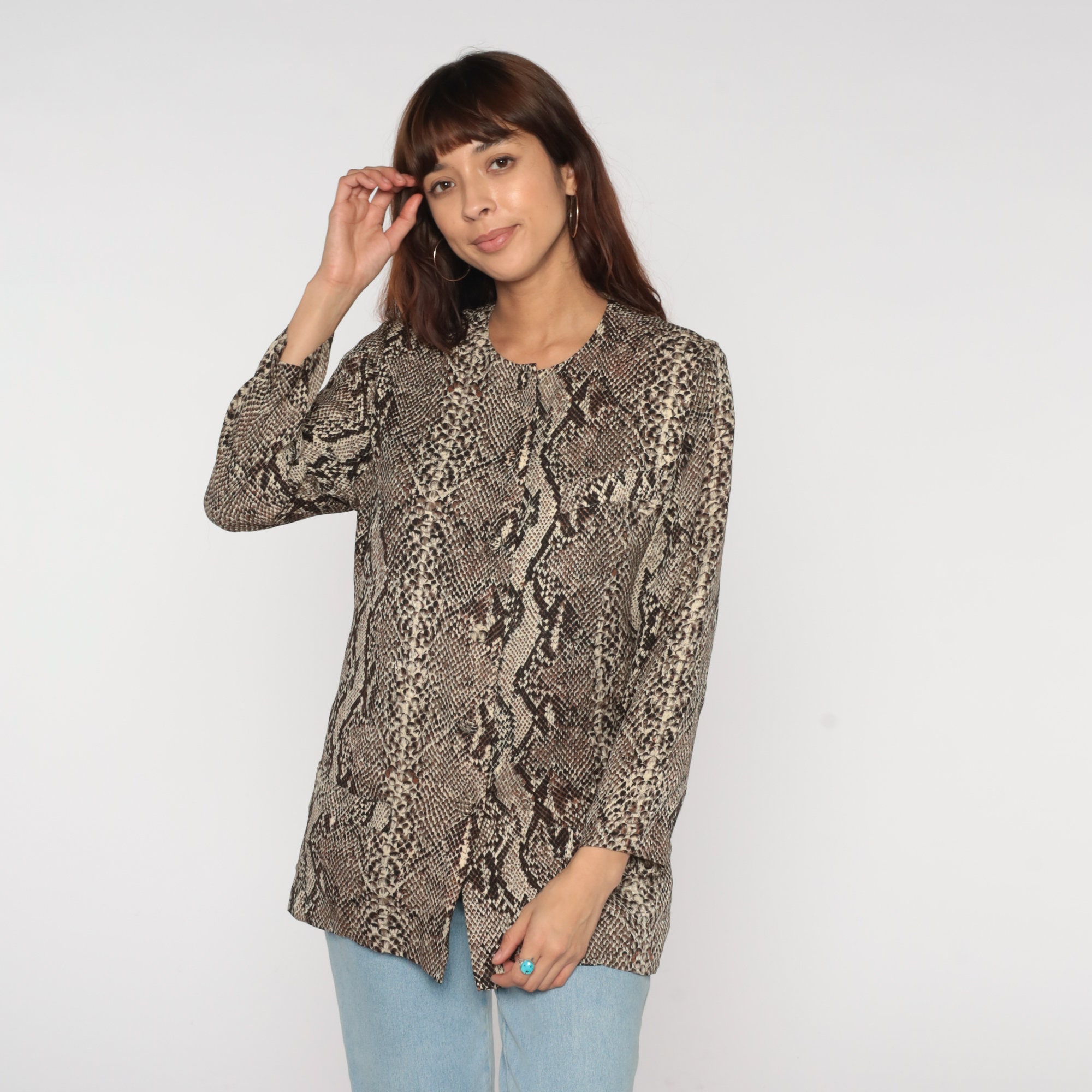 Vintage 80s 90s shirt in a snakeskin scale print with long sleeves and buttons down the front.