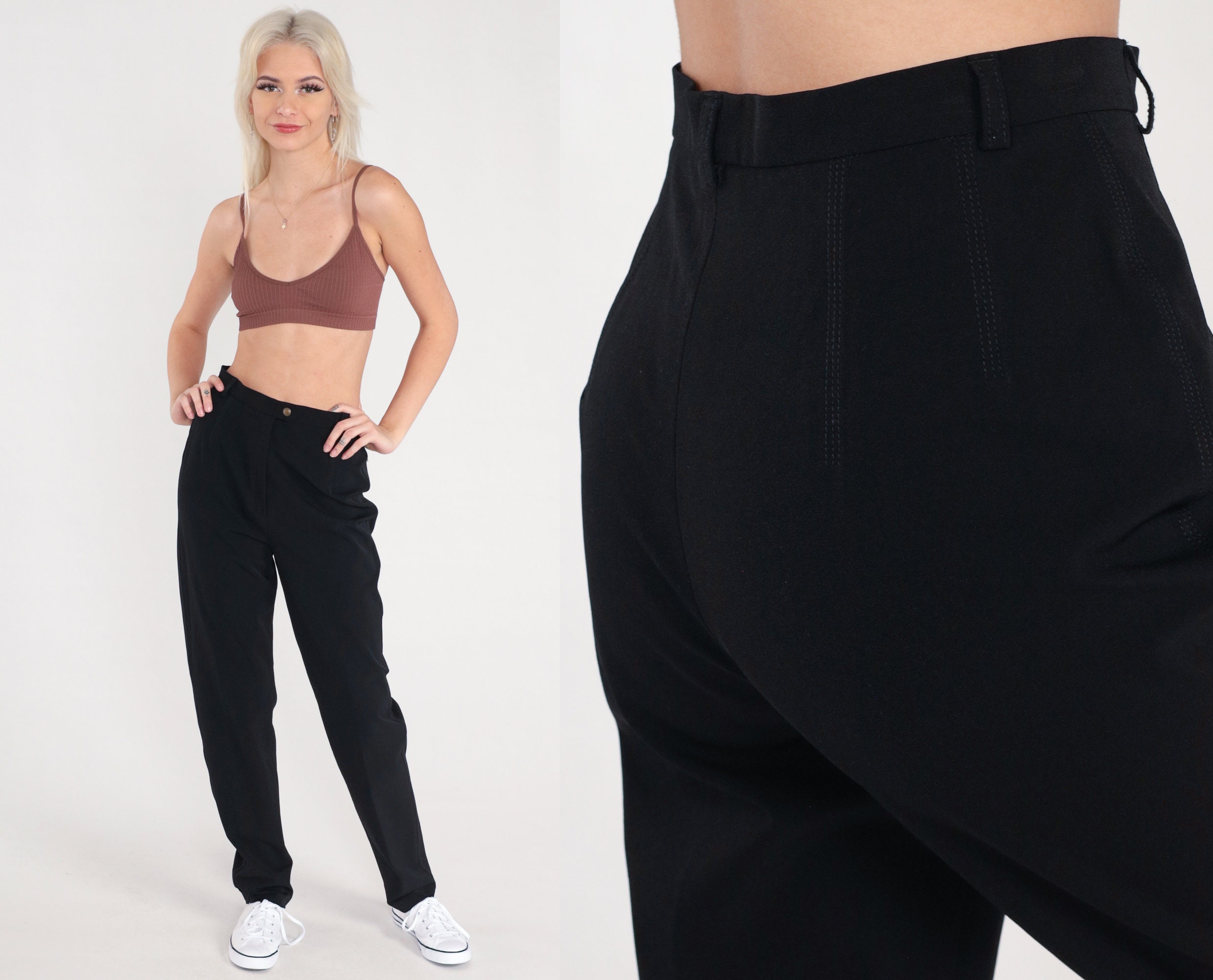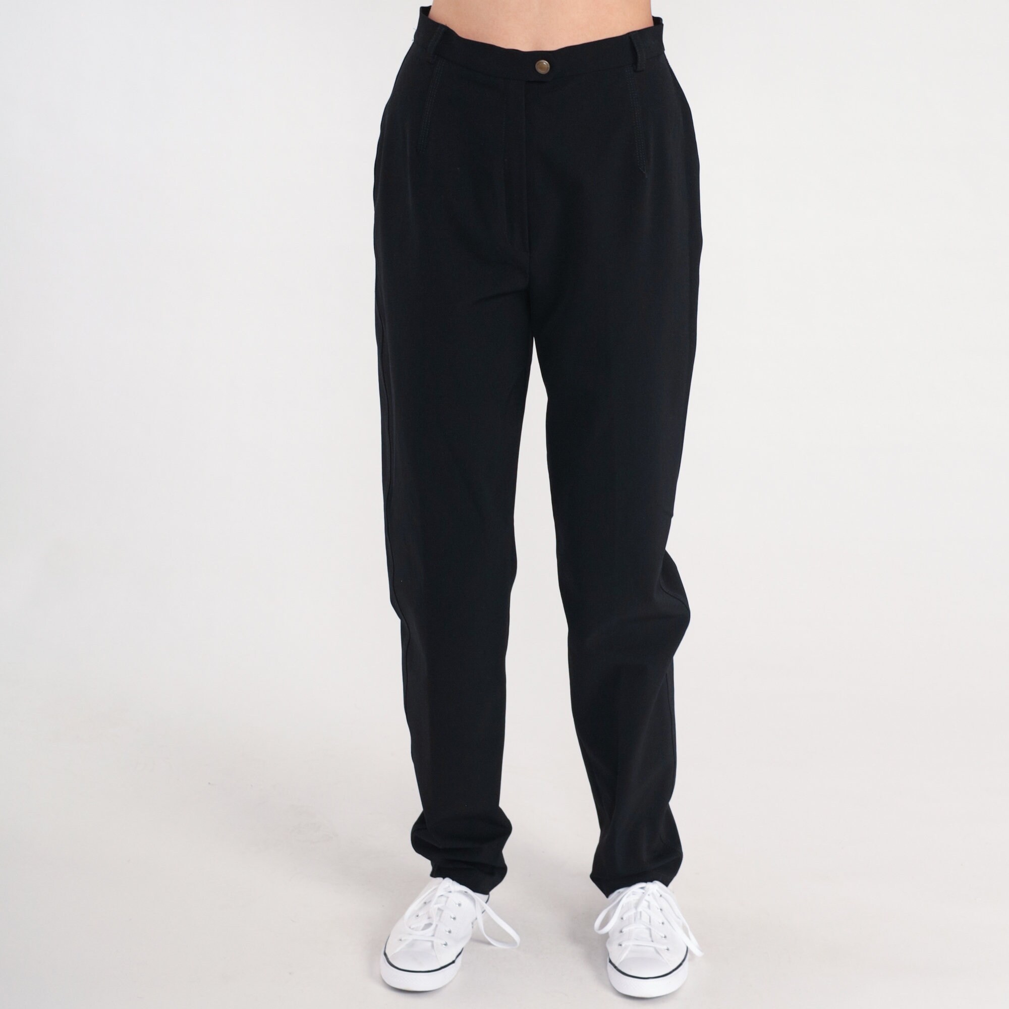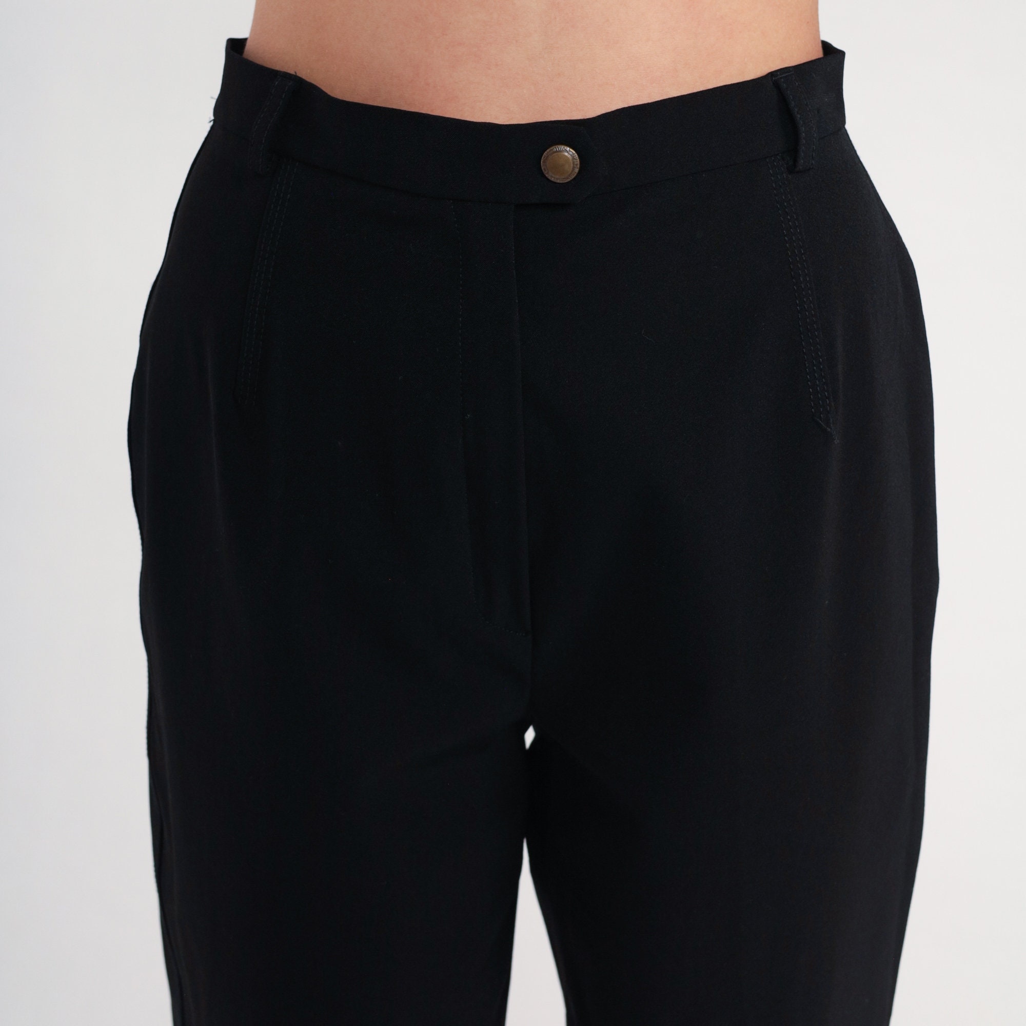 Vintage 90s pants in black with a high waist and a tapered leg.