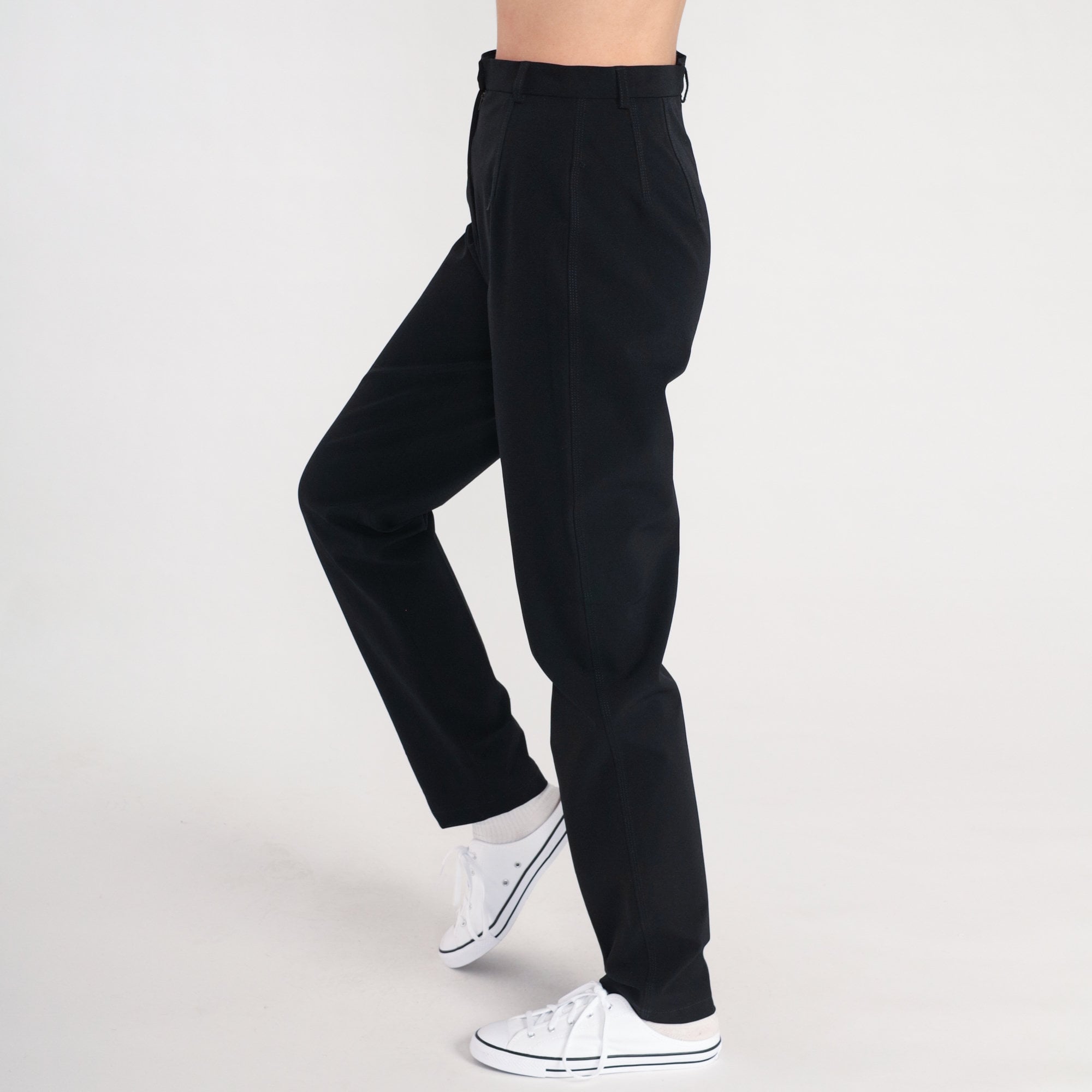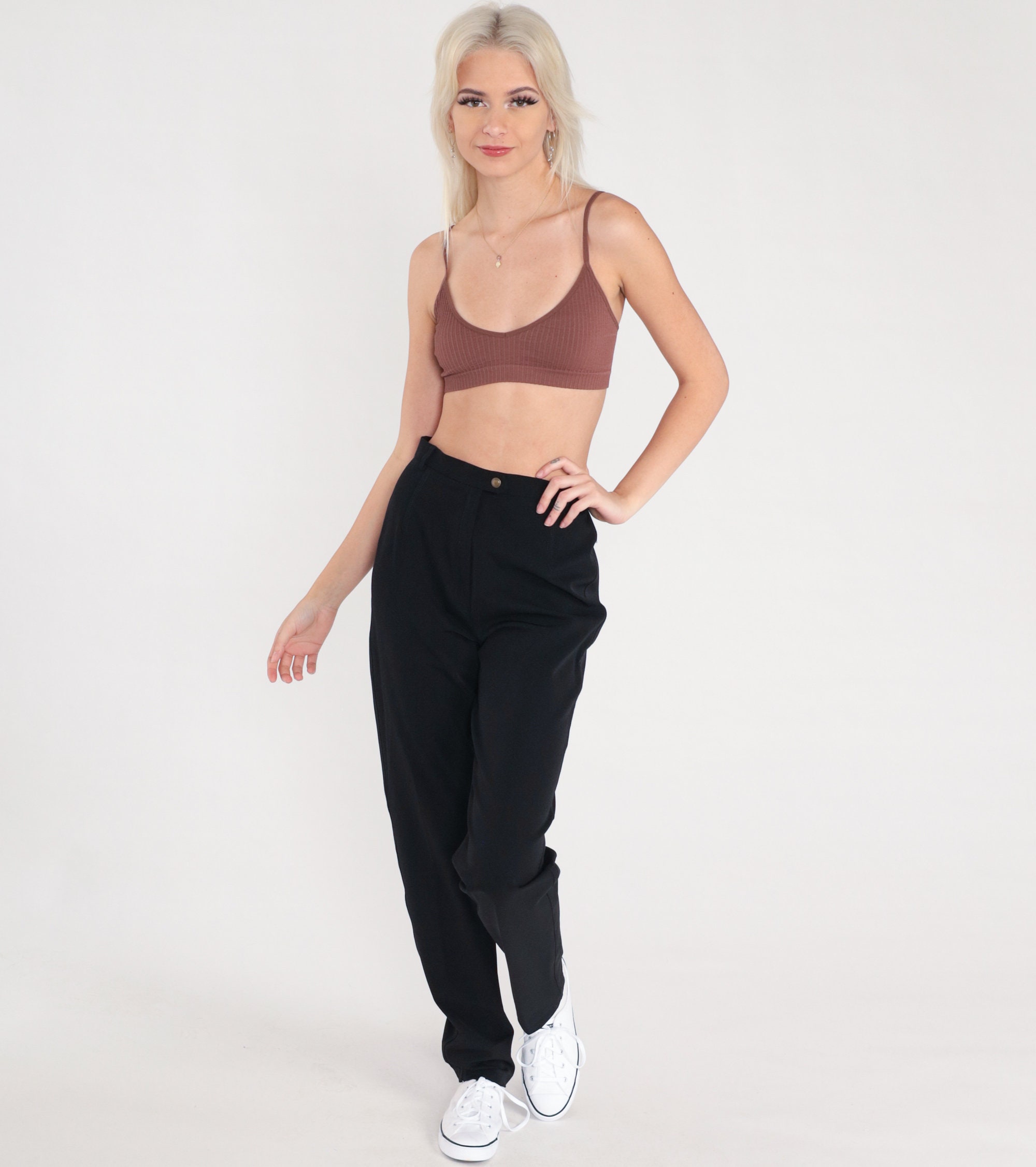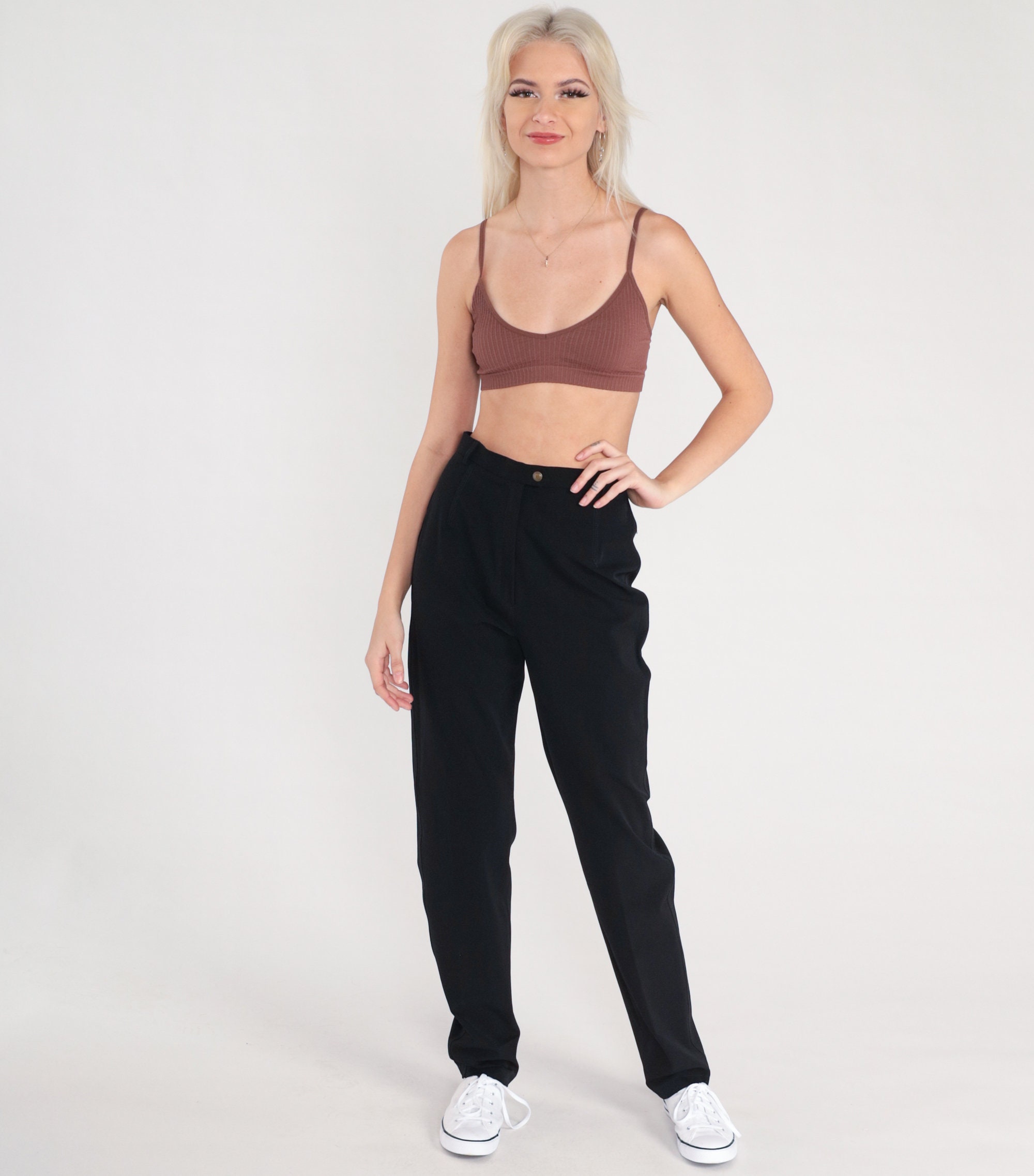 Vintage 90s pants in black with a high waist and a tapered leg.