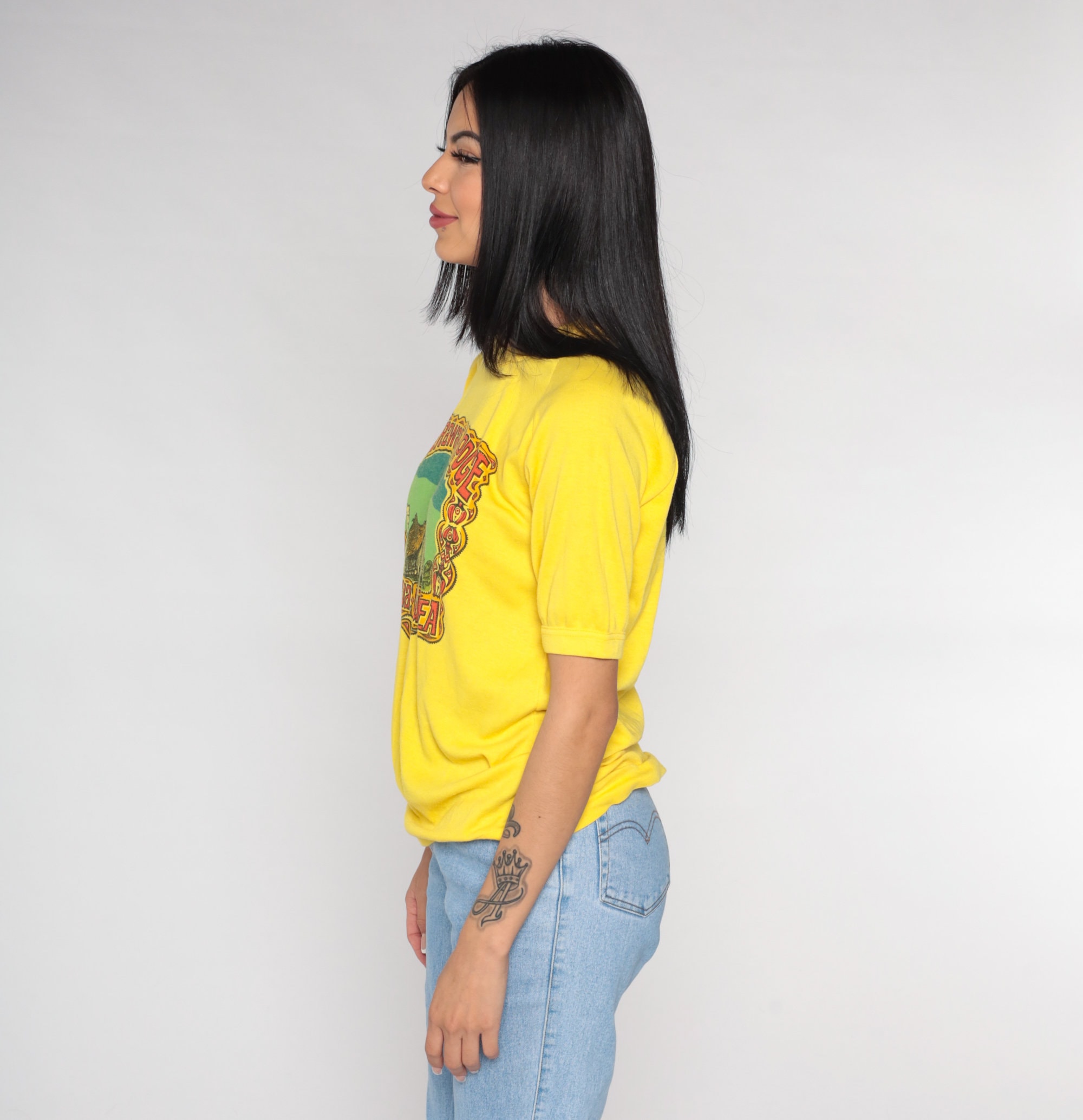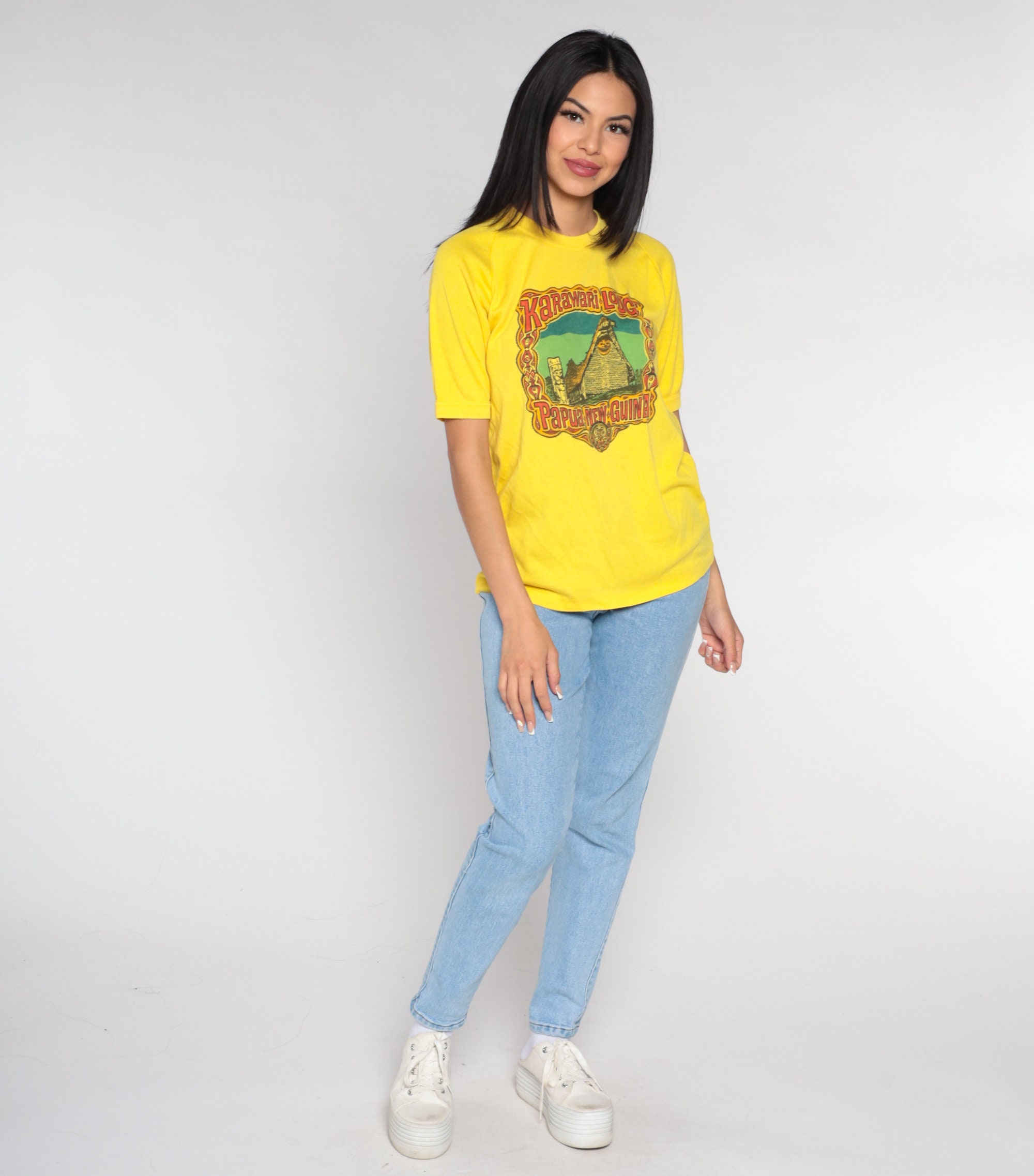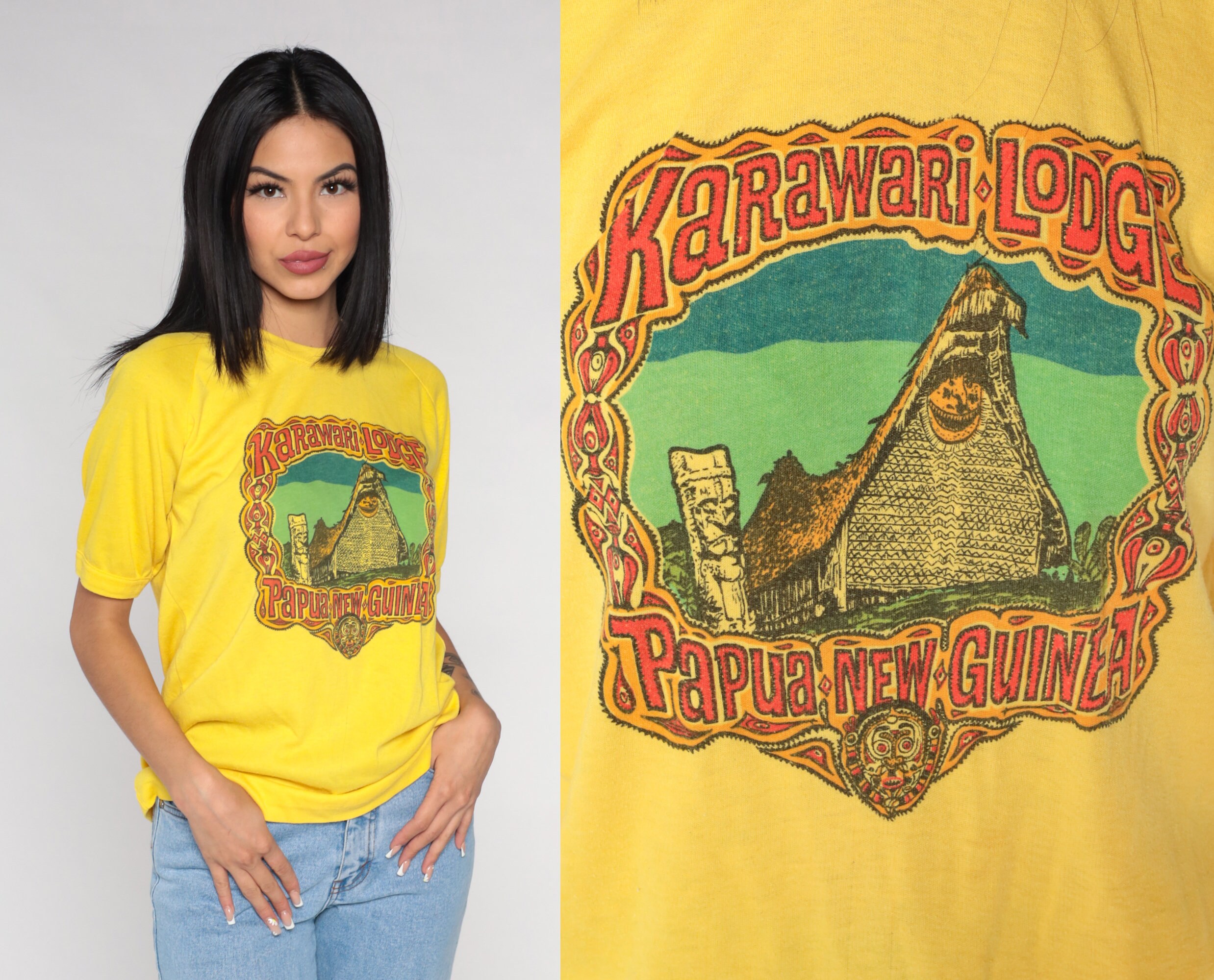 Vintage y2k t shirt in yellow from the Karawari Lodge in Papua New Guinea.
