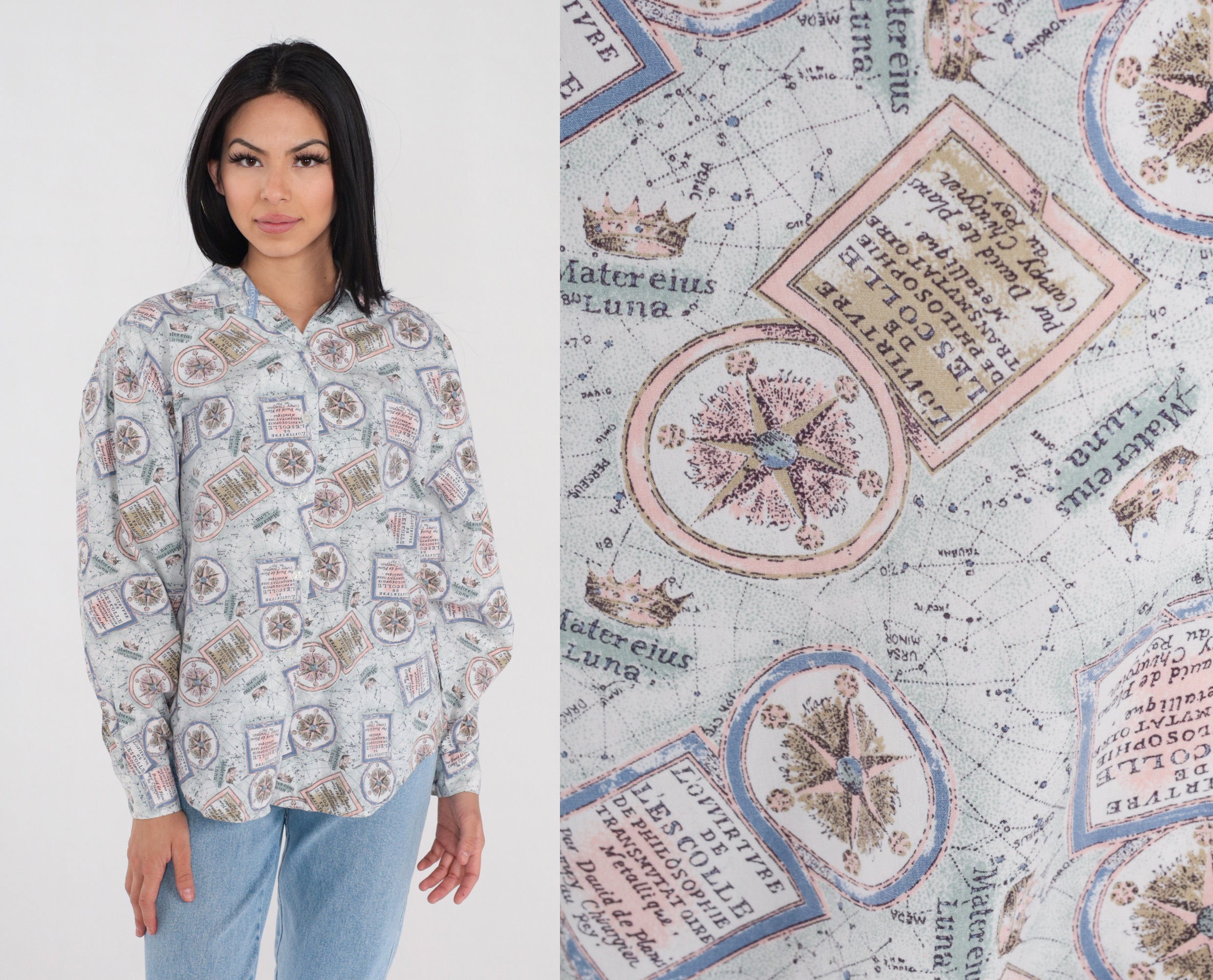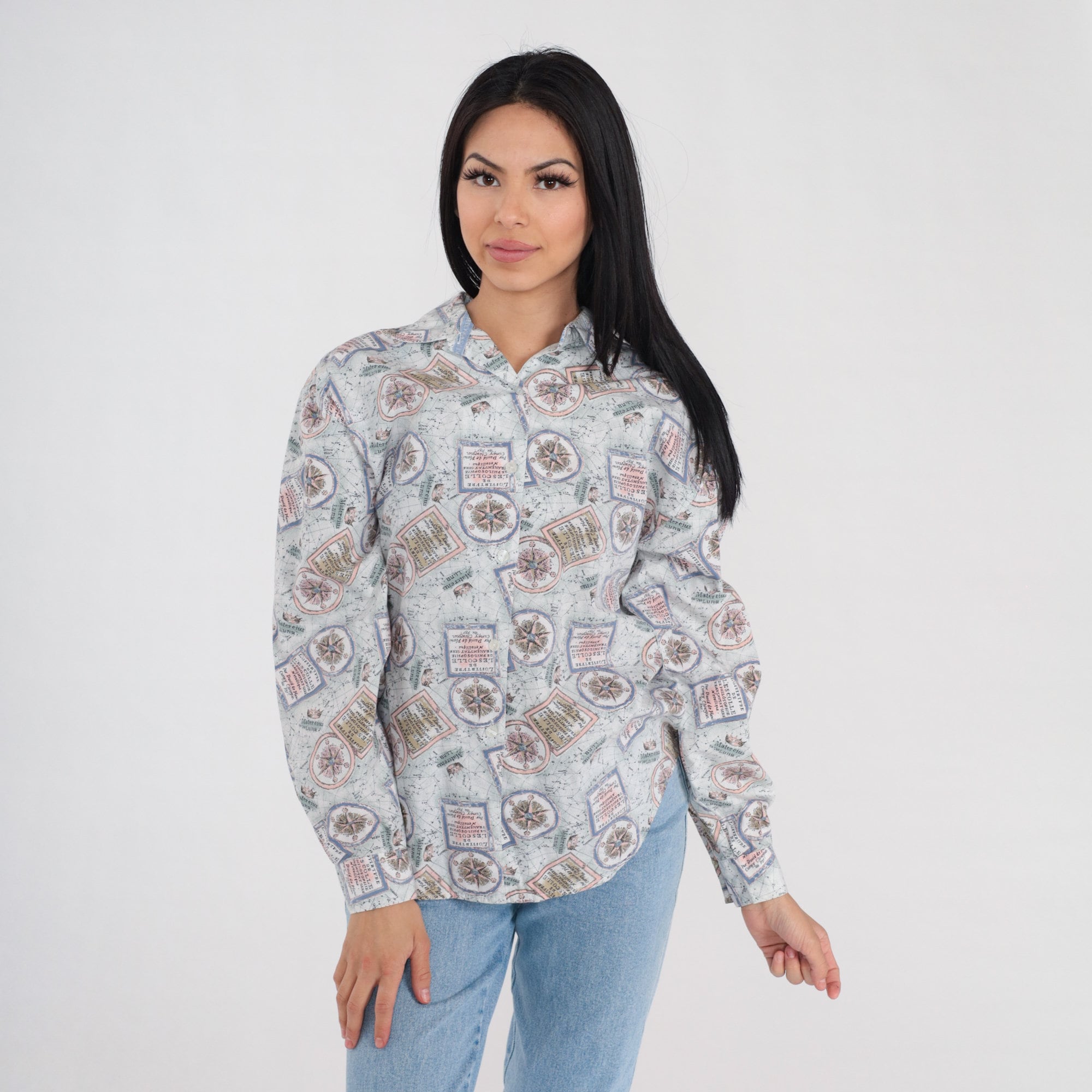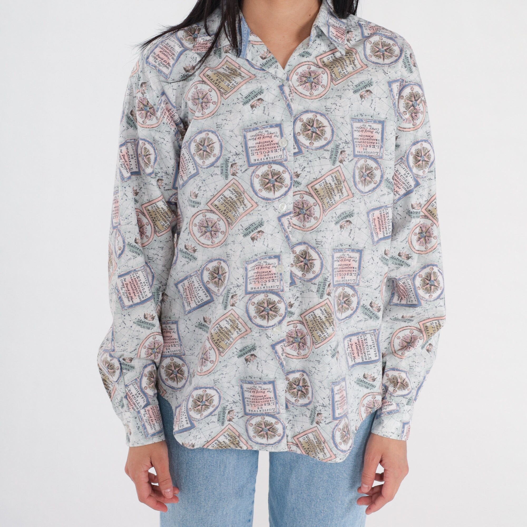 Vintage 90s shirt in yellow with a butterfly and flower print. Buttons up the front with long sleeves.