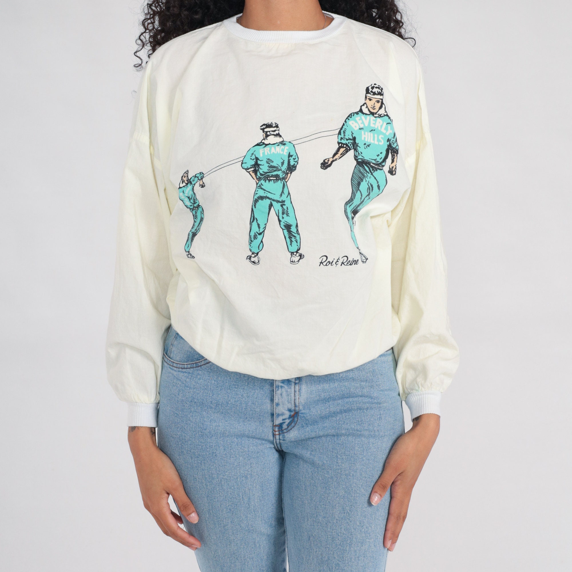 Vintage 90s shirt with Roi & Reine and men in sweatsuits on the front.
