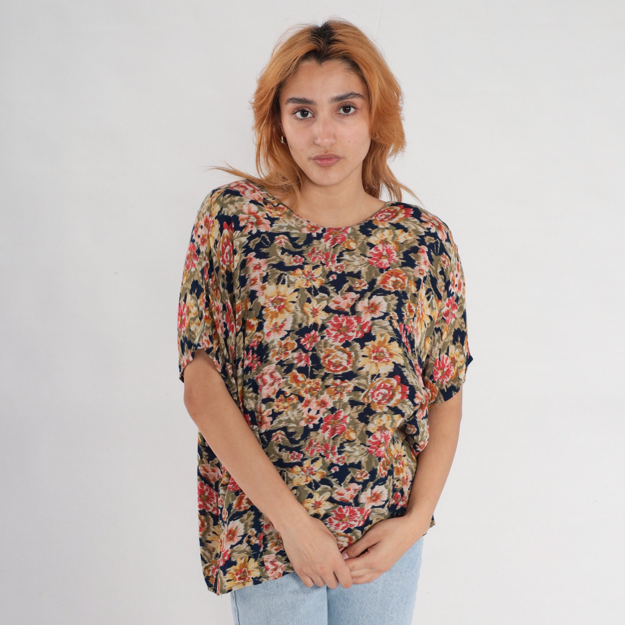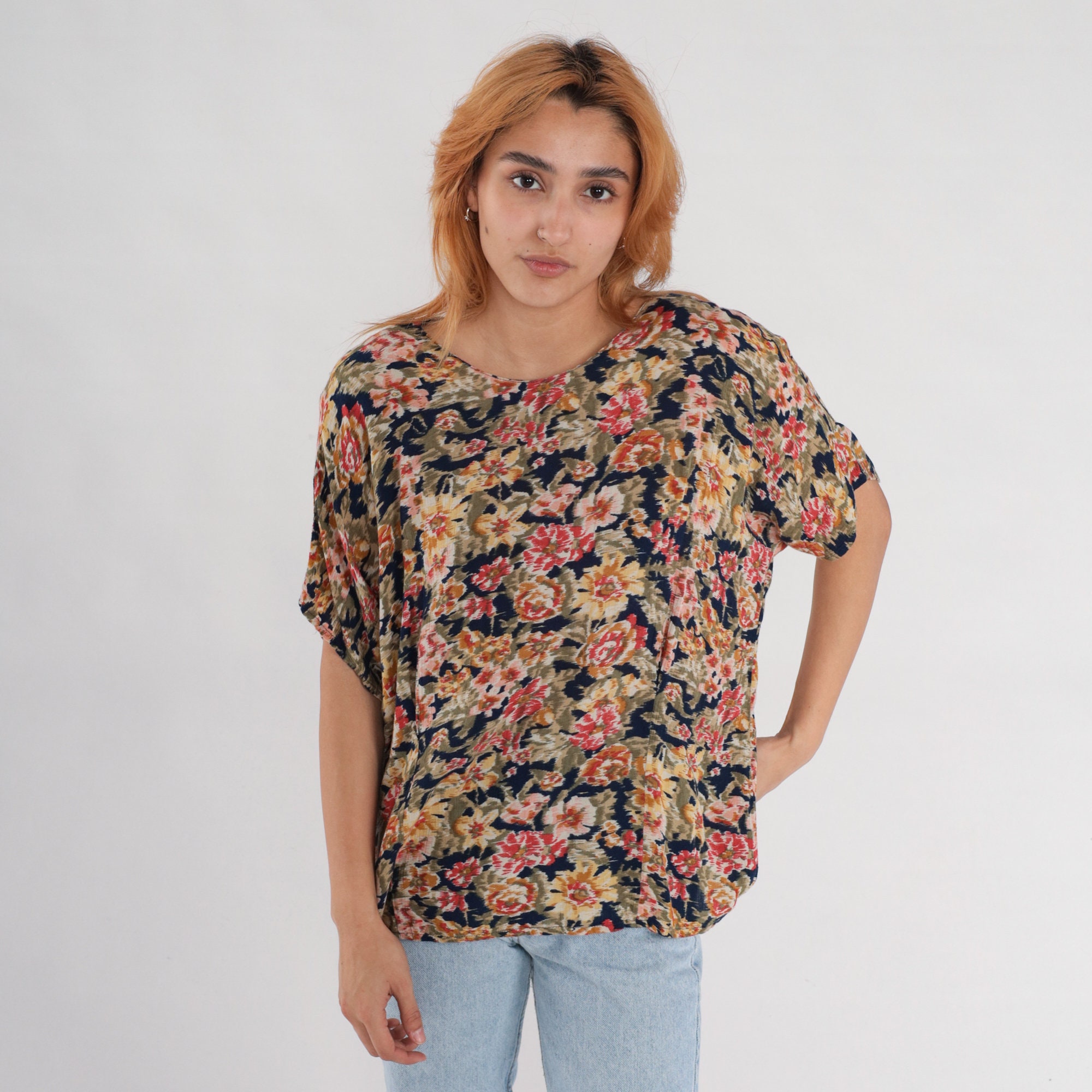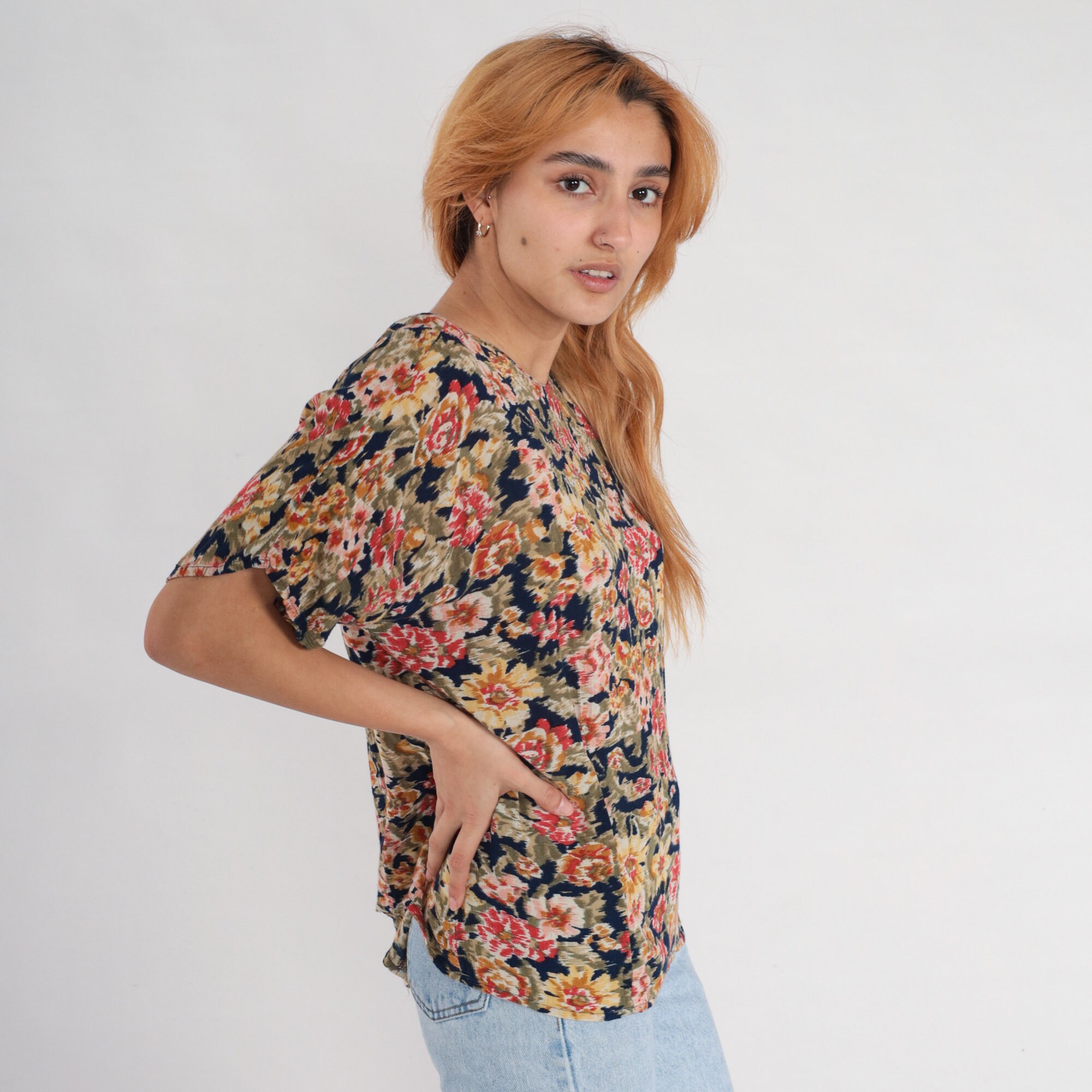 Vintage 90s blouse in a floral print with short sleeves.