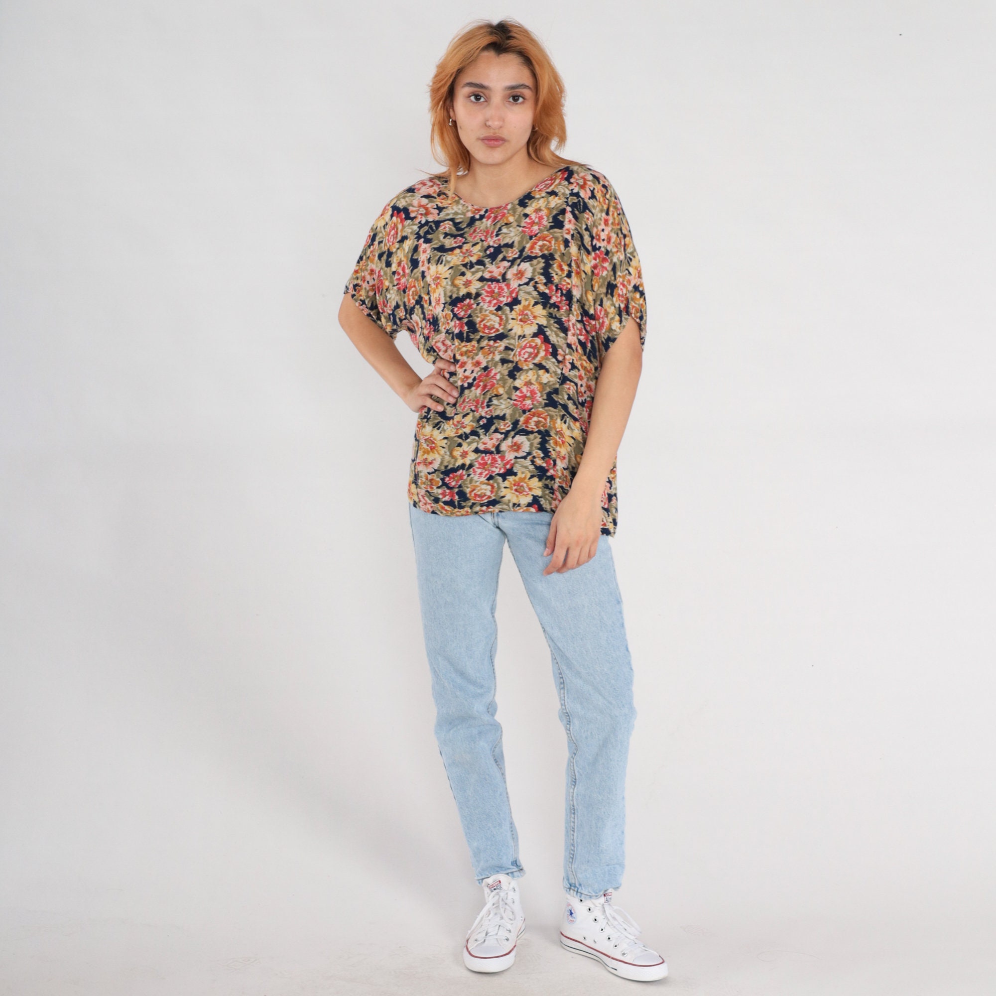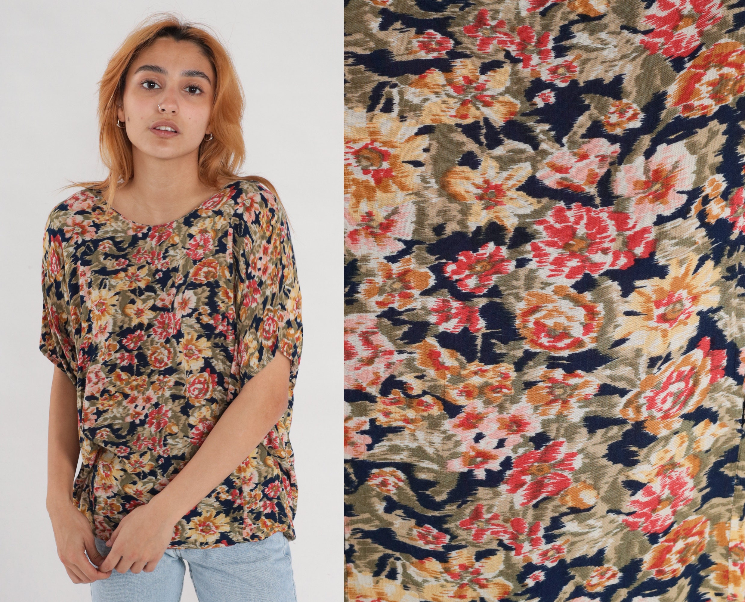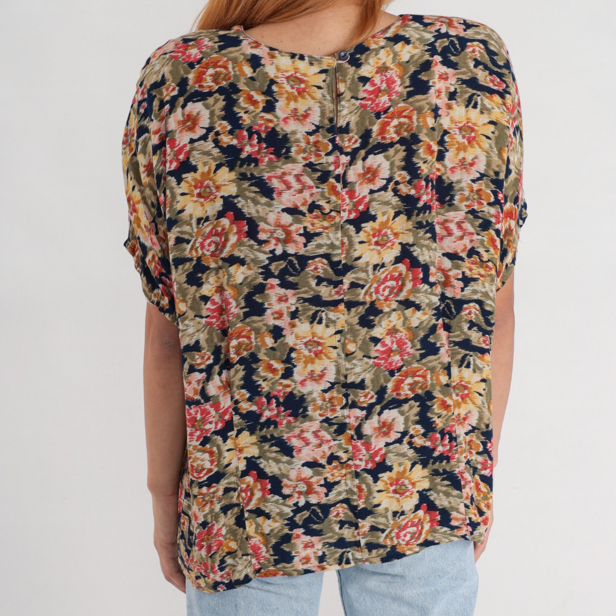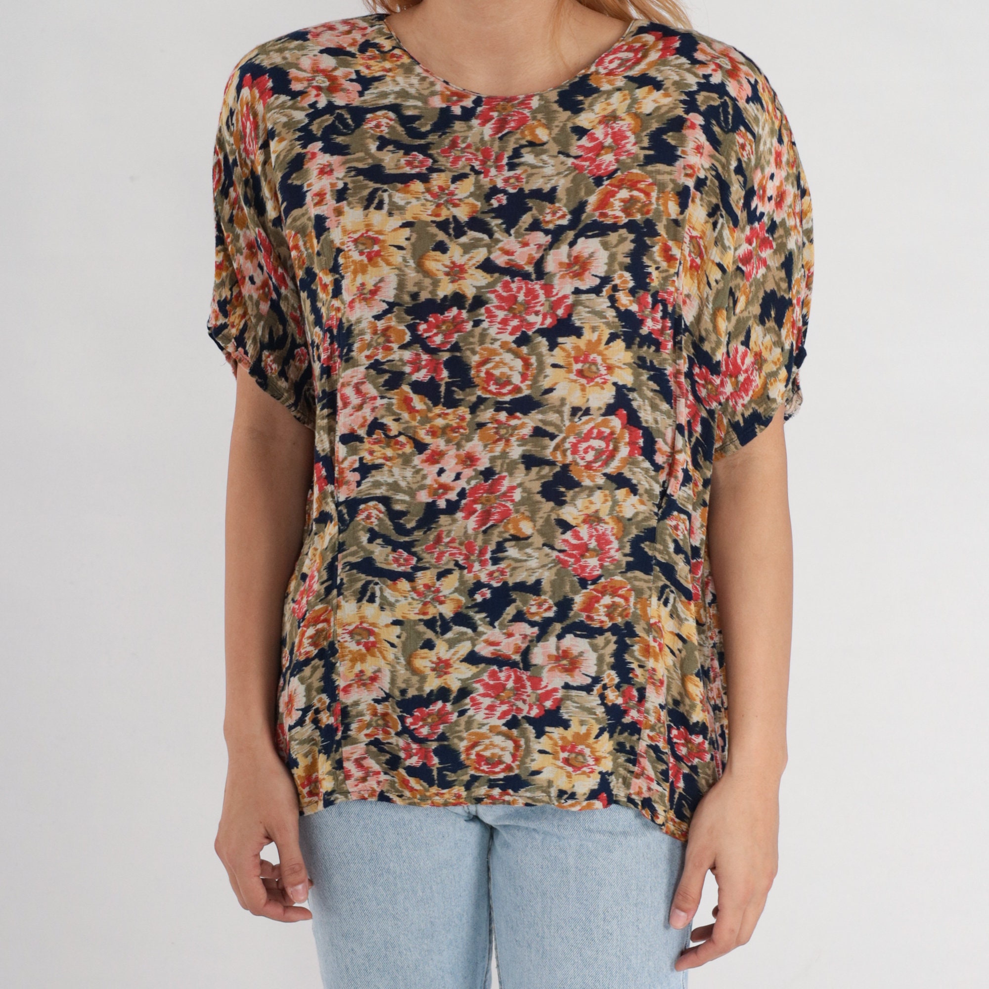 Vintage 90s blouse in a floral print with short sleeves.