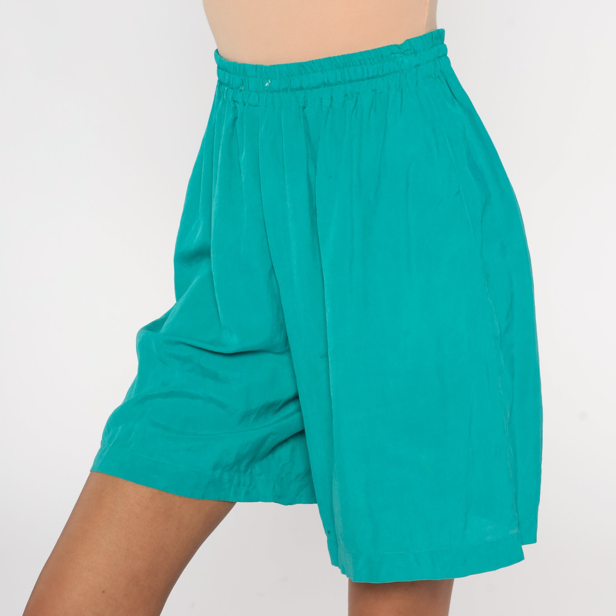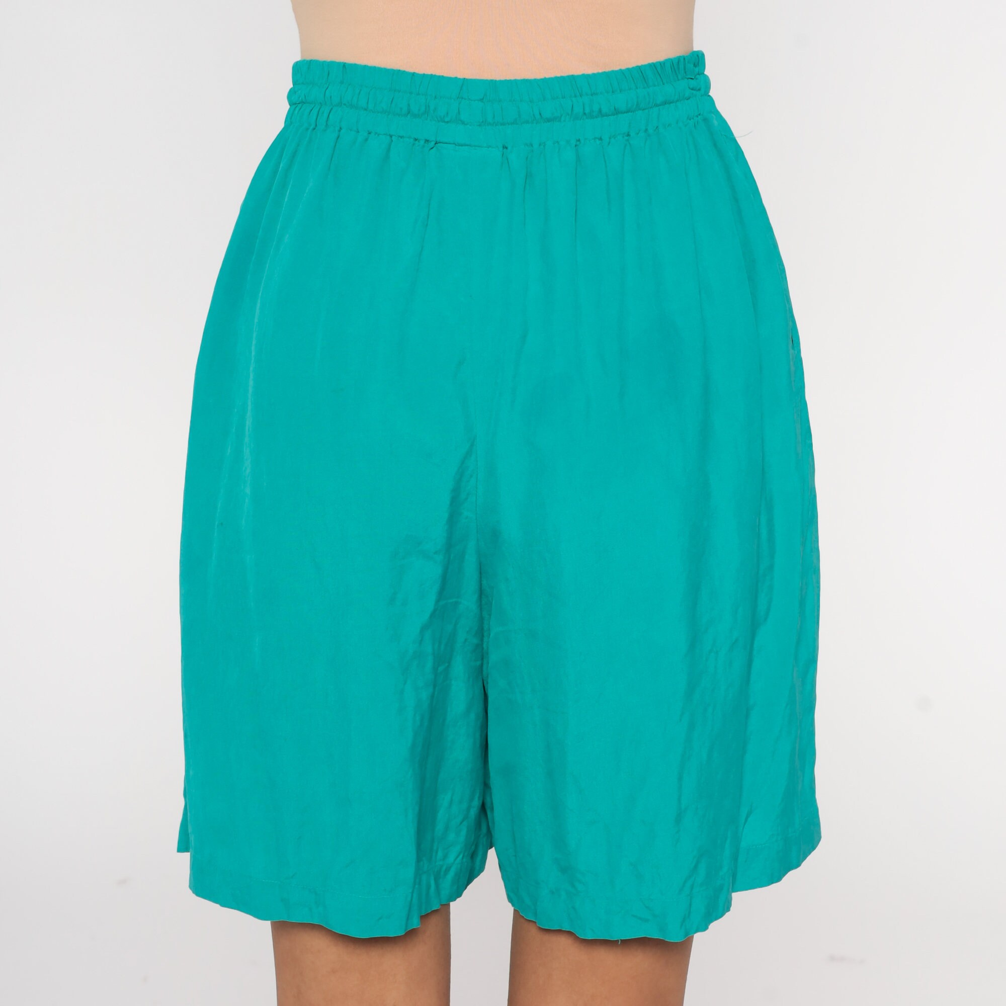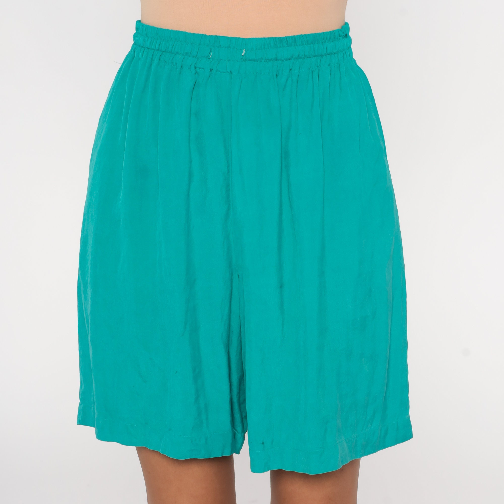 Vintage 90s shorts green silk with a baggy fit and a high elastic waist.