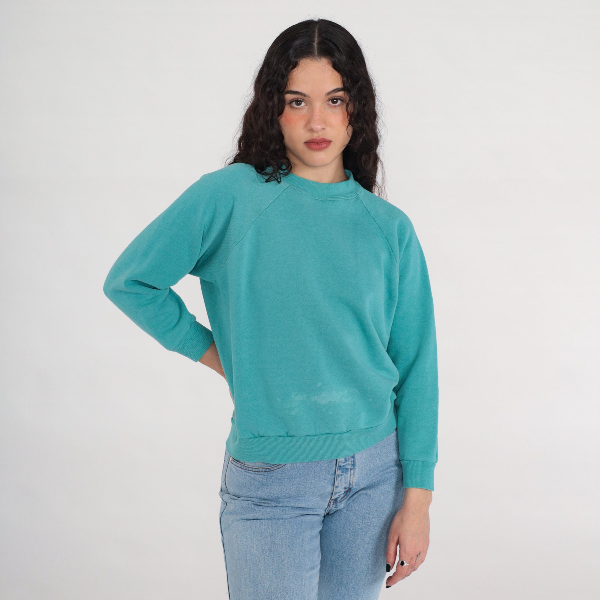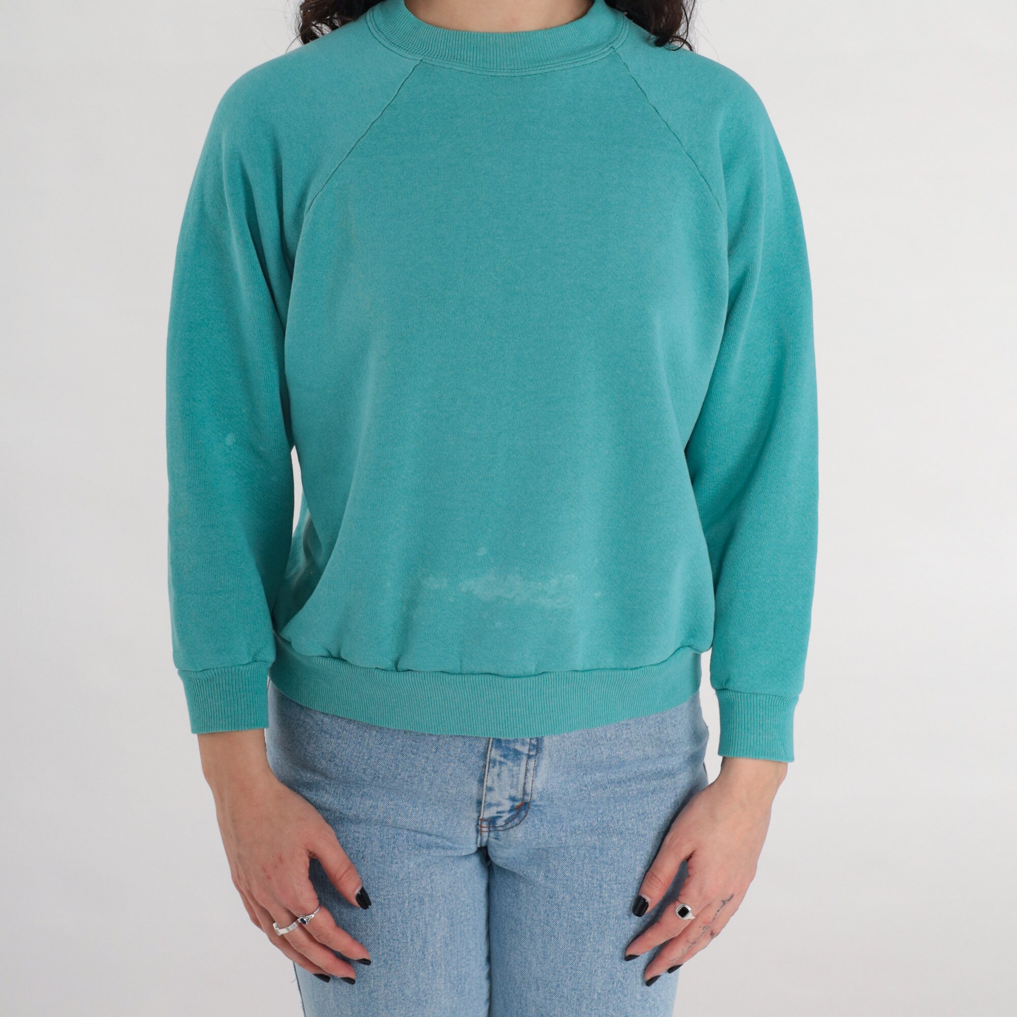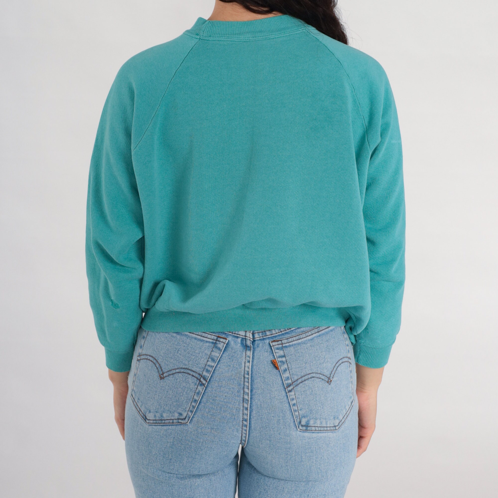 Vintage 80s 90s sweatshirt in dark seafoam green with raglan sleeves. Slouchy fit.