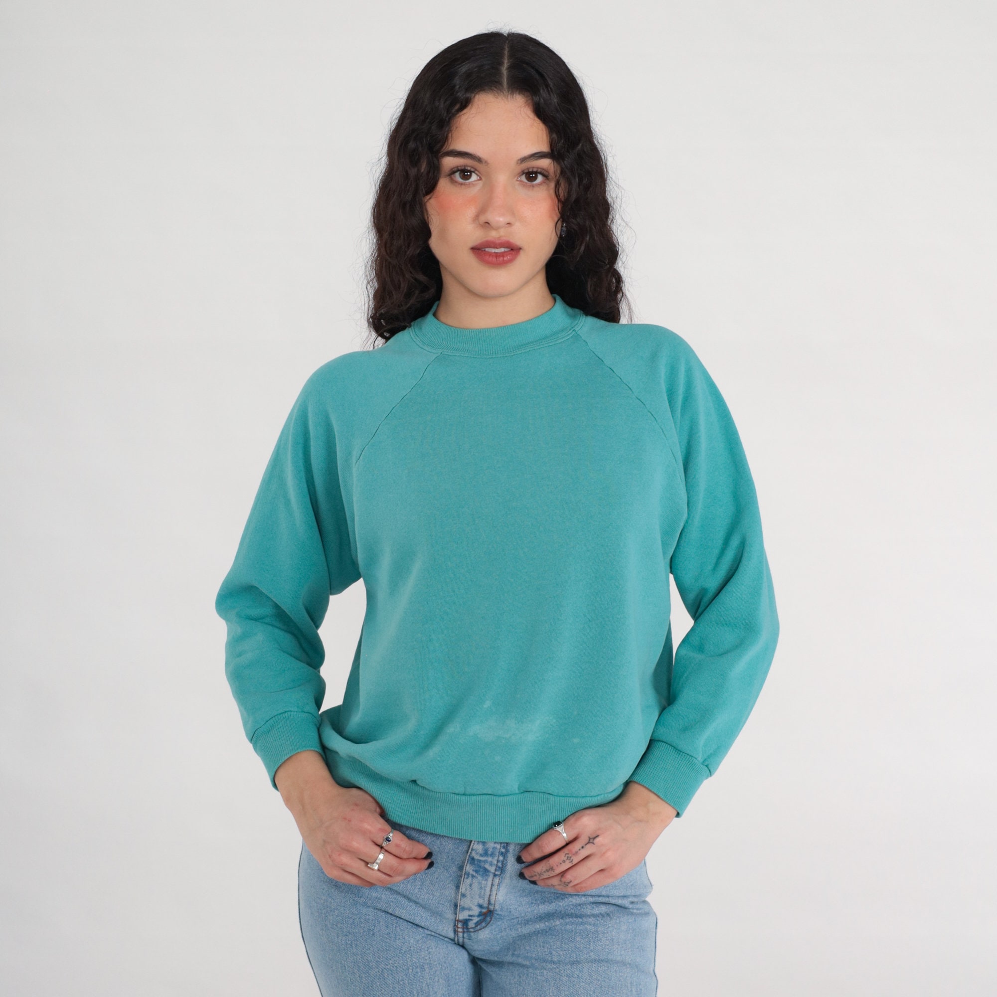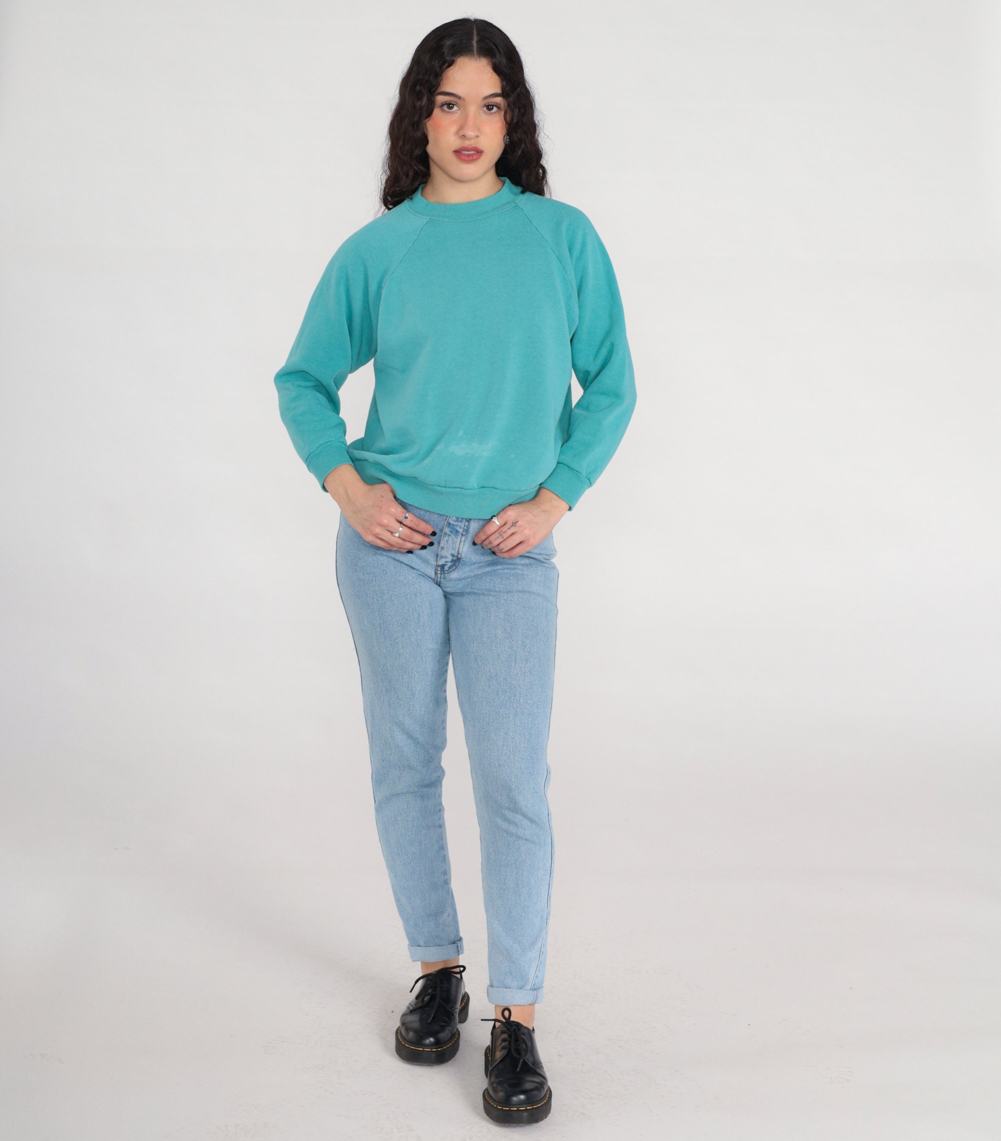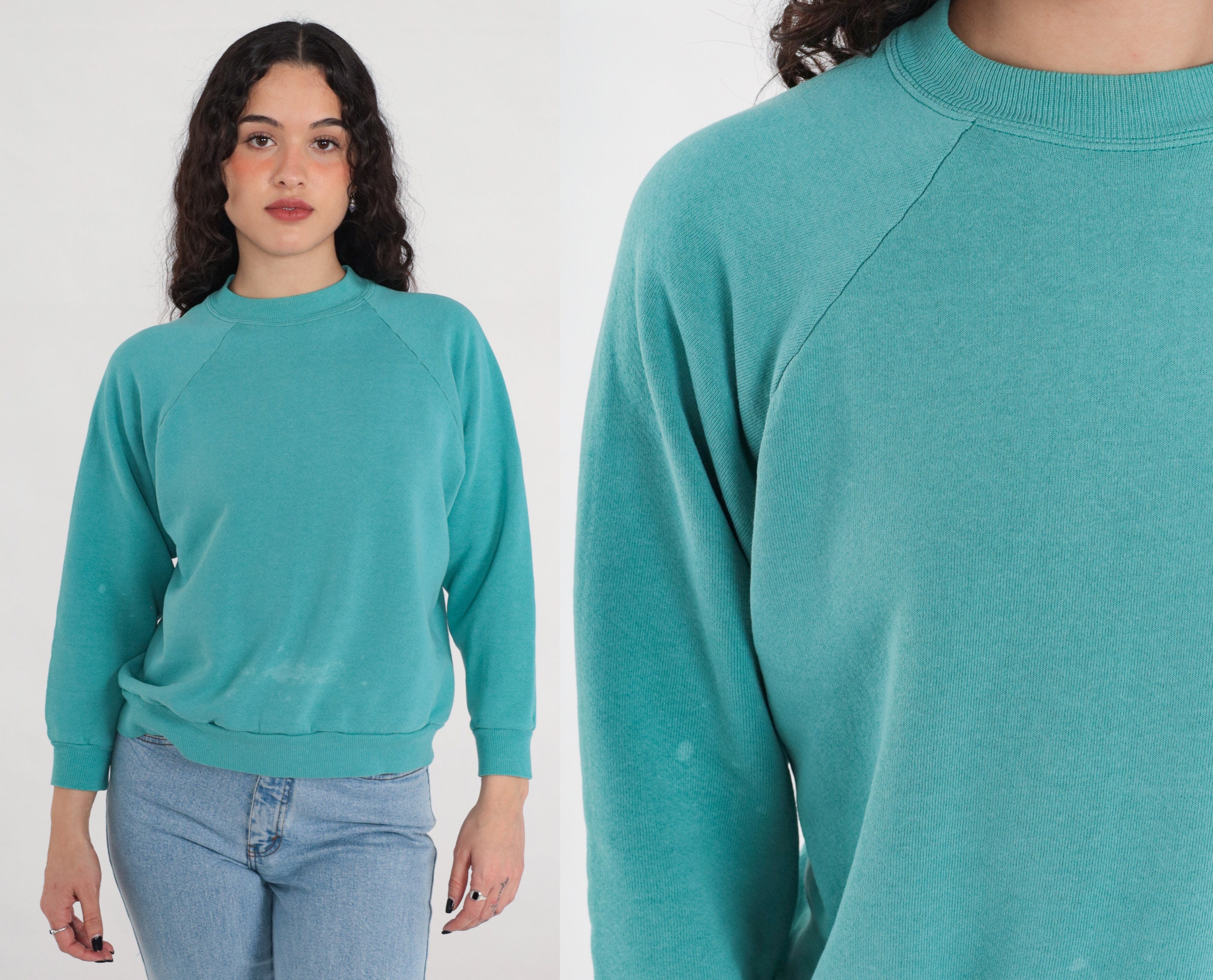 Vintage 80s 90s sweatshirt in dark seafoam green with raglan sleeves. Slouchy fit.