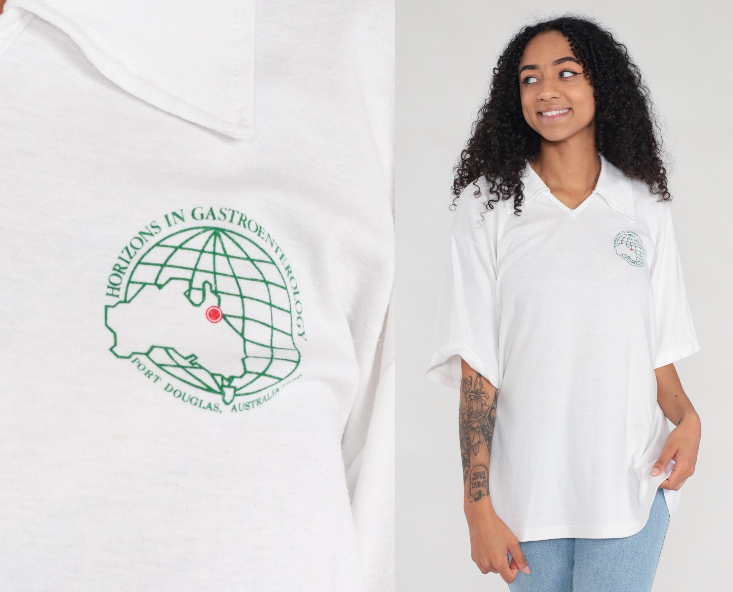 Vintage 90s tshirt with a Horizons in gastroenterology, Port Douglas, Australia print.