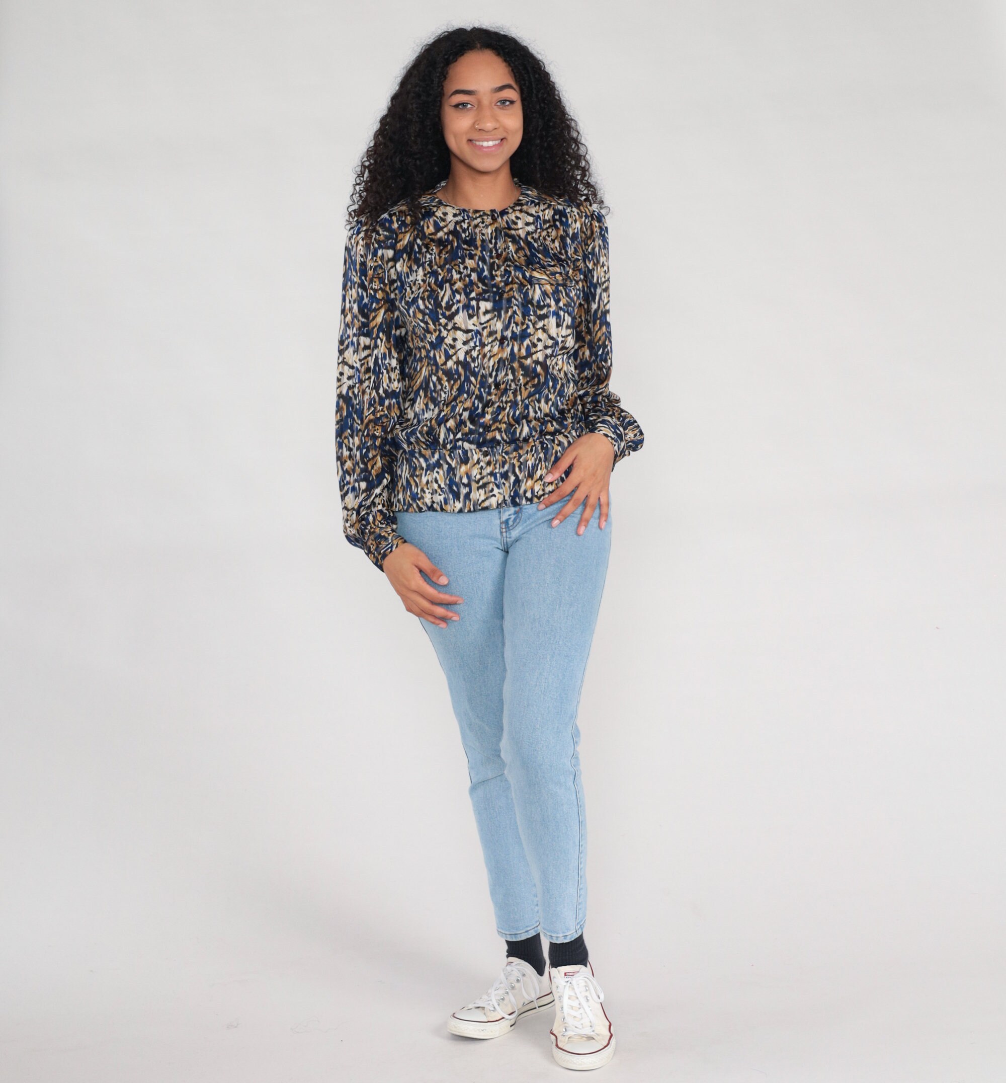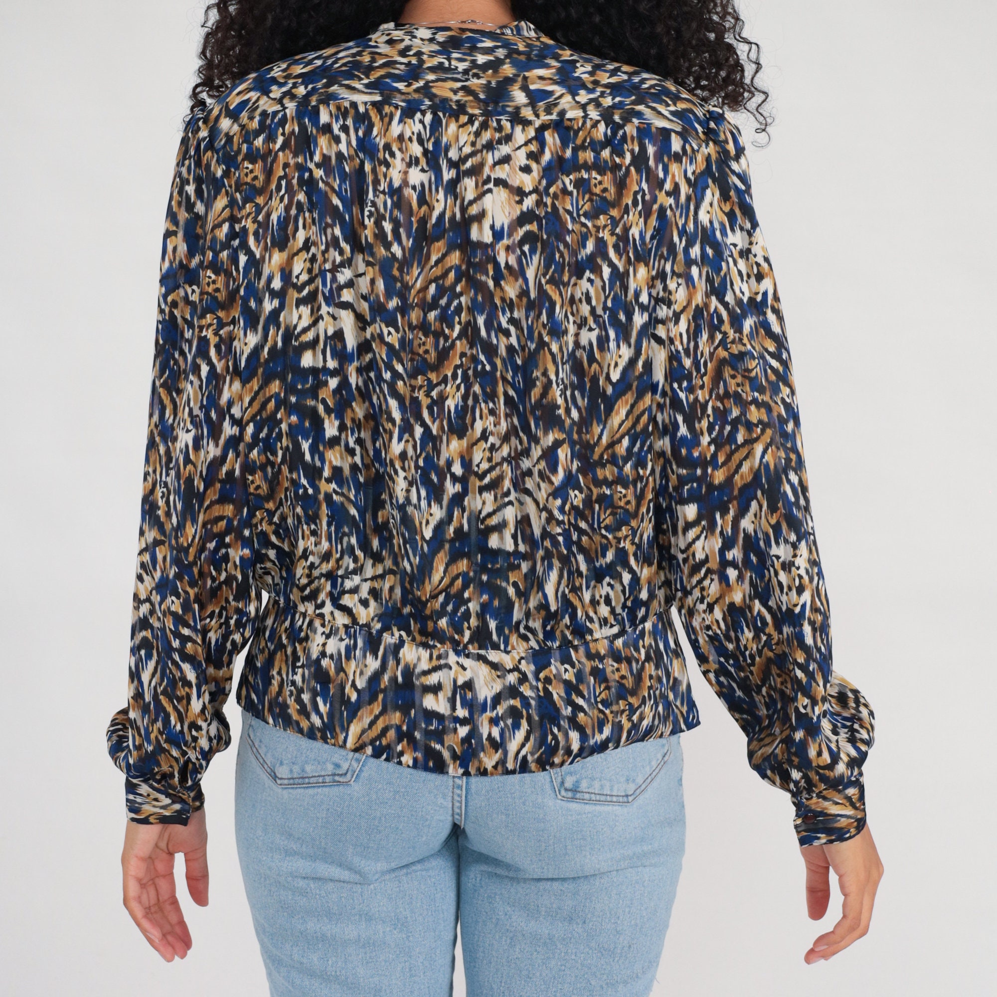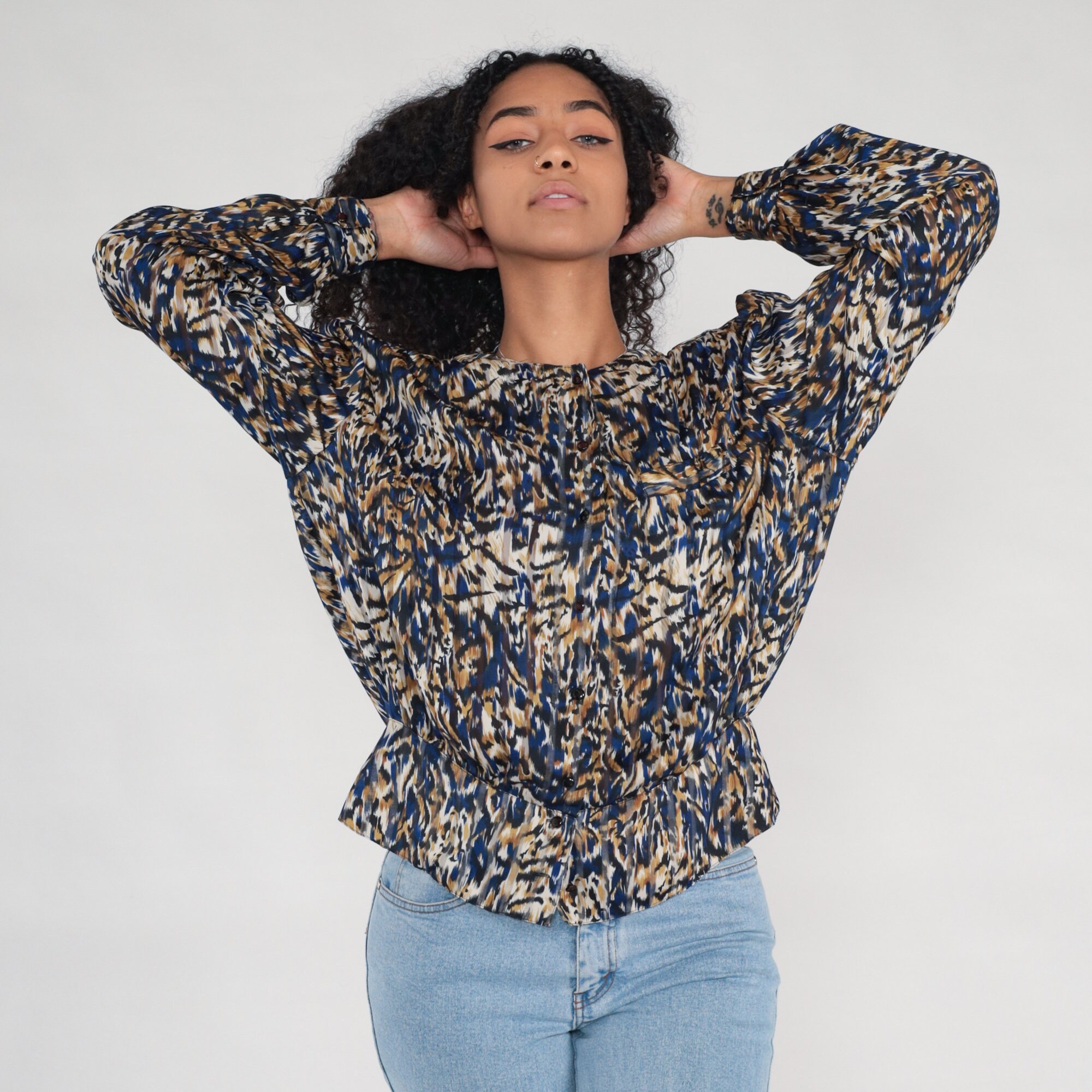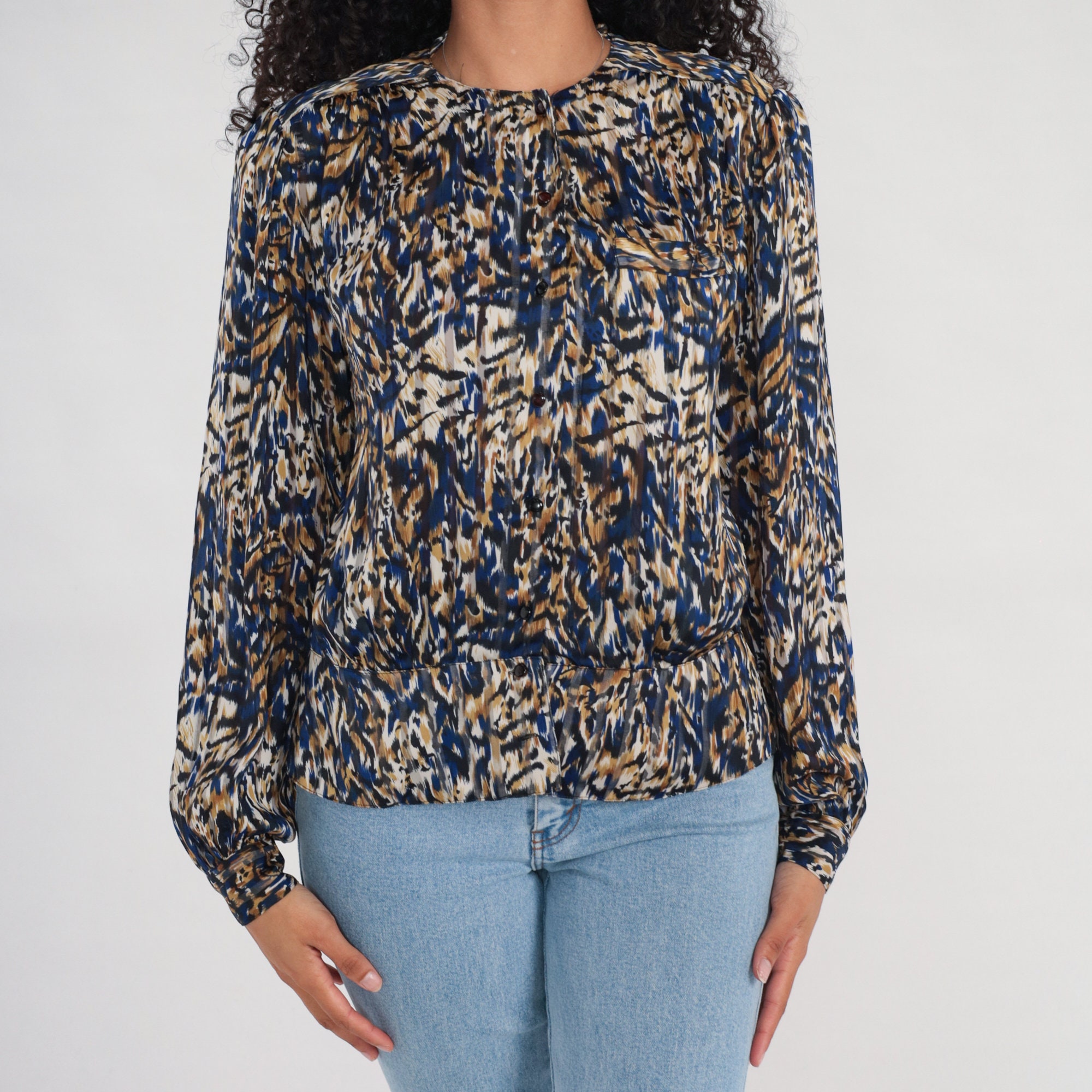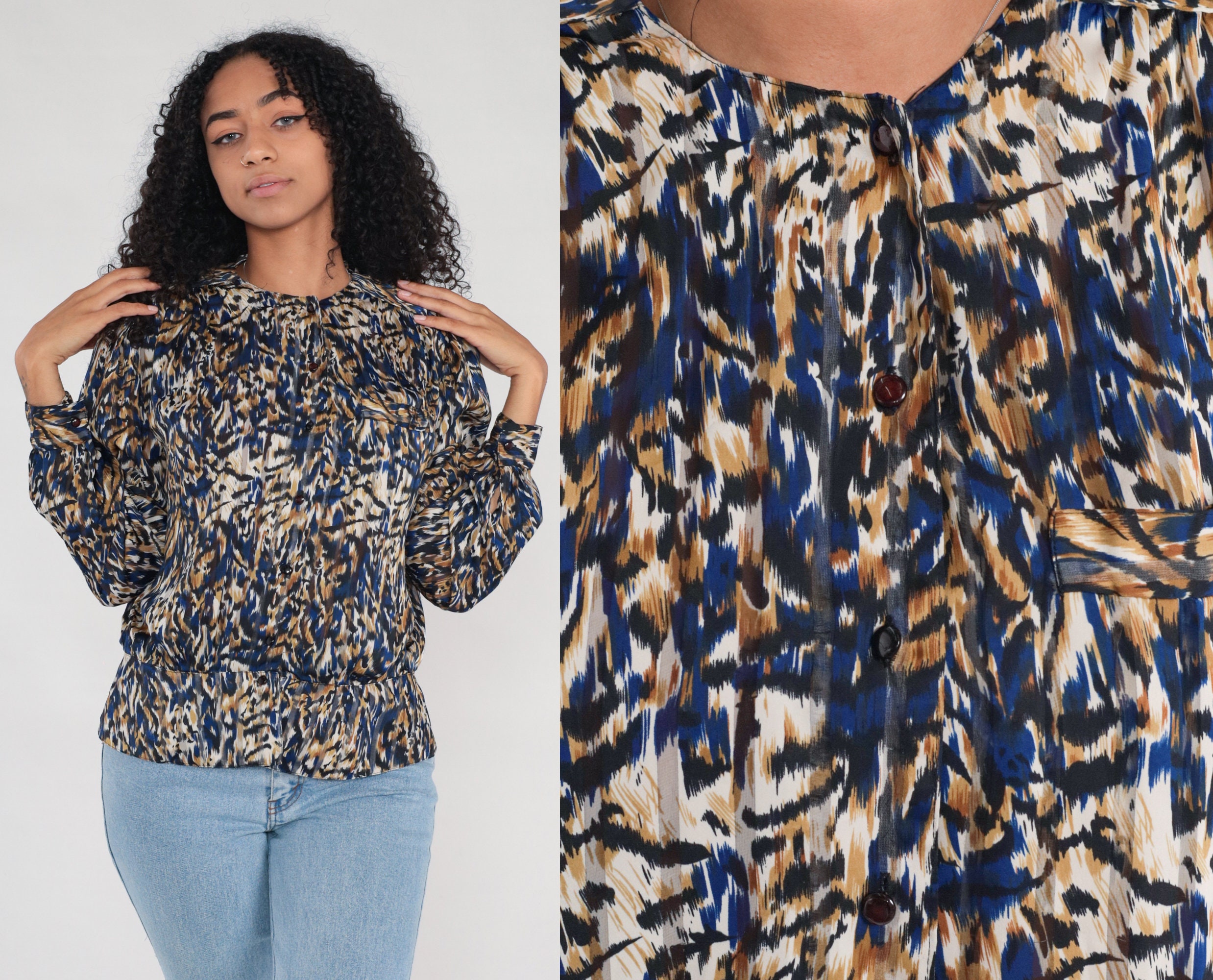 Vintage 90s shirt in an abstract animal print with semi-sheer stripes, long sleeves and buttons up the front.