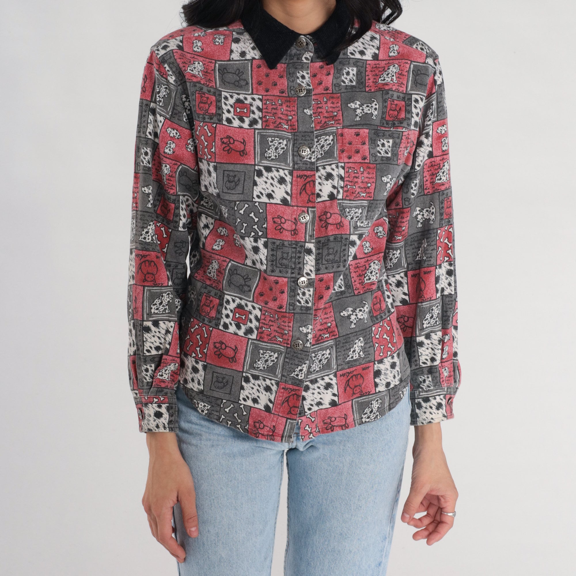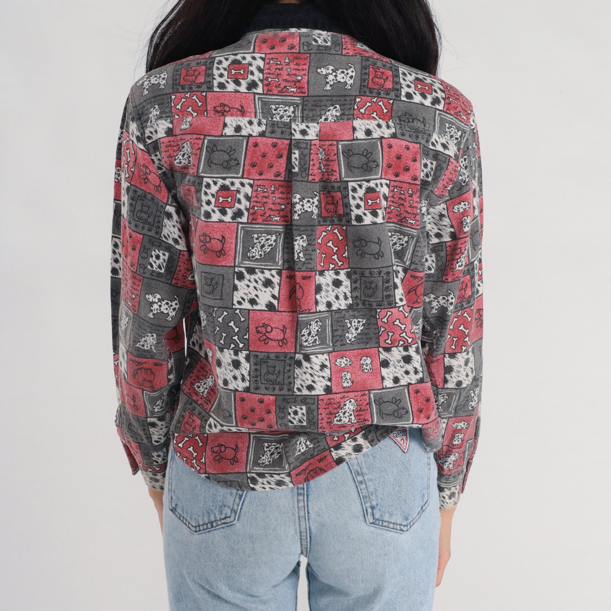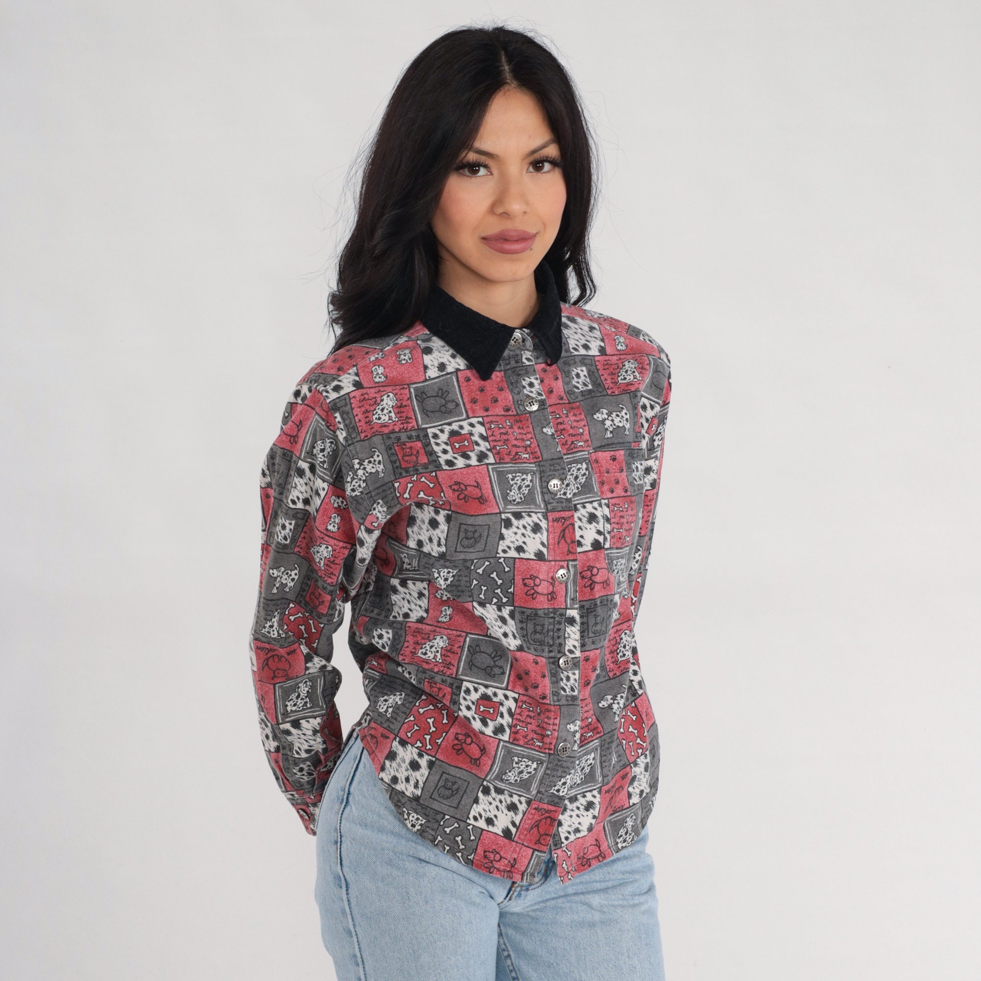 Vintage 90s shirt in a dalmatian dog print with buttons up the front.