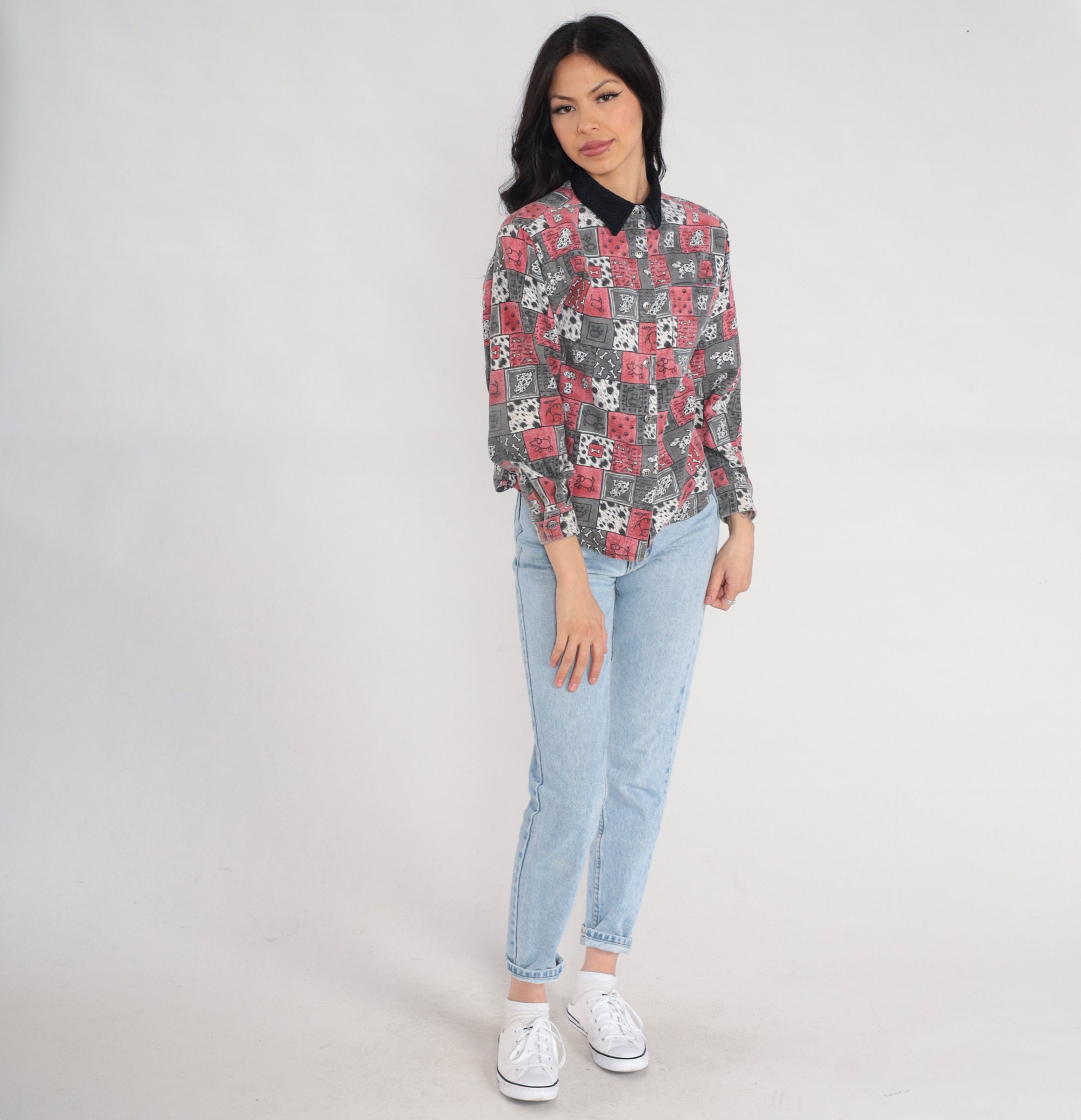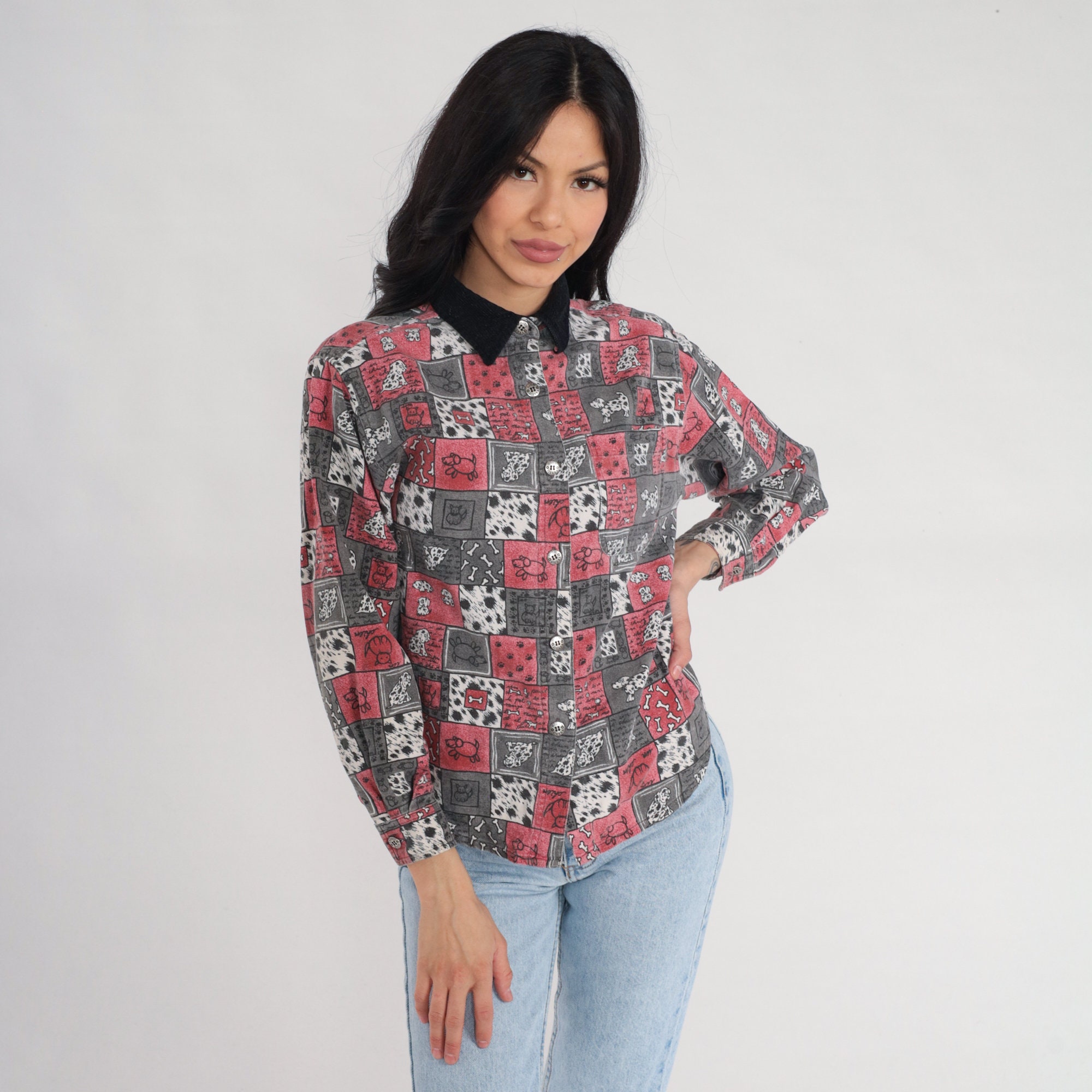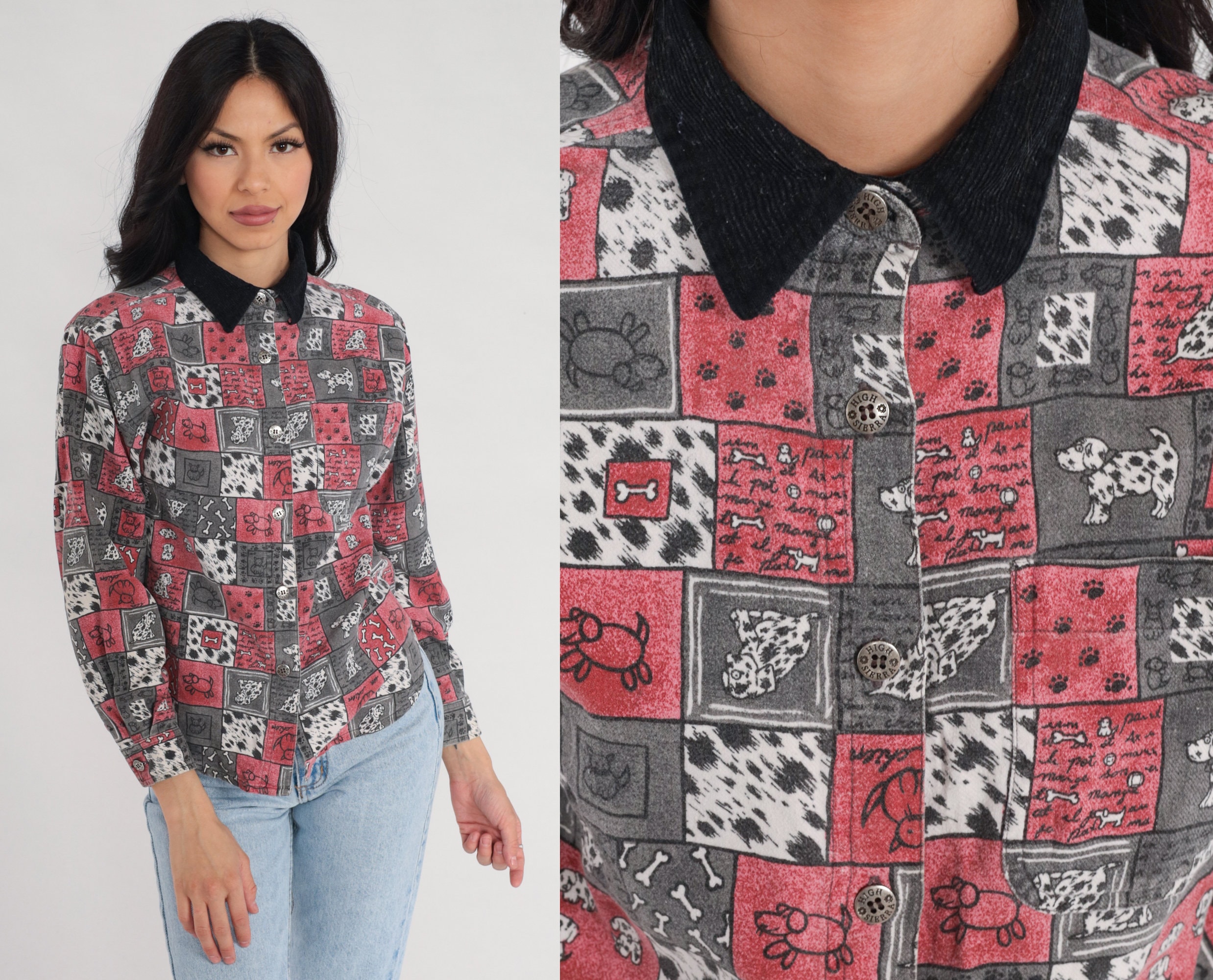 Vintage 90s shirt in a dalmatian dog print with buttons up the front.