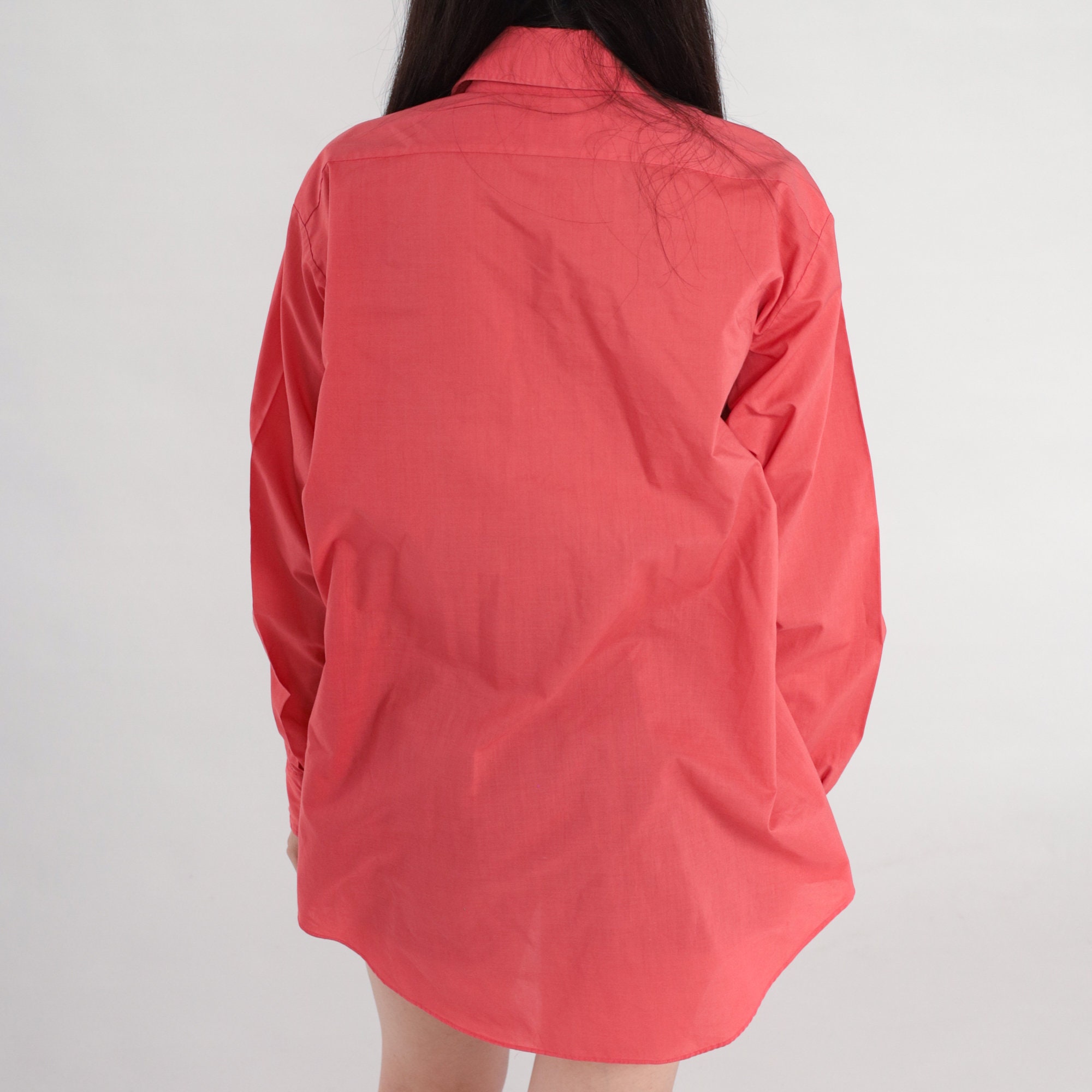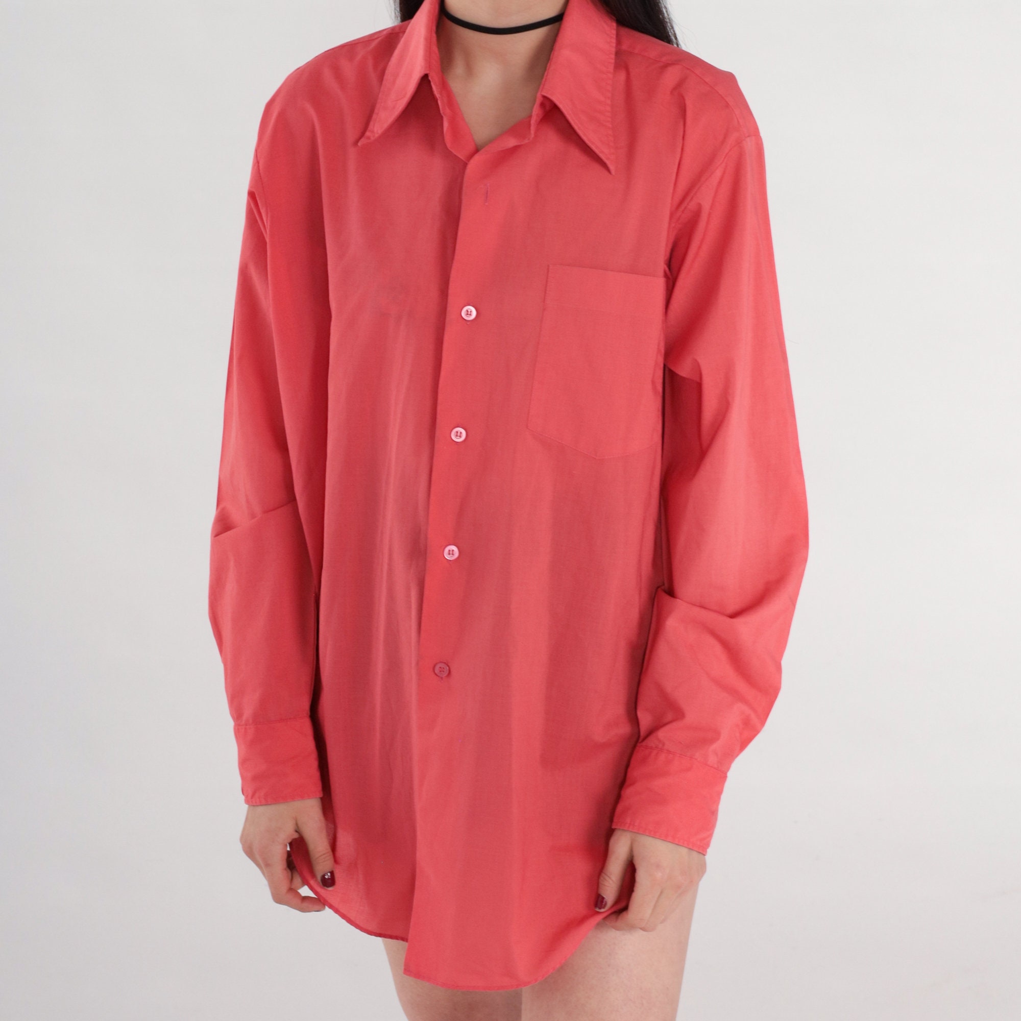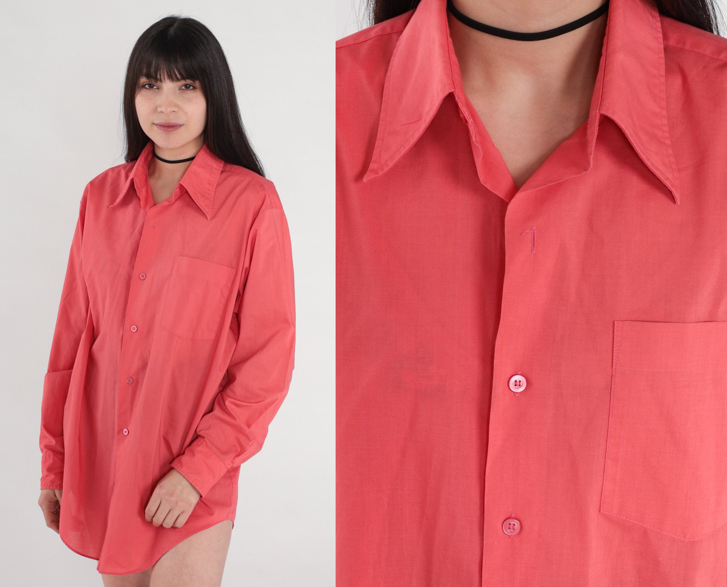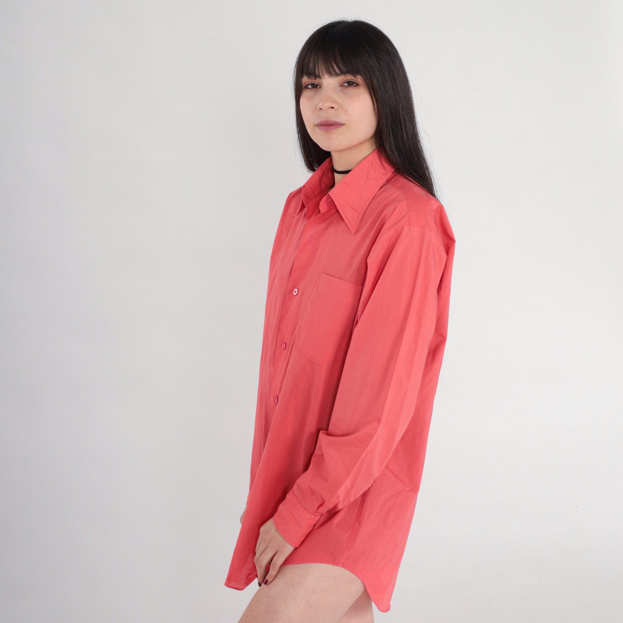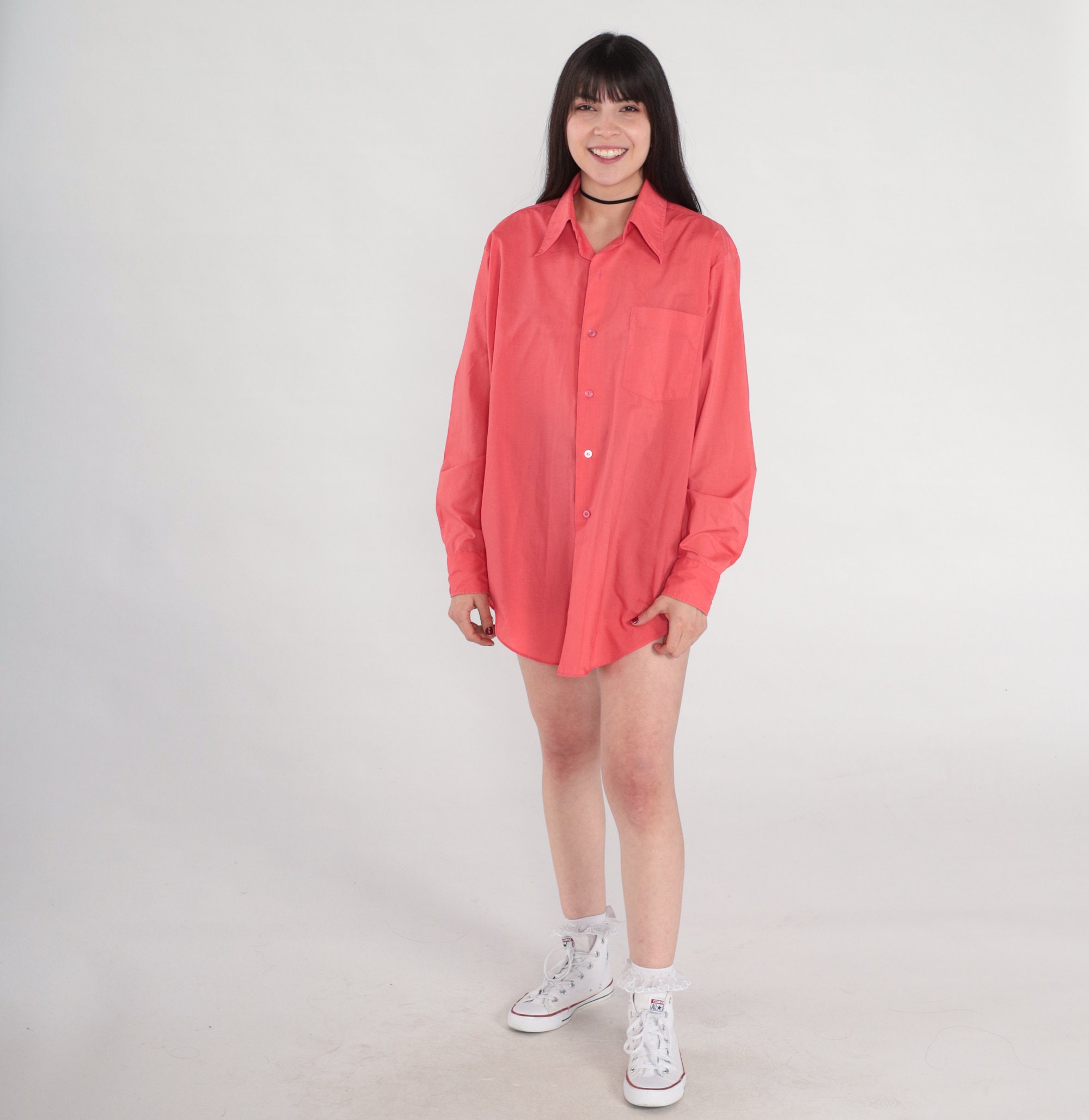 Vintage 70s shirt in coral pink with long sleeves and buttons up the front.