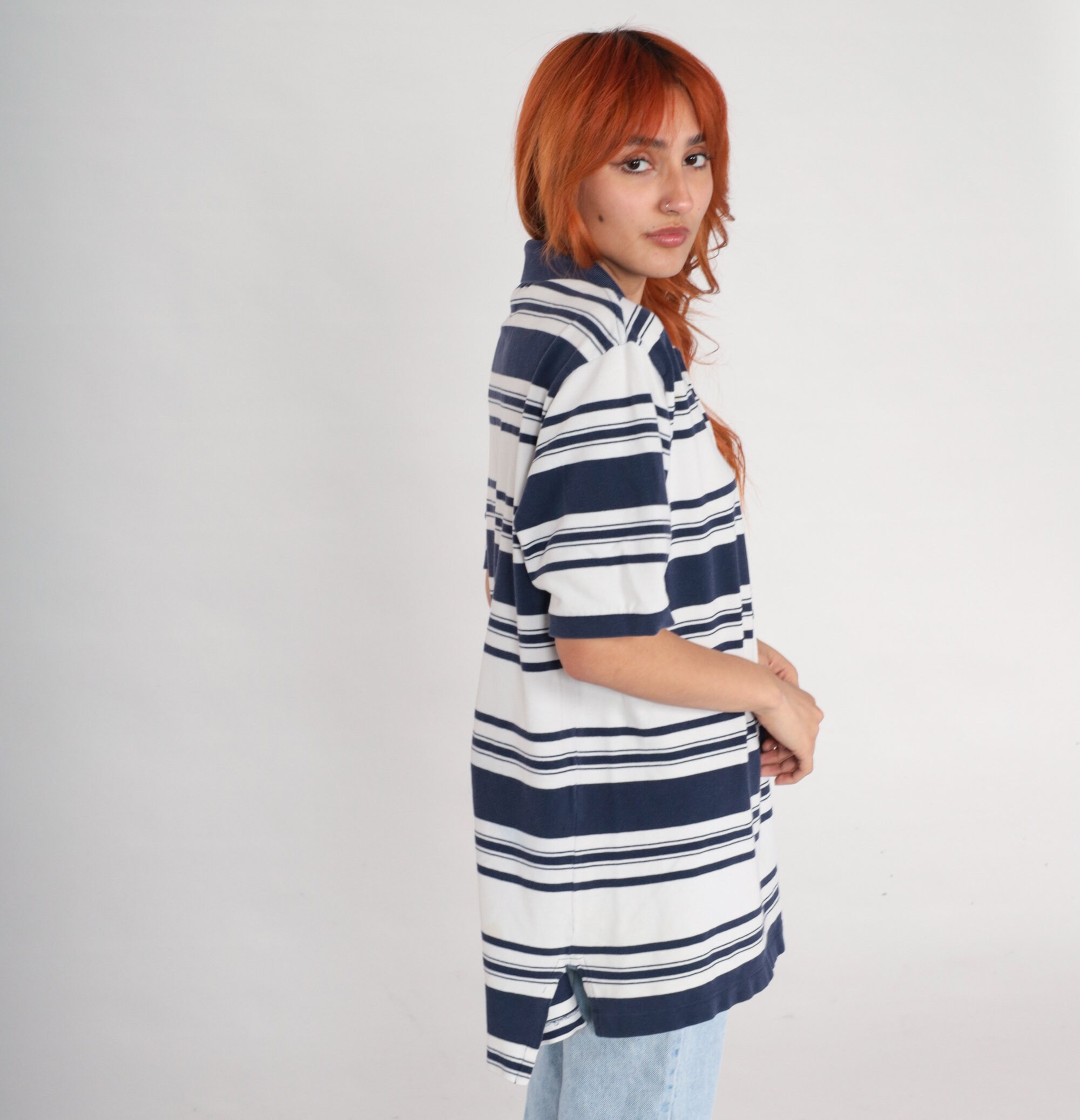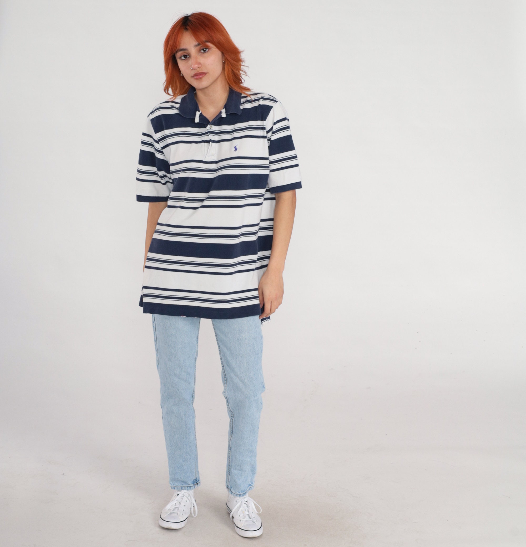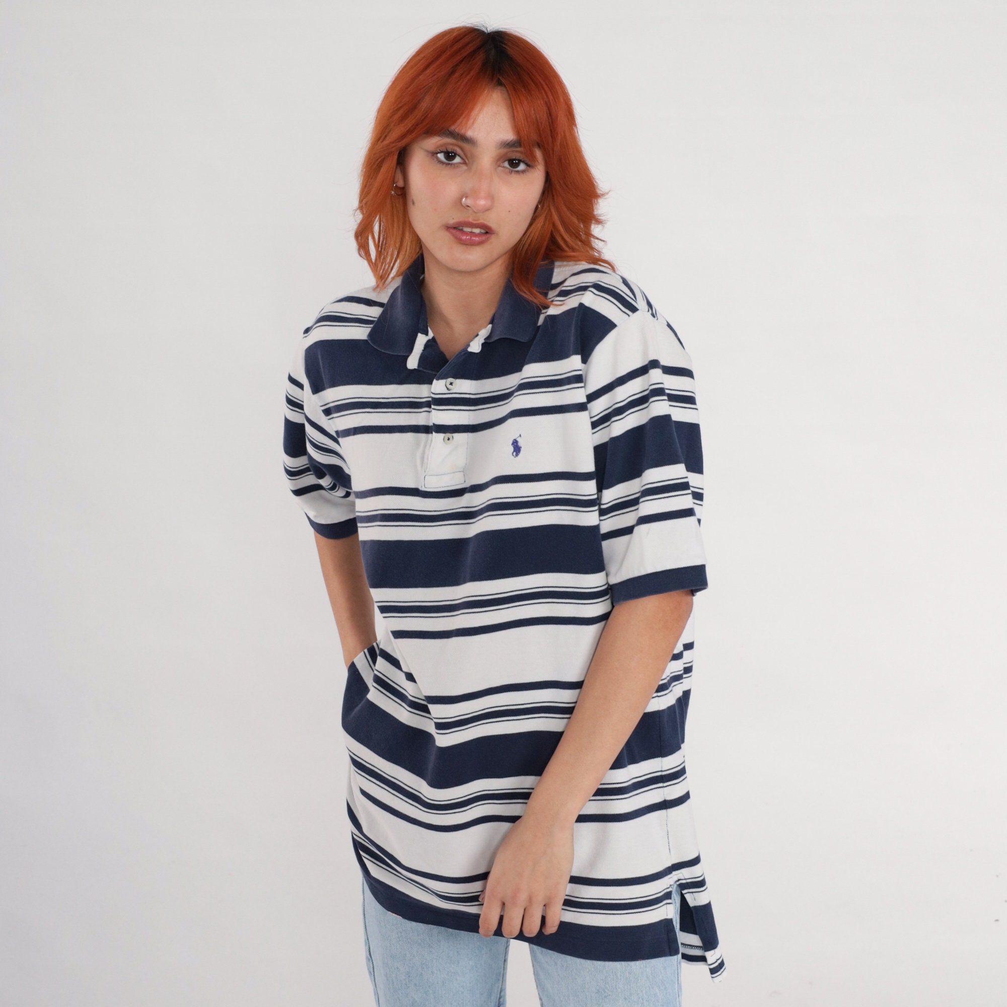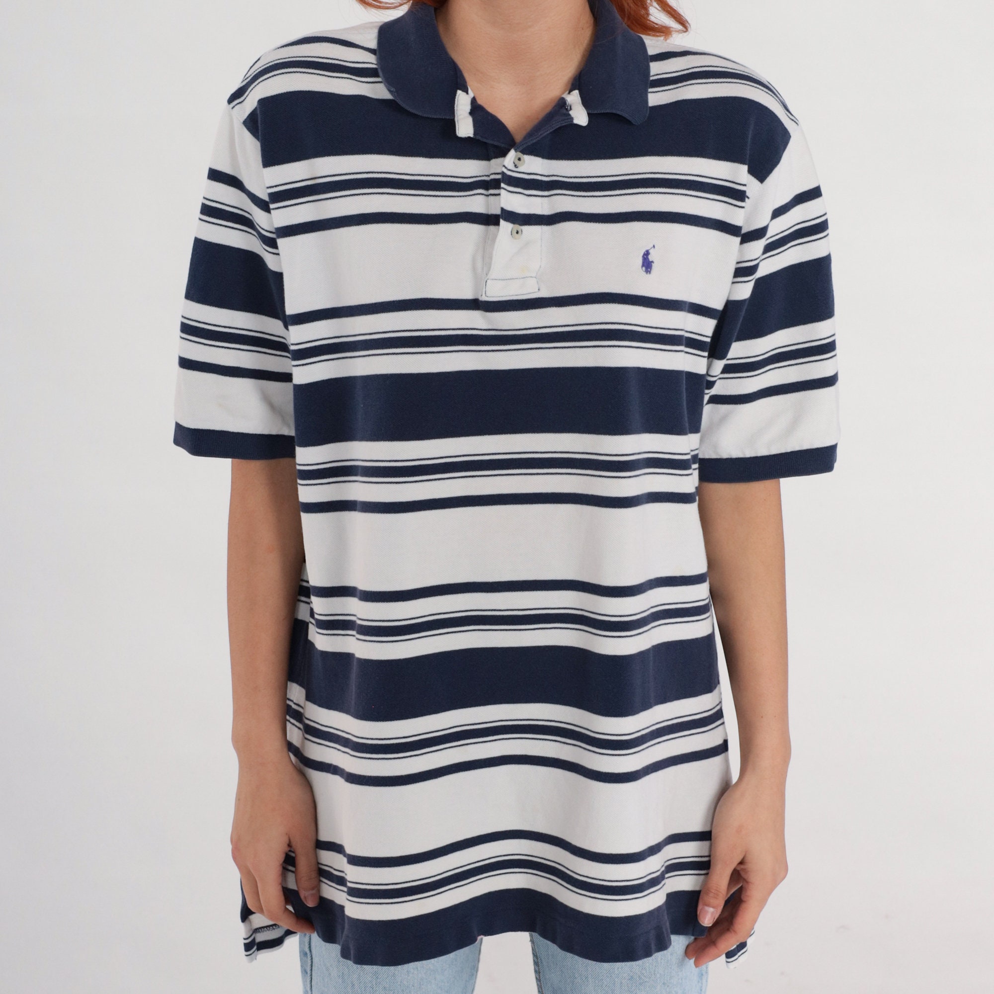 Vintage 90s polo shirt by Polo Golf in stripes with buttons on the chest. Short sleeves.