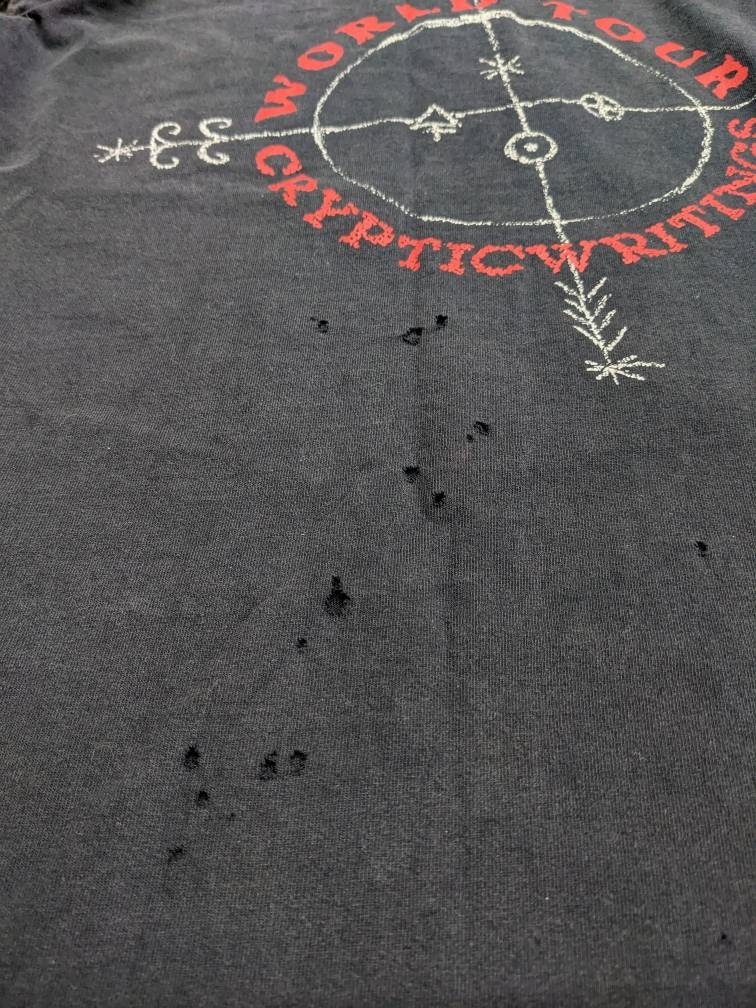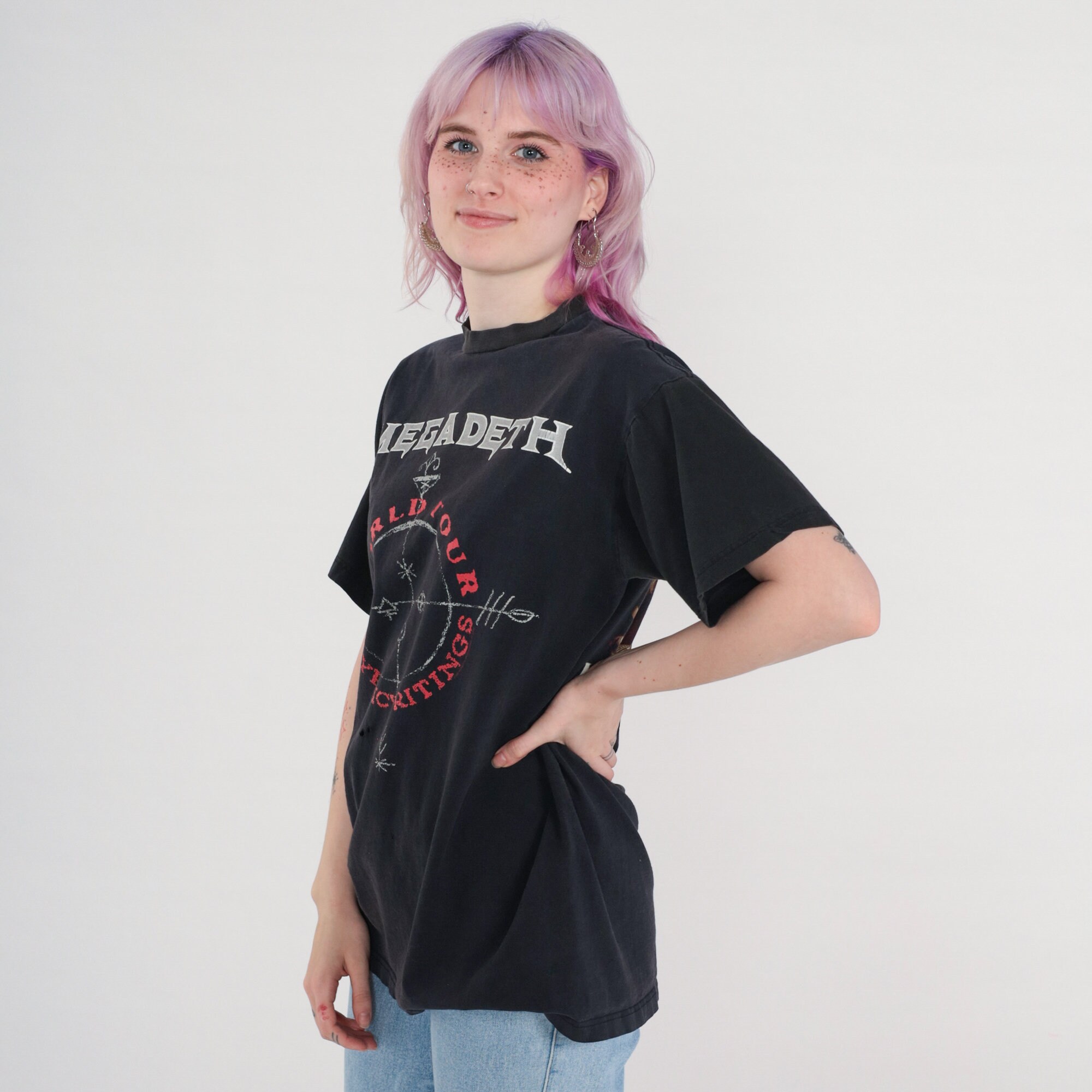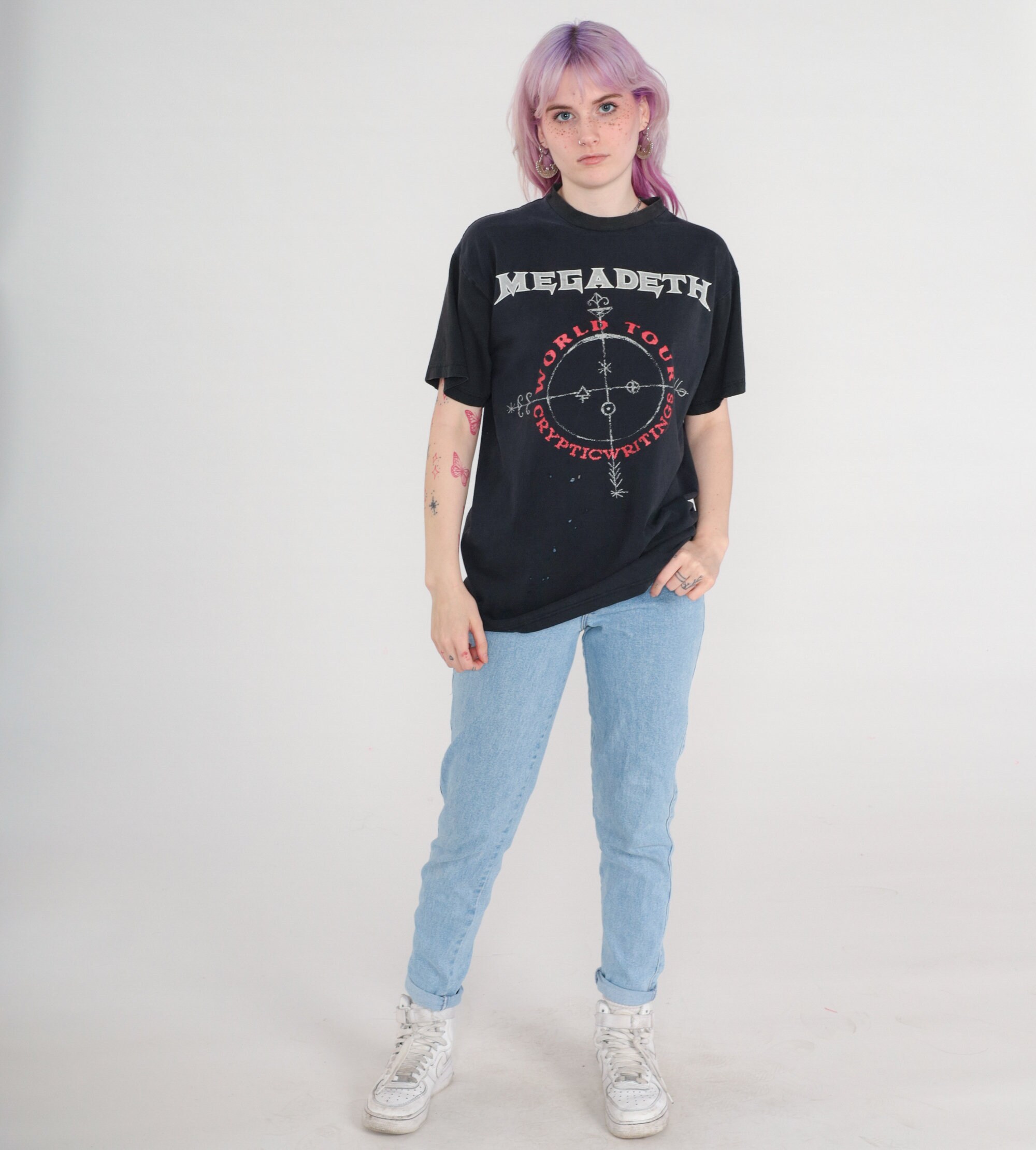 Vintage 90s Megadeth t shirt from their 1997 Cryptic Writings world tour. Distressed with holes.