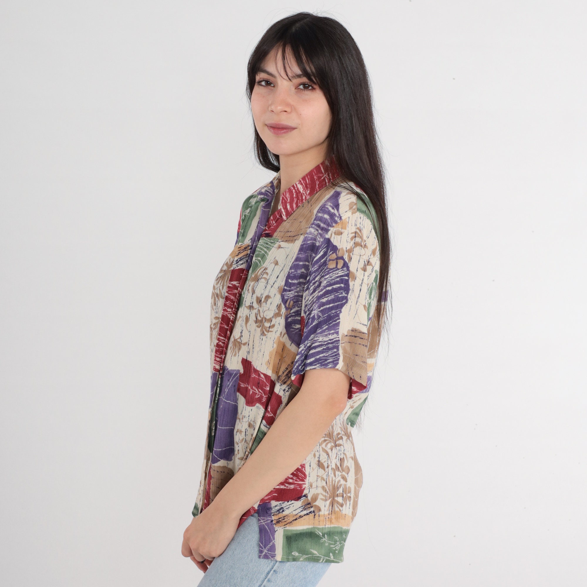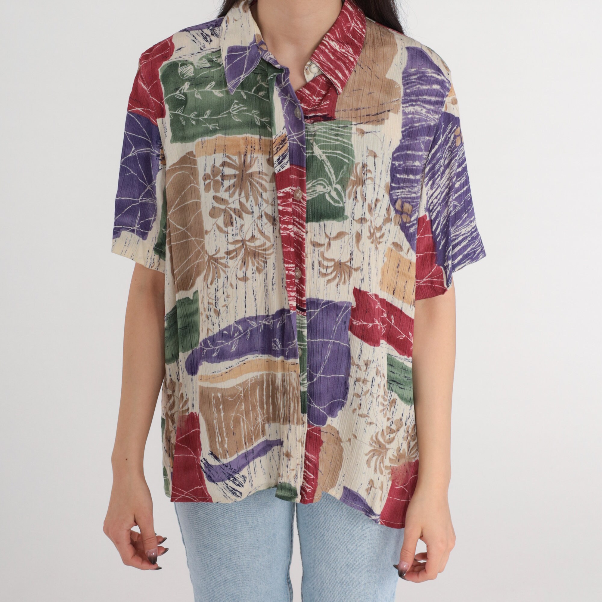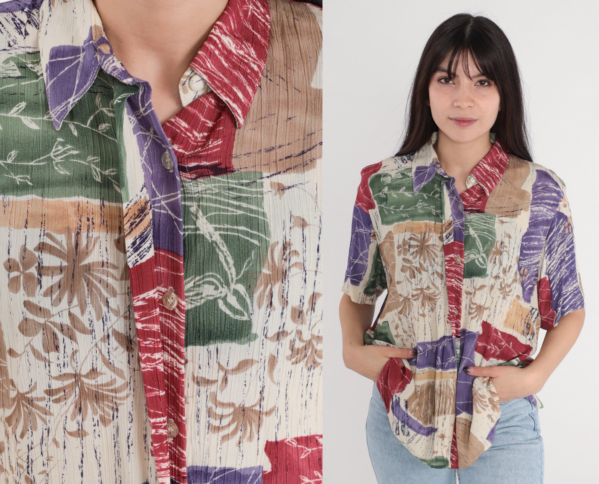 Vintage 90s shirt in a floral print with short sleeves and buttons up the front.