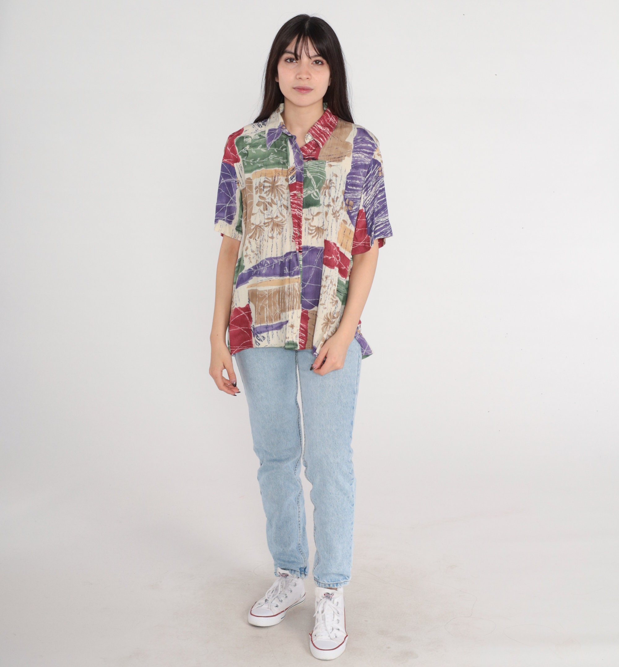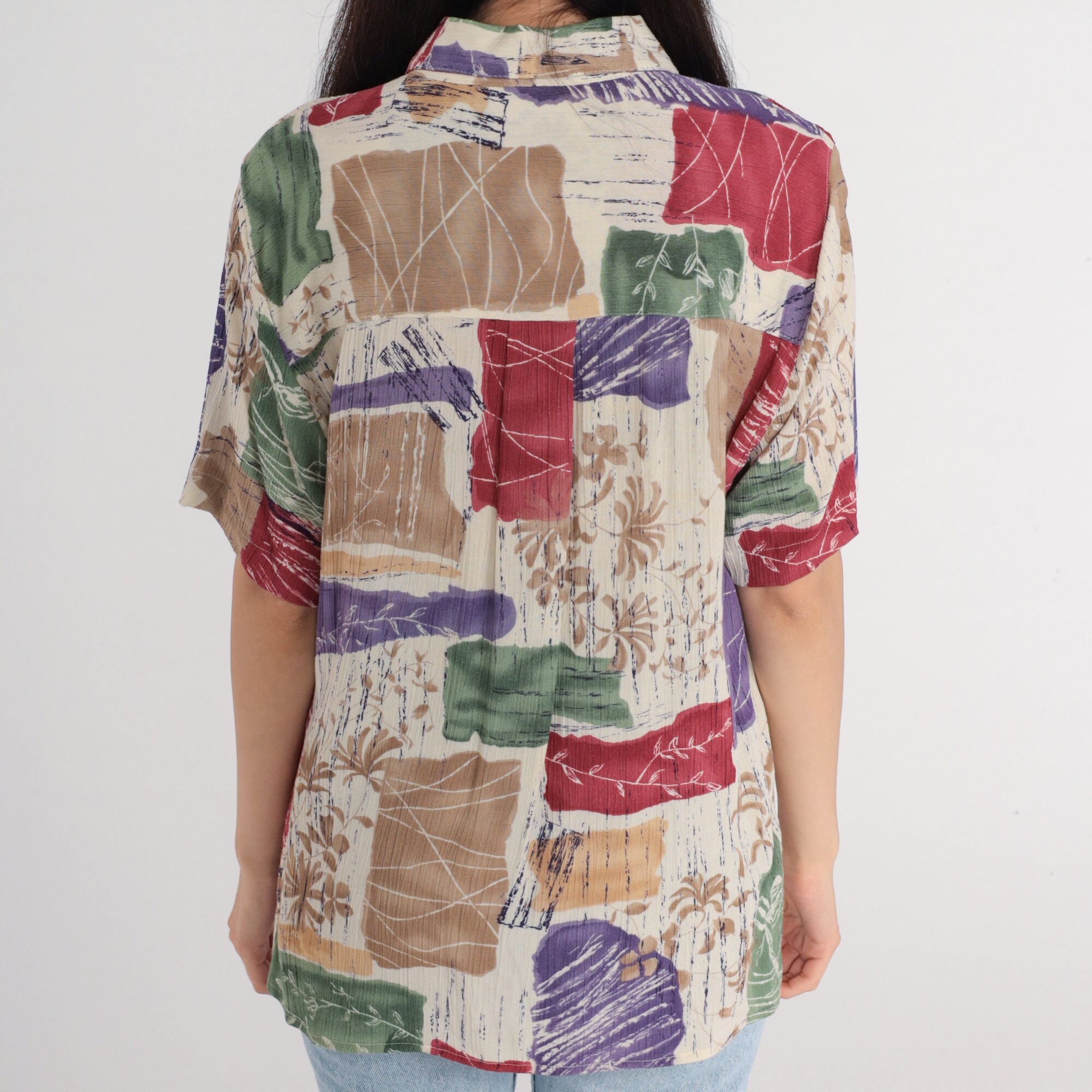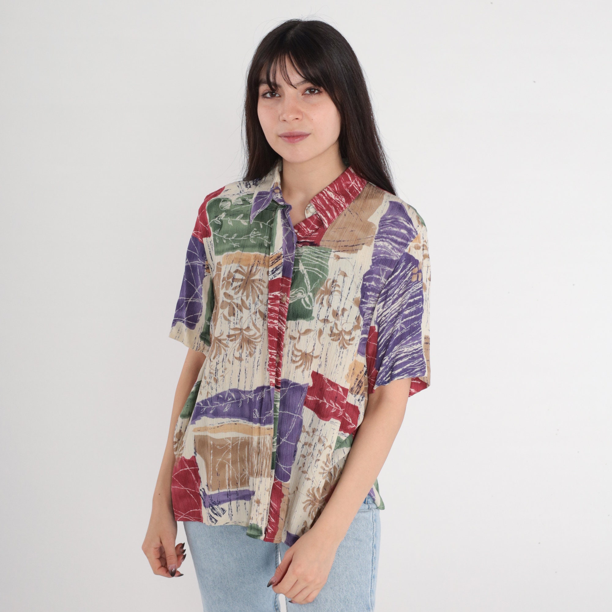 Vintage 90s shirt in a floral print with short sleeves and buttons up the front.
