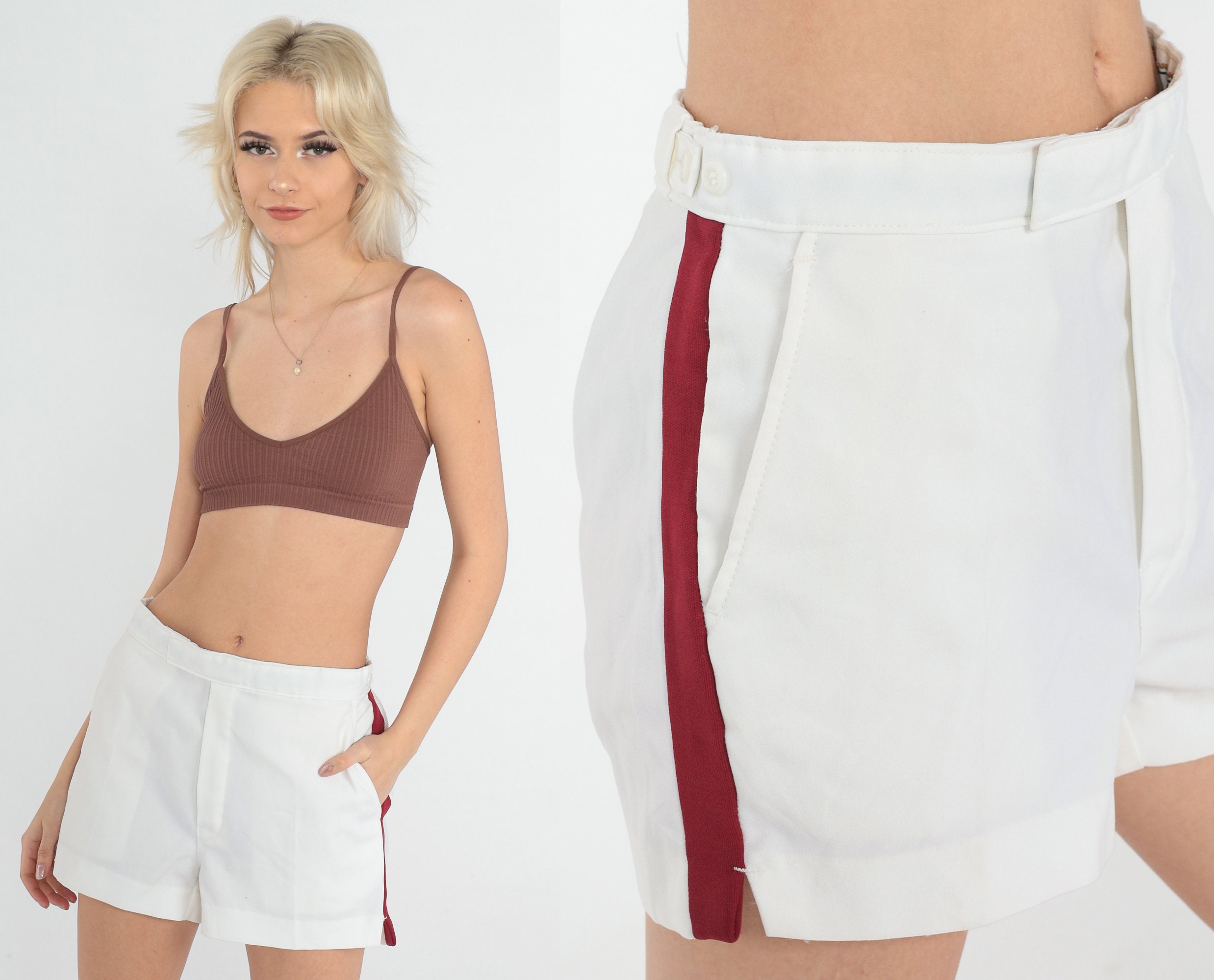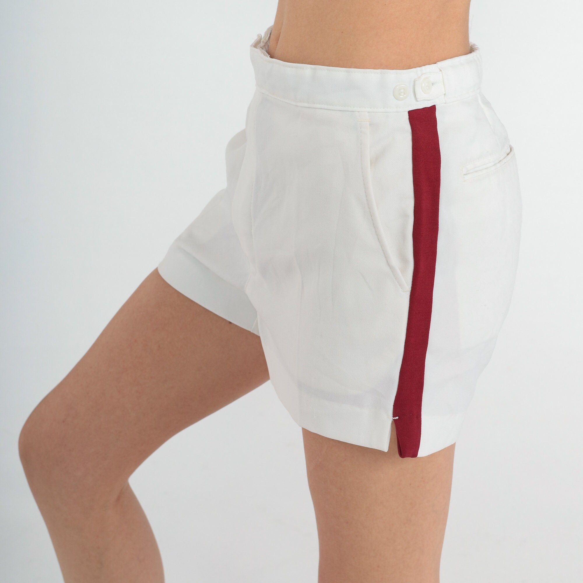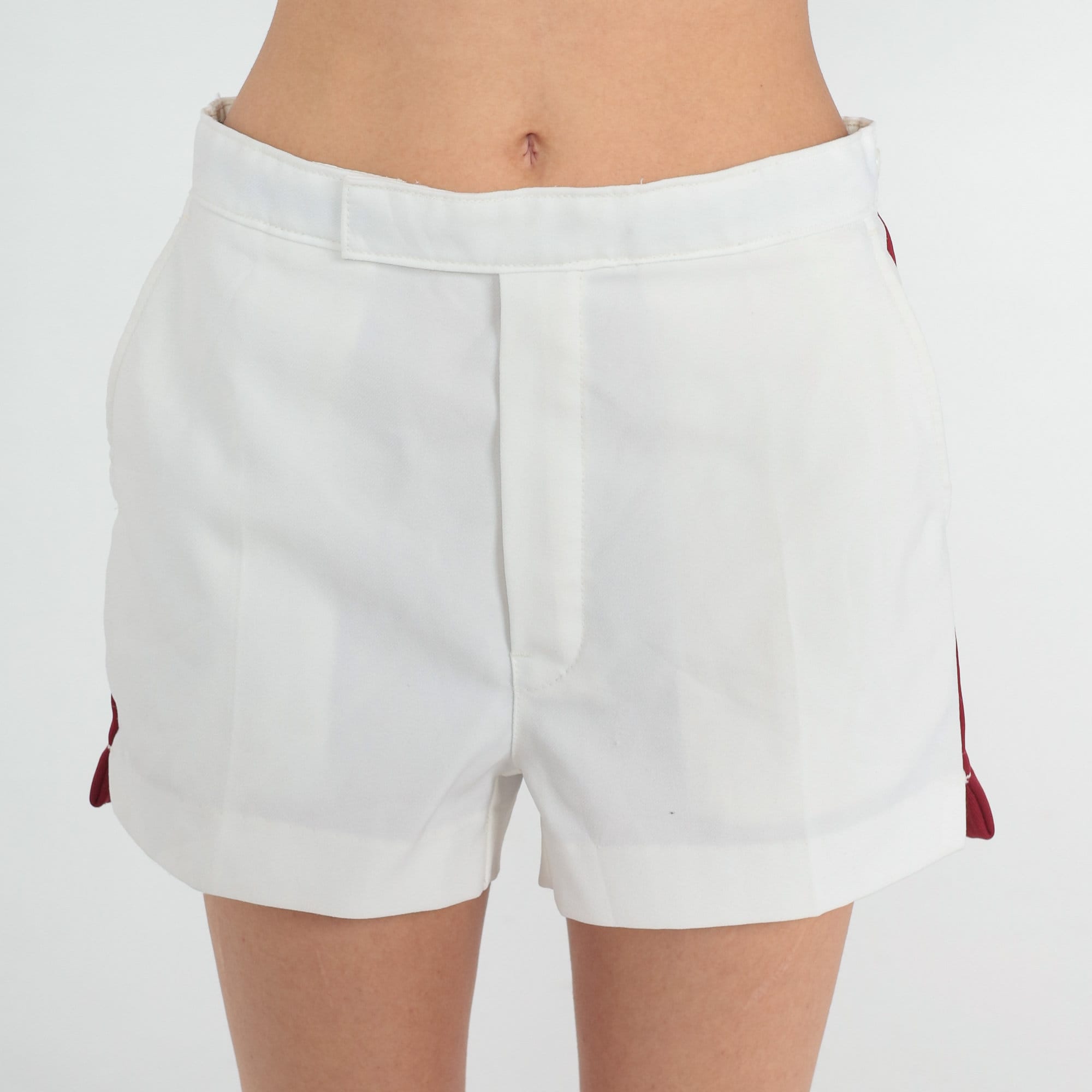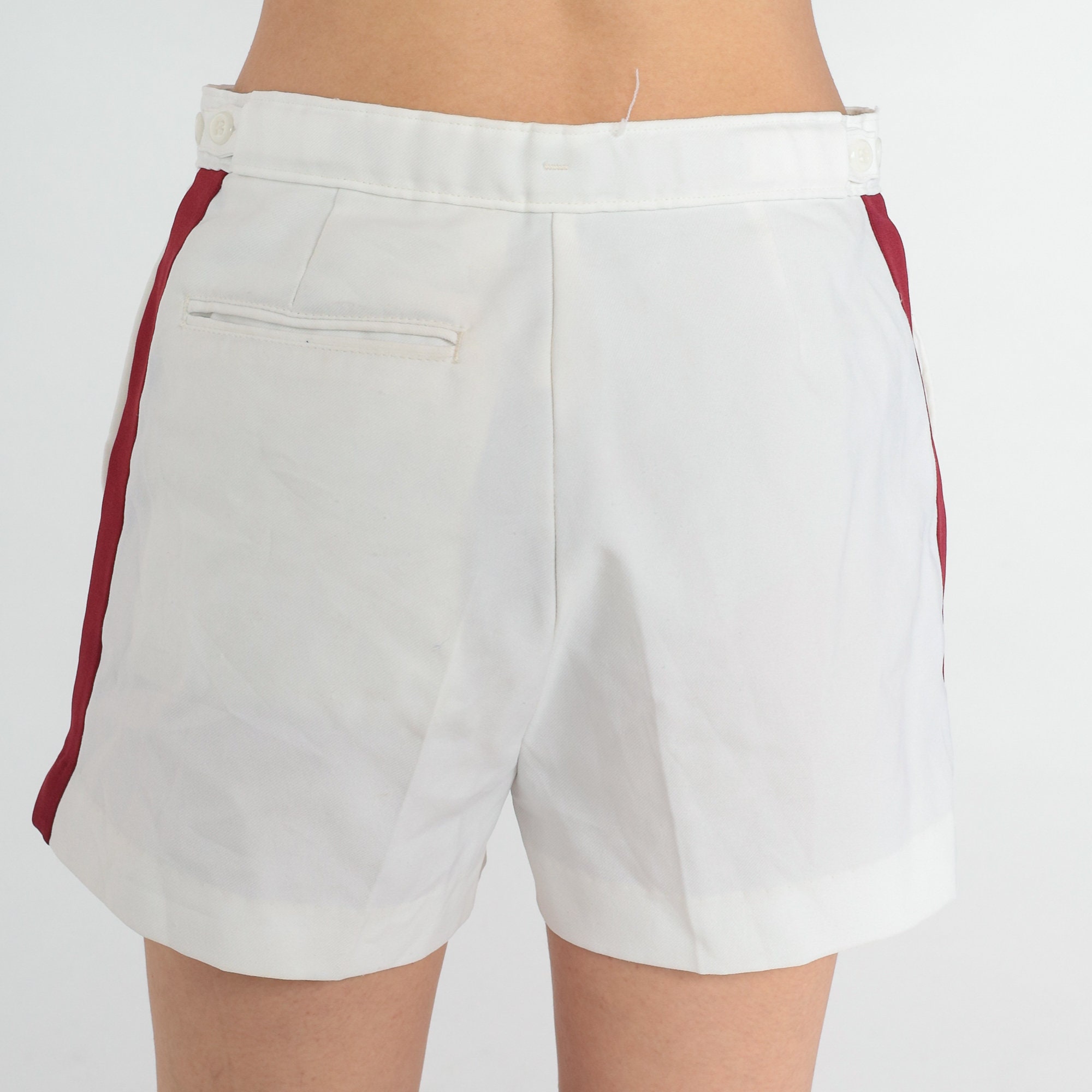 Vintage 80s tennis shorts by in white with a red stripe on the sides.