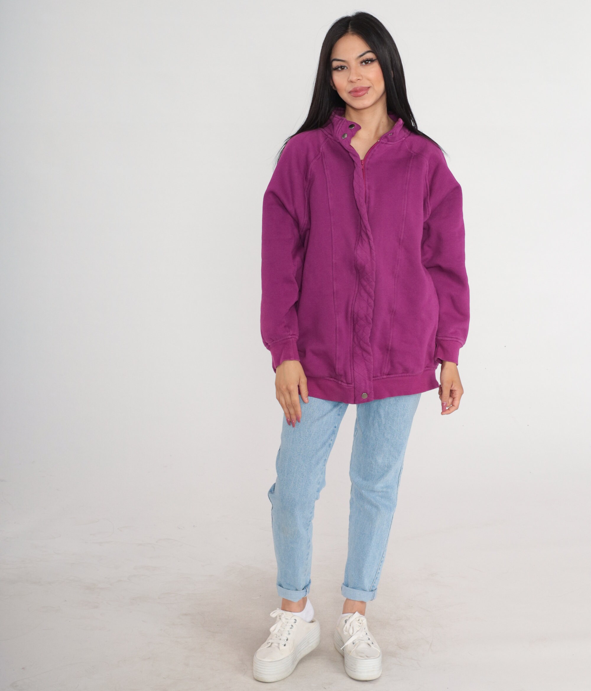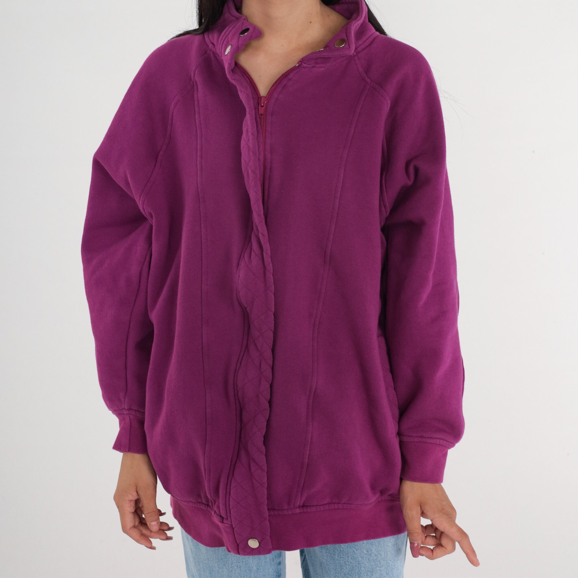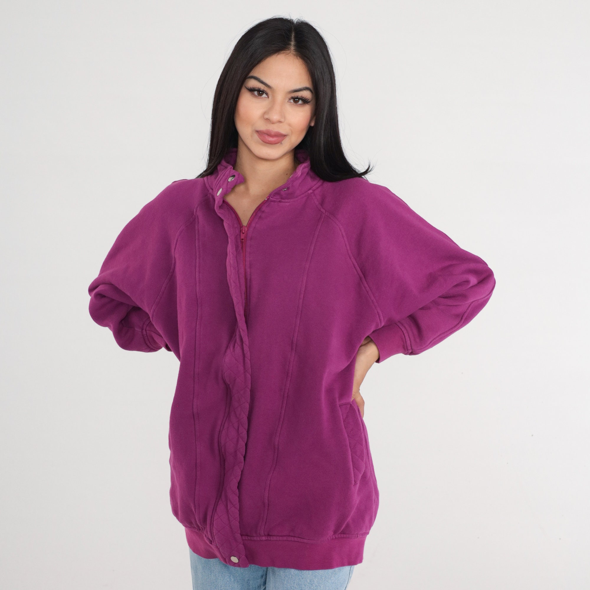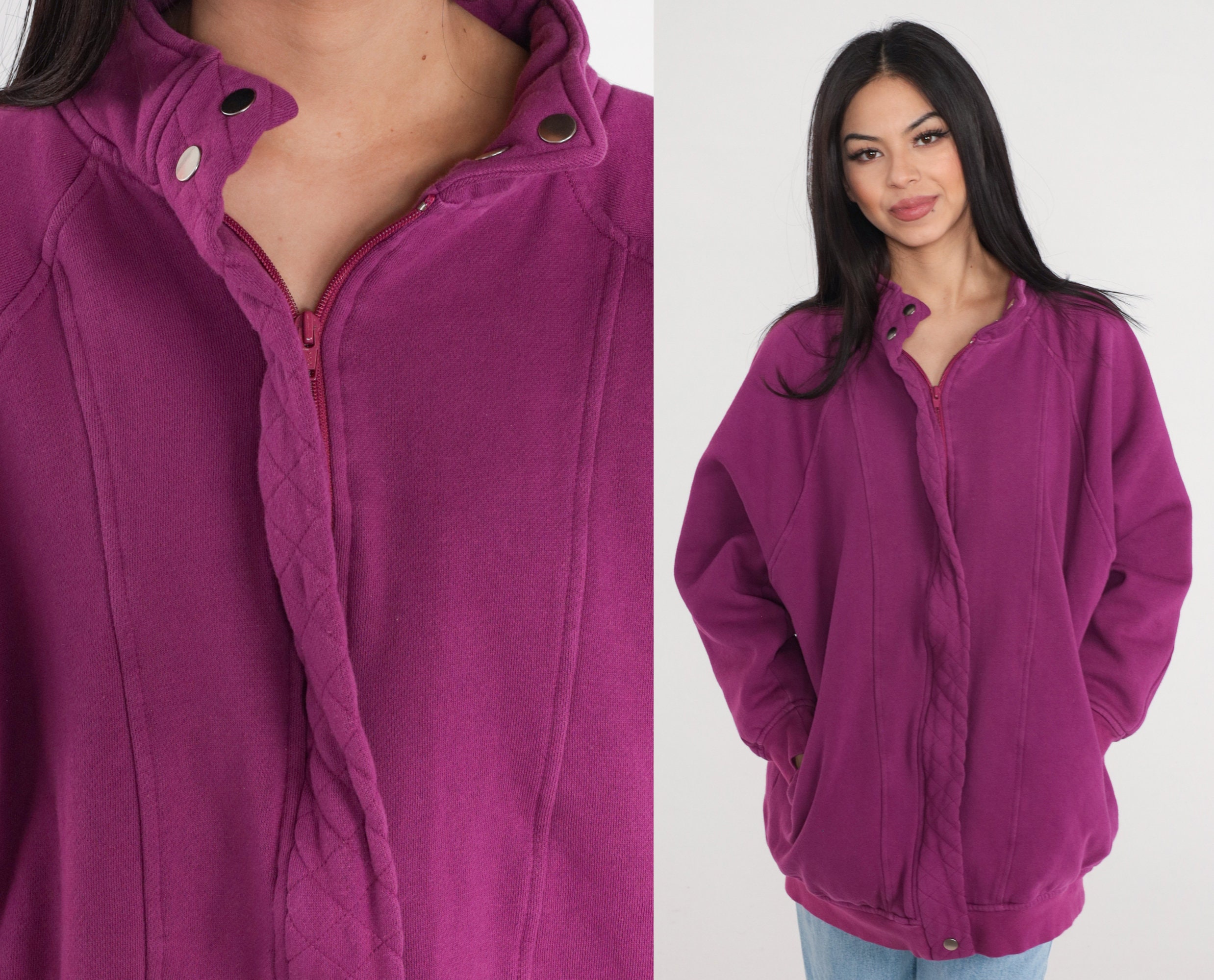 Vintage 90s sweatshirt in purple with a zipper up the front.