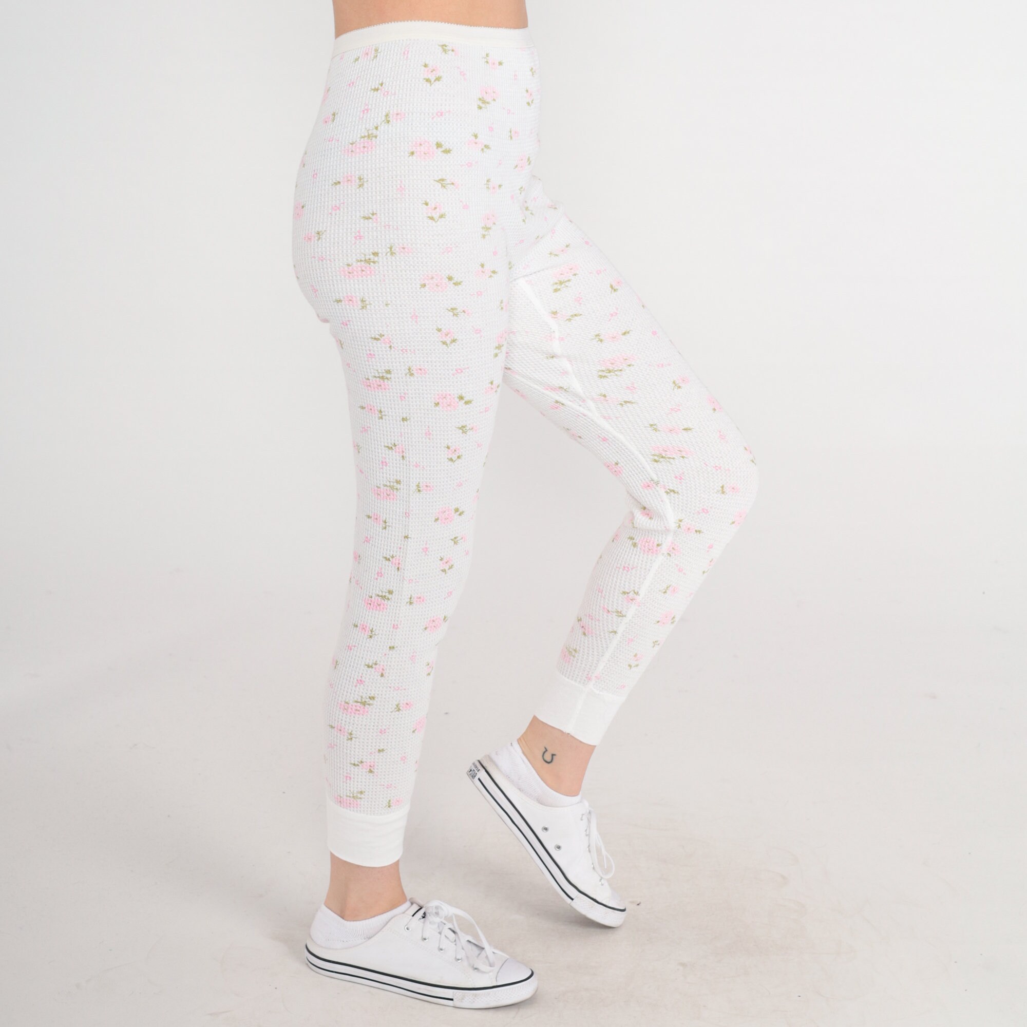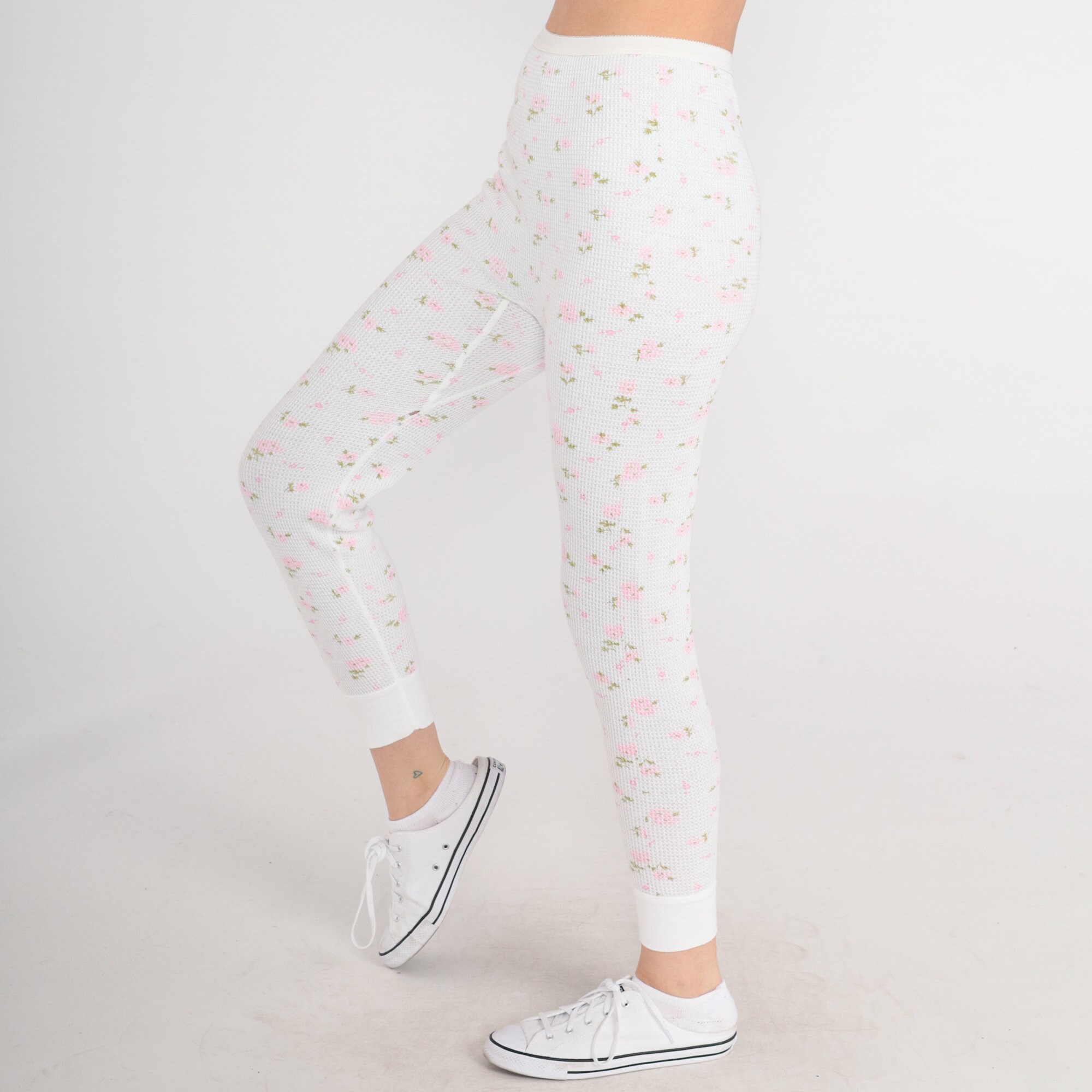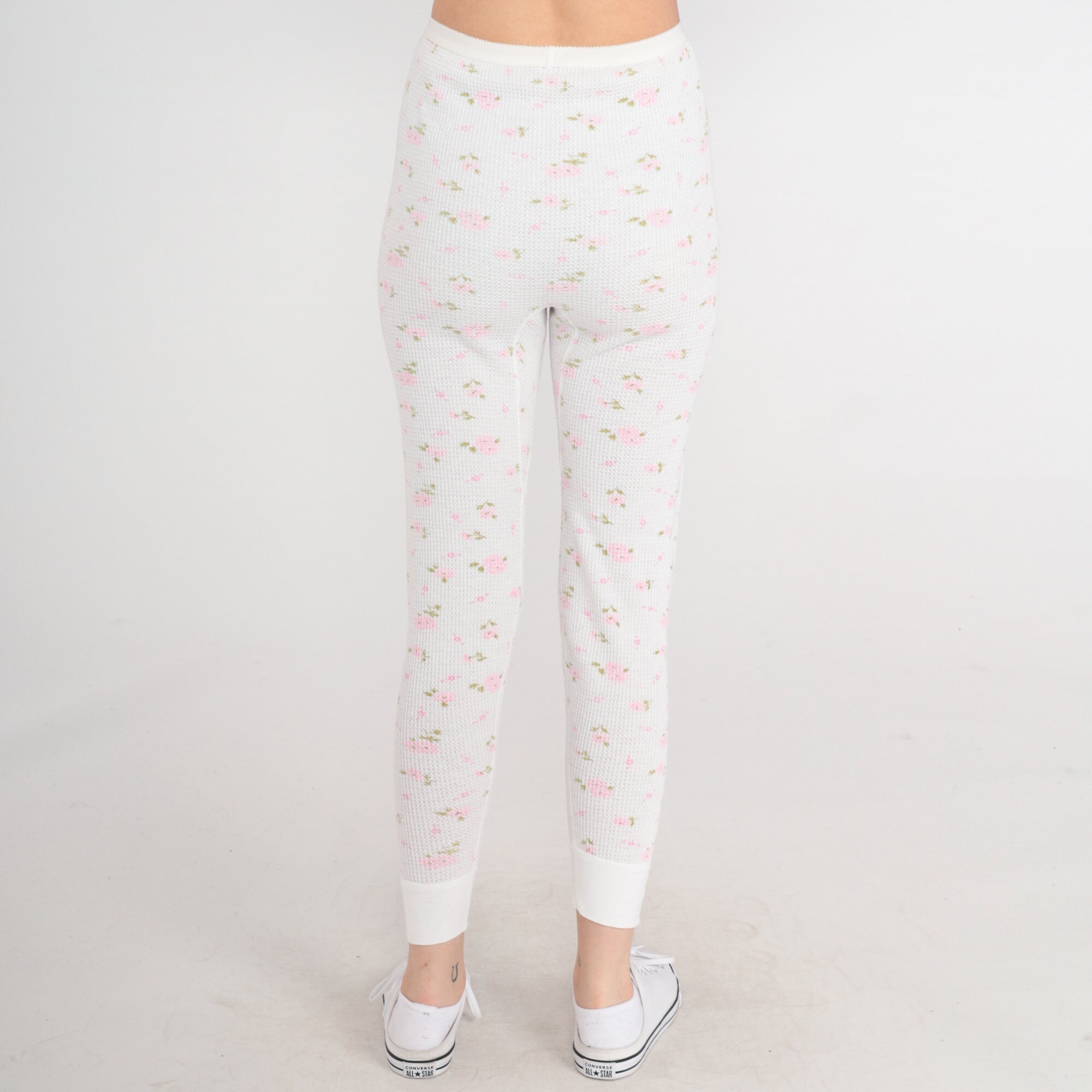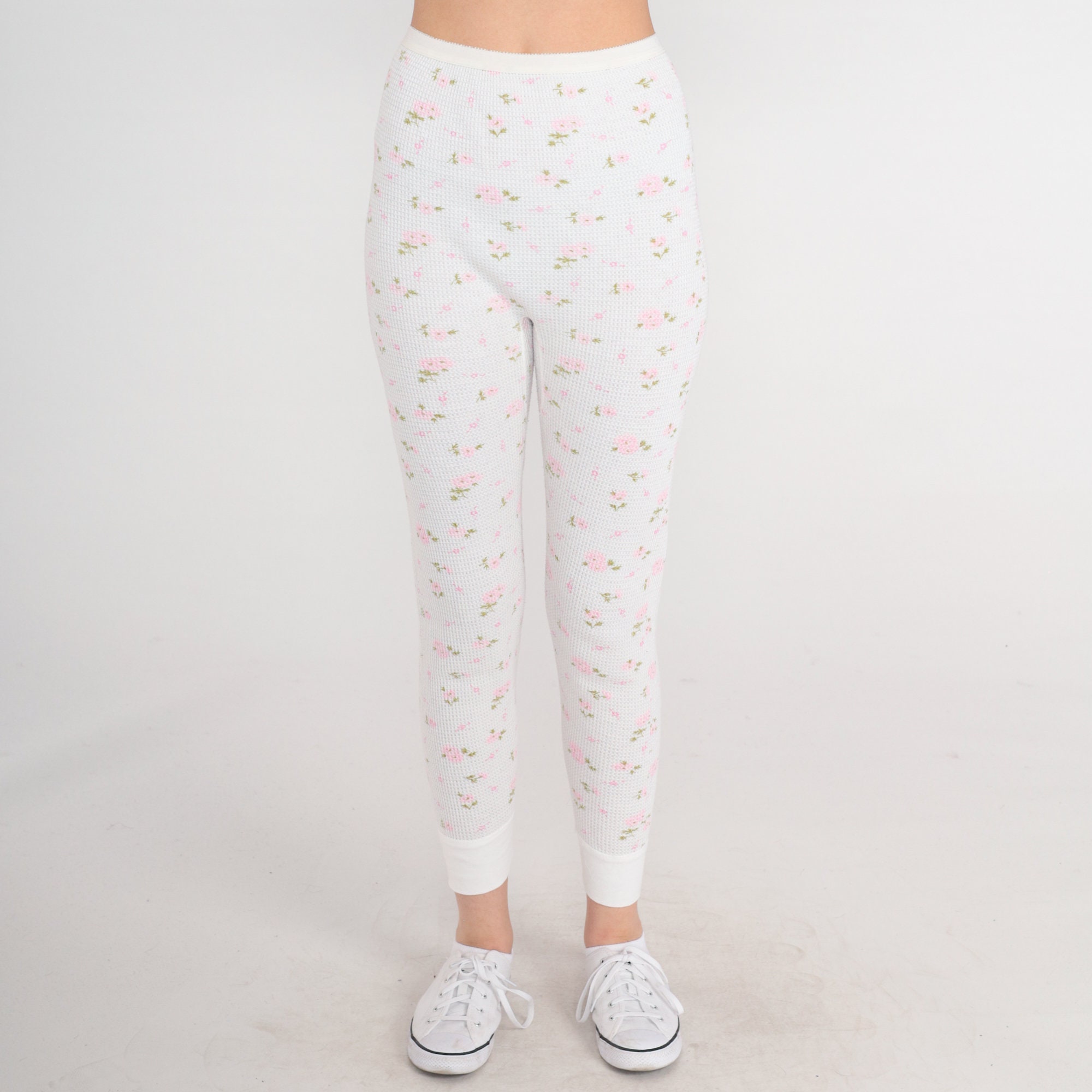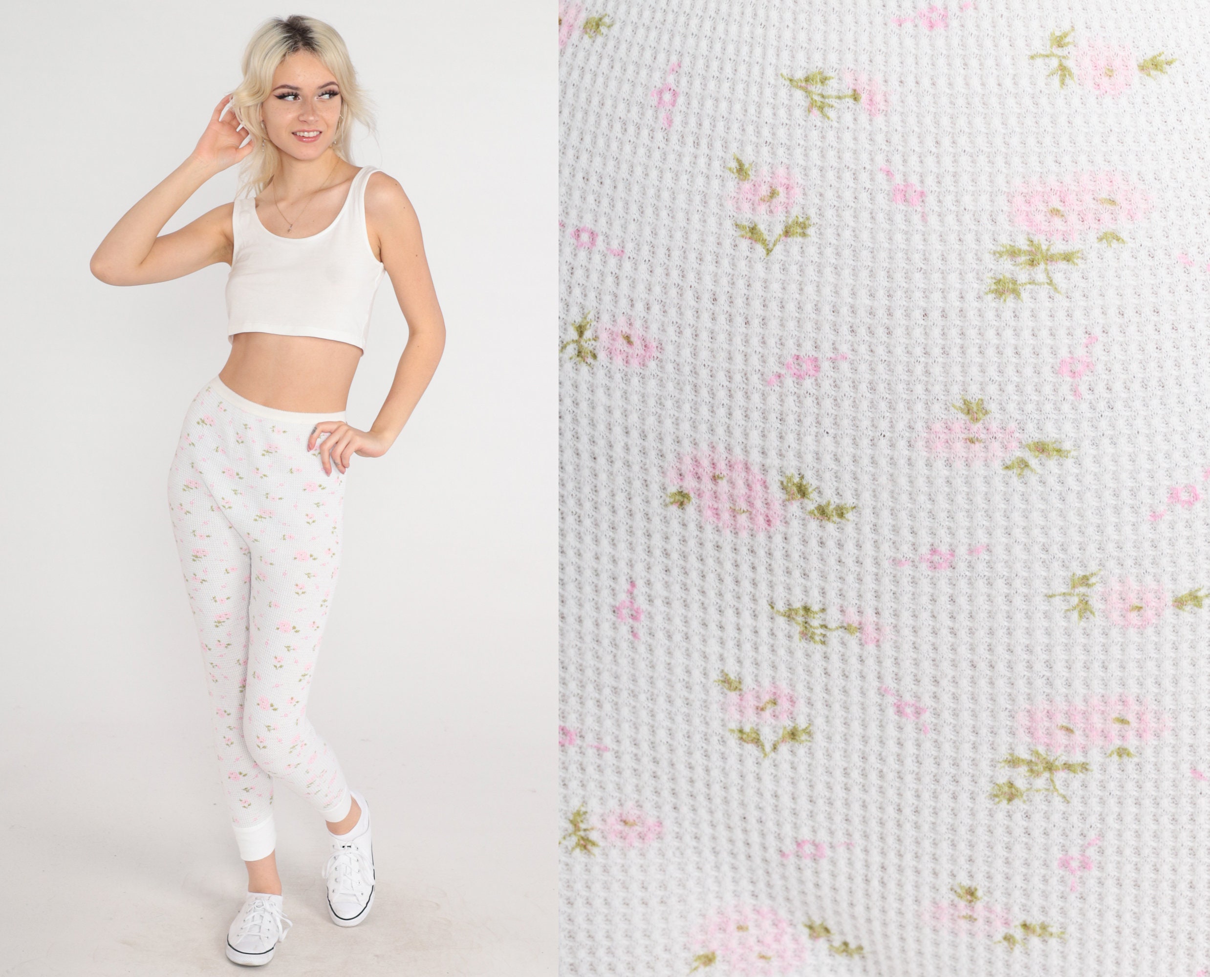 Vintage 80s shirt in white waffle knit with a floral print and an elastic waist.