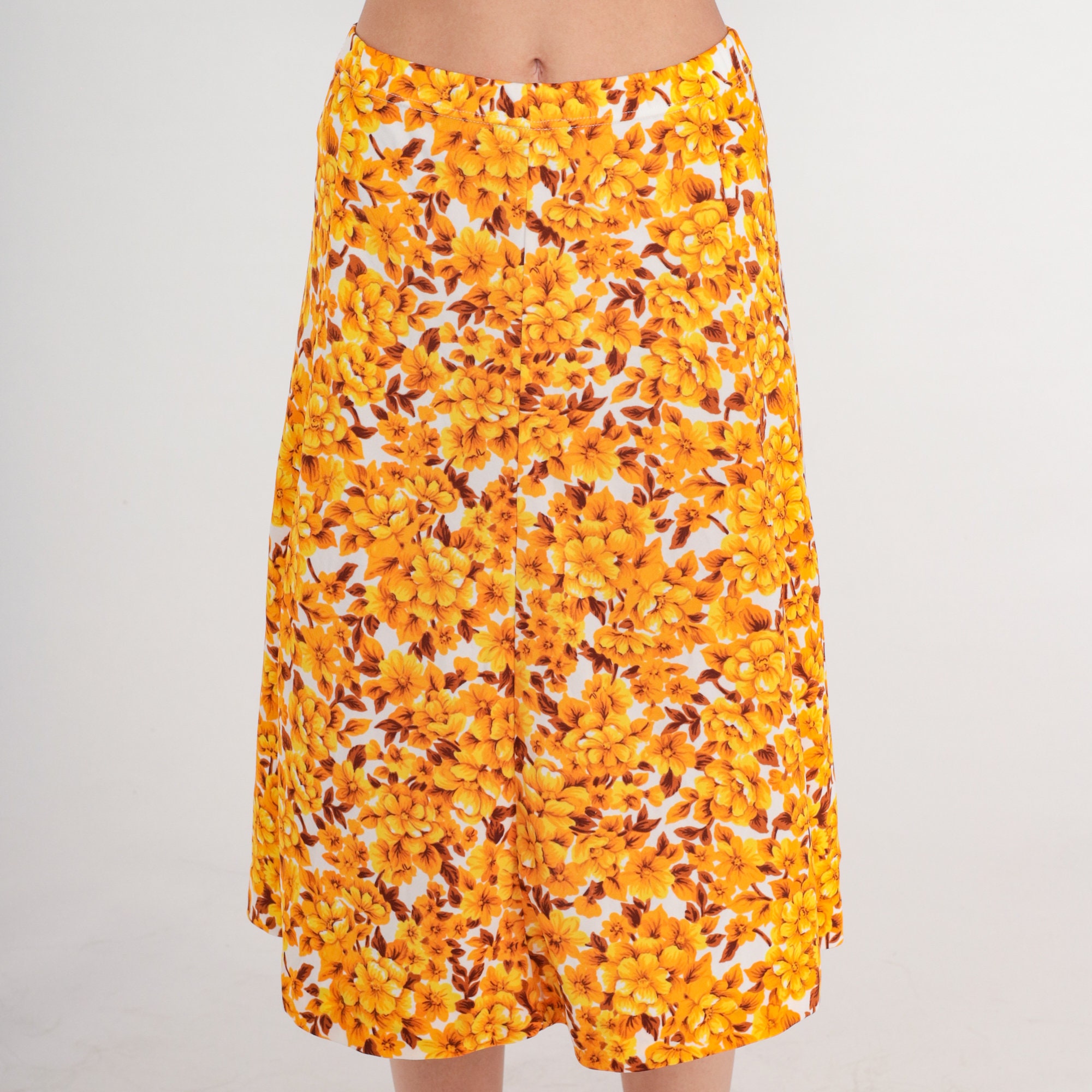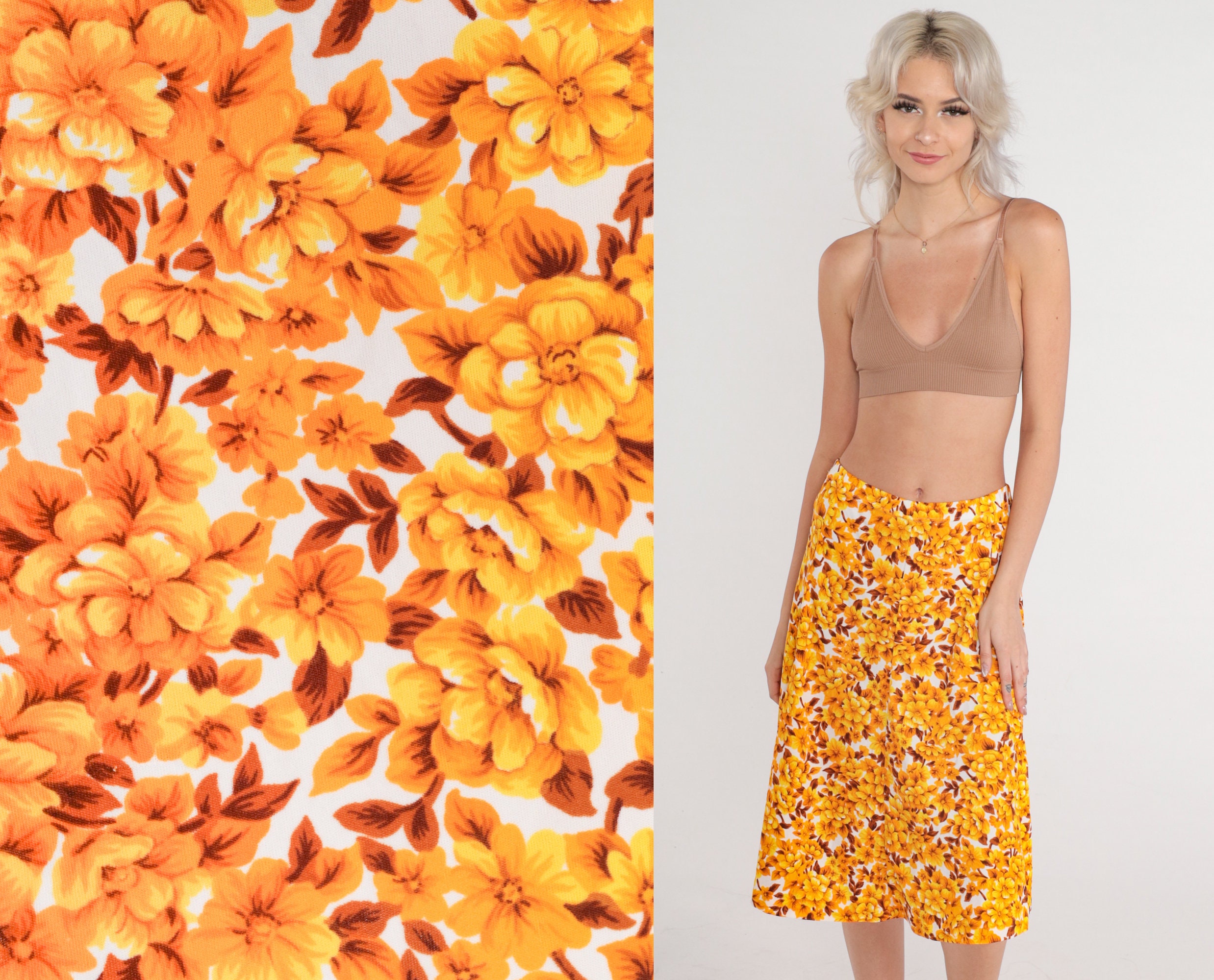 Vintage 80s skirt with a floral print. Midi length, high waist.