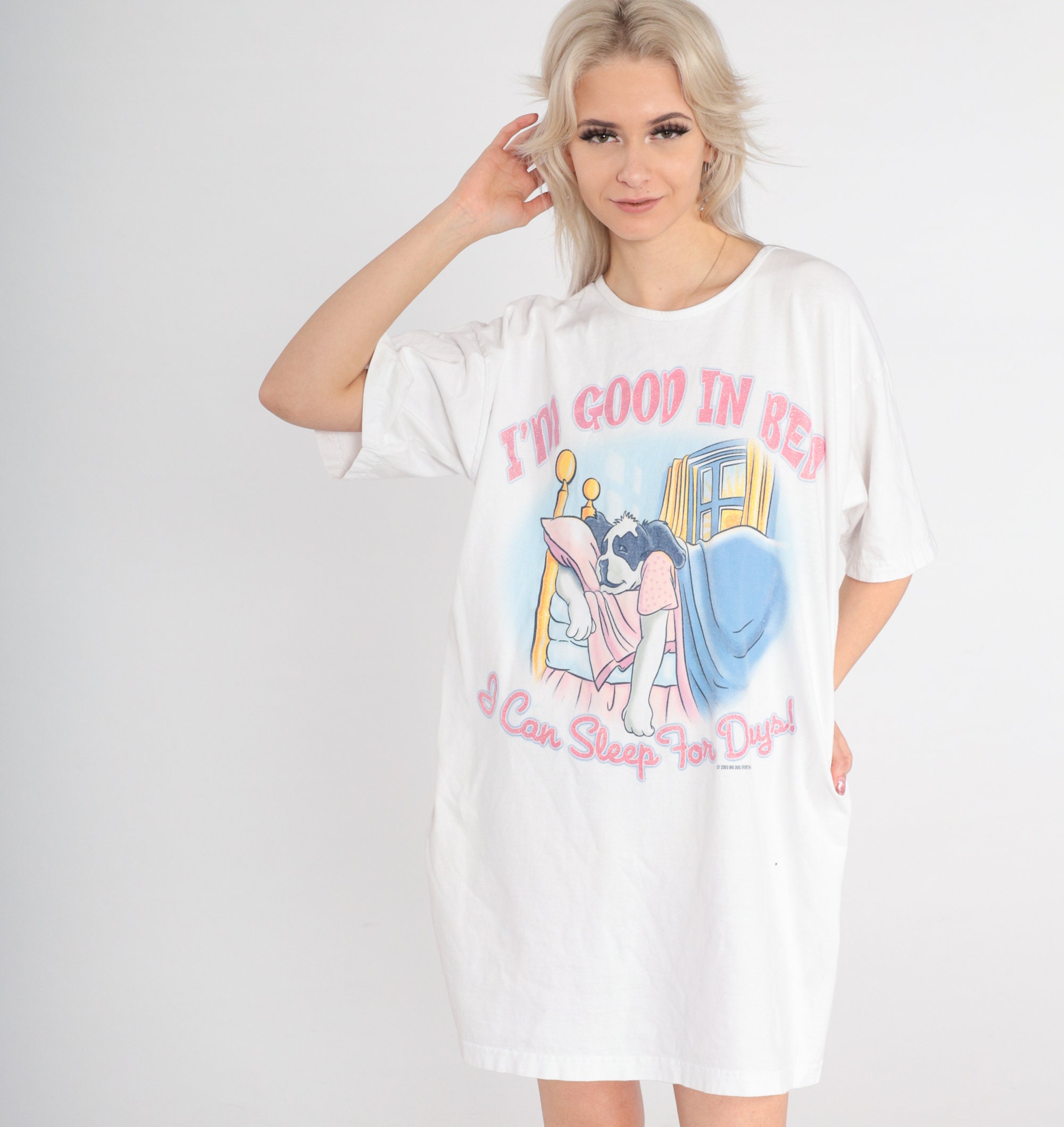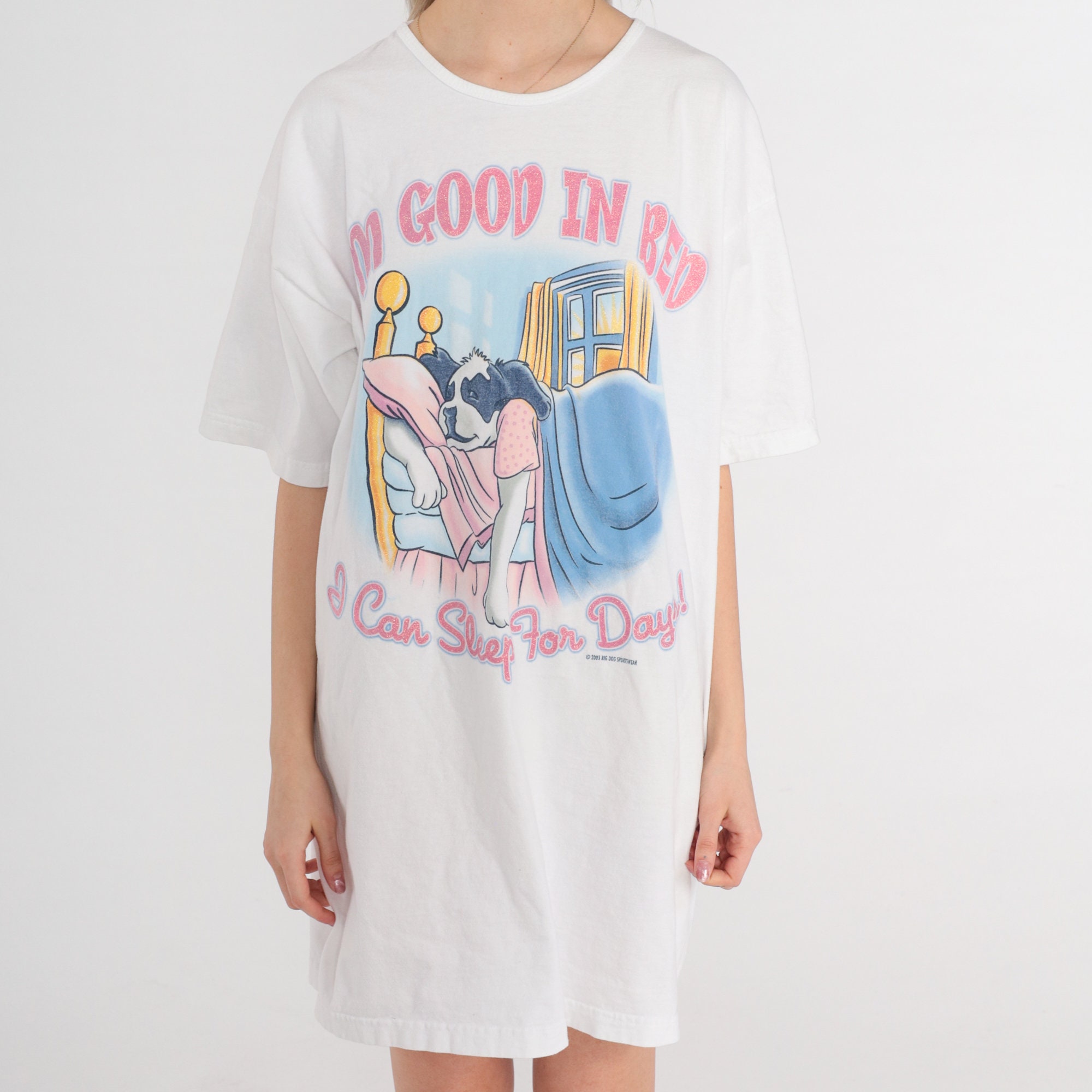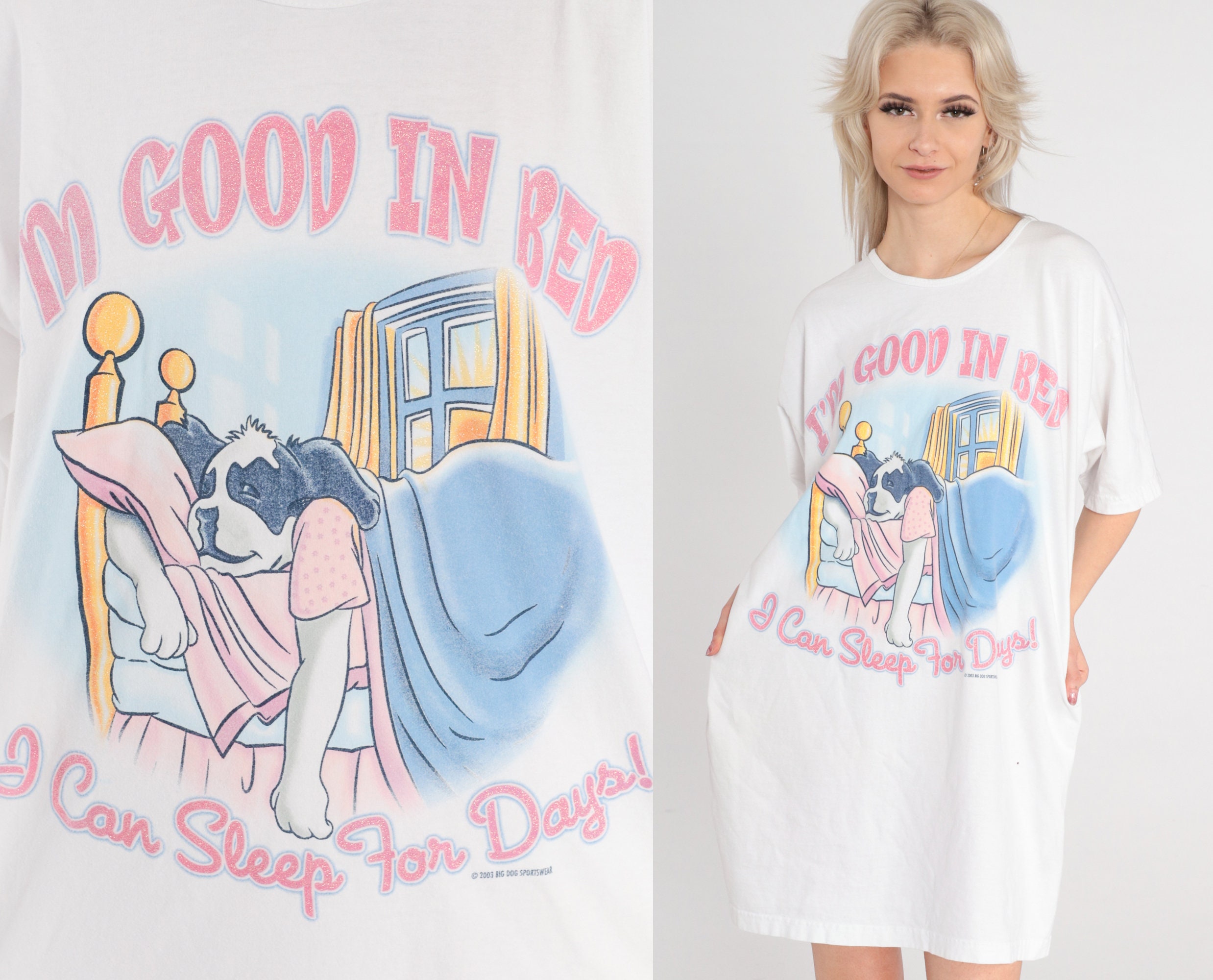Vintage 00s t shirt dress by Big Dogs with 'I'm good in bed, I can sleep for days' on the front.