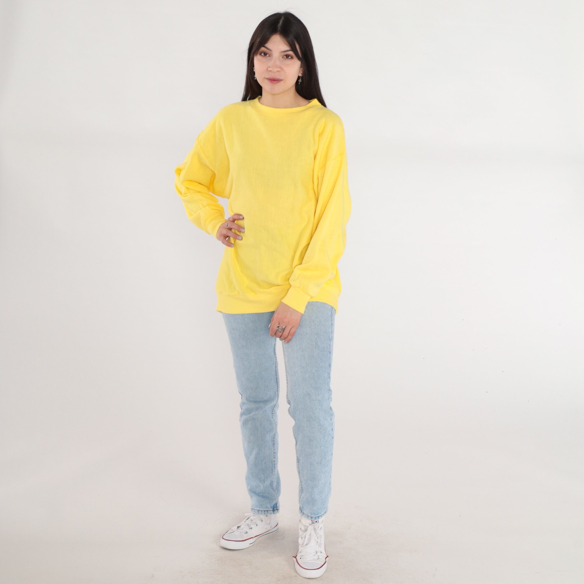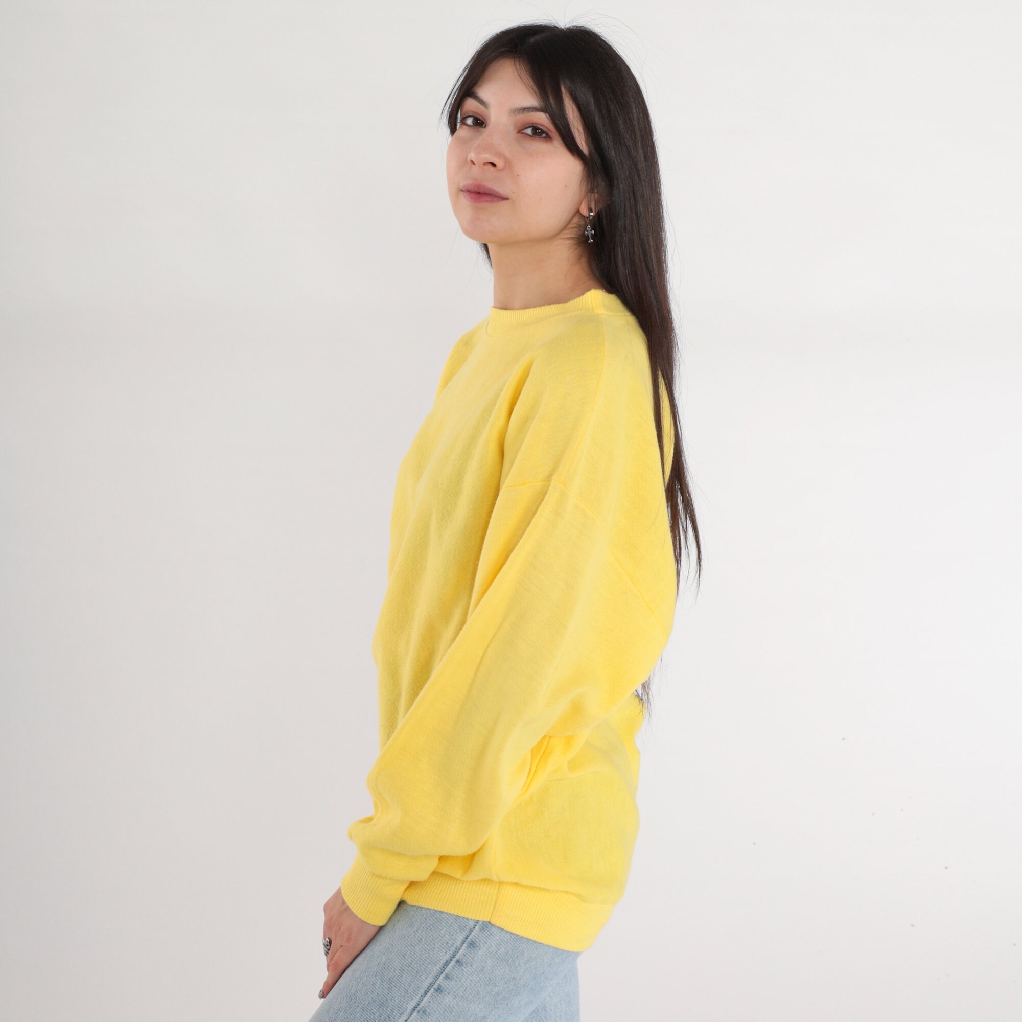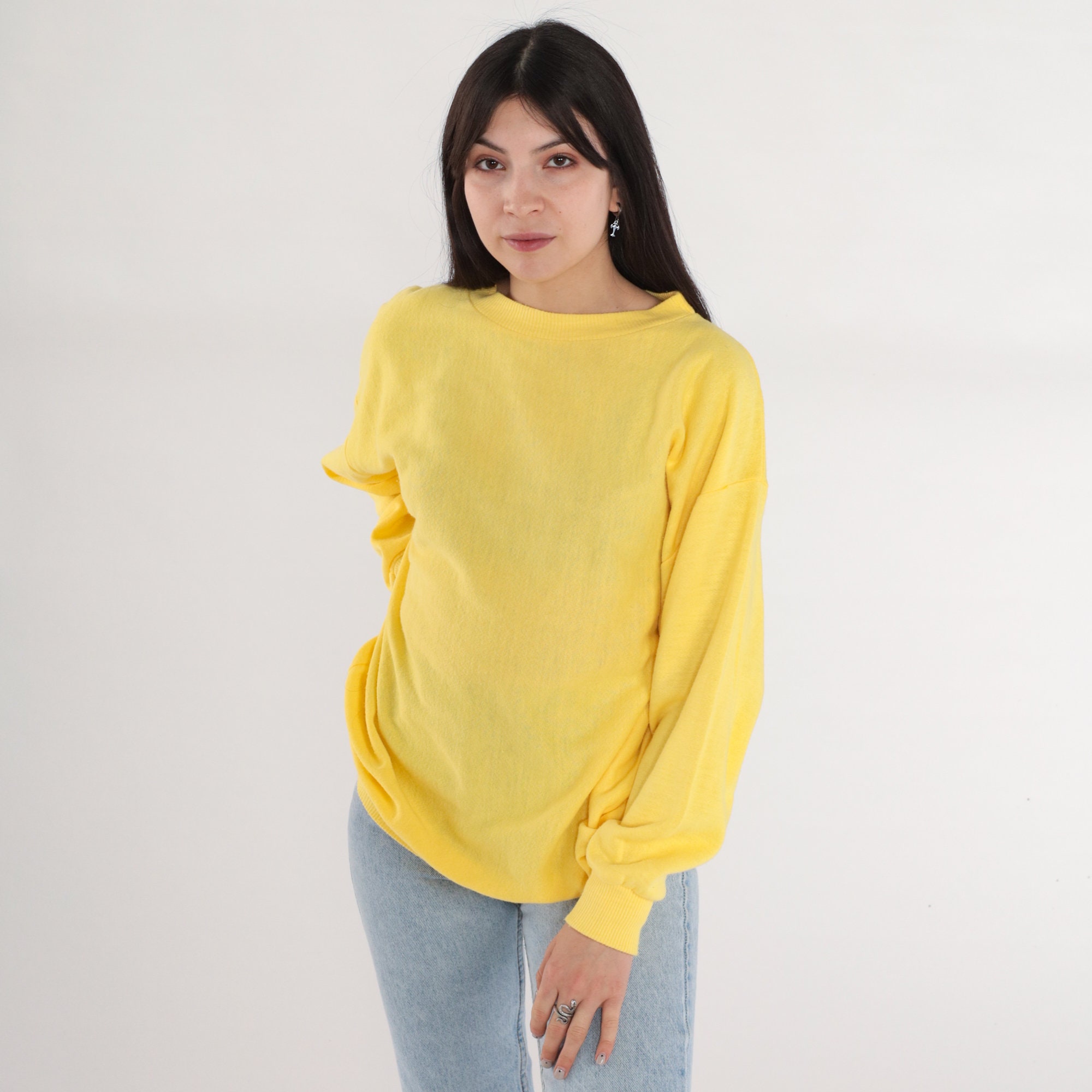 Vintage 80s sweatshirt in yellow with a crew neck.