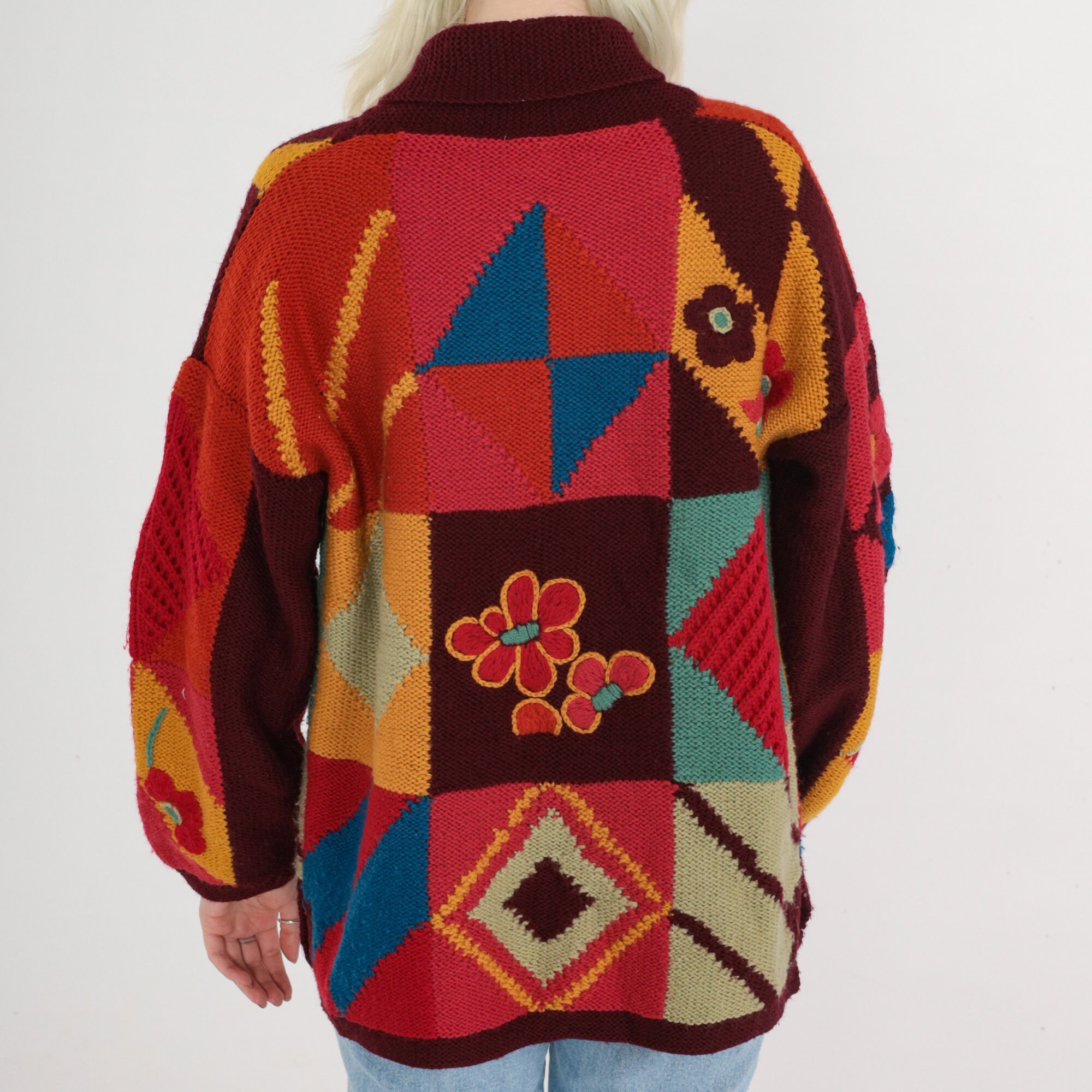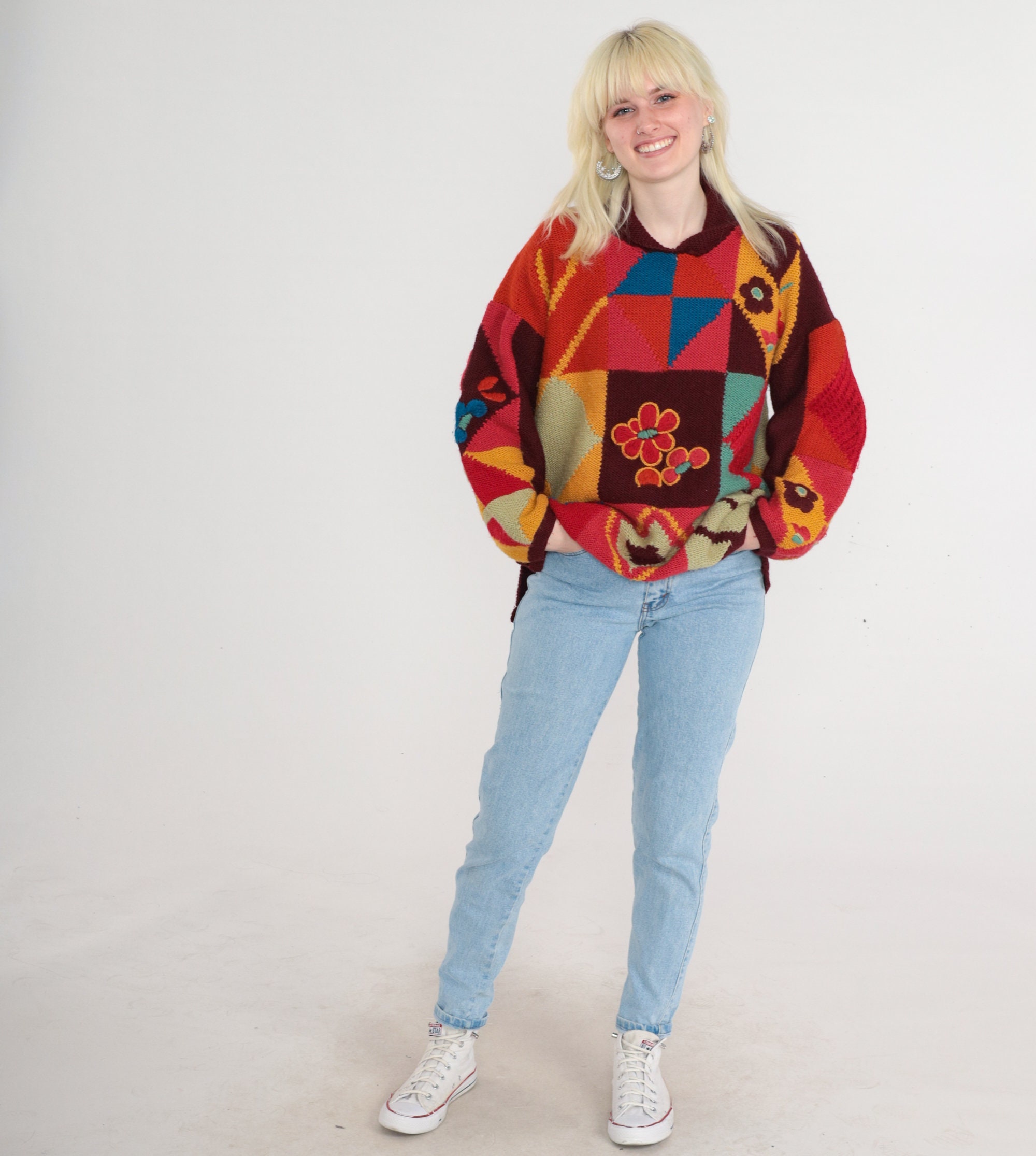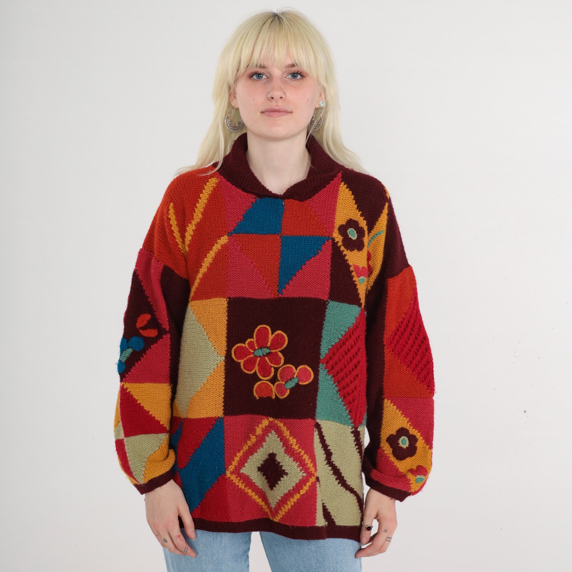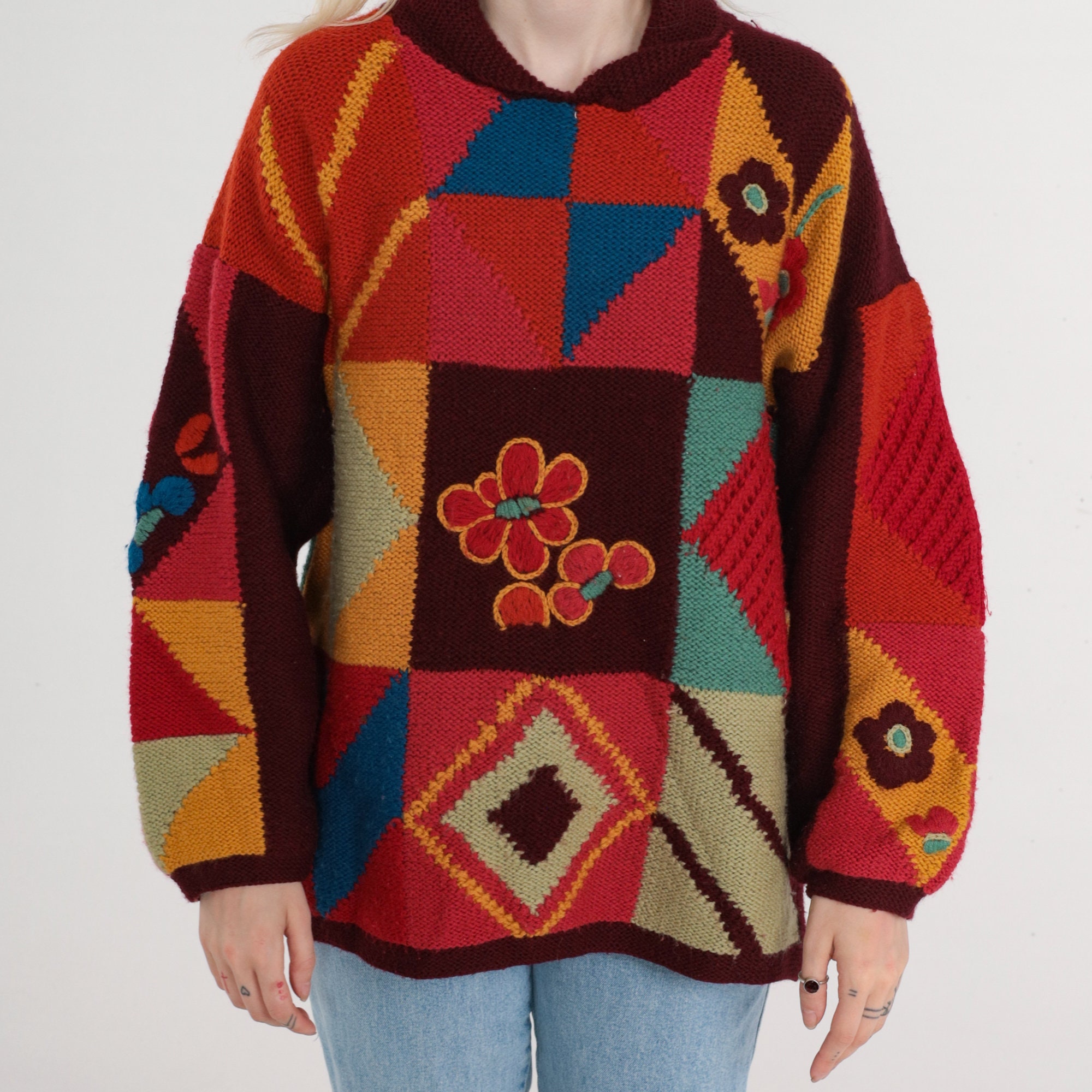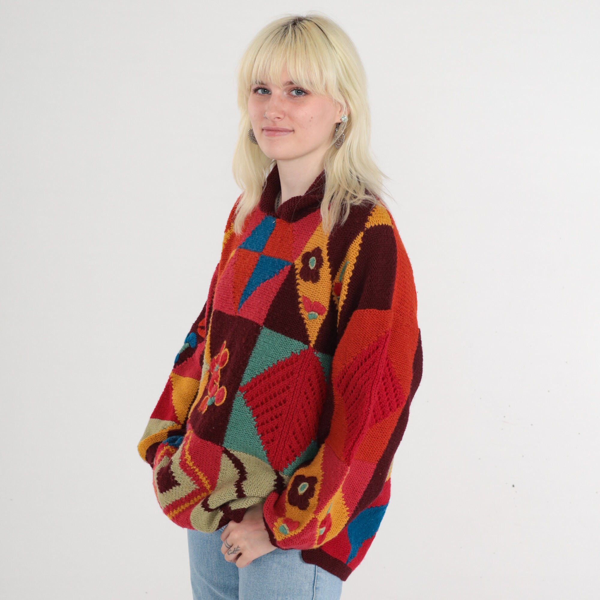 Vintage 80s sweater in a Geometric floral print wool blend.