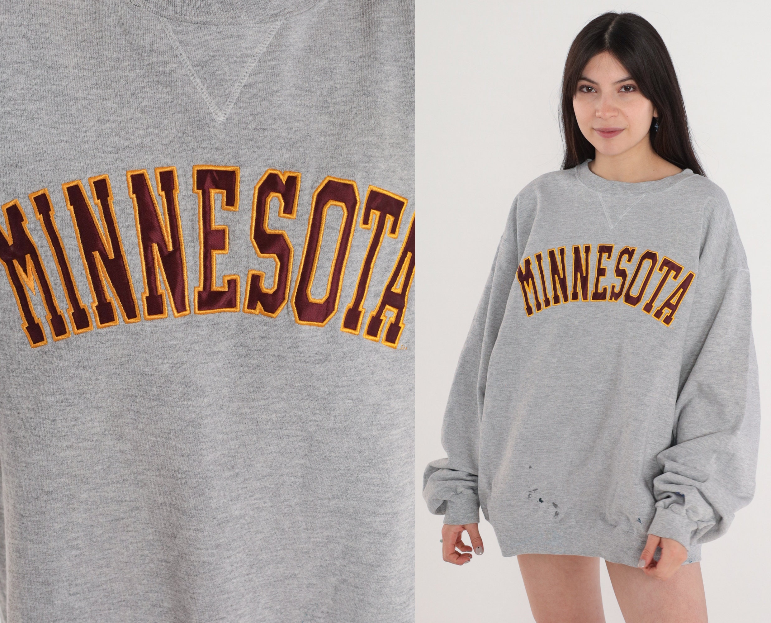 Vintage y2k sweatshirt in heather grey with "Minnesota" on the front.