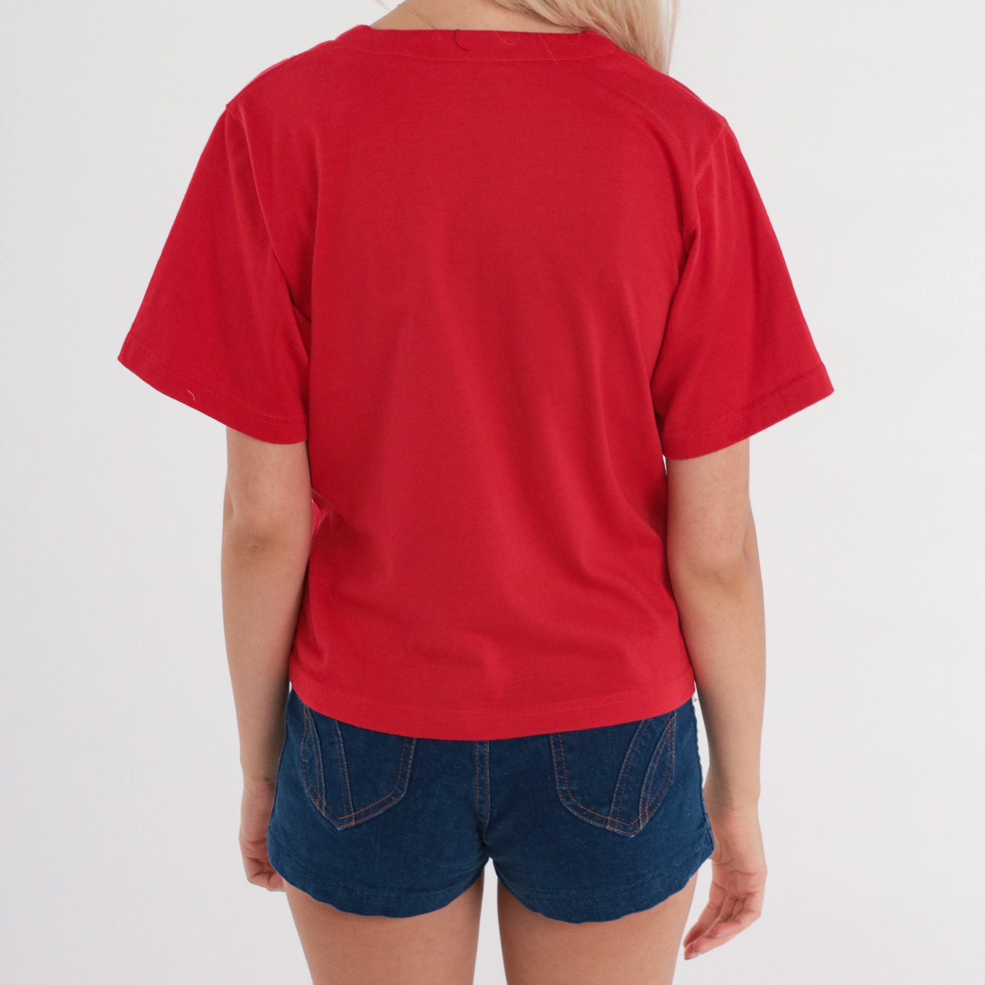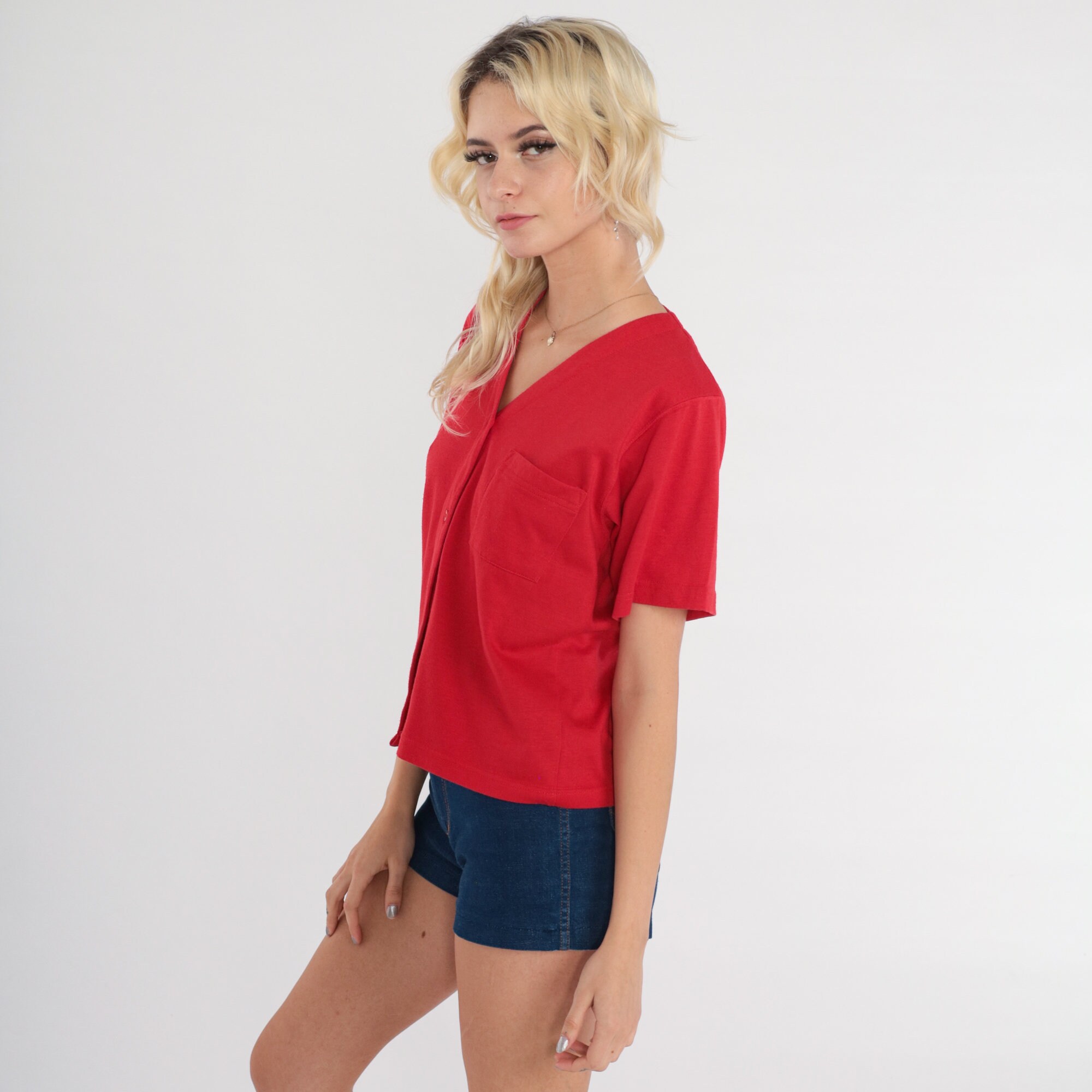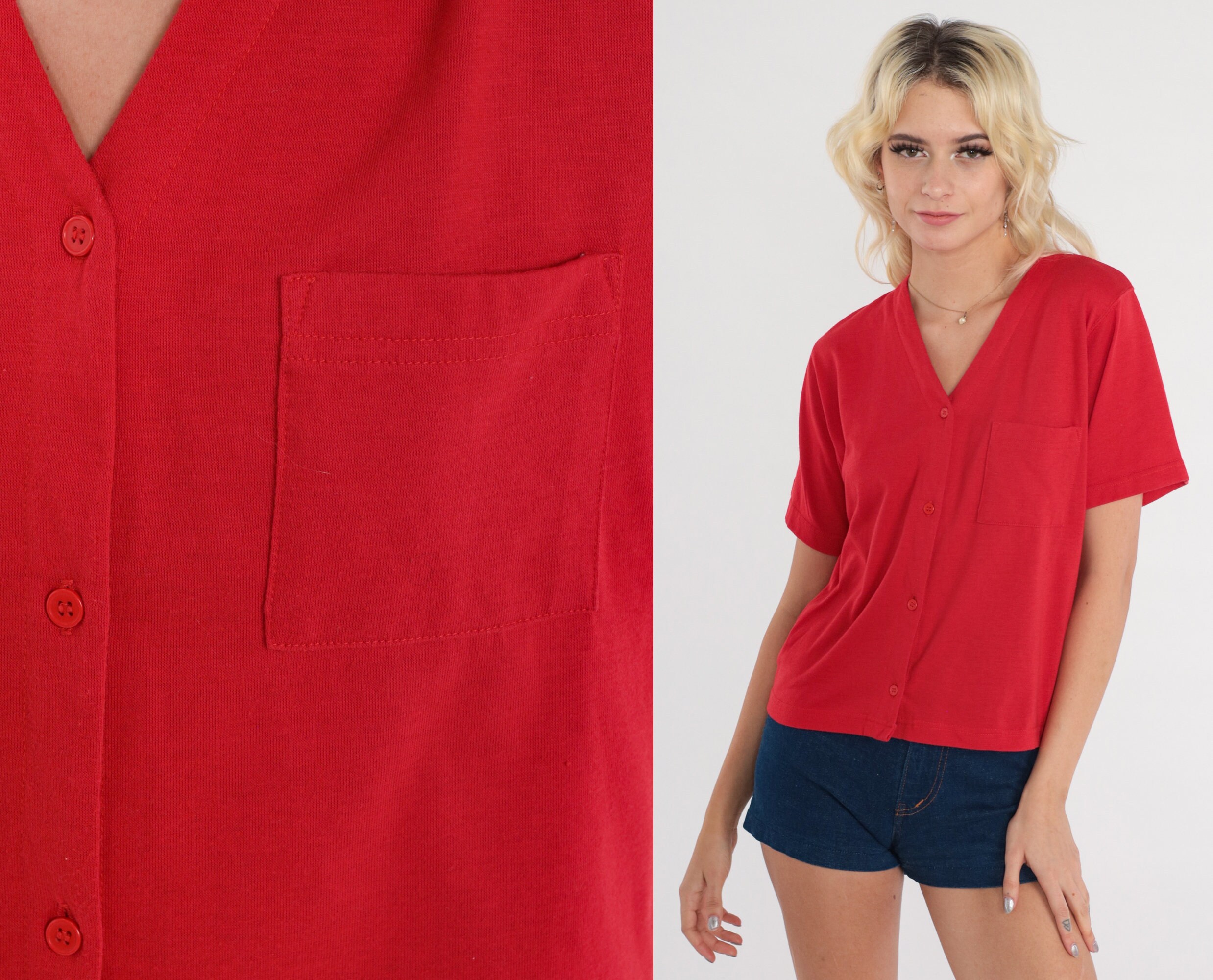 Vintage 80s shirt in red with buttons up the chest.
