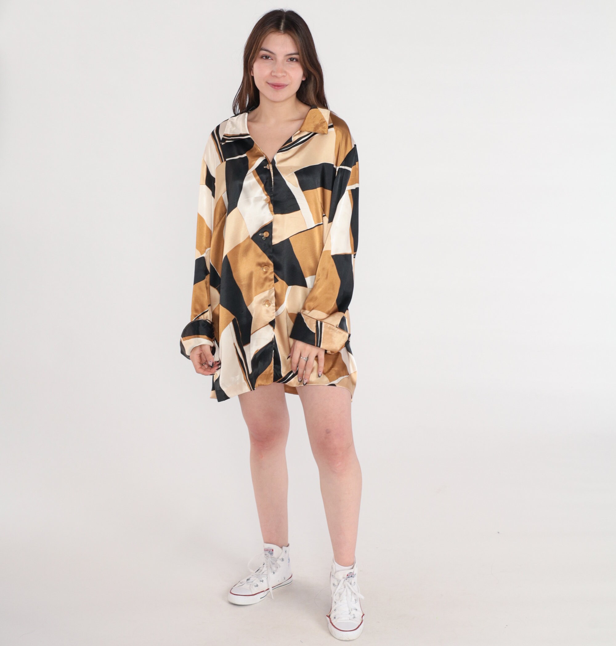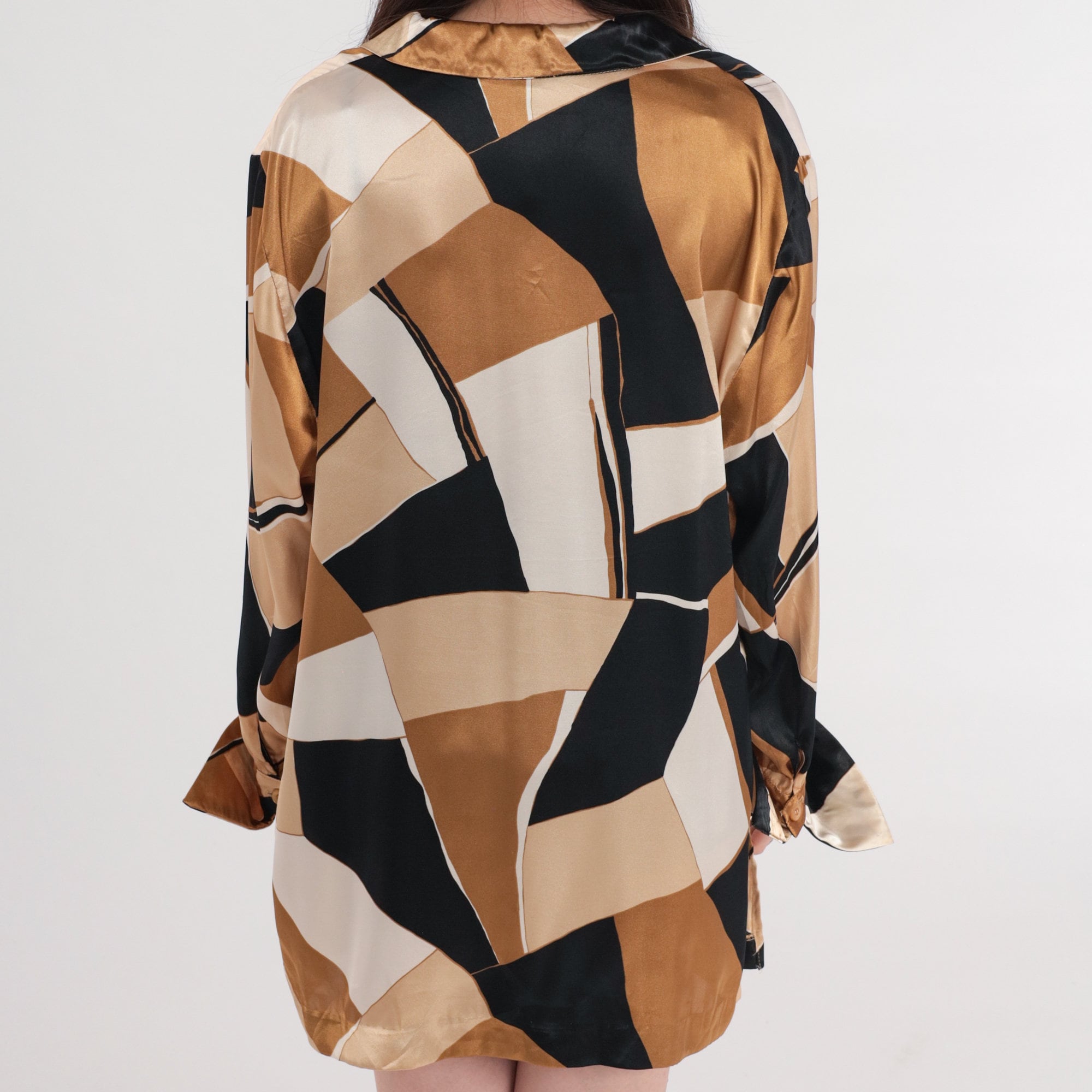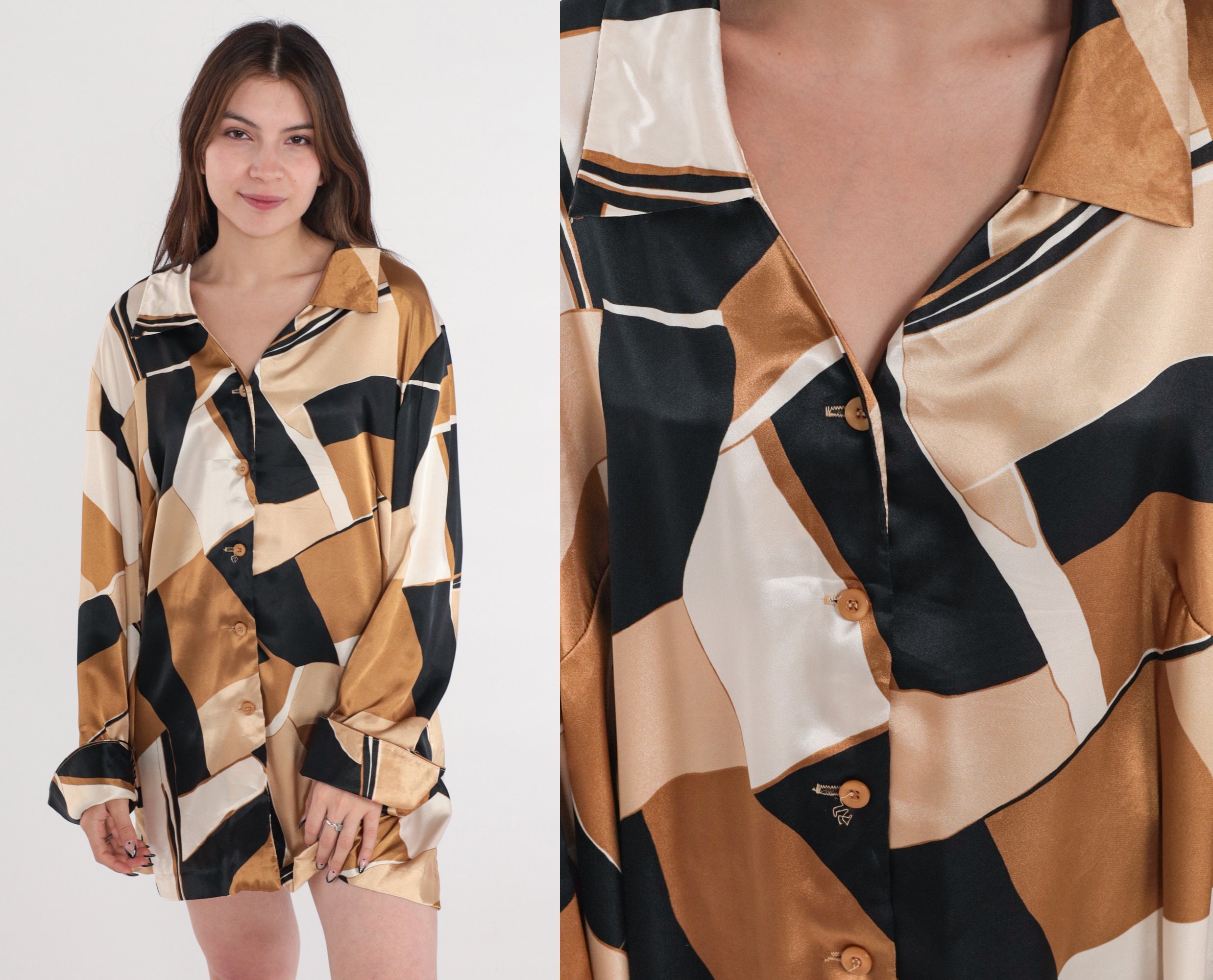 Vintage Y2K blouse in an abstract print. Buttons up the front with long sleeves.