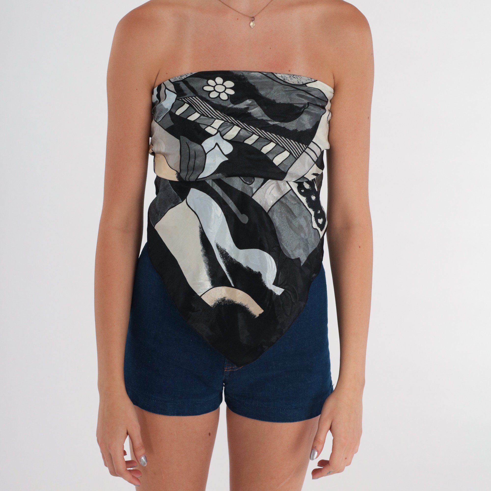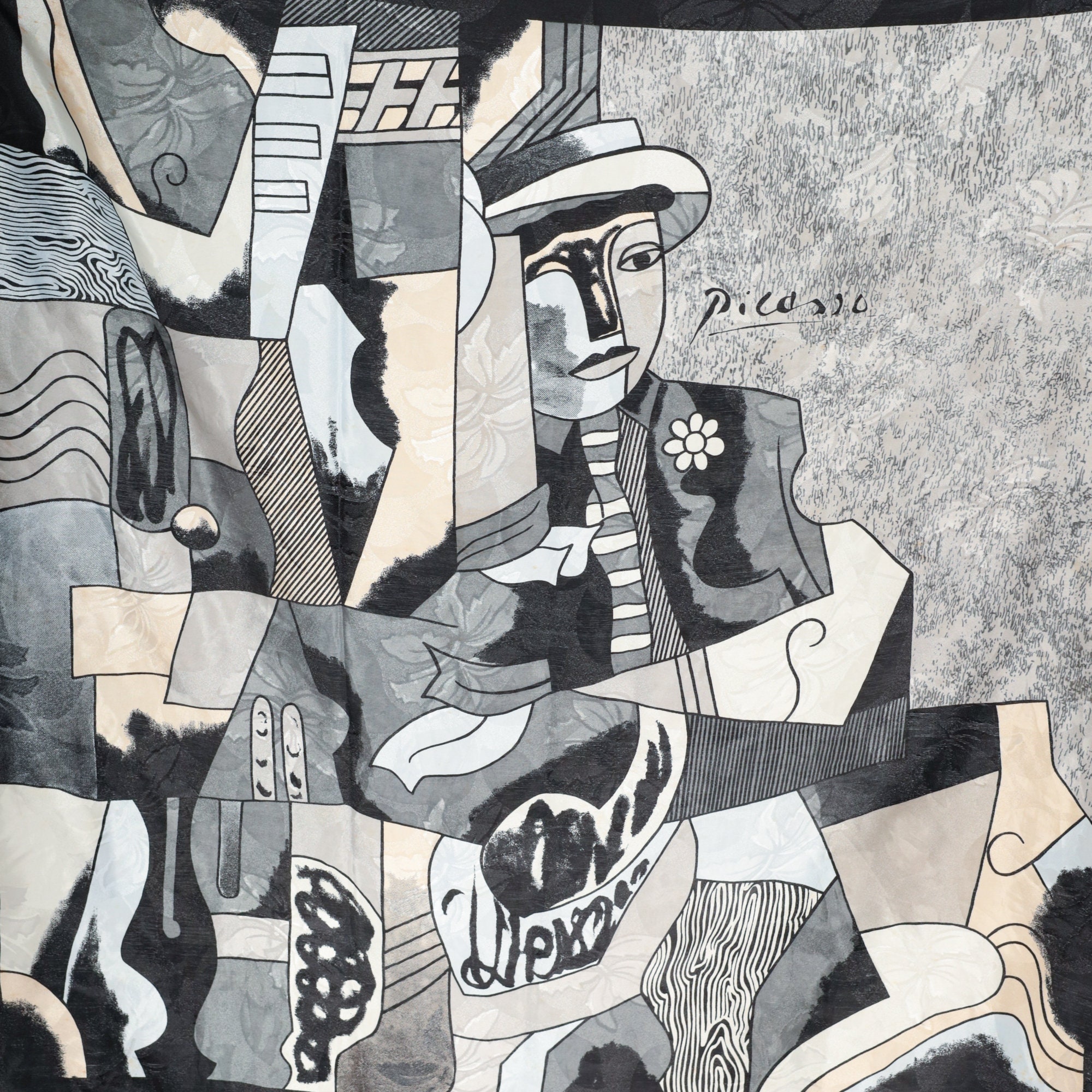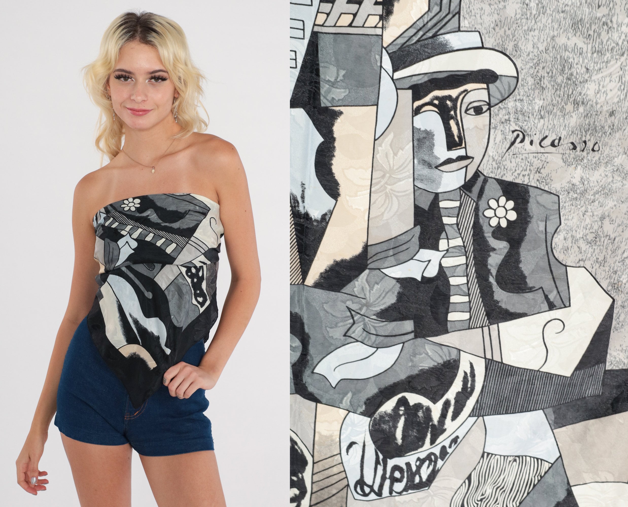Vintage 80s scarf with a Pablo Picasso cubist art print. Can be worn as a top.