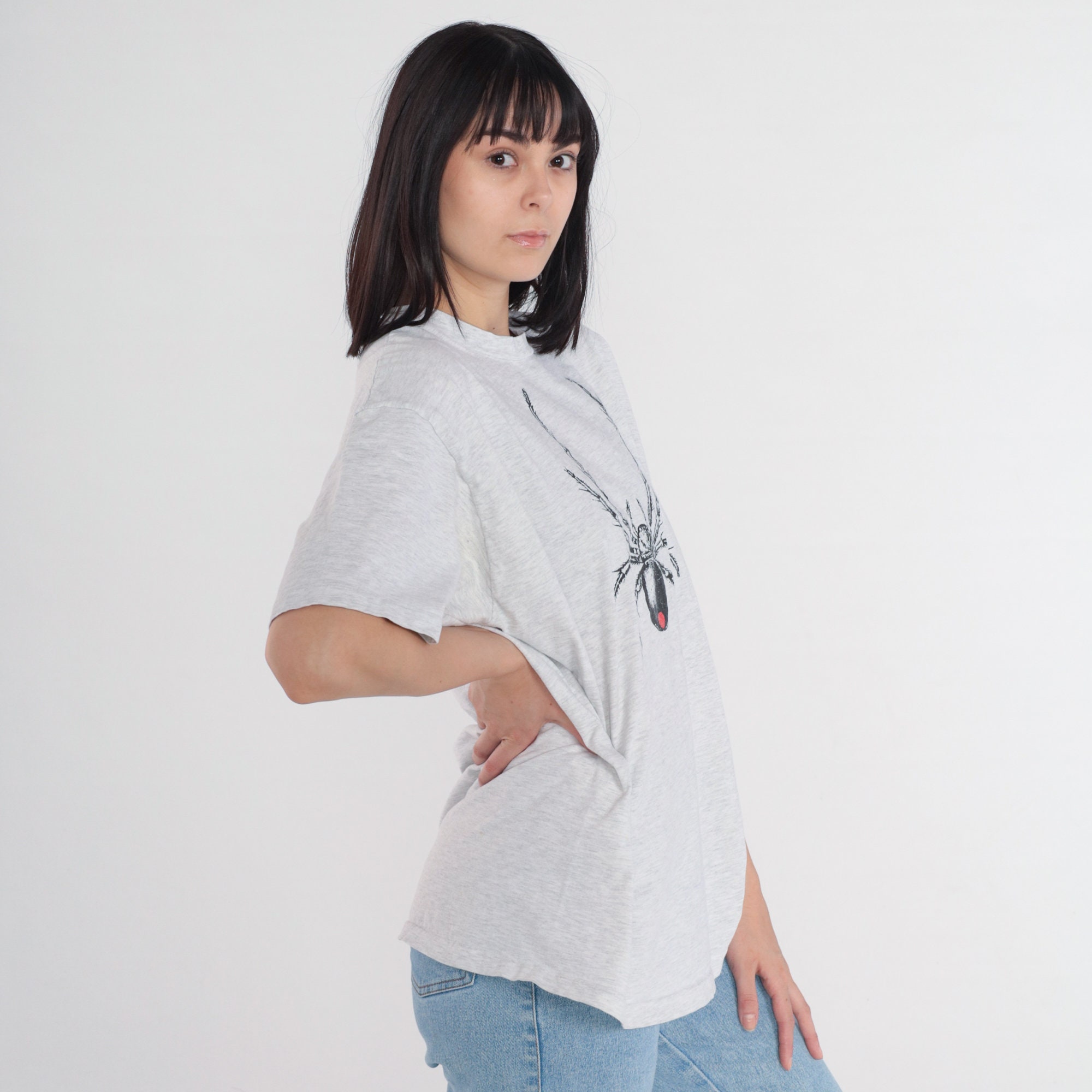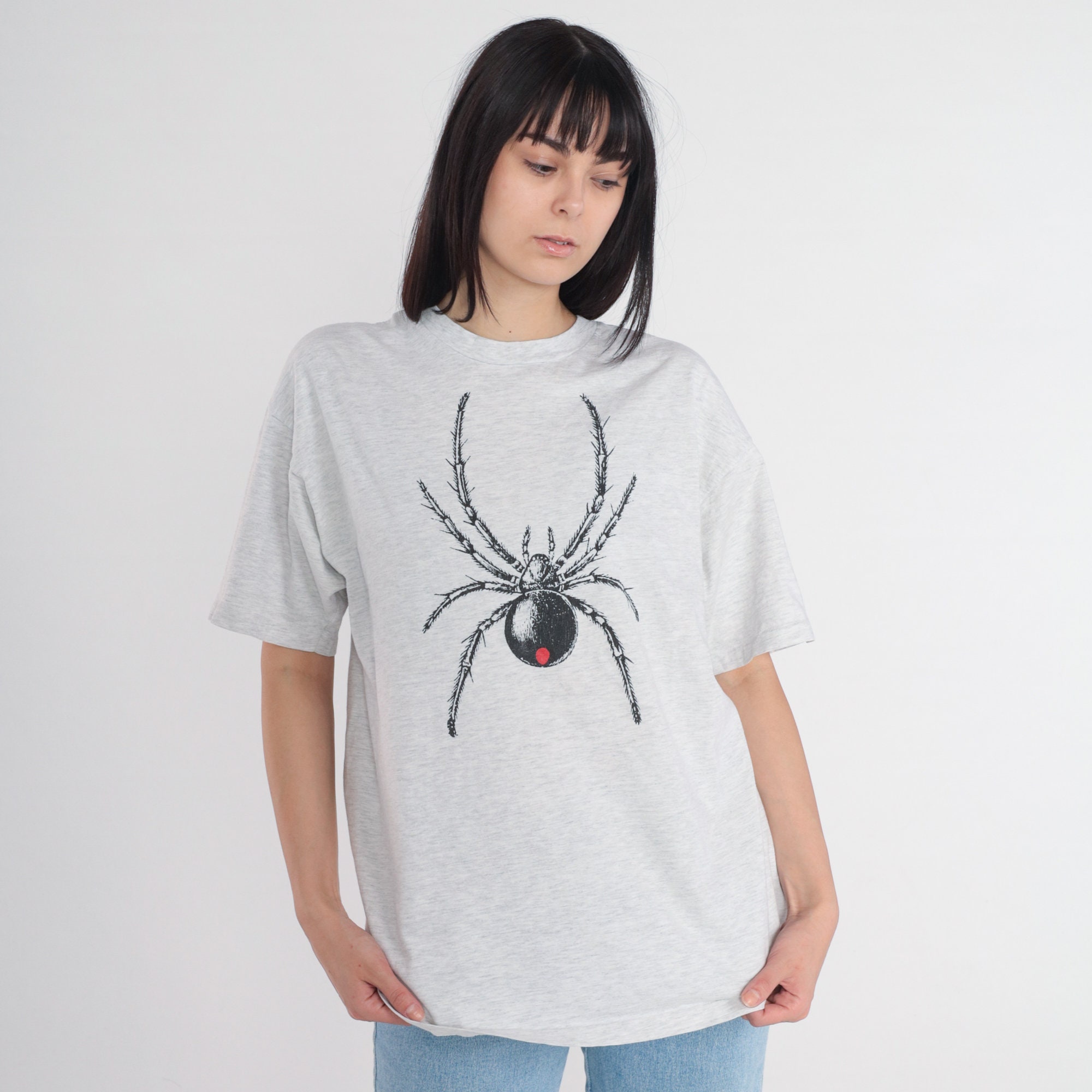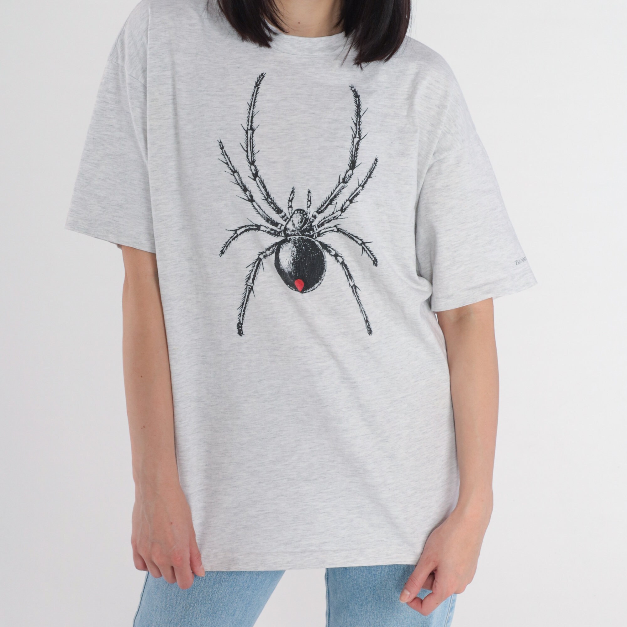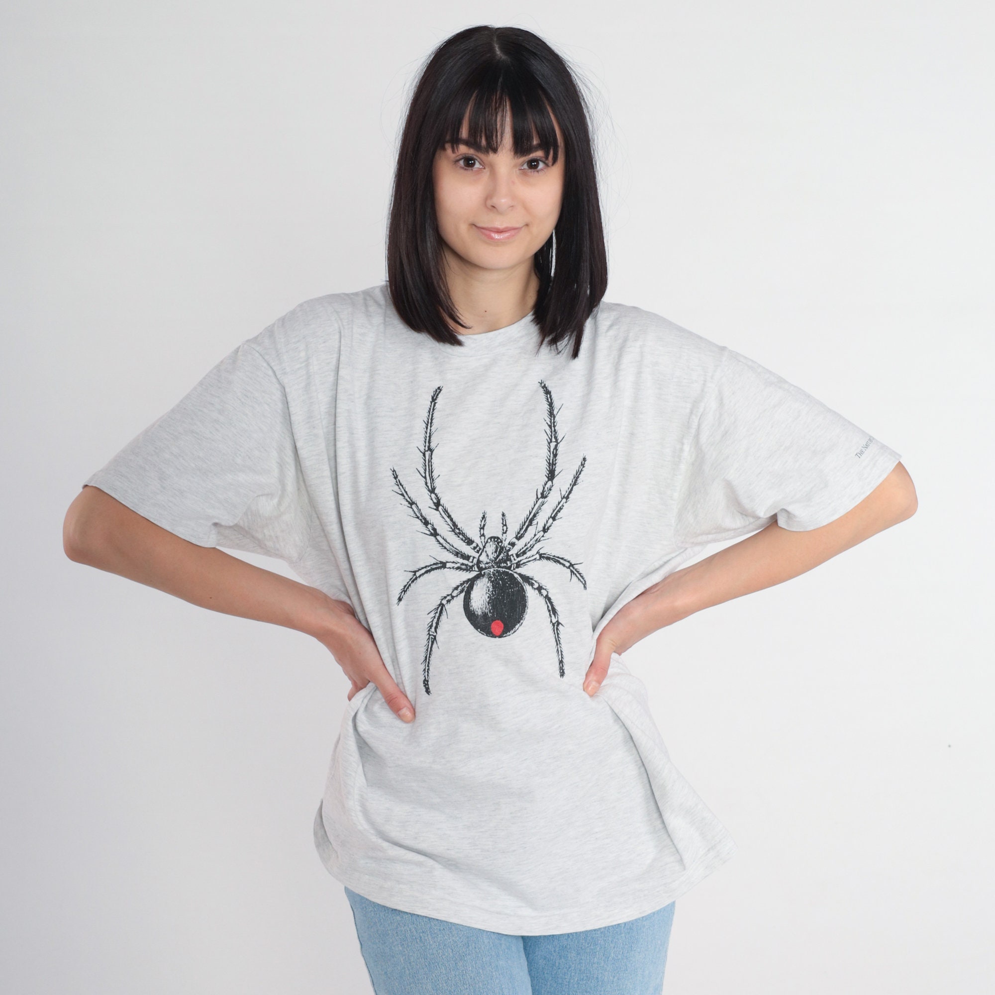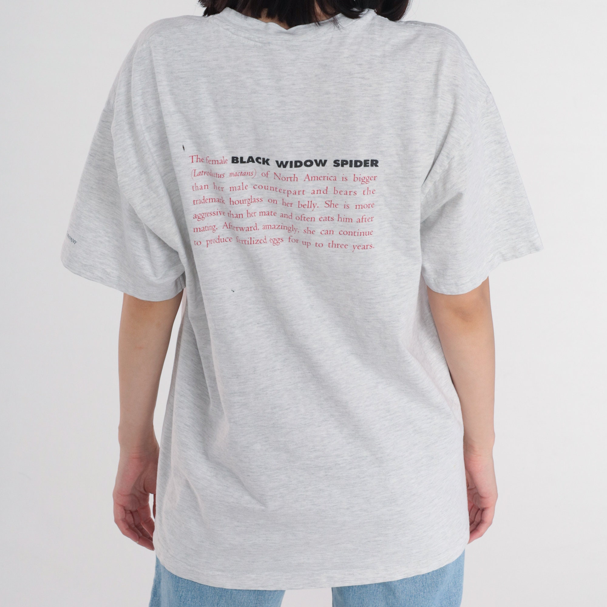 Vintage 90s t-shirt with a black widow print on the front and back.