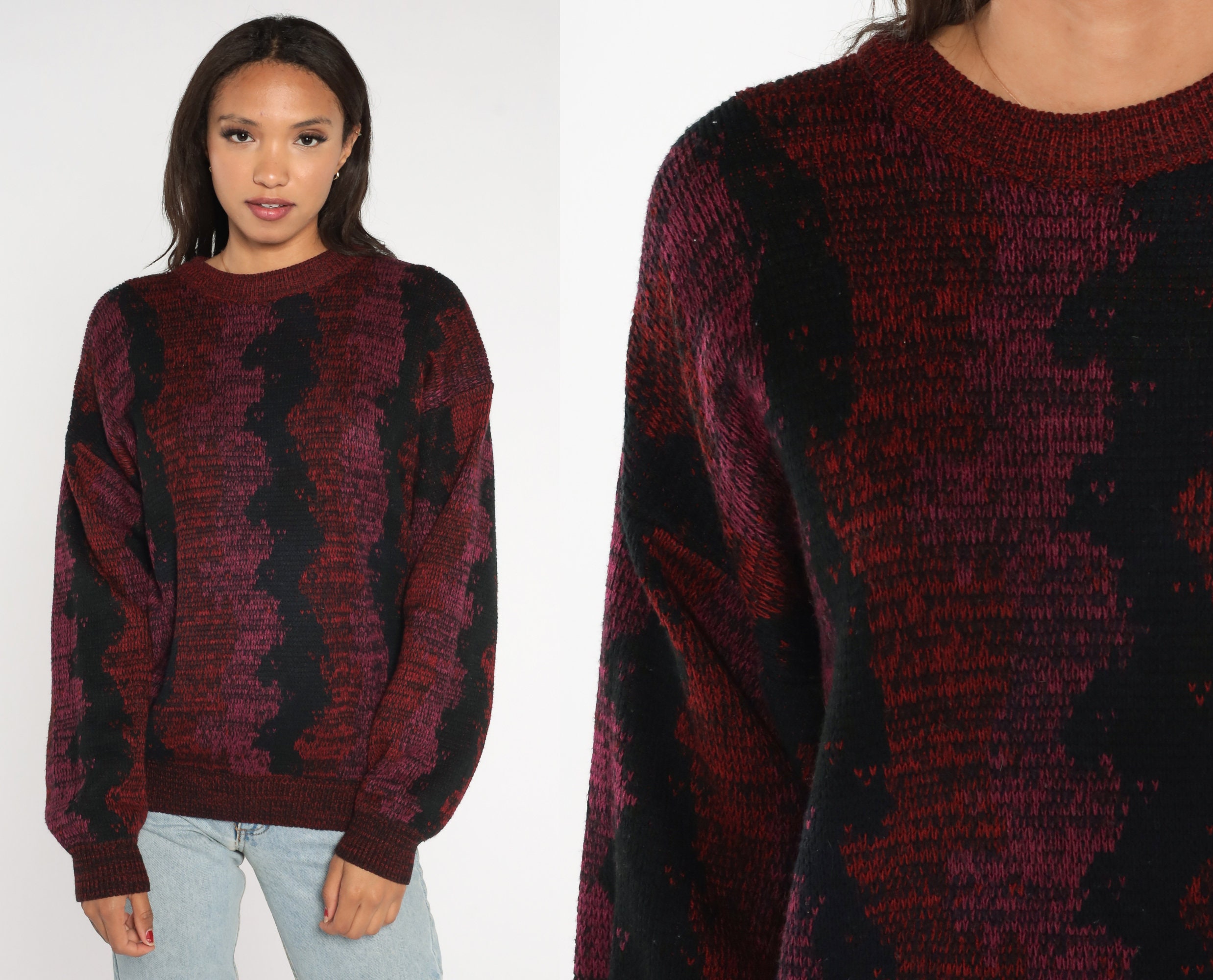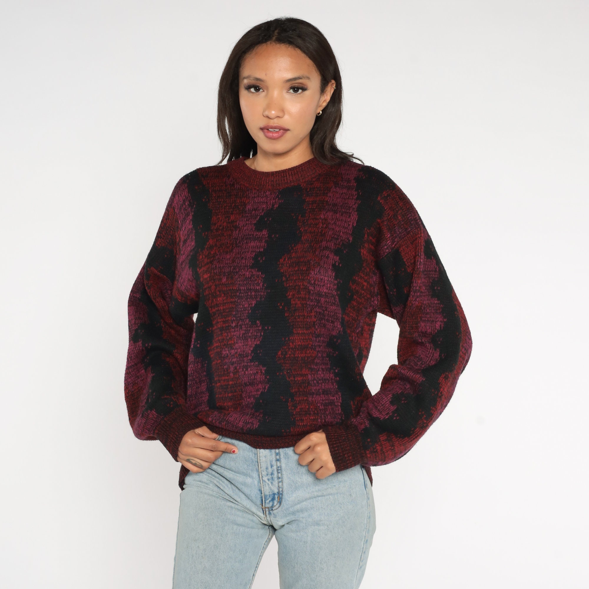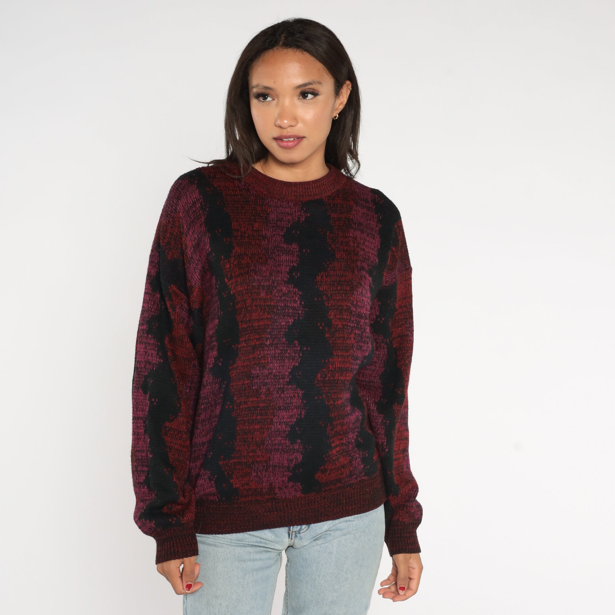 Vintage 80s sweater with a wavy striped design.